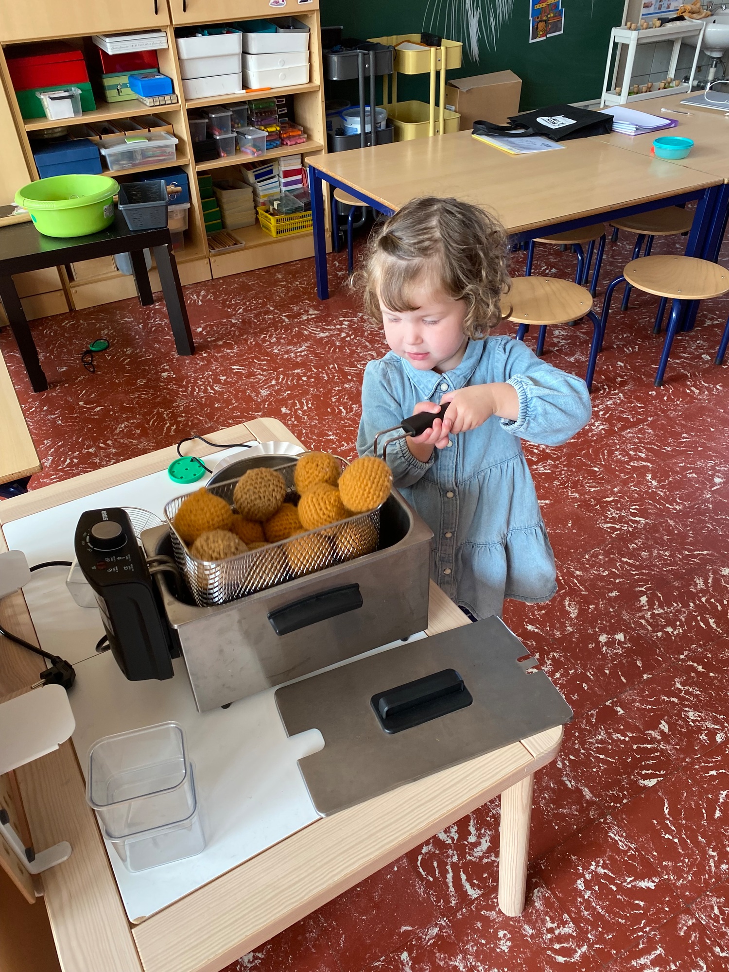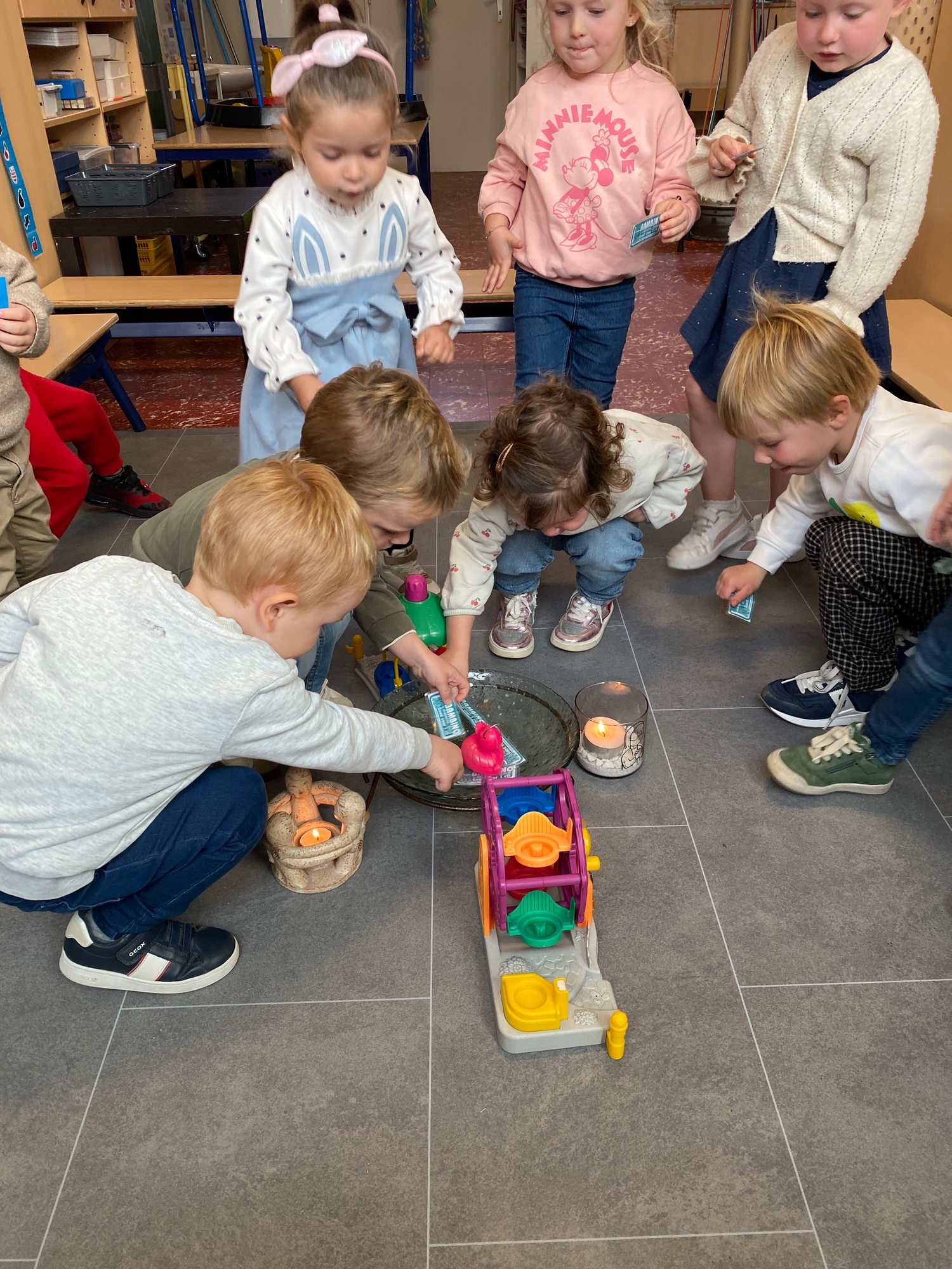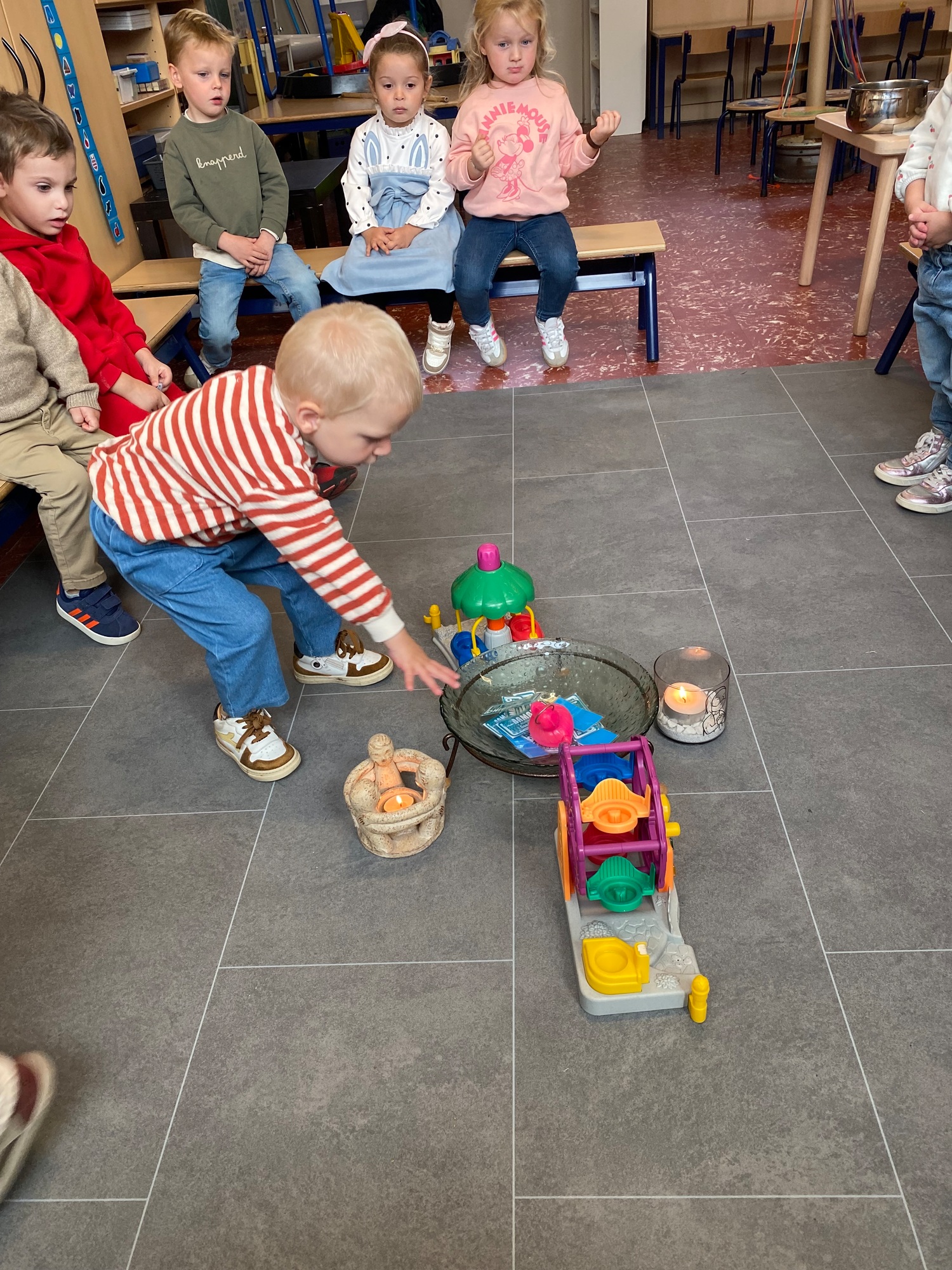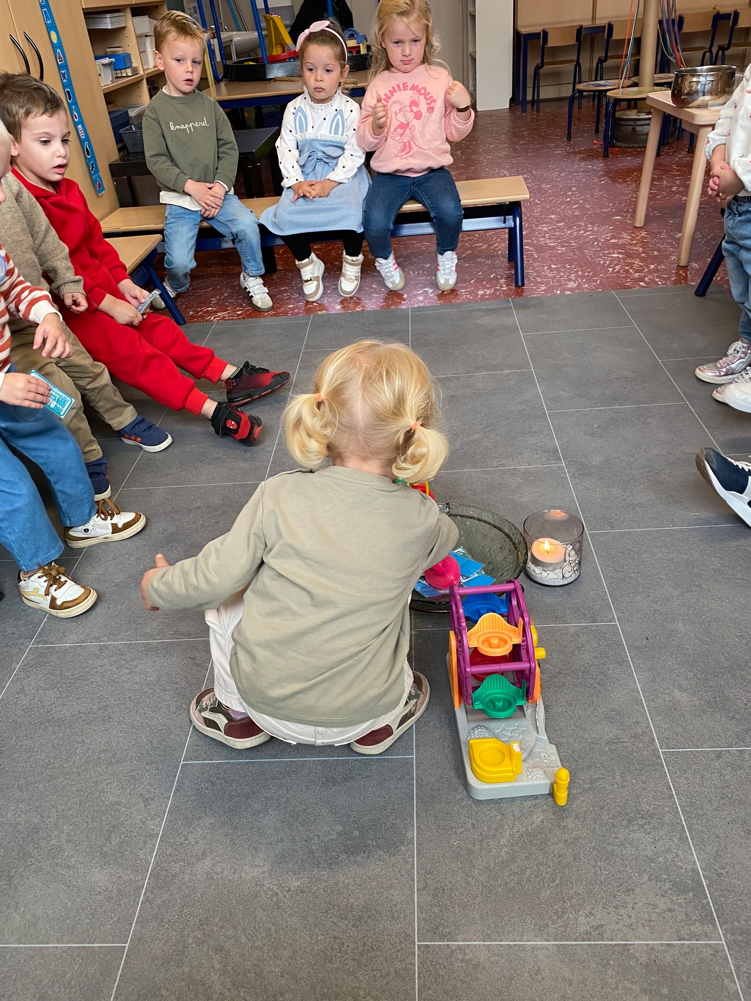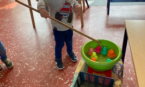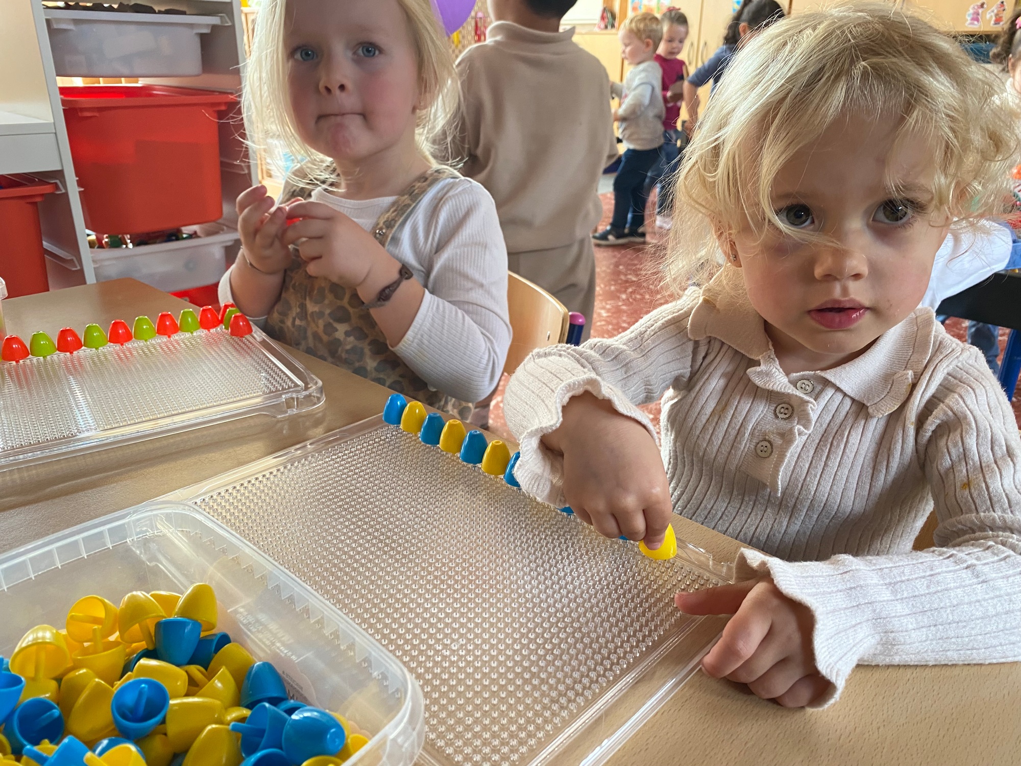 We speelden met allerlei dingen die met het thema te maken hadden. Eendjes vangen, op de draaimolen gemaakt met wippertjes, spelen met de kermis van little people, de lichtjes van de kermis maken met steekparels, ballonnen meppen, oliebollen bakken,...