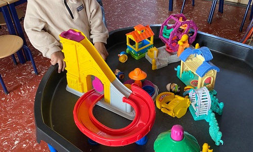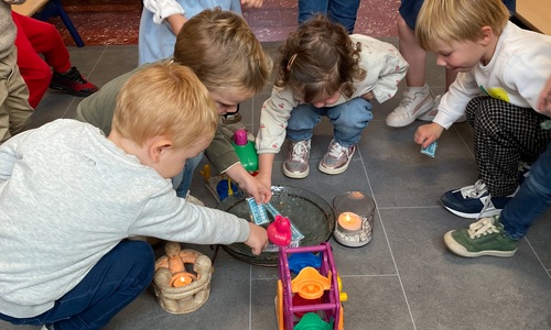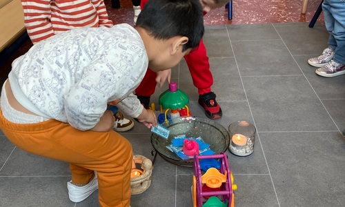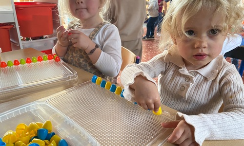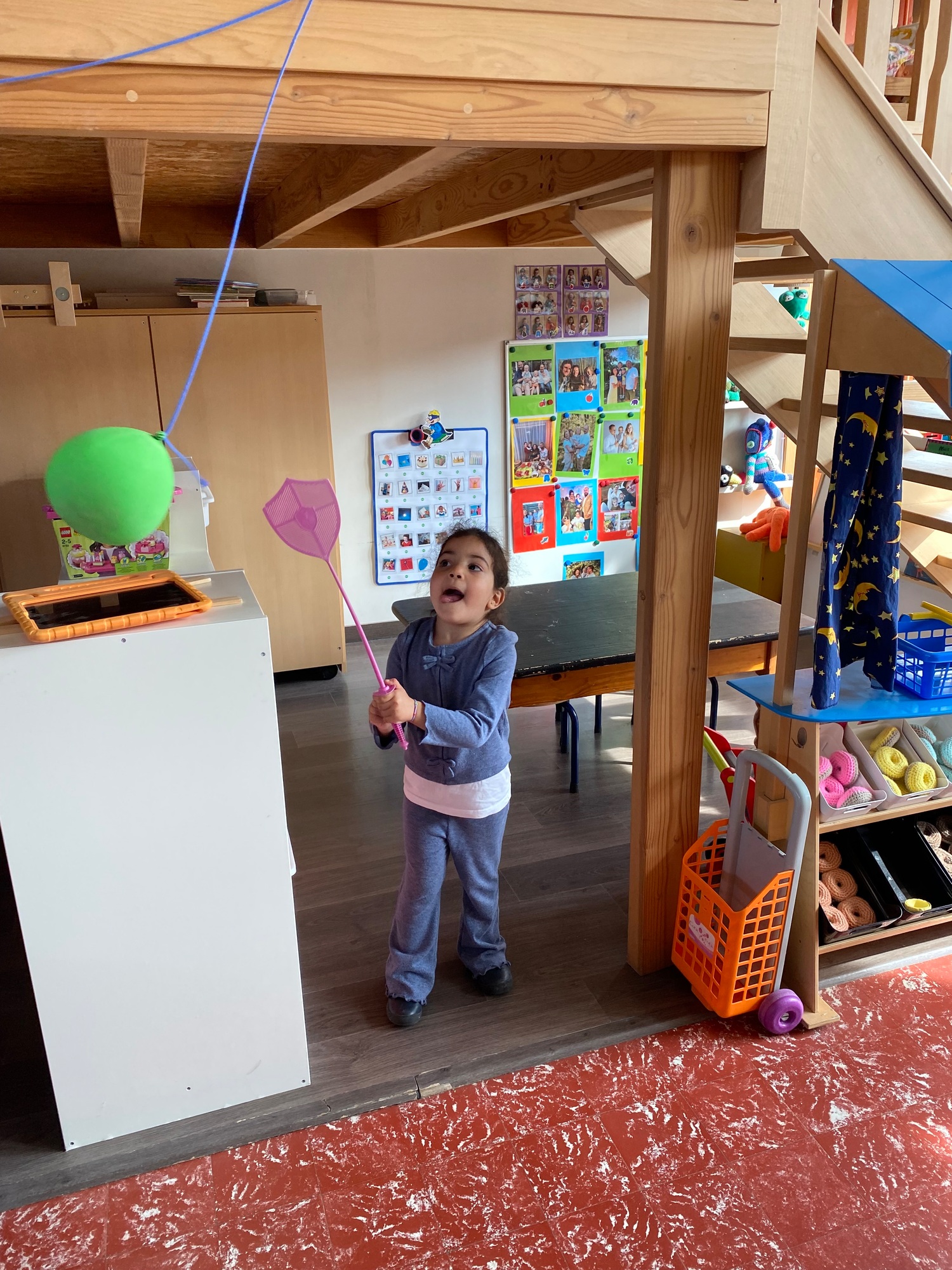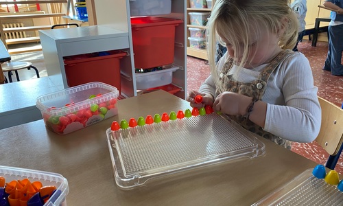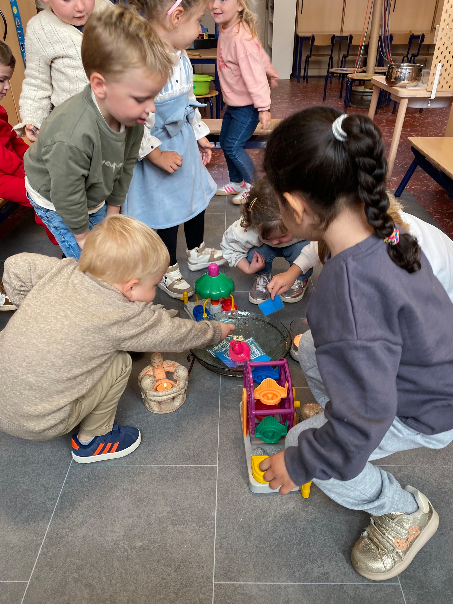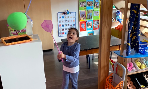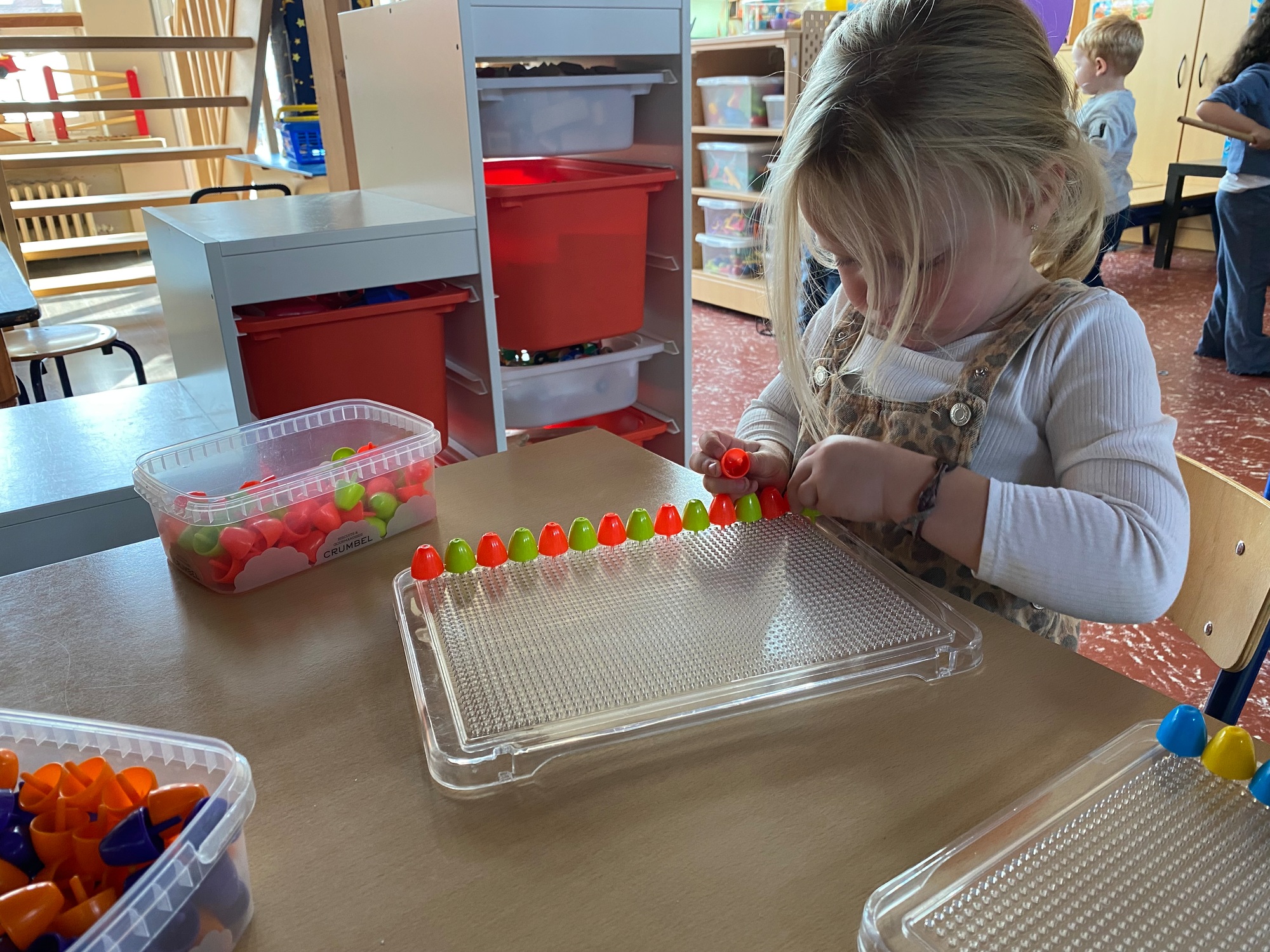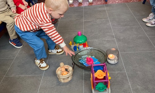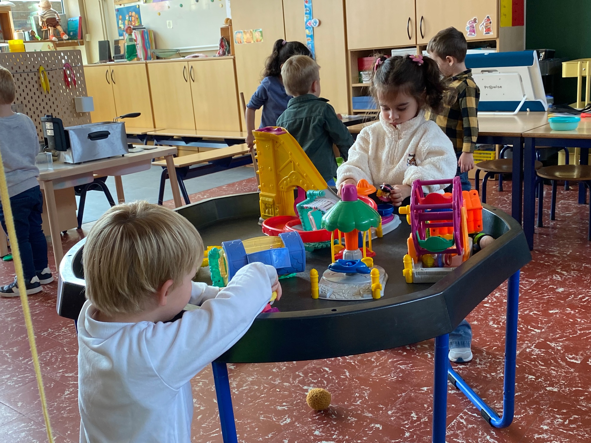We speelden met allerlei dingen die met het thema te maken hadden. Eendjes vangen, op de draaimolen gemaakt met wippertjes, spelen met de kermis van little people, de lichtjes van de kermis maken met steekparels, ballonnen meppen, oliebollen bakken,...