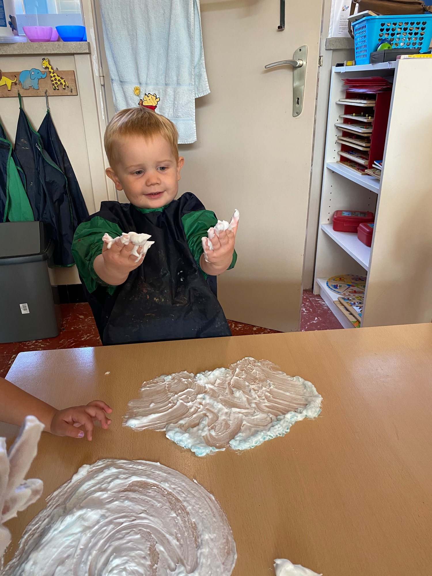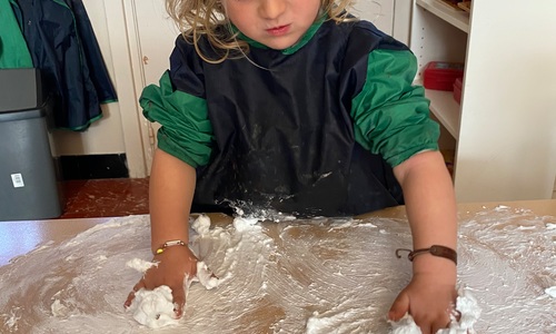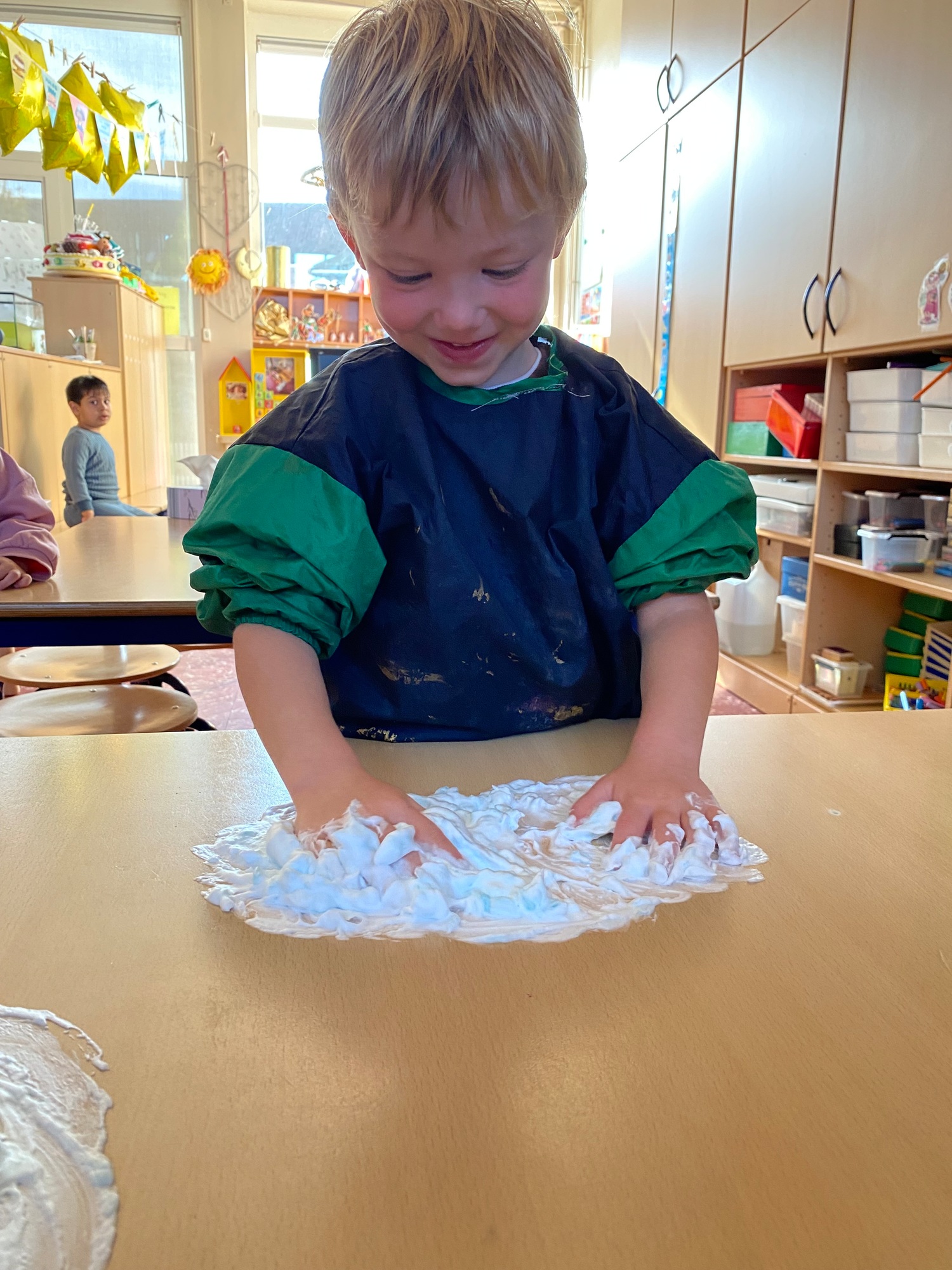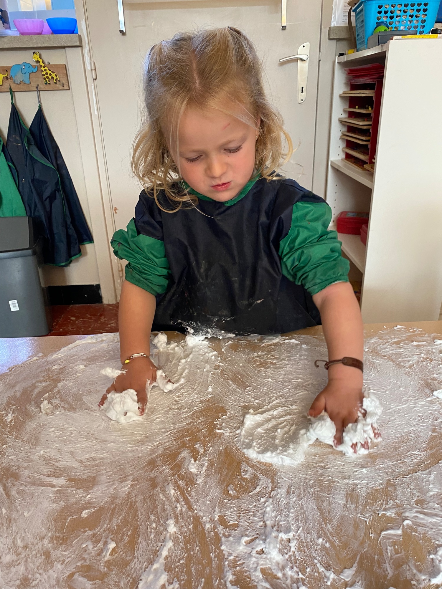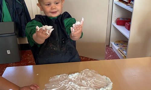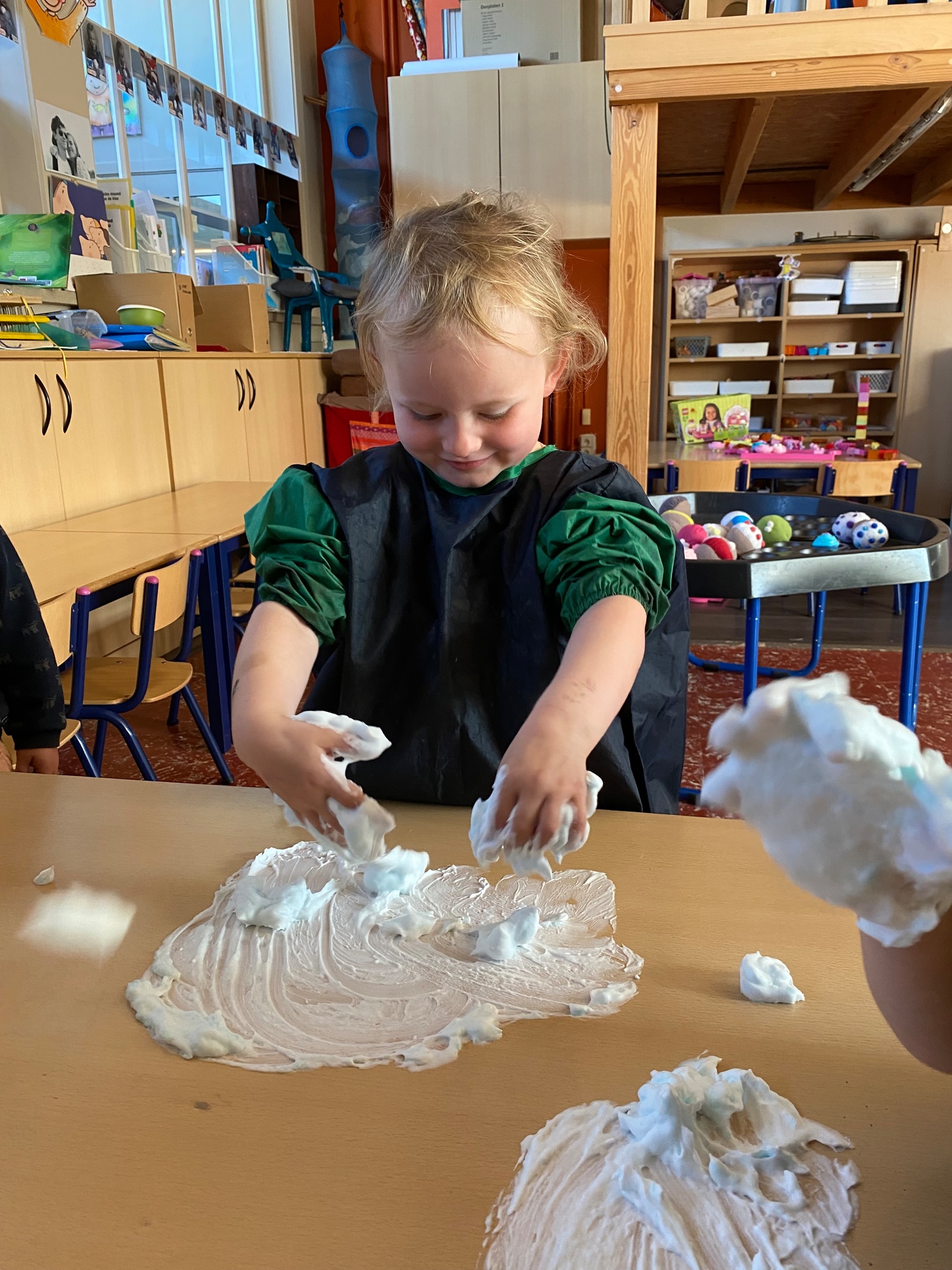 Vandaag maakten we kennis met scheerschuim. Wrijven, tekenen, kneden, ontdekken en genieten.