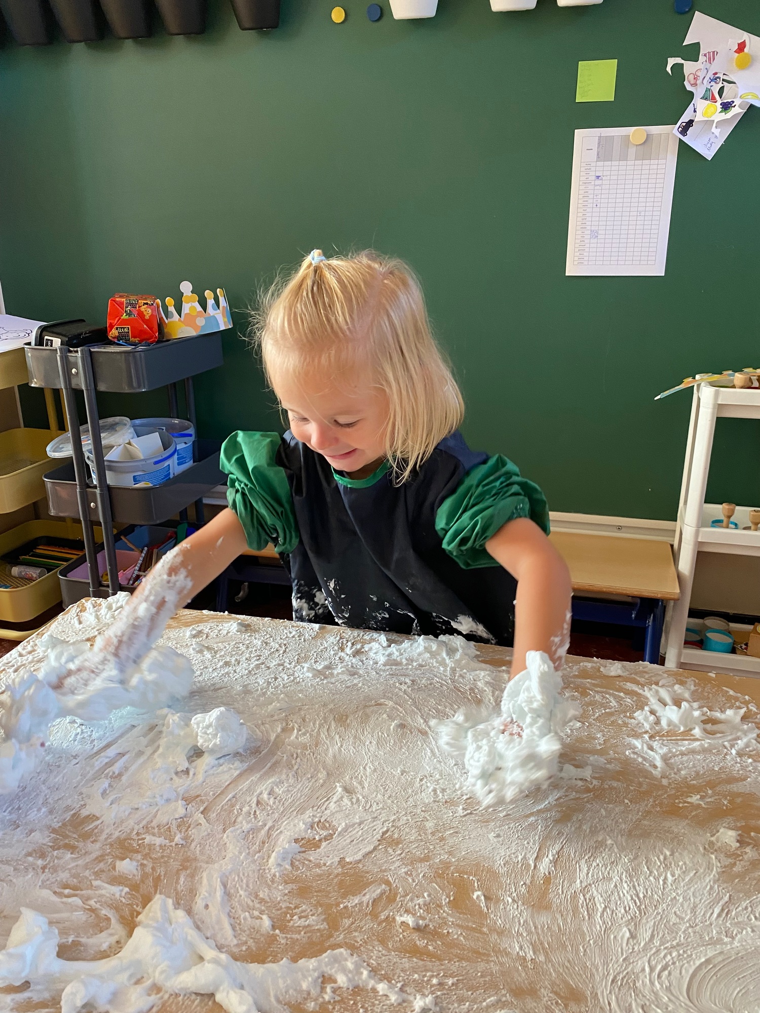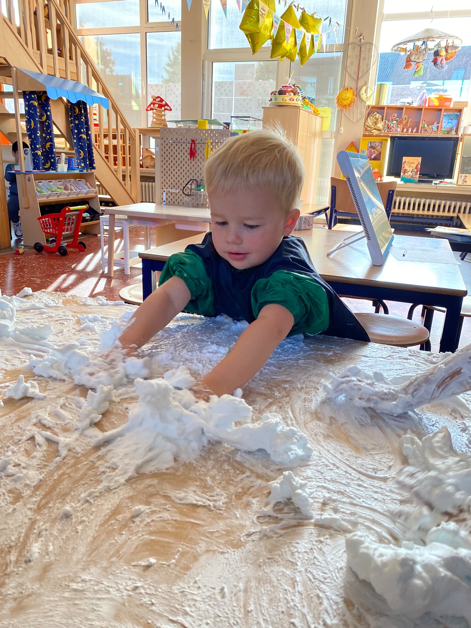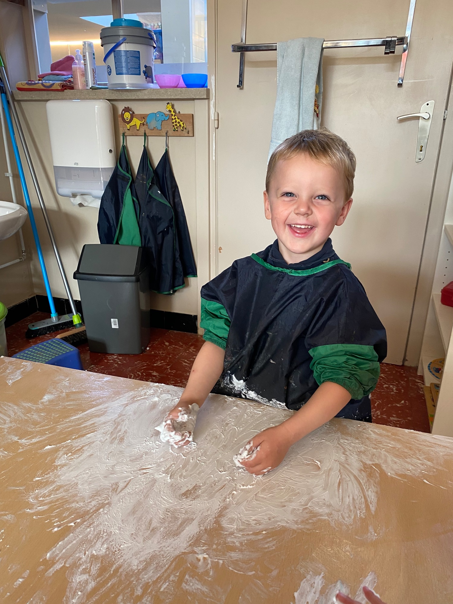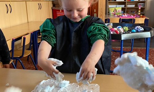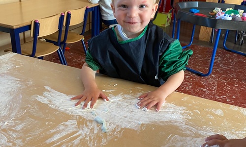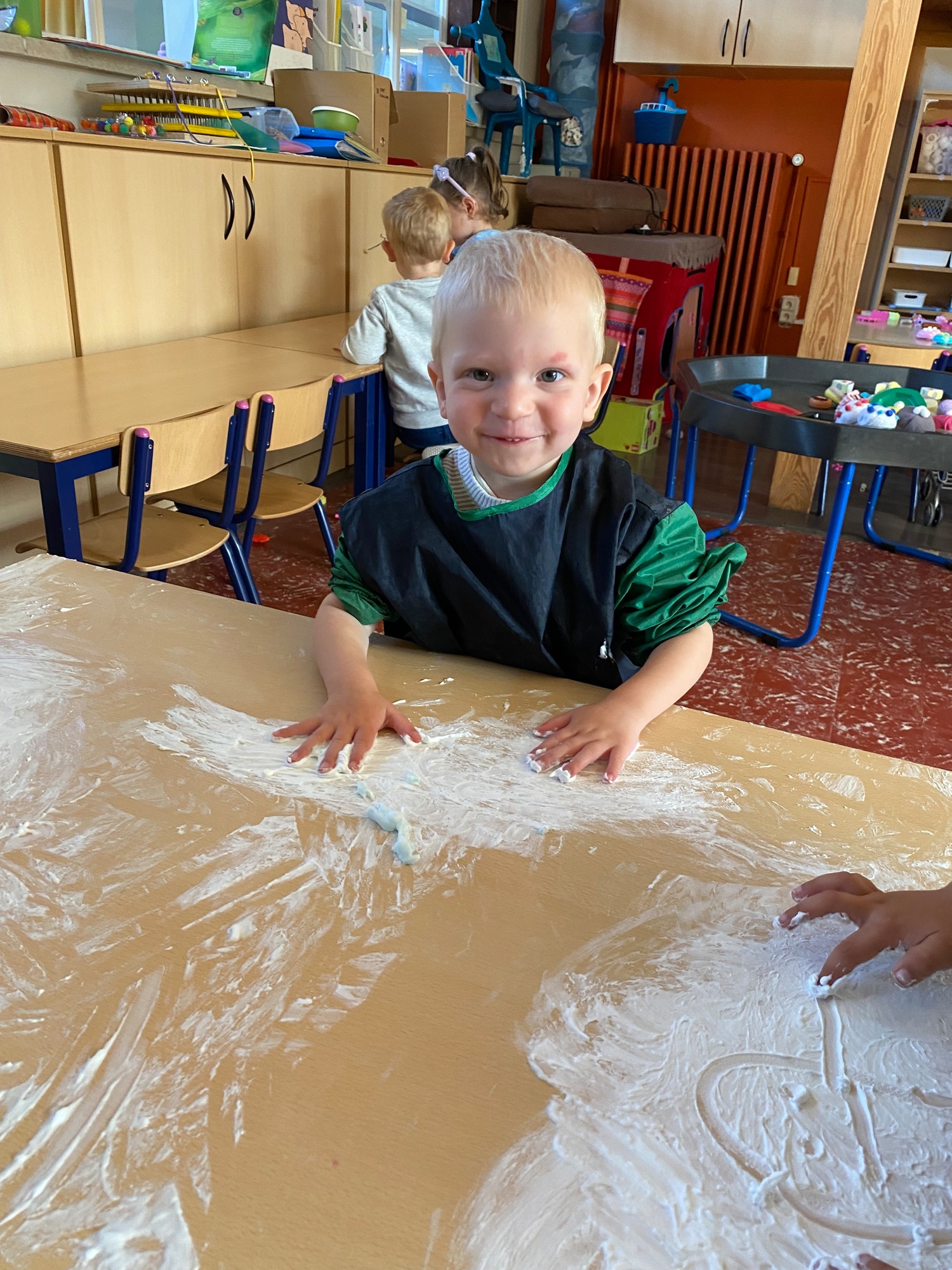 Vandaag maakten we kennis met scheerschuim. Wrijven, tekenen, kneden, ontdekken en genieten.