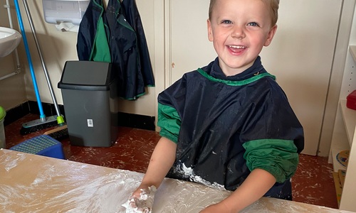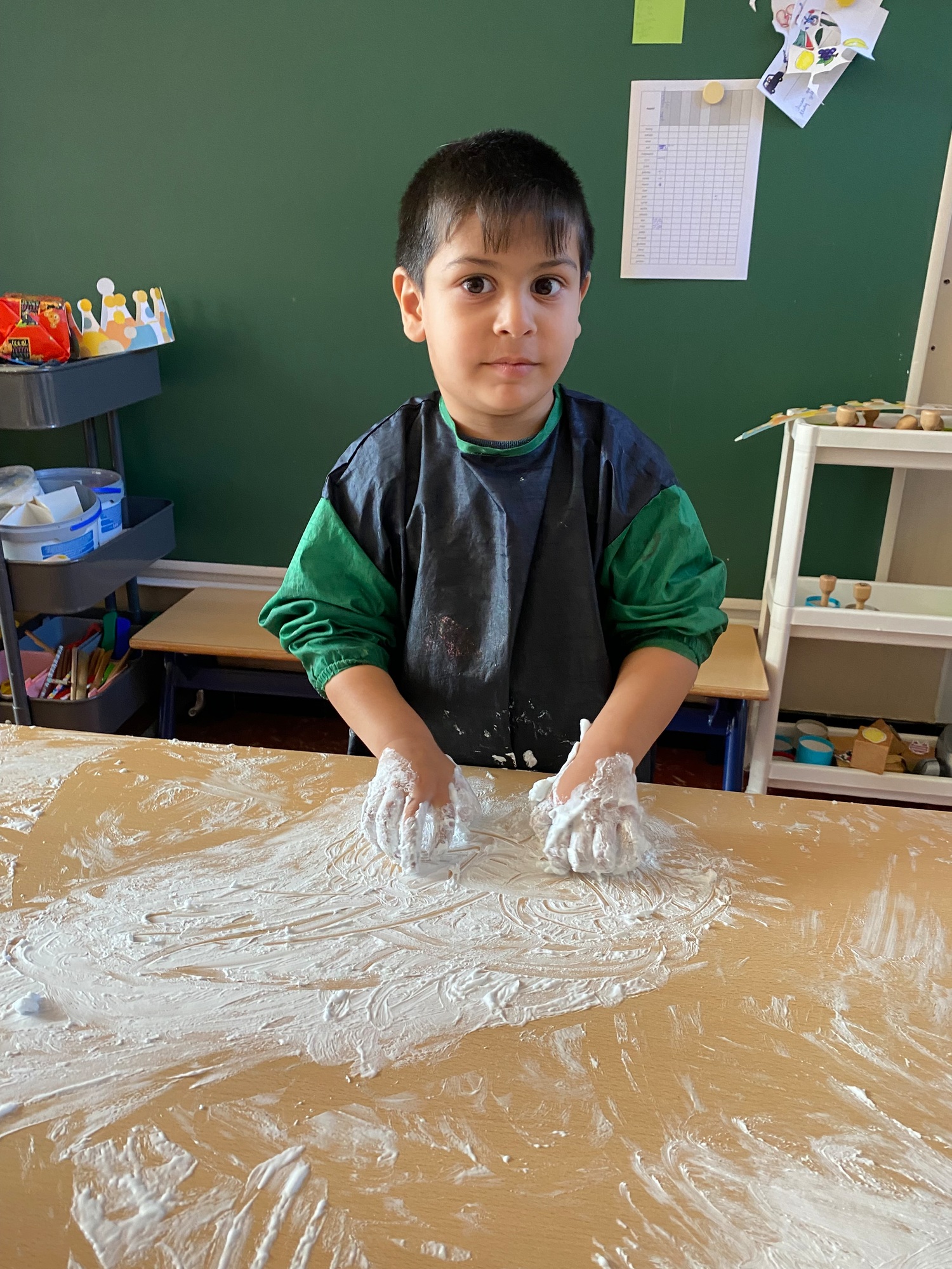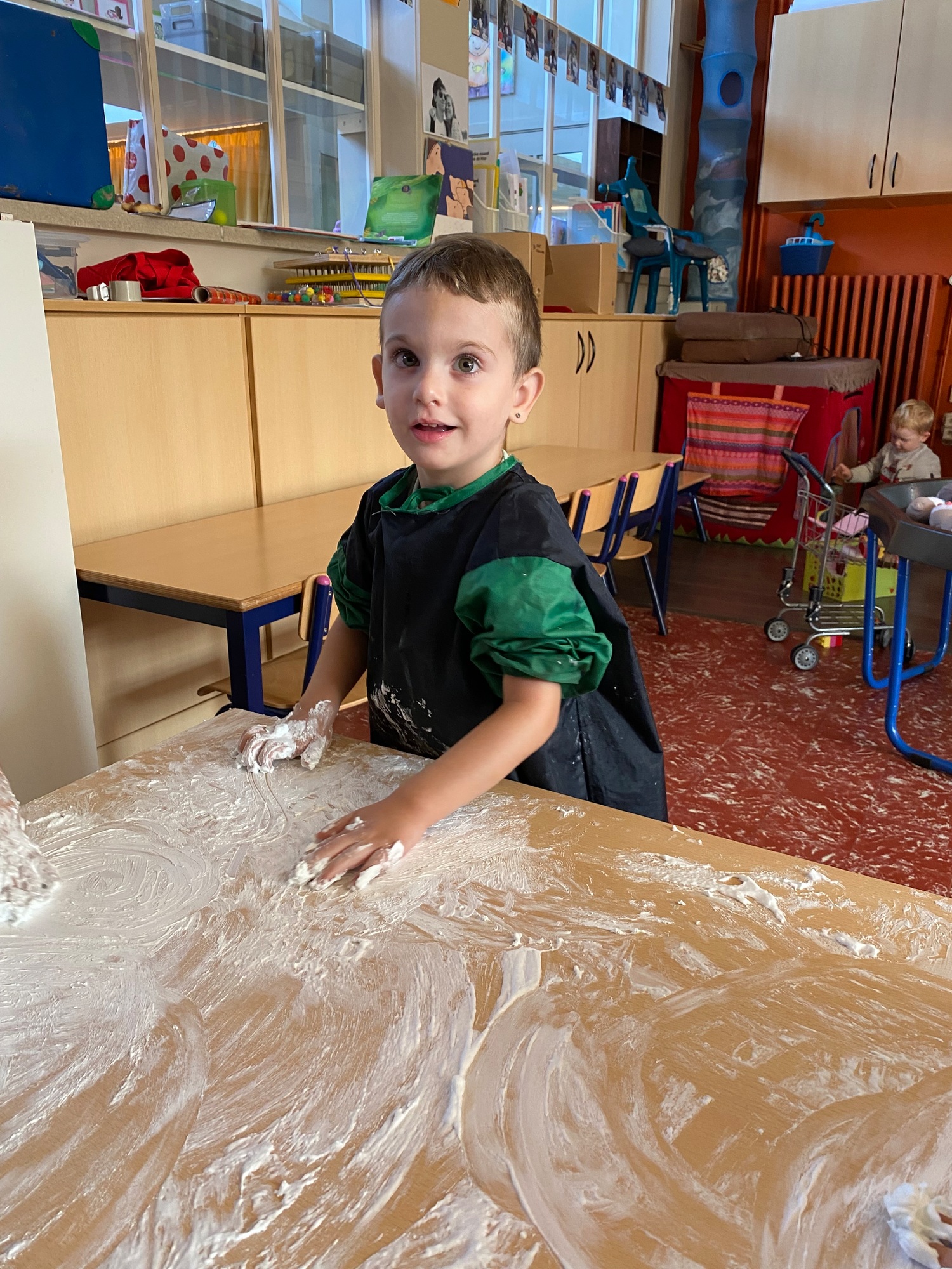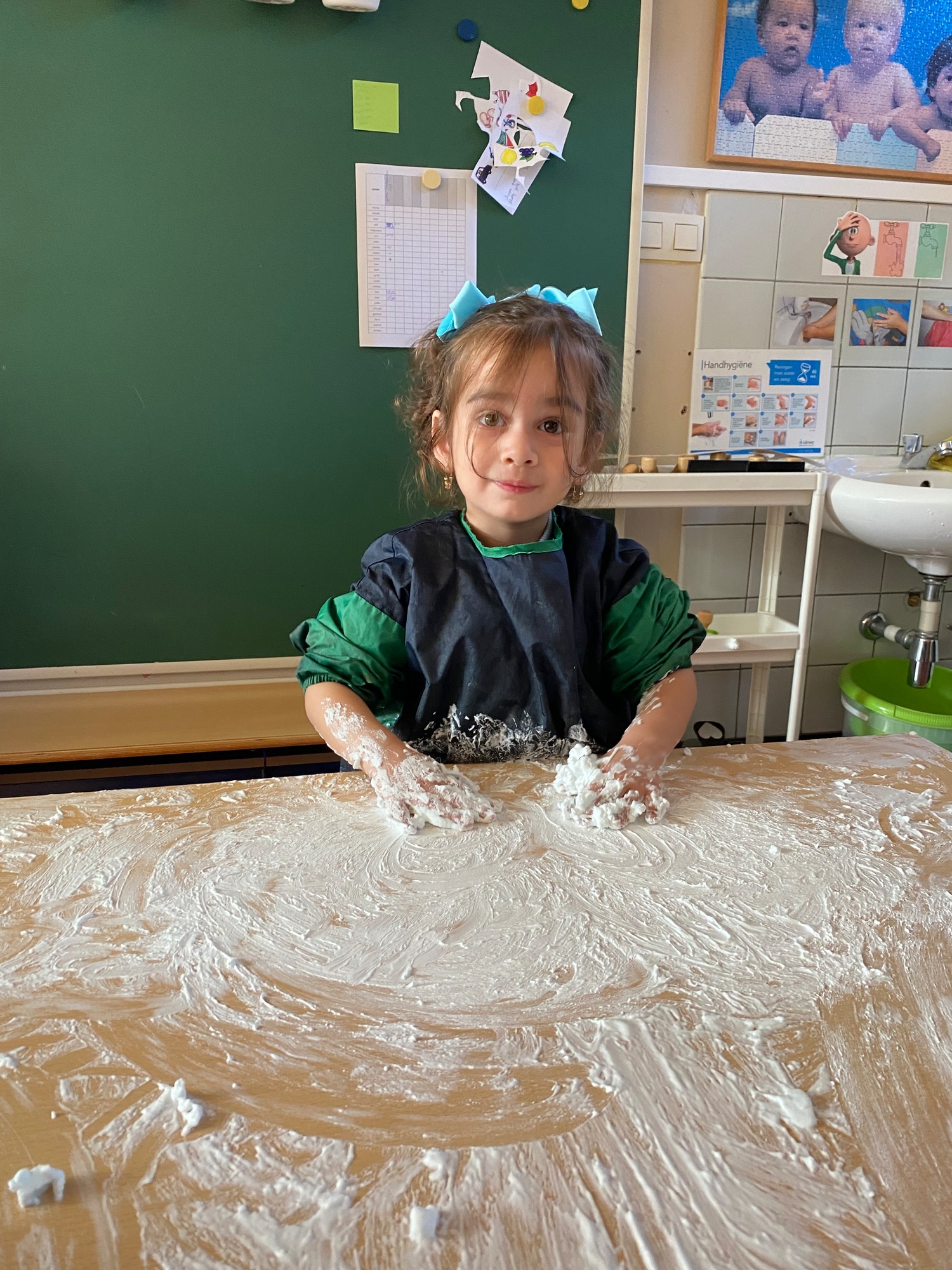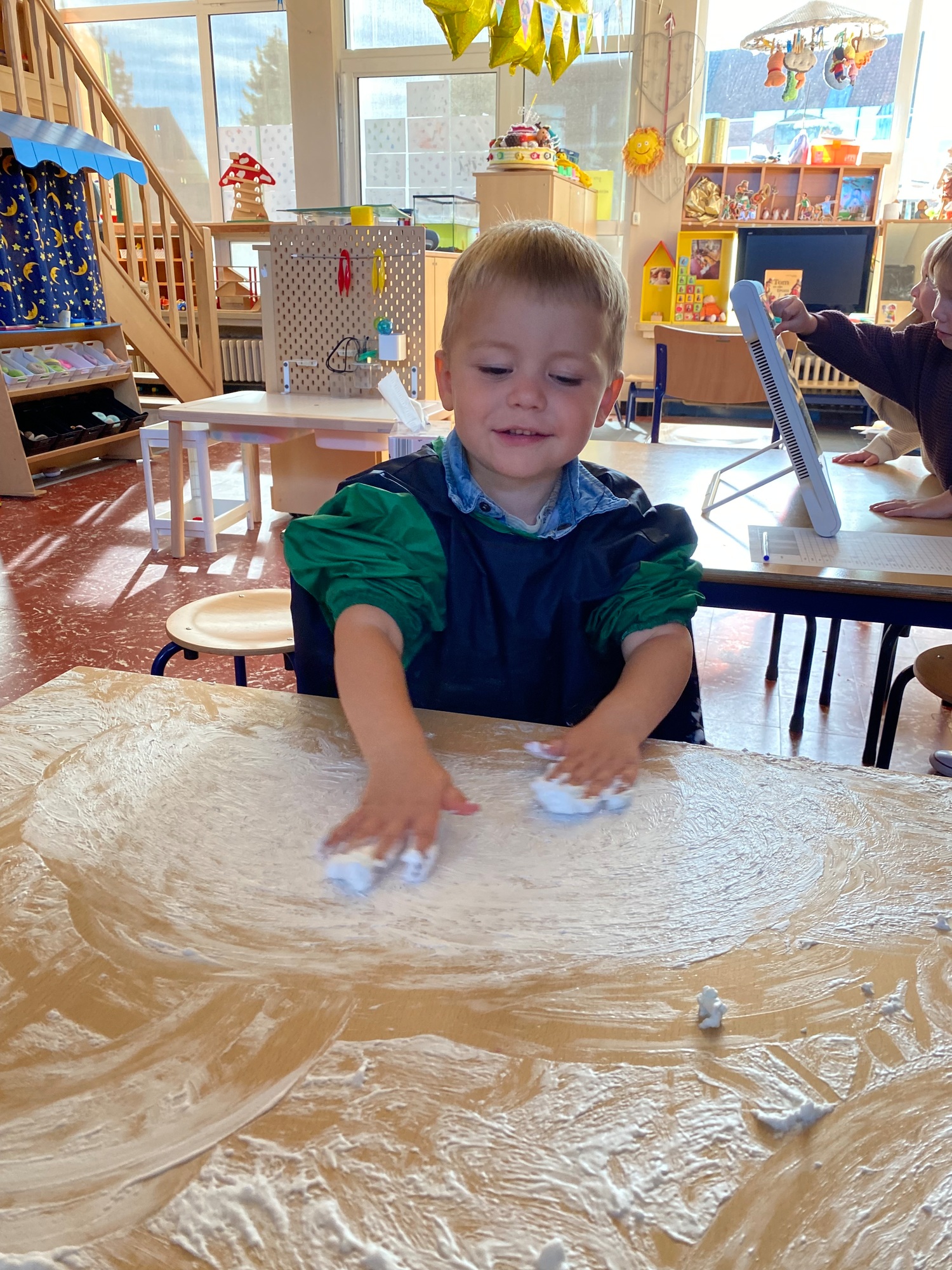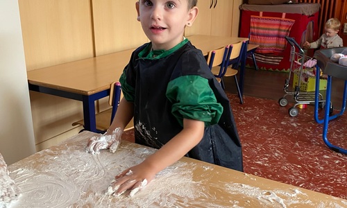 Vandaag maakten we kennis met scheerschuim. Wrijven, tekenen, kneden, ontdekken en genieten.