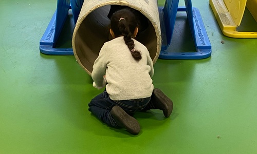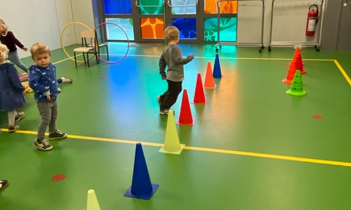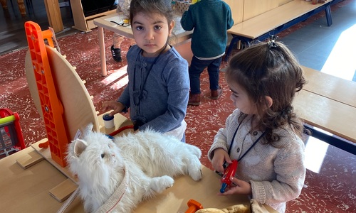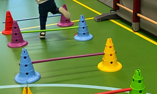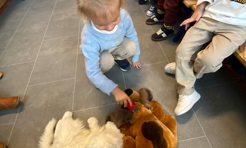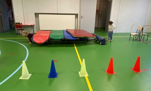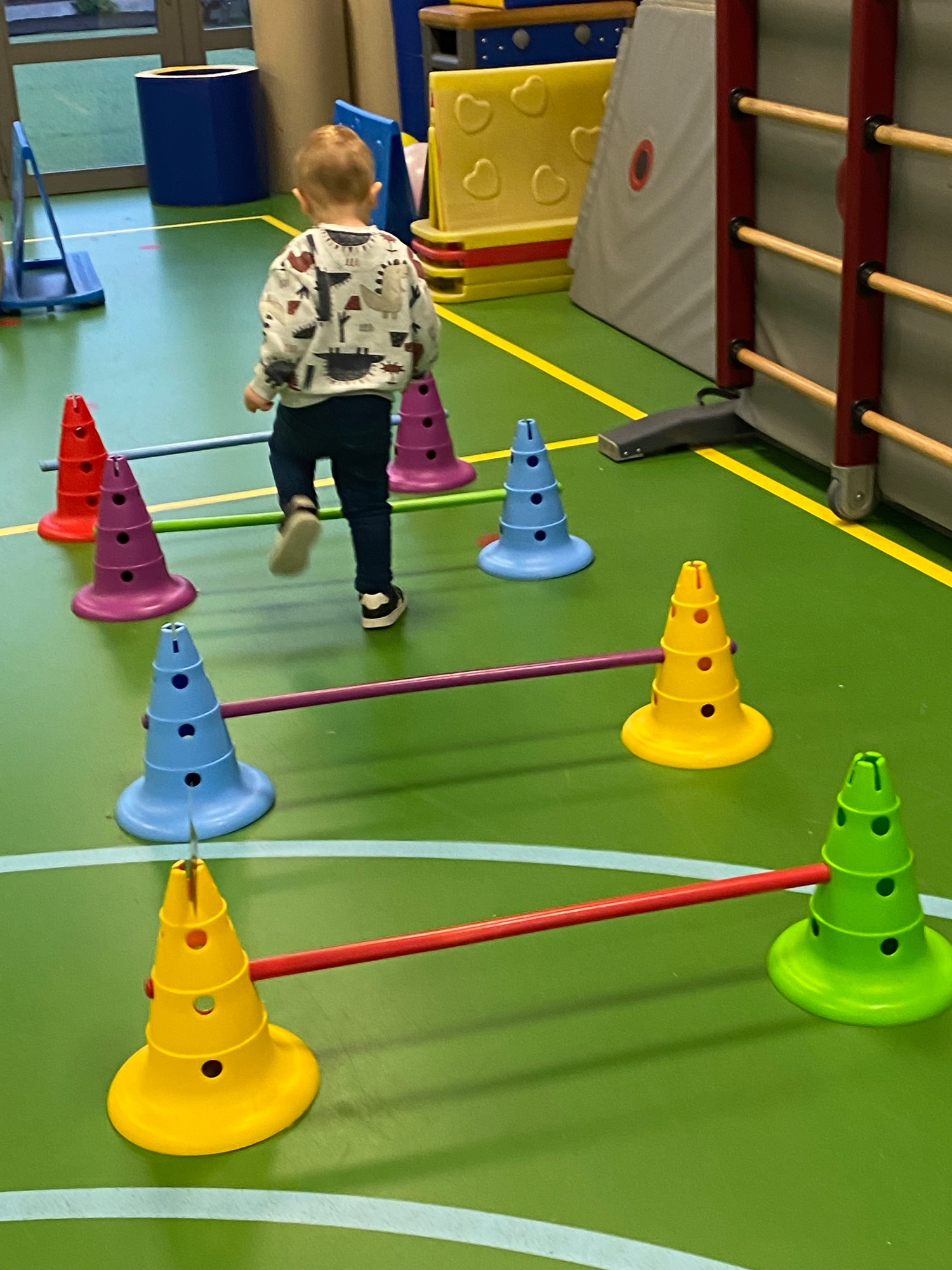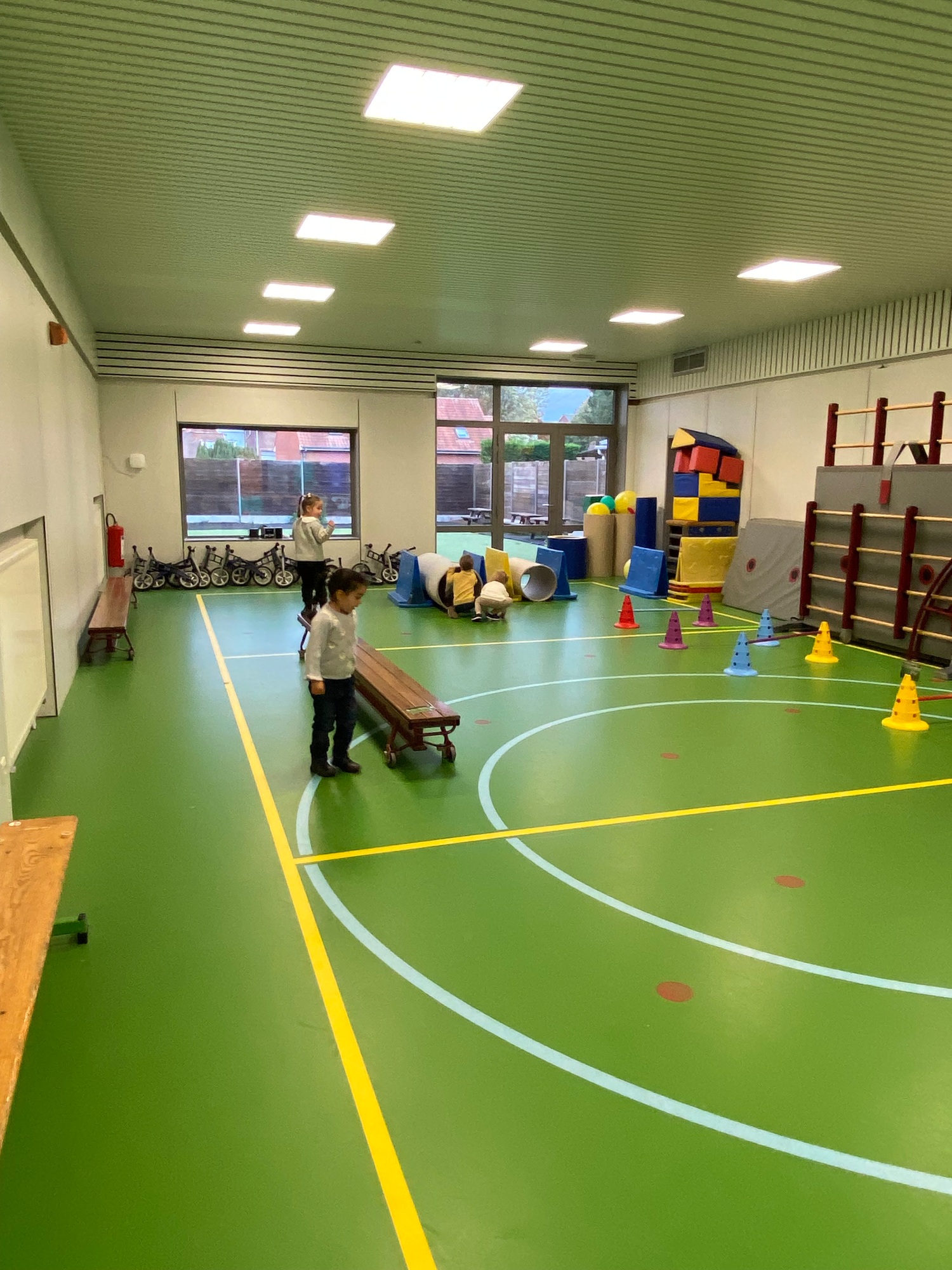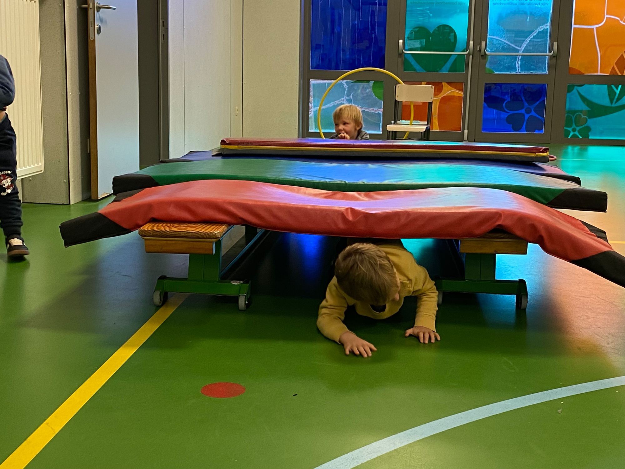 In de gymzaal speelden we de hondenschool waarbij de kleuters allerlei oefeningen moeten uitvoeren.