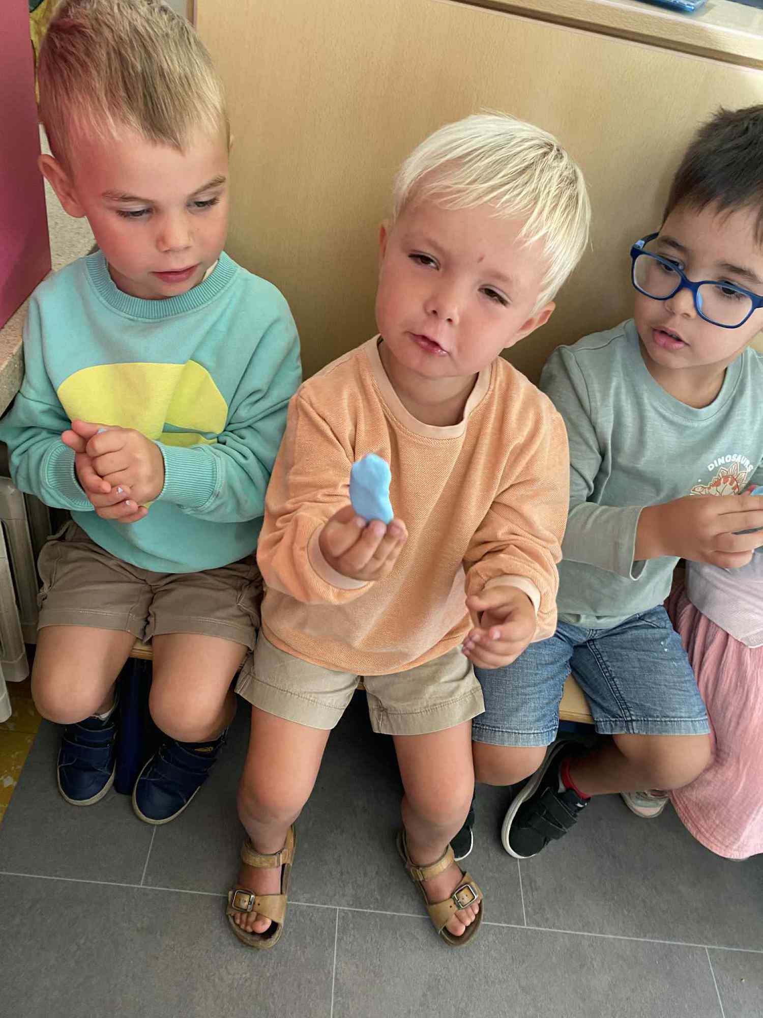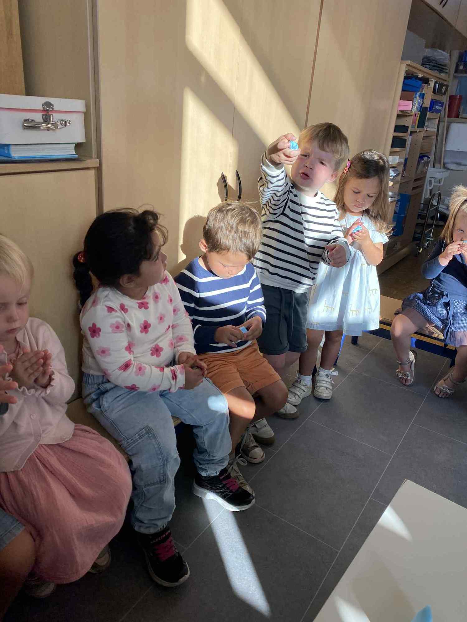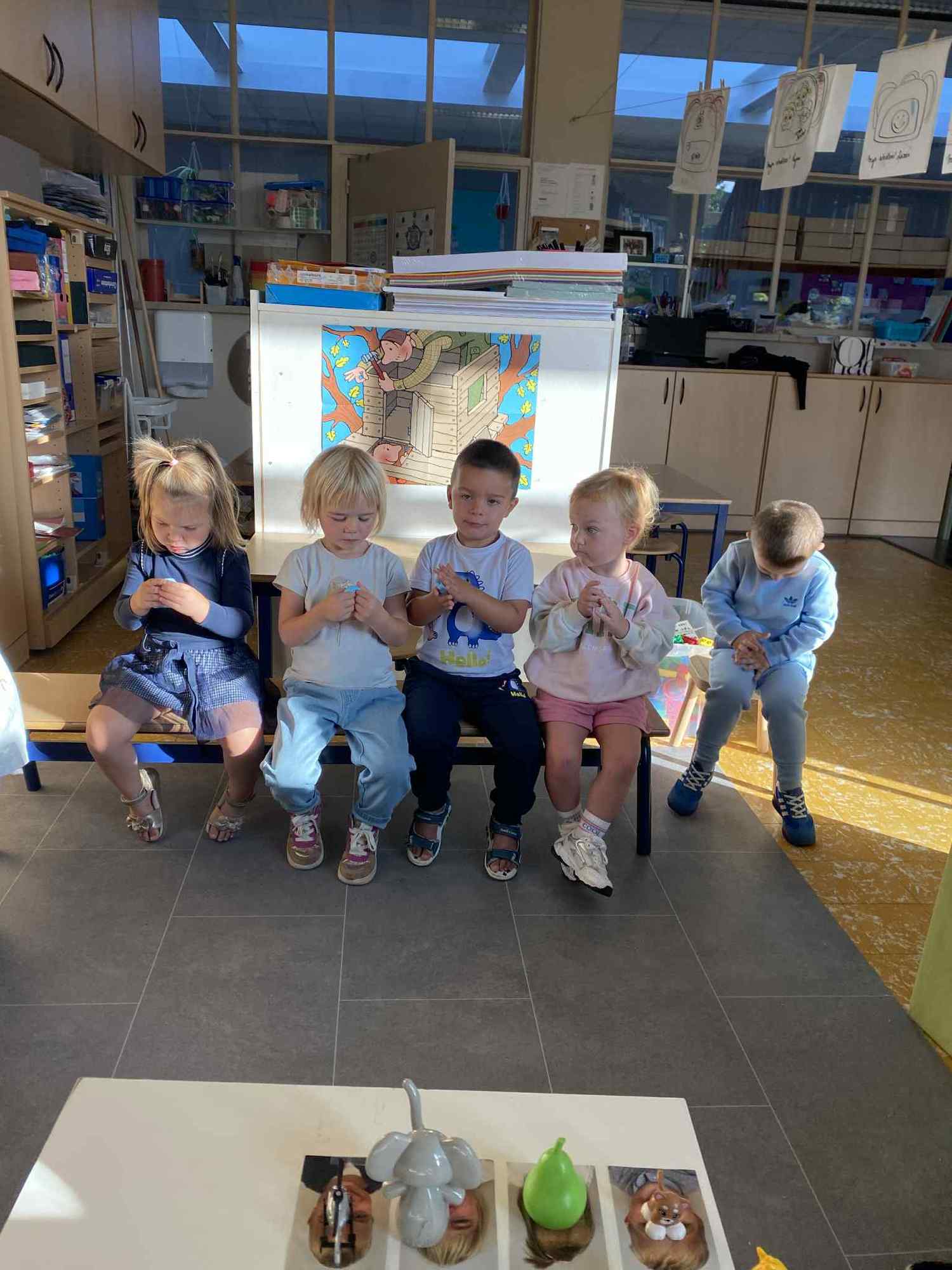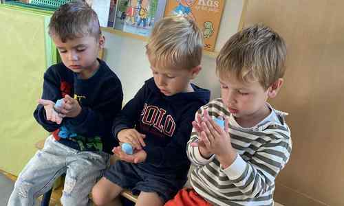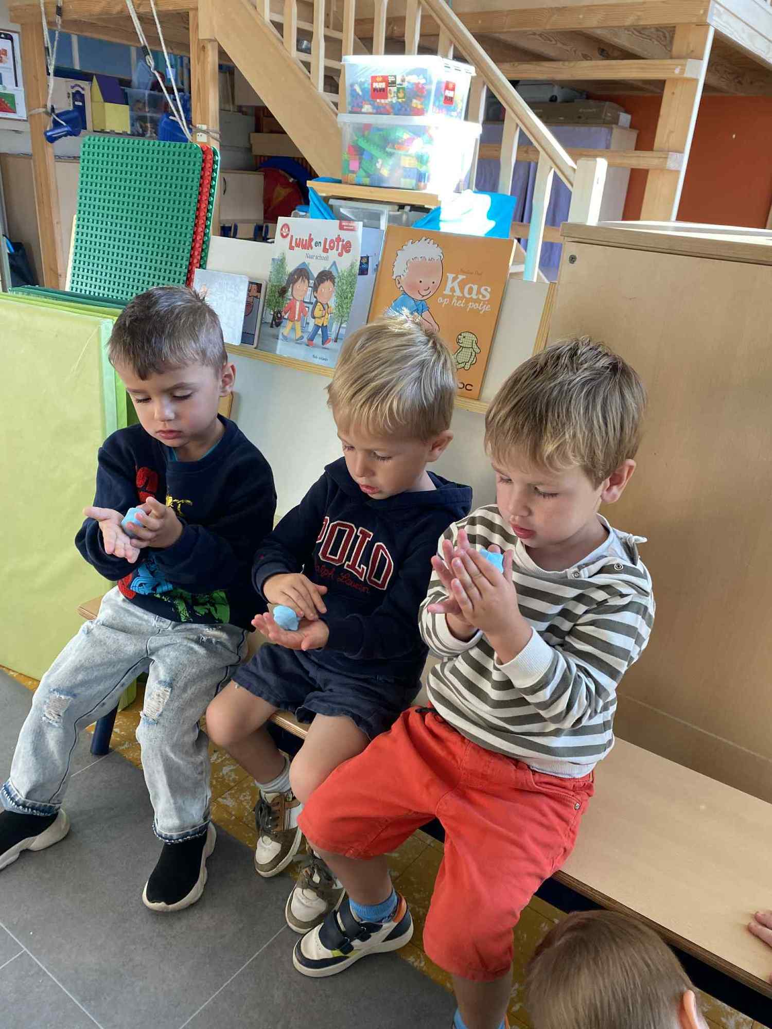alle kleuters gebruiken hun symbooltje als aanwezigheidskalender en we experimenteren met plasticine.