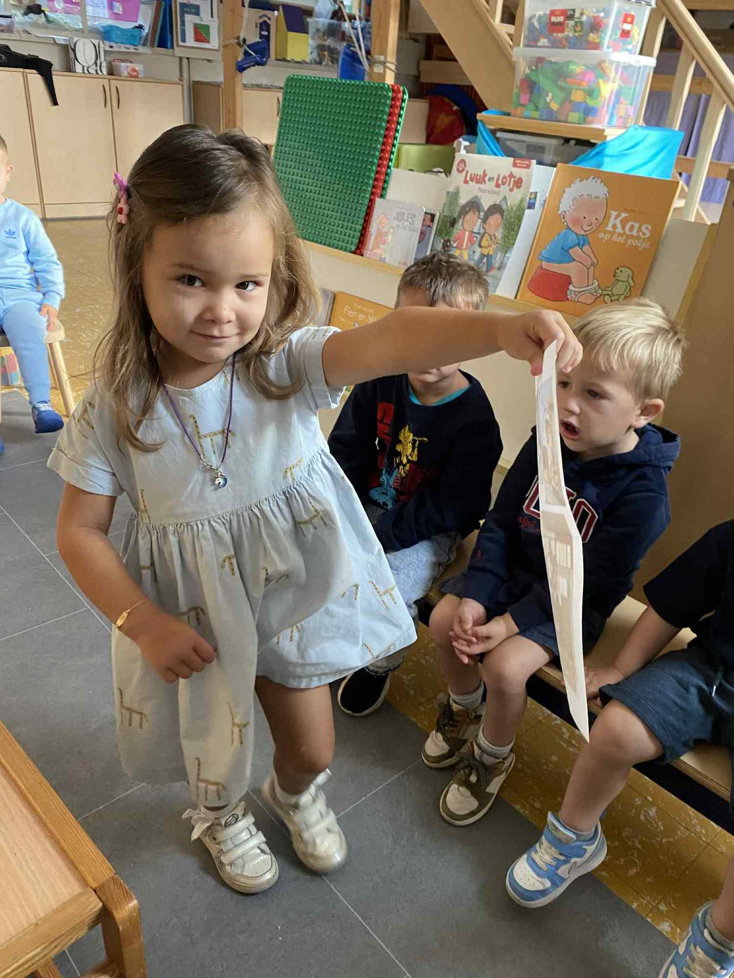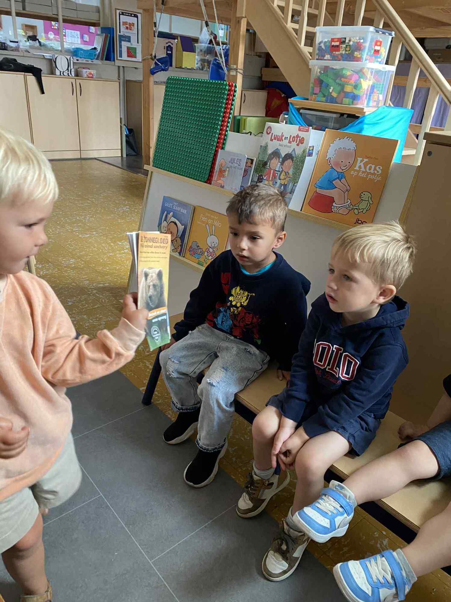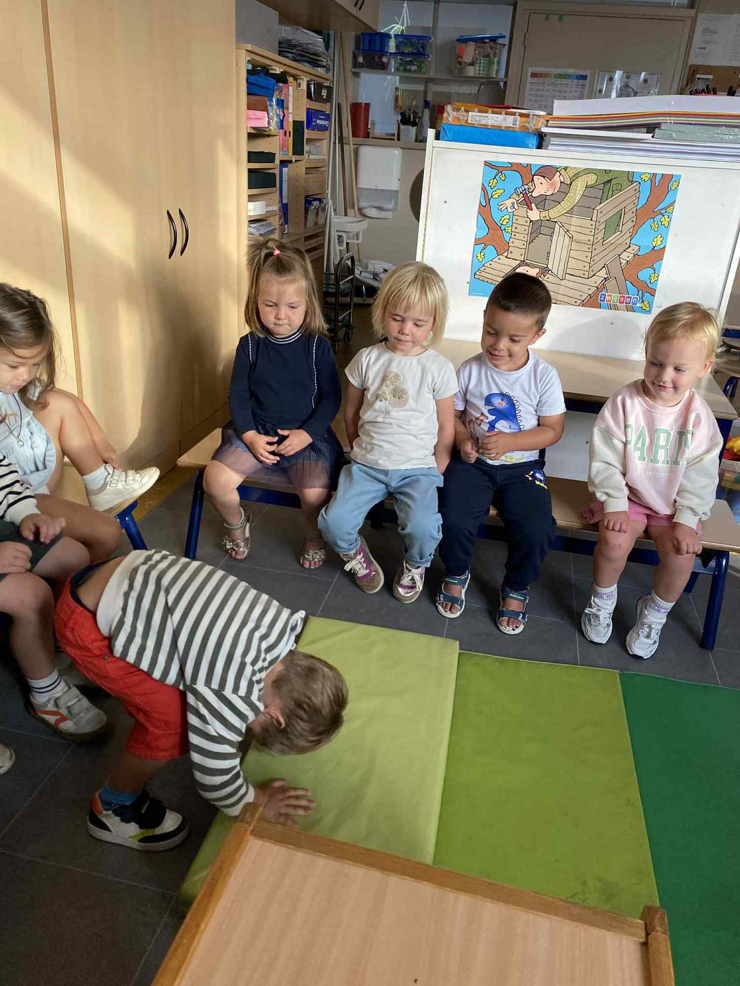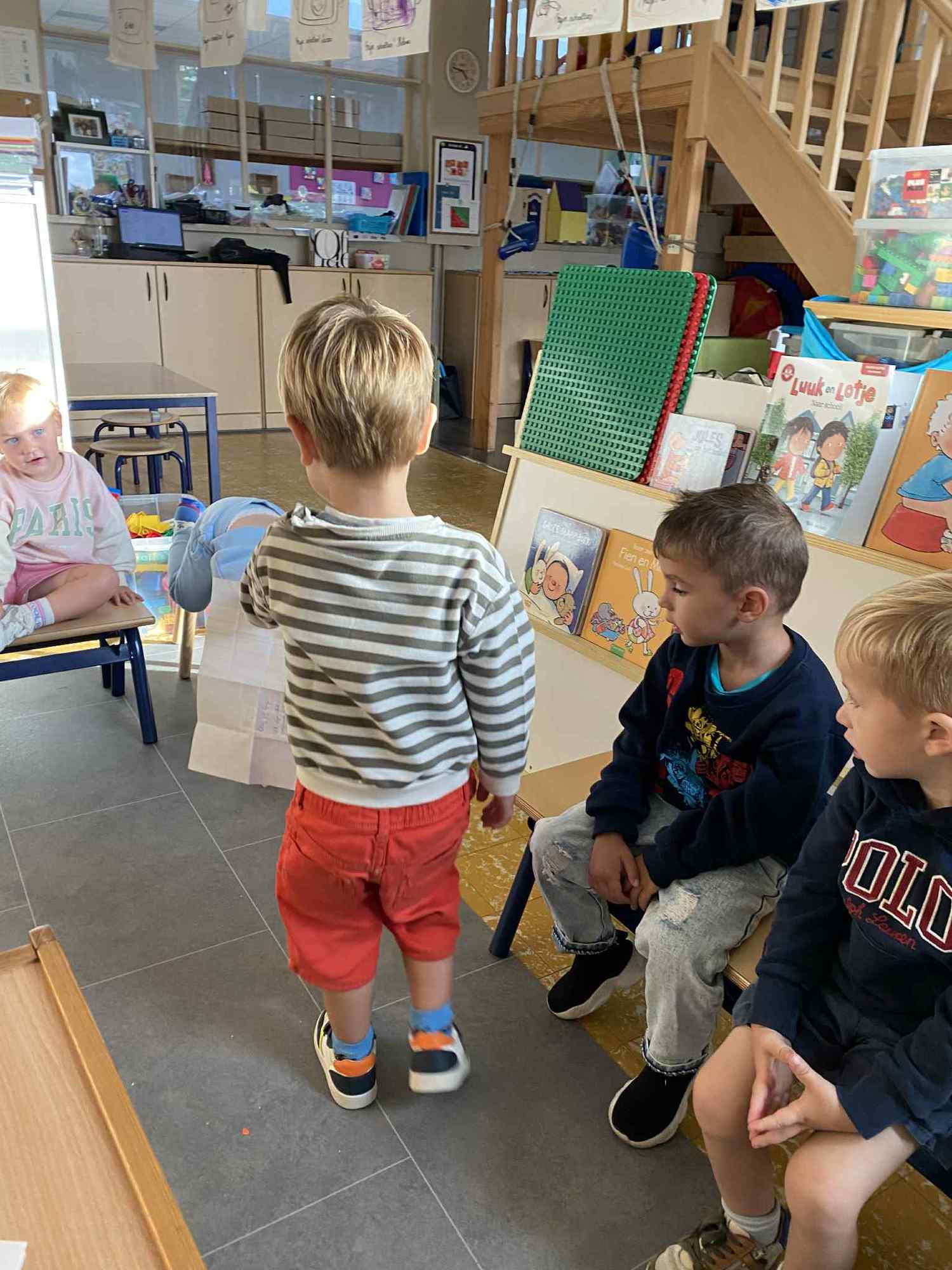 Elke maandag kunnen de kleuters een voorwerp, briefje, foto,.. meebrengen naar de klas van iets wat in het weekend gebeurde. Zo hebben ze een houvast om te vertellen. Maandag leerden we al over de tandarts, de eerste turnlessen, kippen in de tuin, dierentuinbezoekjes en rallywagens!