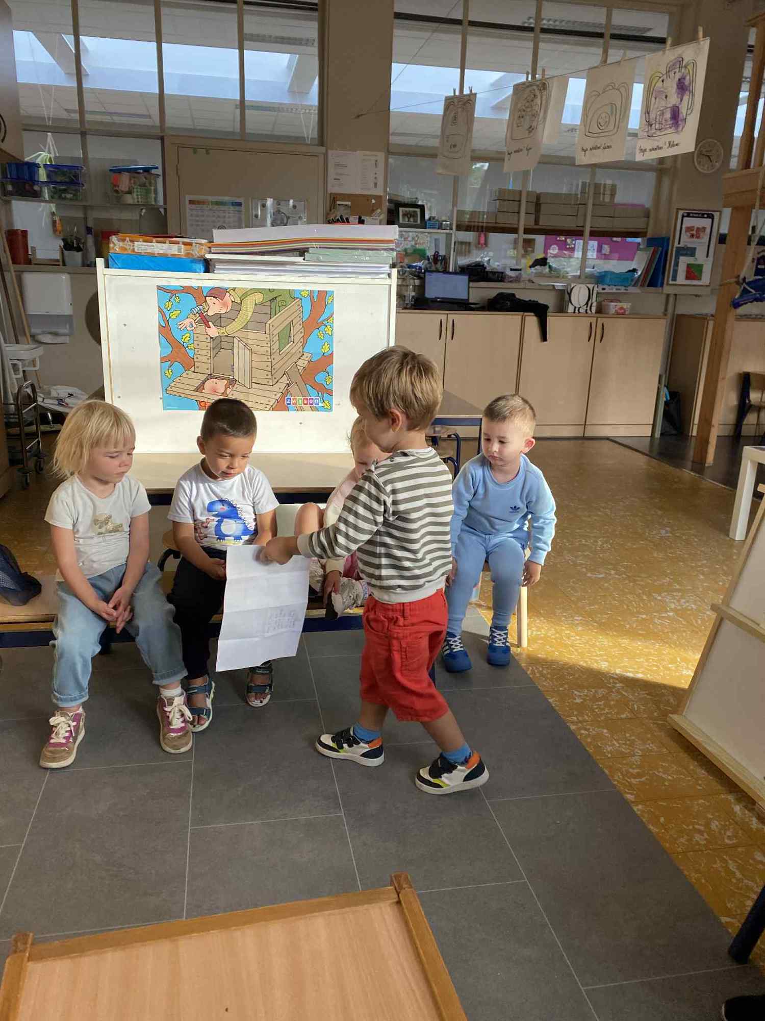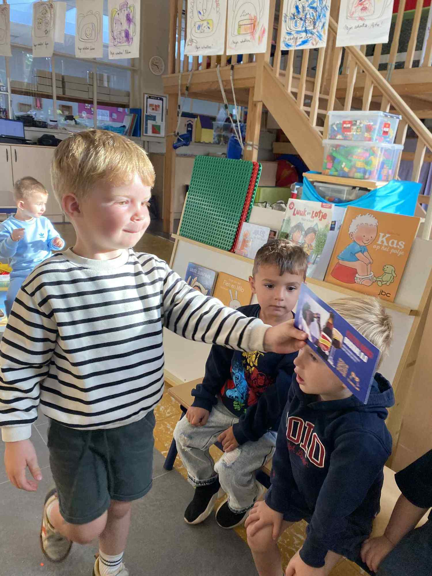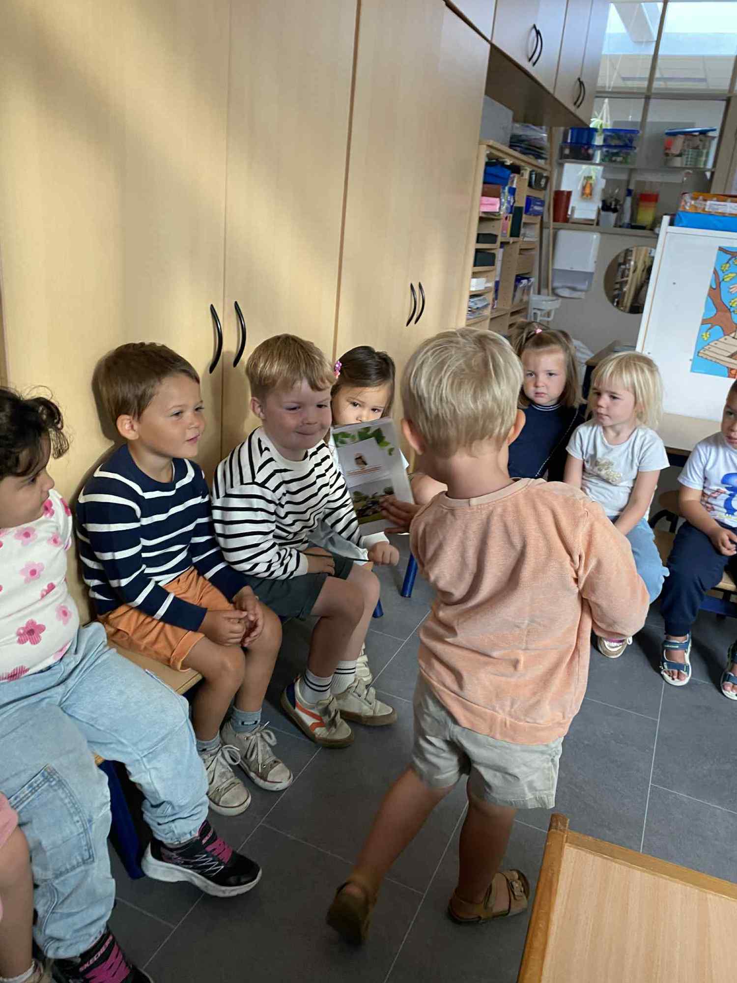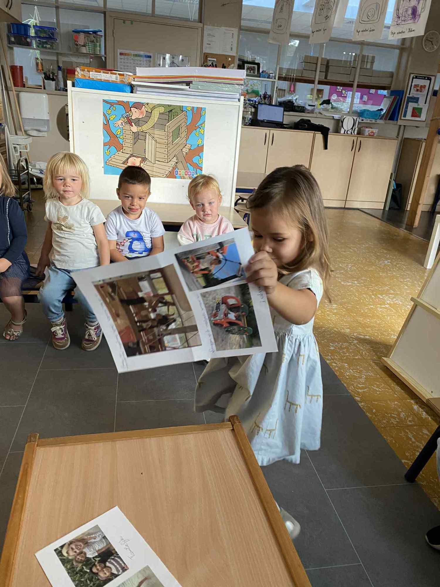 Elke maandag kunnen de kleuters een voorwerp, briefje, foto,.. meebrengen naar de klas van iets wat in het weekend gebeurde. Zo hebben ze een houvast om te vertellen. Maandag leerden we al over de tandarts, de eerste turnlessen, kippen in de tuin, dierentuinbezoekjes en rallywagens!