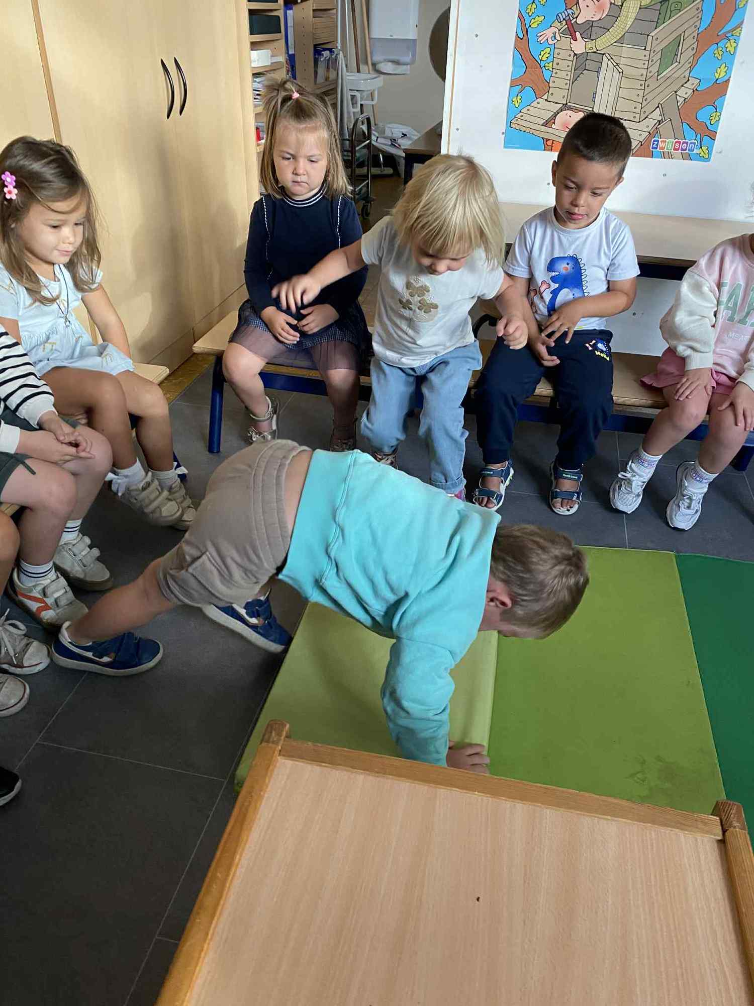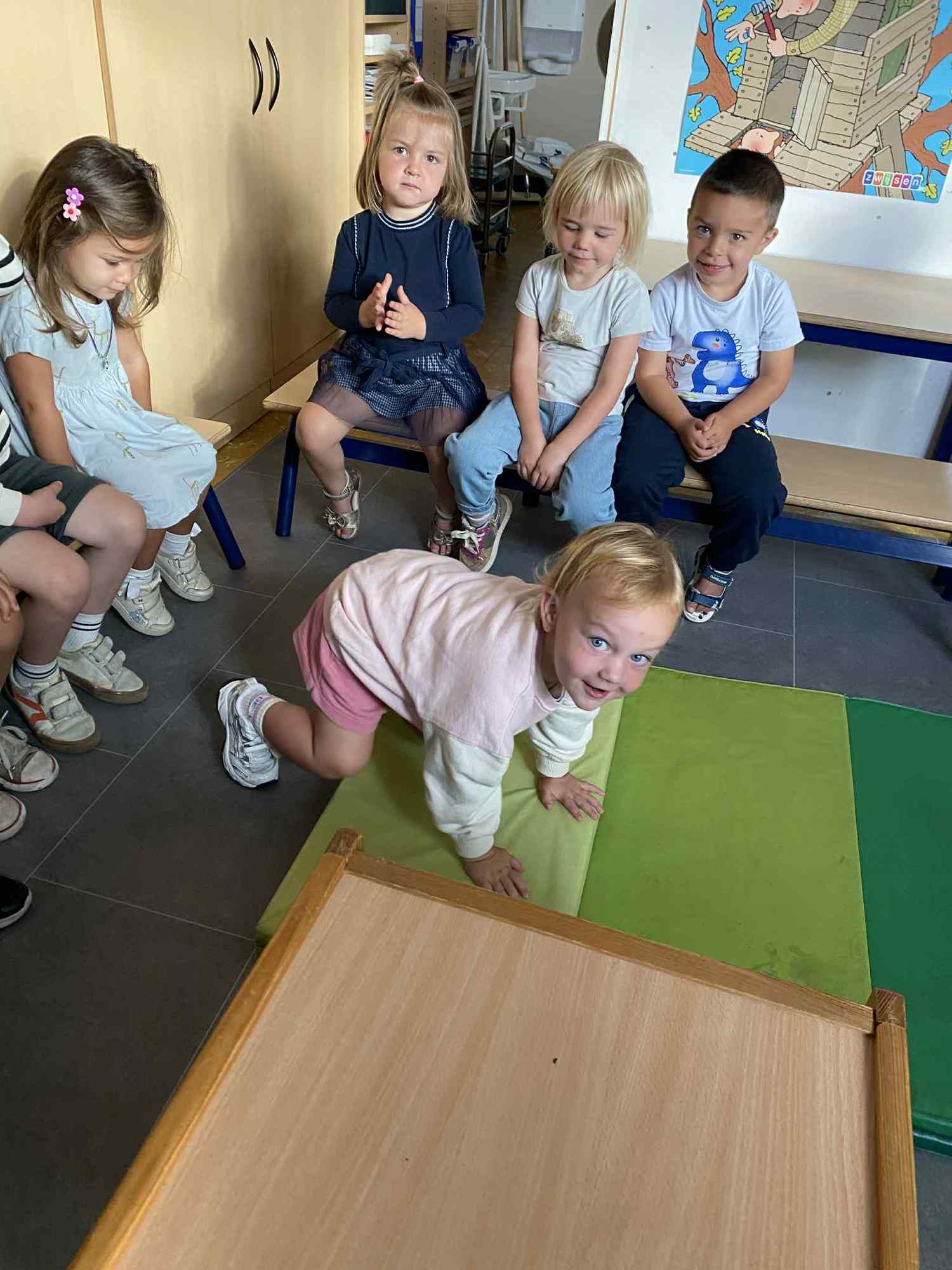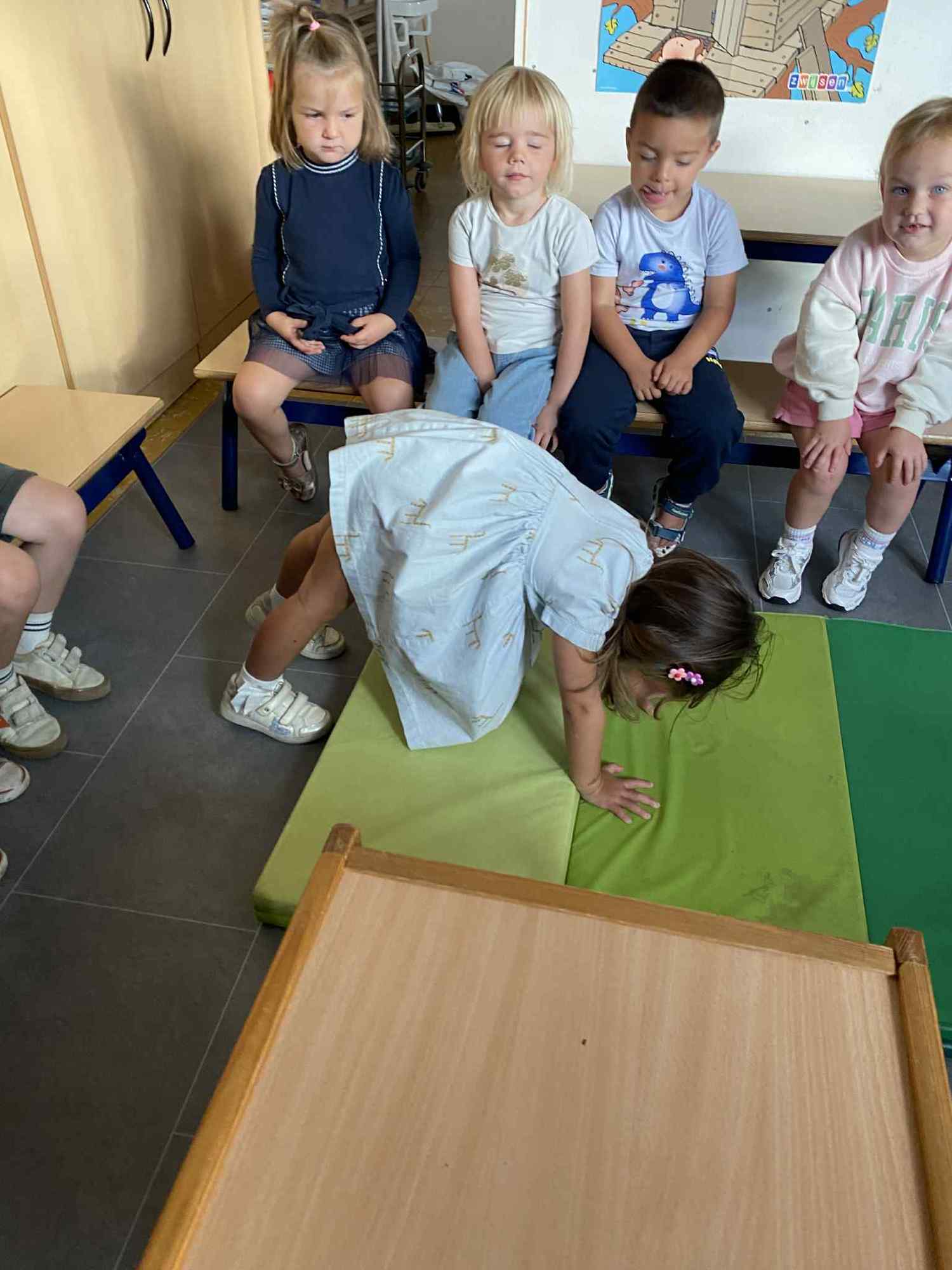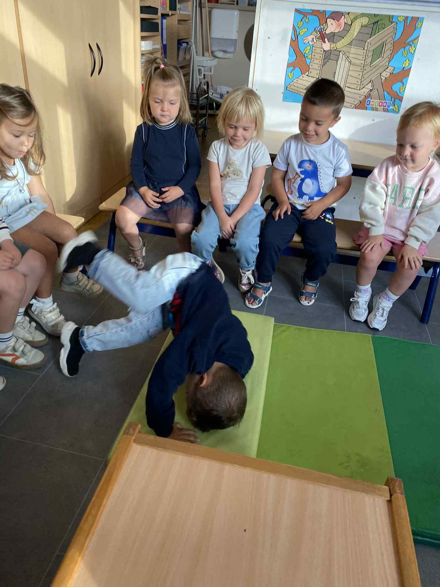 Elke maandag kunnen de kleuters een voorwerp, briefje, foto,.. meebrengen naar de klas van iets wat in het weekend gebeurde. Zo hebben ze een houvast om te vertellen. Maandag leerden we al over de tandarts, de eerste turnlessen, kippen in de tuin, dierentuinbezoekjes en rallywagens!