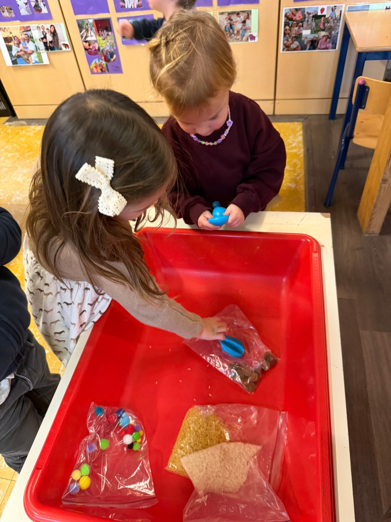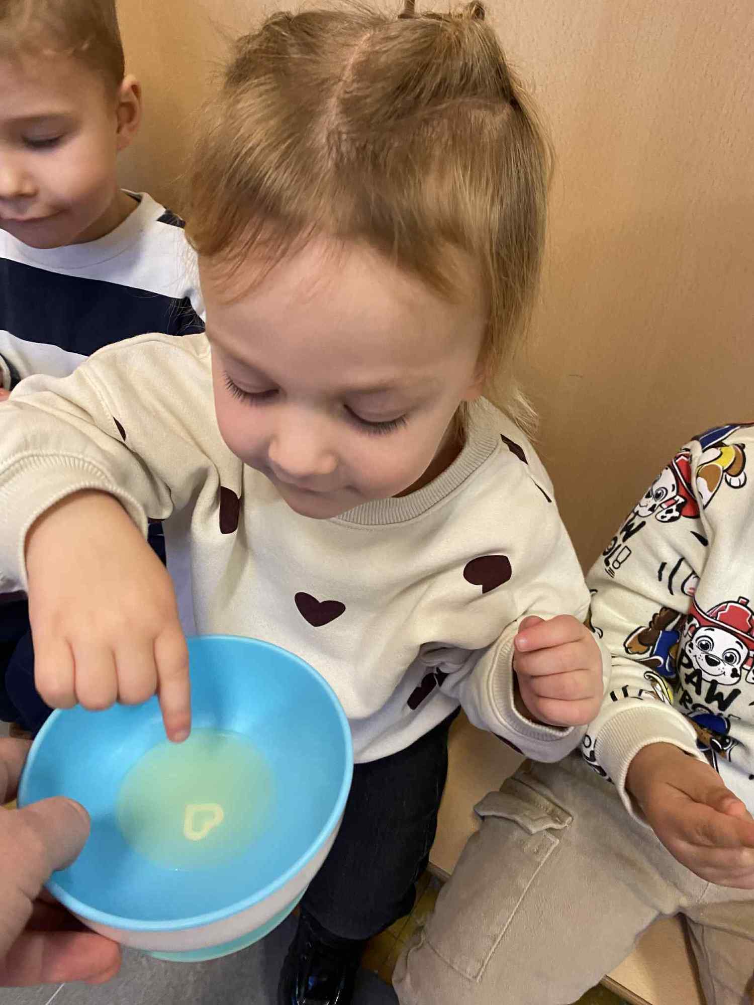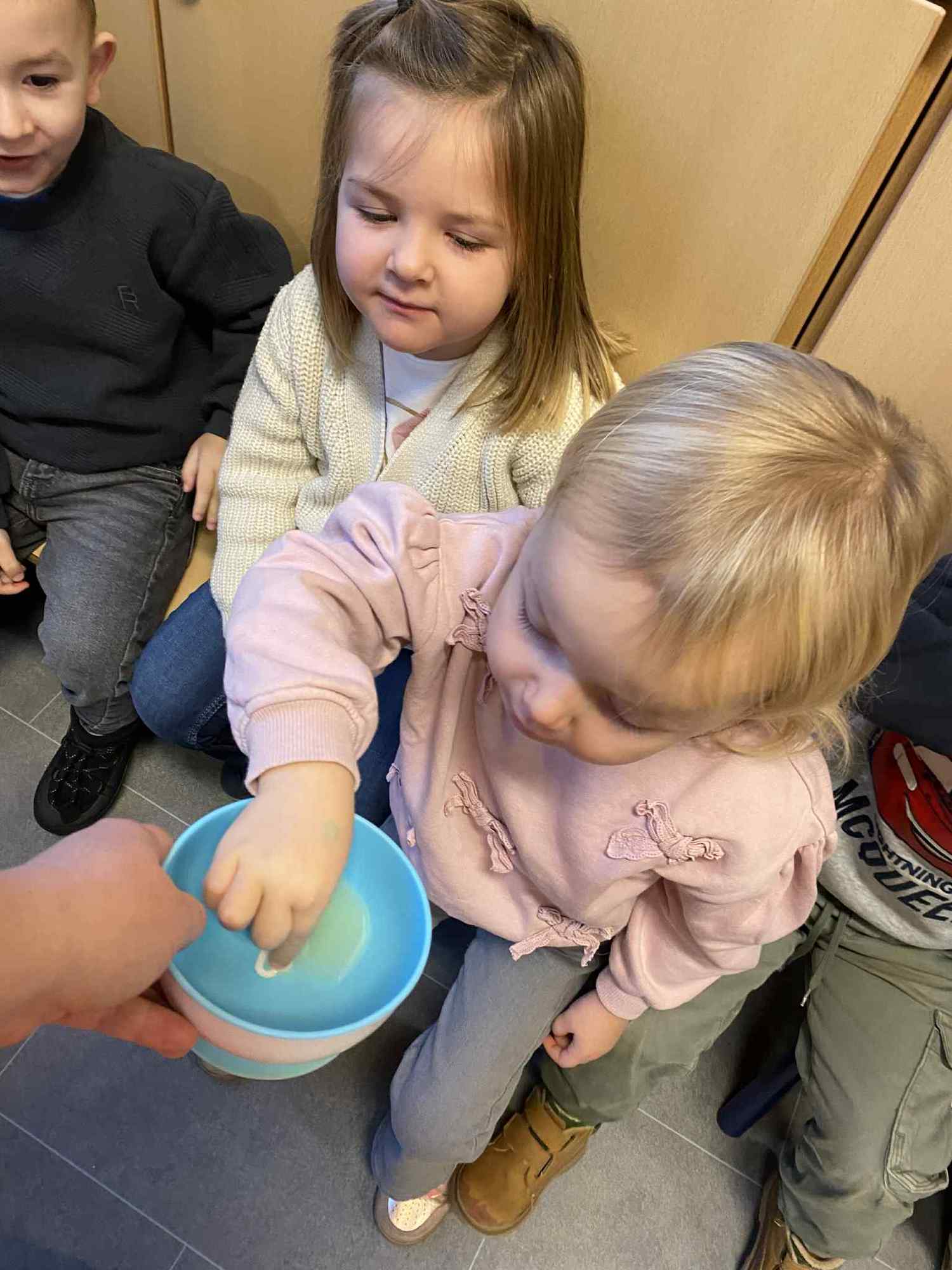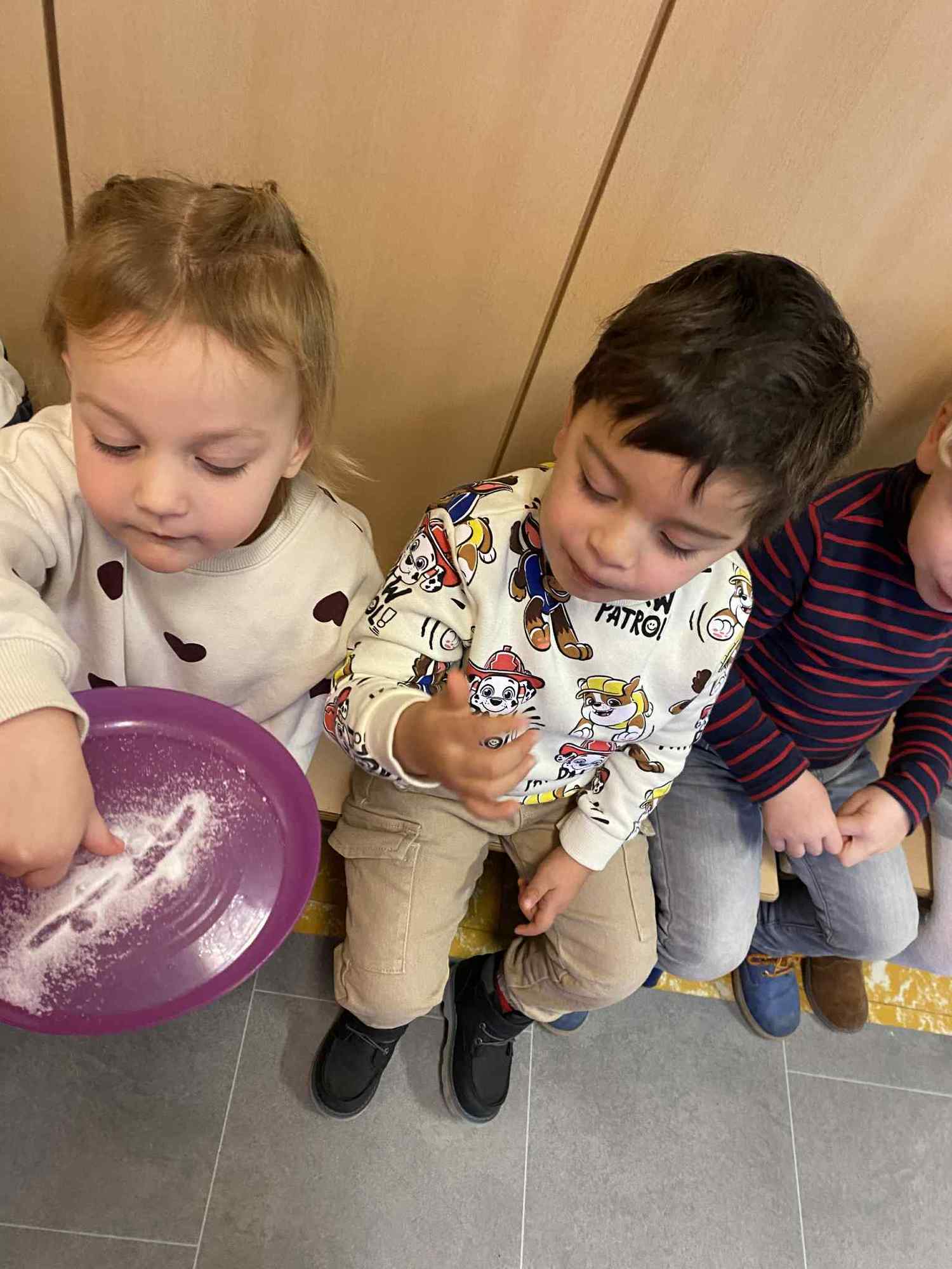 Voelen met handen en voeten, kijken met onze ogen, luisteren met onze oren, ruiken met onze neus en proeven! Wat ruikt lekker? Wat vind ik lekker en wat lust ik niet. We tellen tot aan 3!