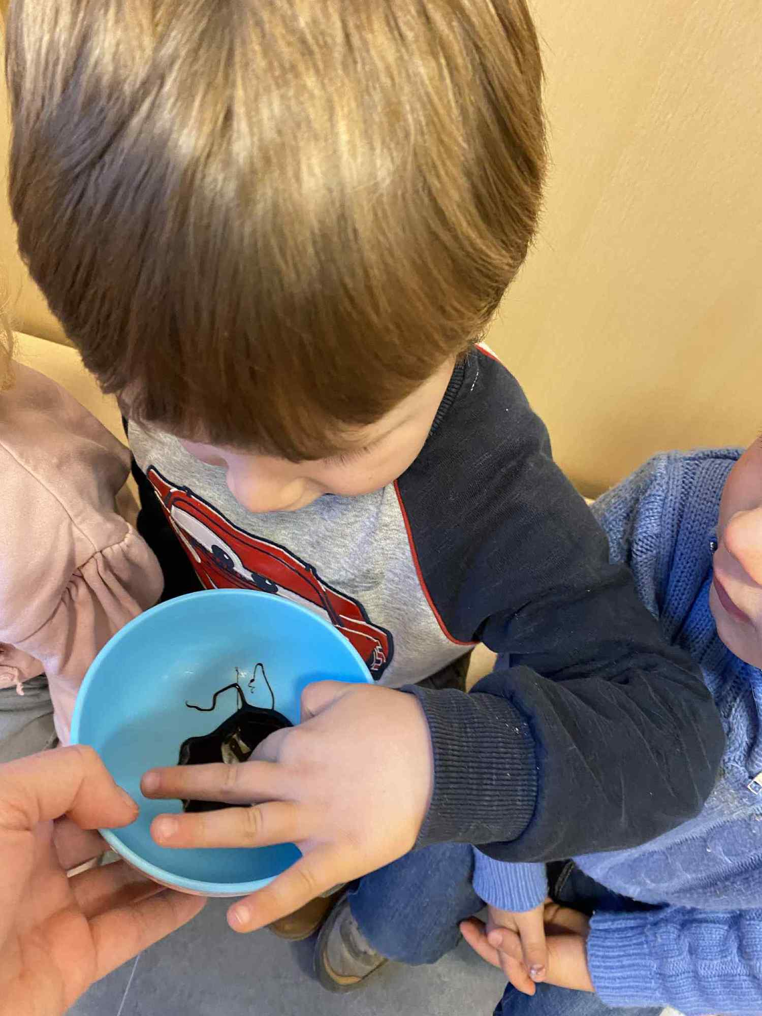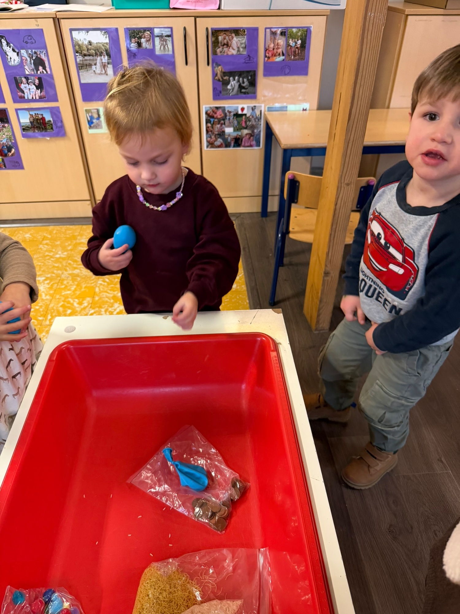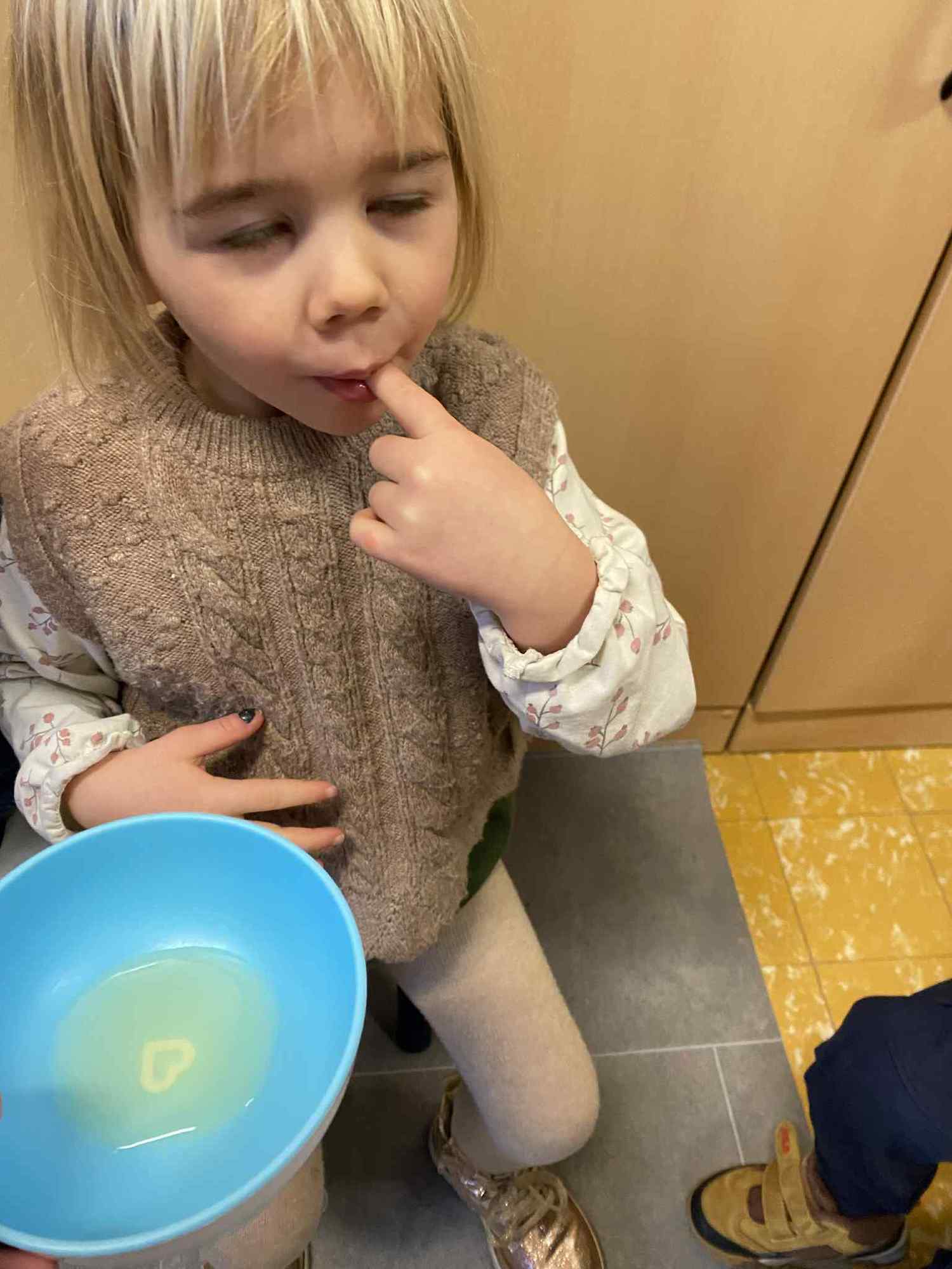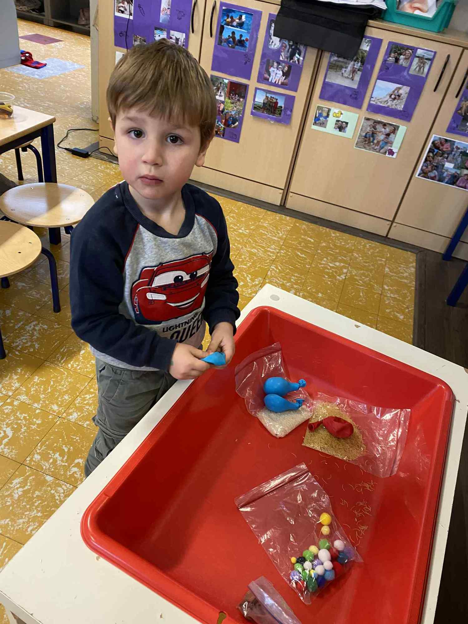 Voelen met handen en voeten, kijken met onze ogen, luisteren met onze oren, ruiken met onze neus en proeven! Wat ruikt lekker? Wat vind ik lekker en wat lust ik niet. We tellen tot aan 3!