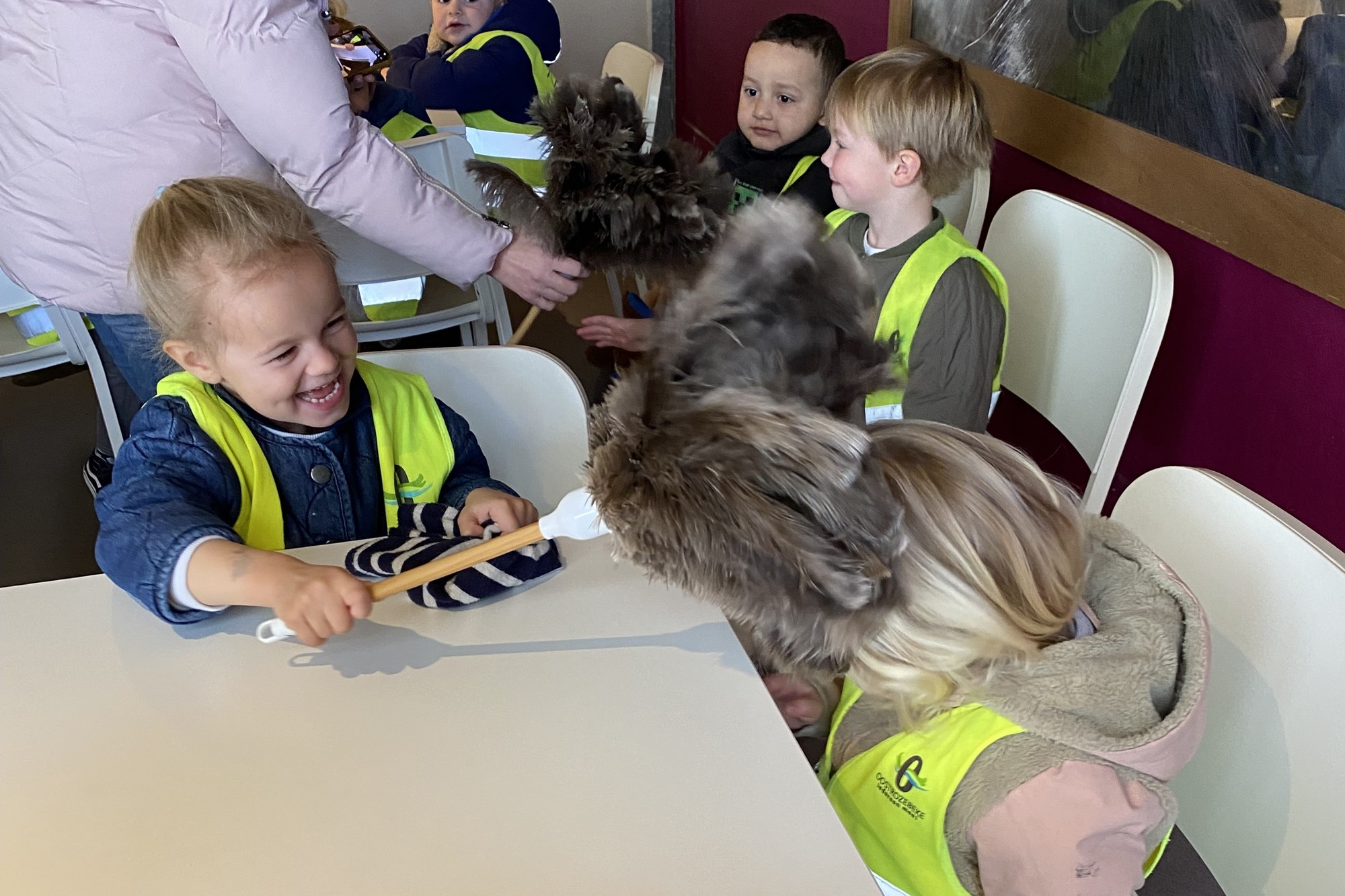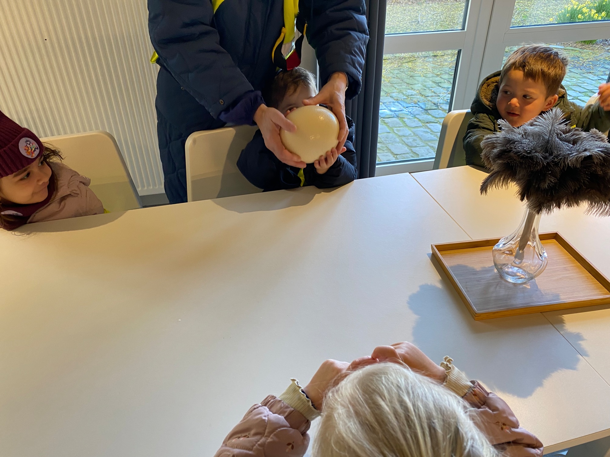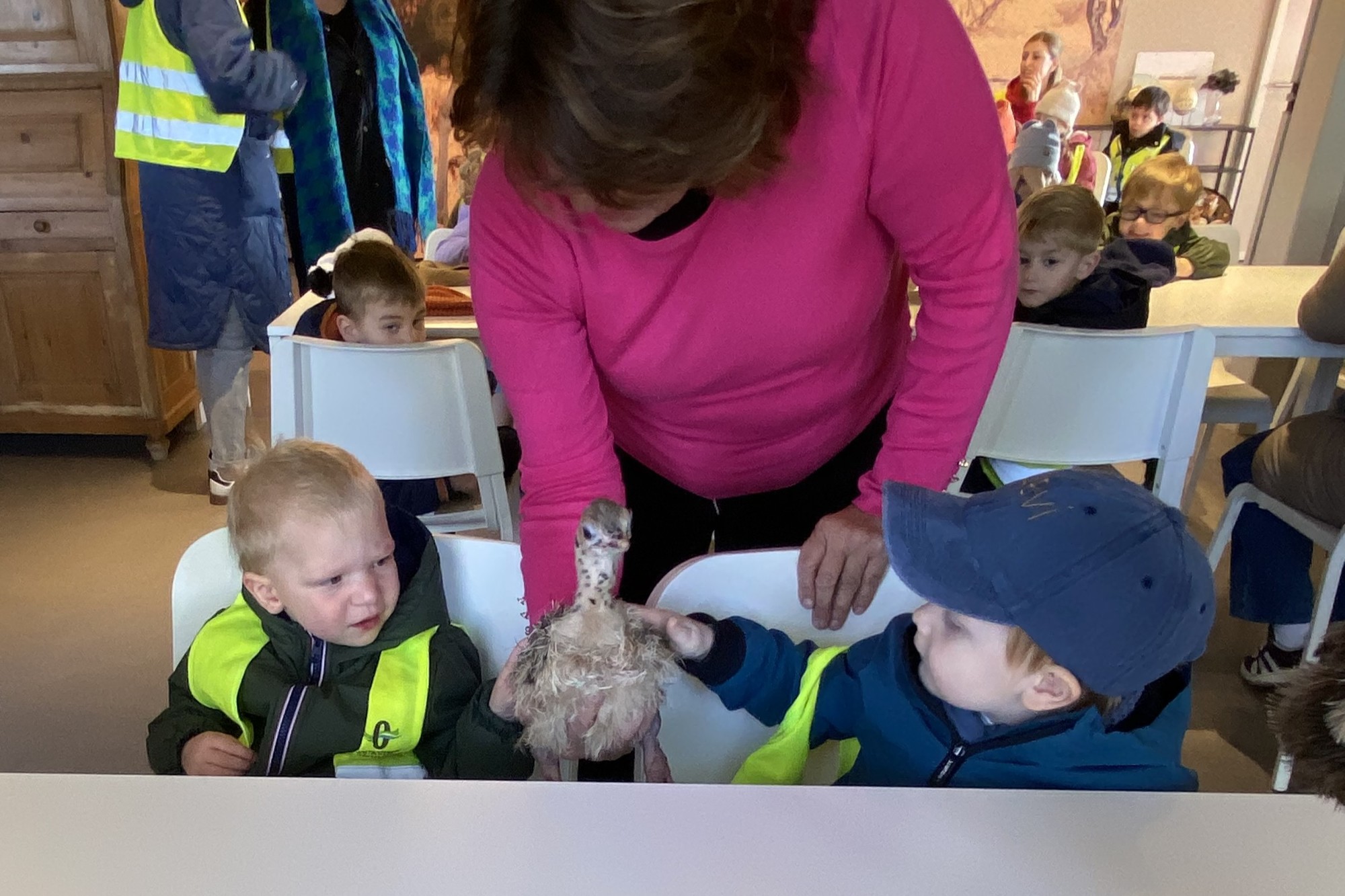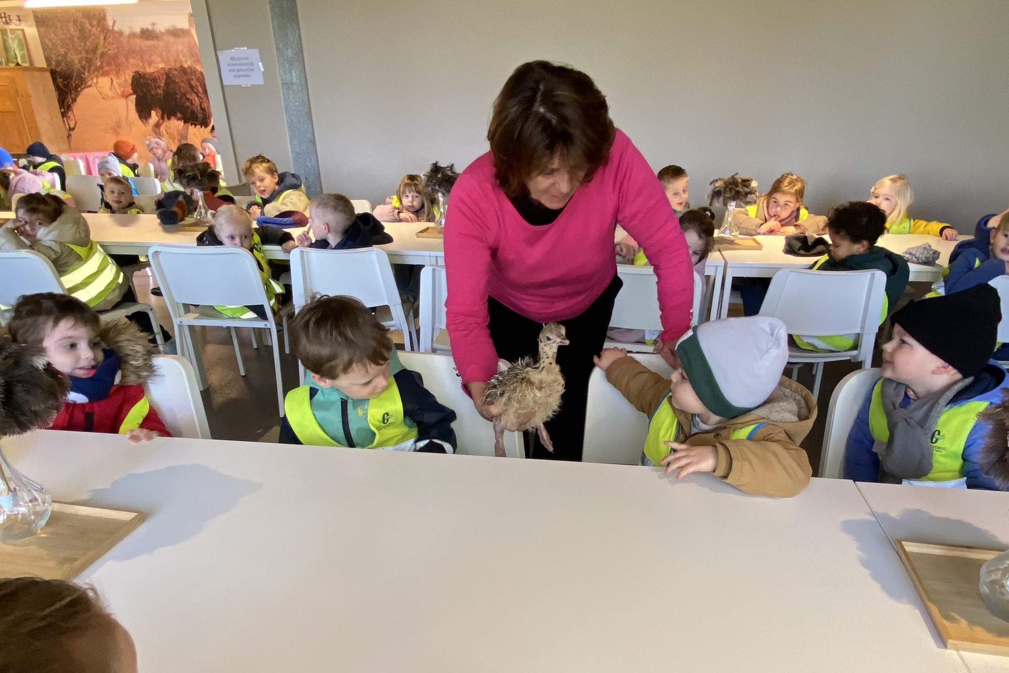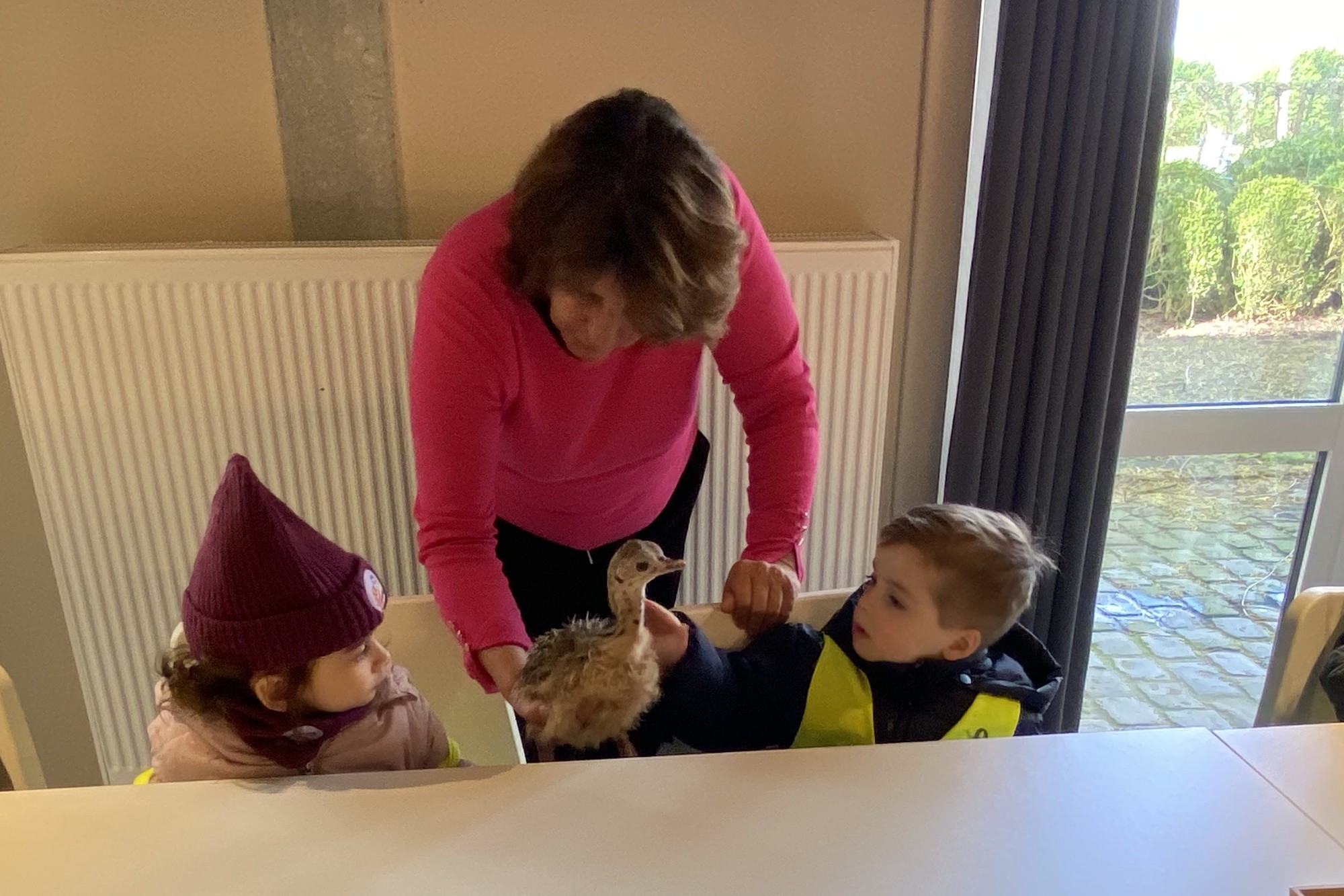 Een ei wegen, een kuikentje strelen, elkaar afstoffen, de grote dieren bekijken en een stukje cake eten...het hoort er allemaal bij