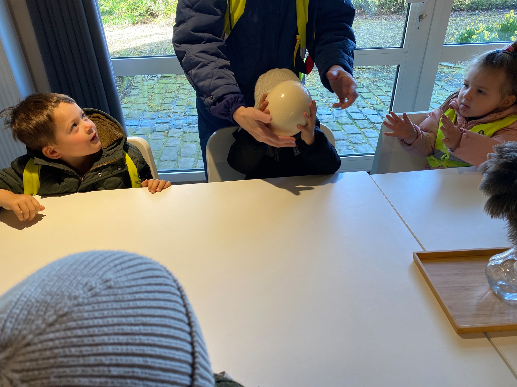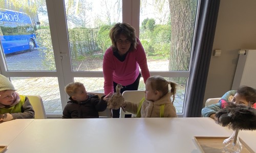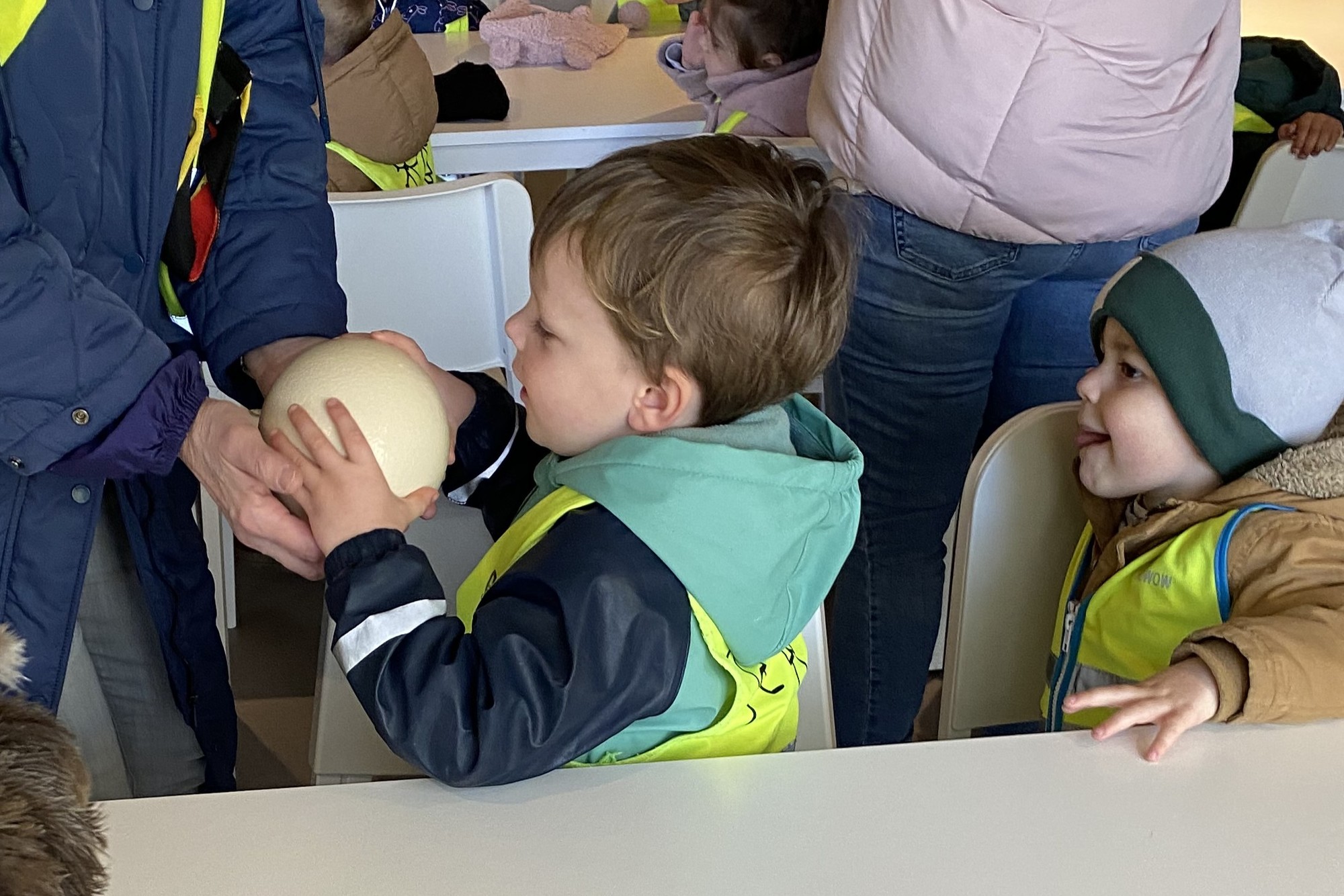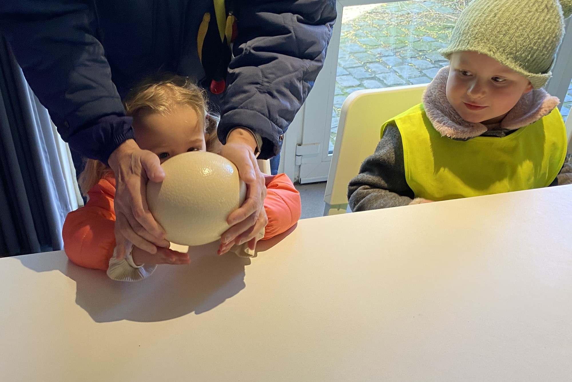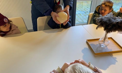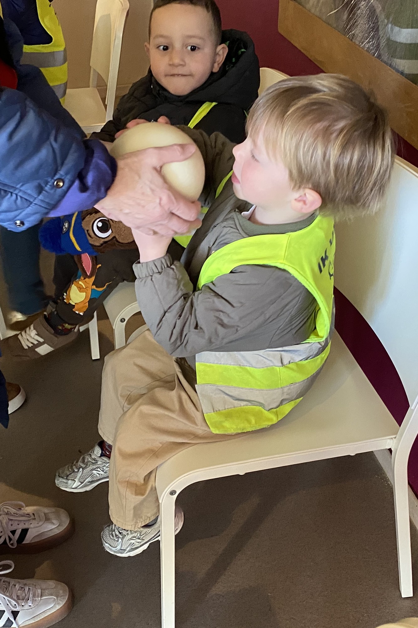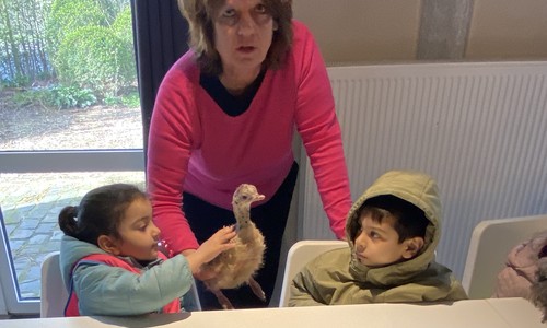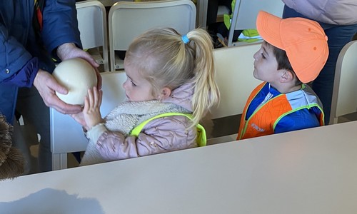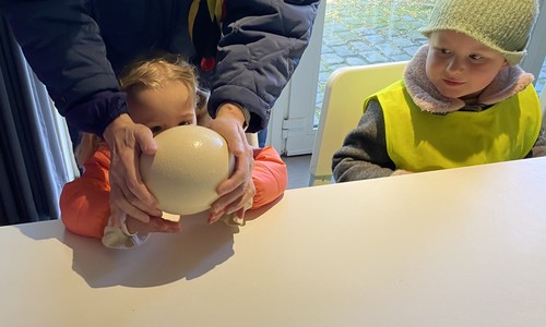 Een ei wegen, een kuikentje strelen, elkaar afstoffen, de grote dieren bekijken en een stukje cake eten...het hoort er allemaal bij