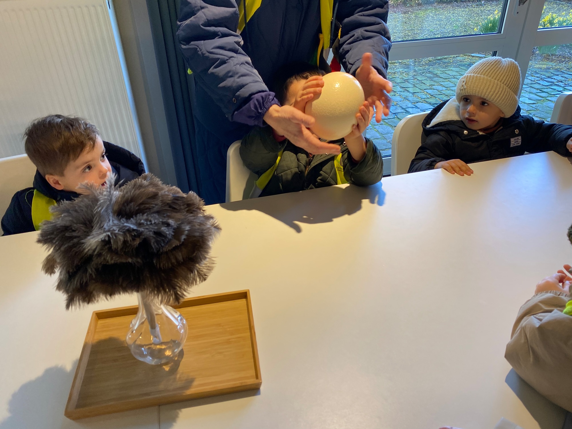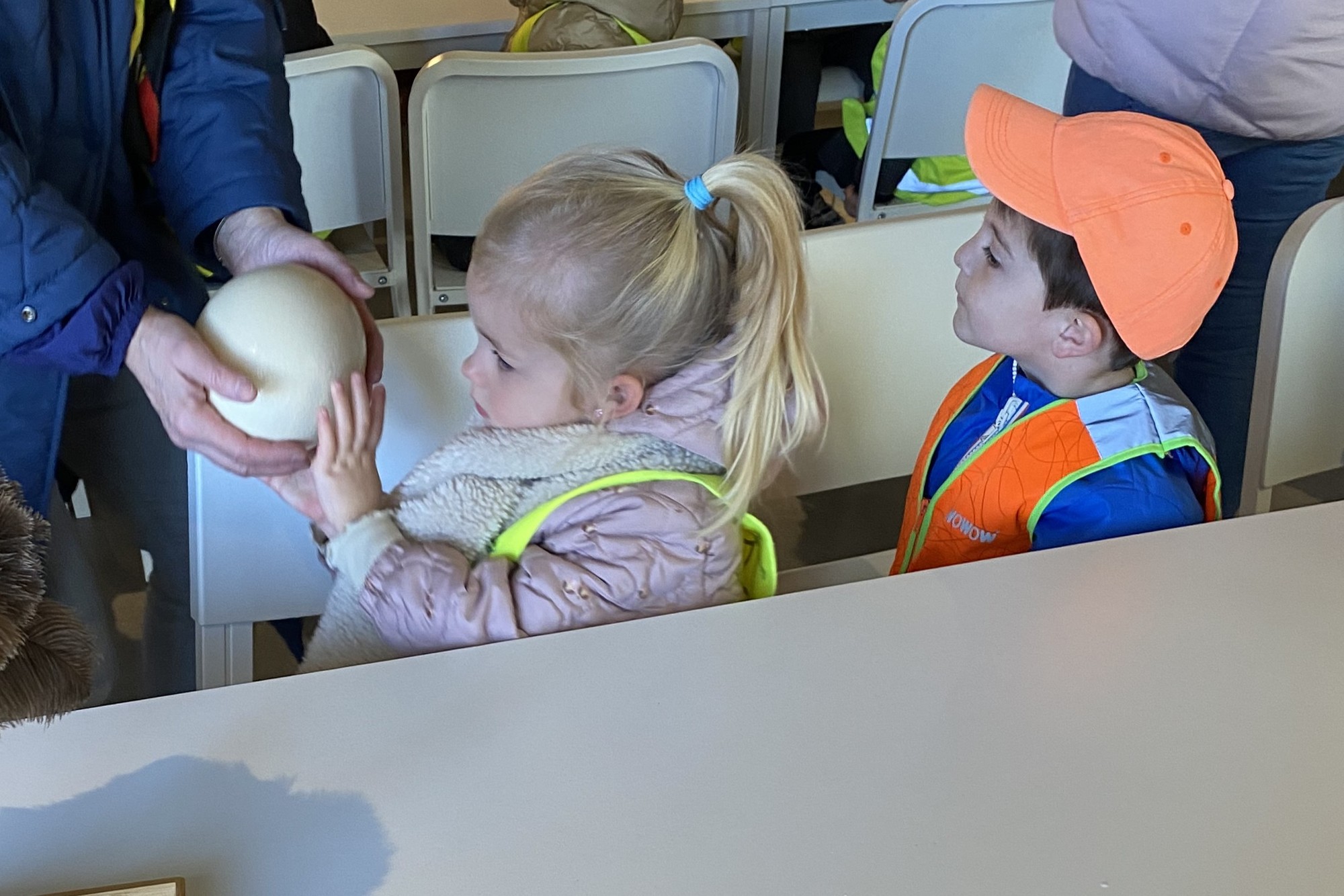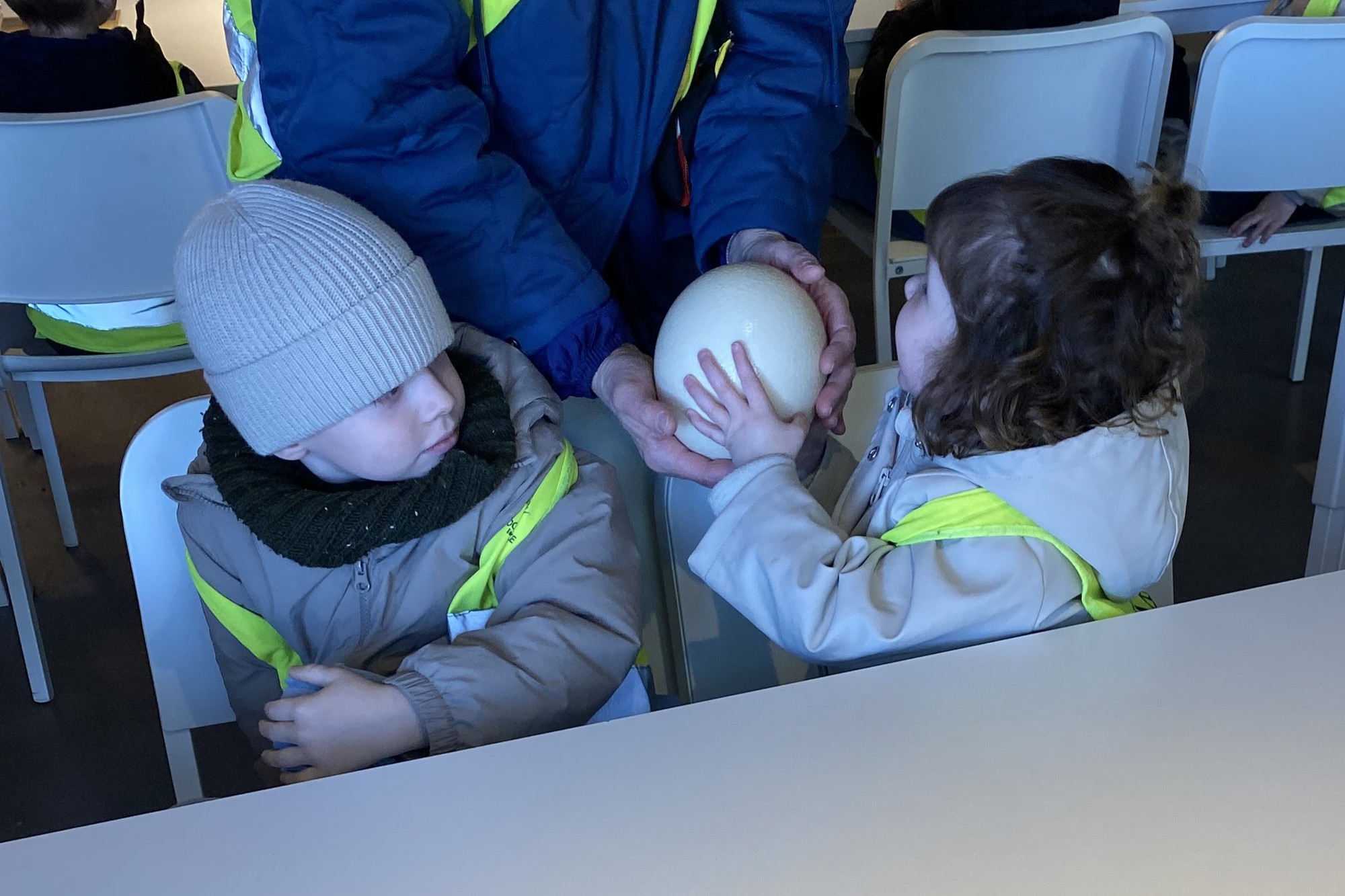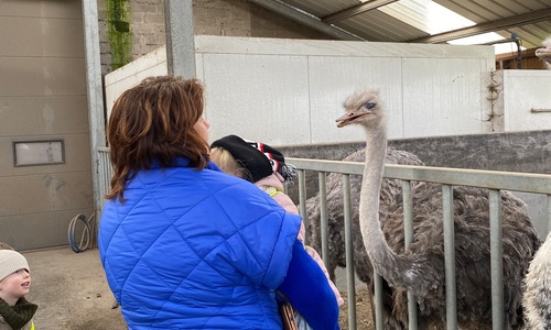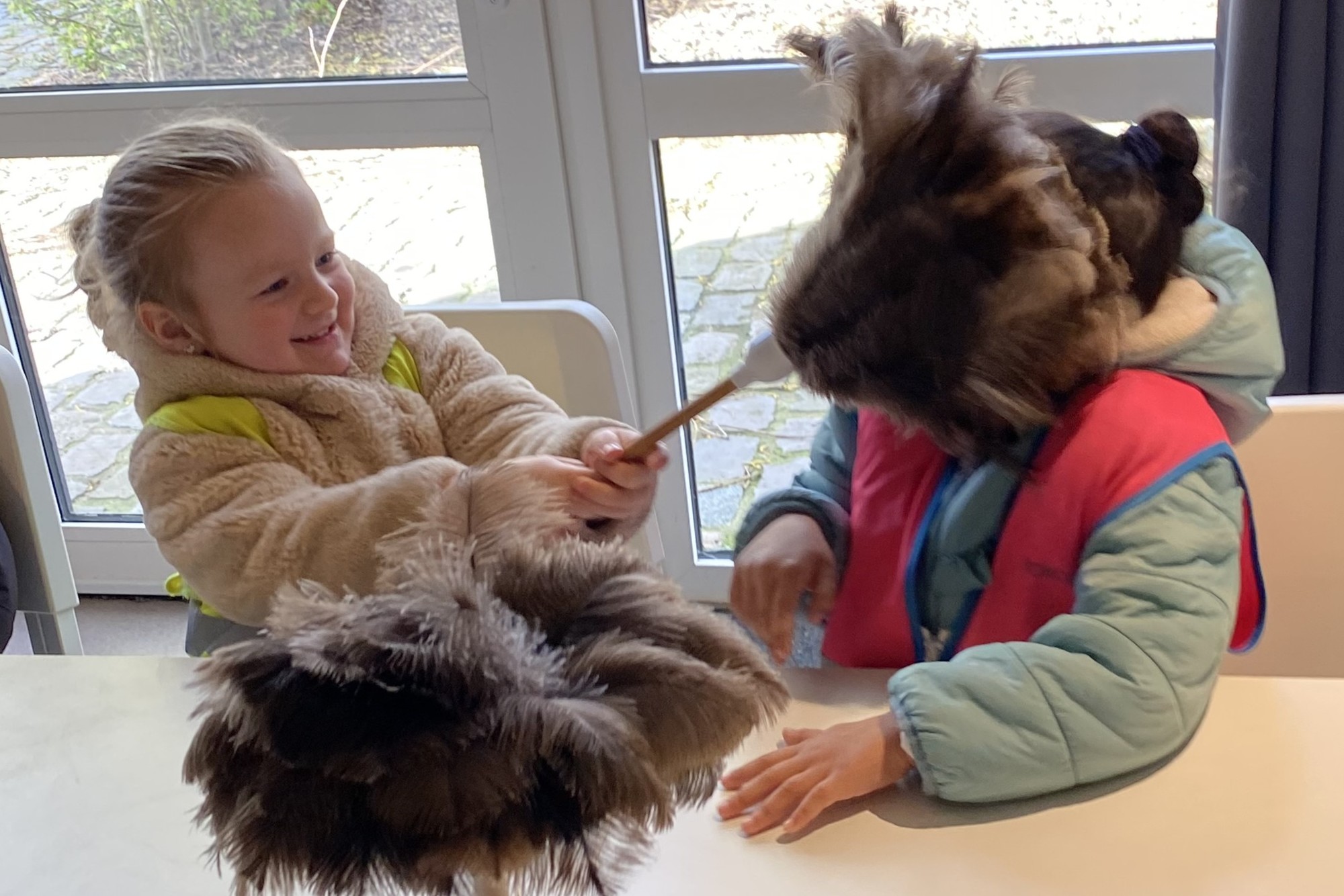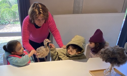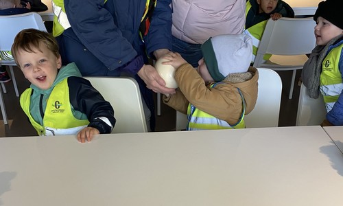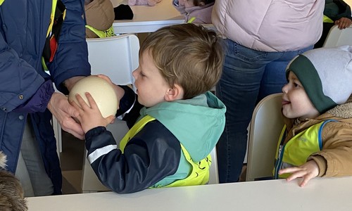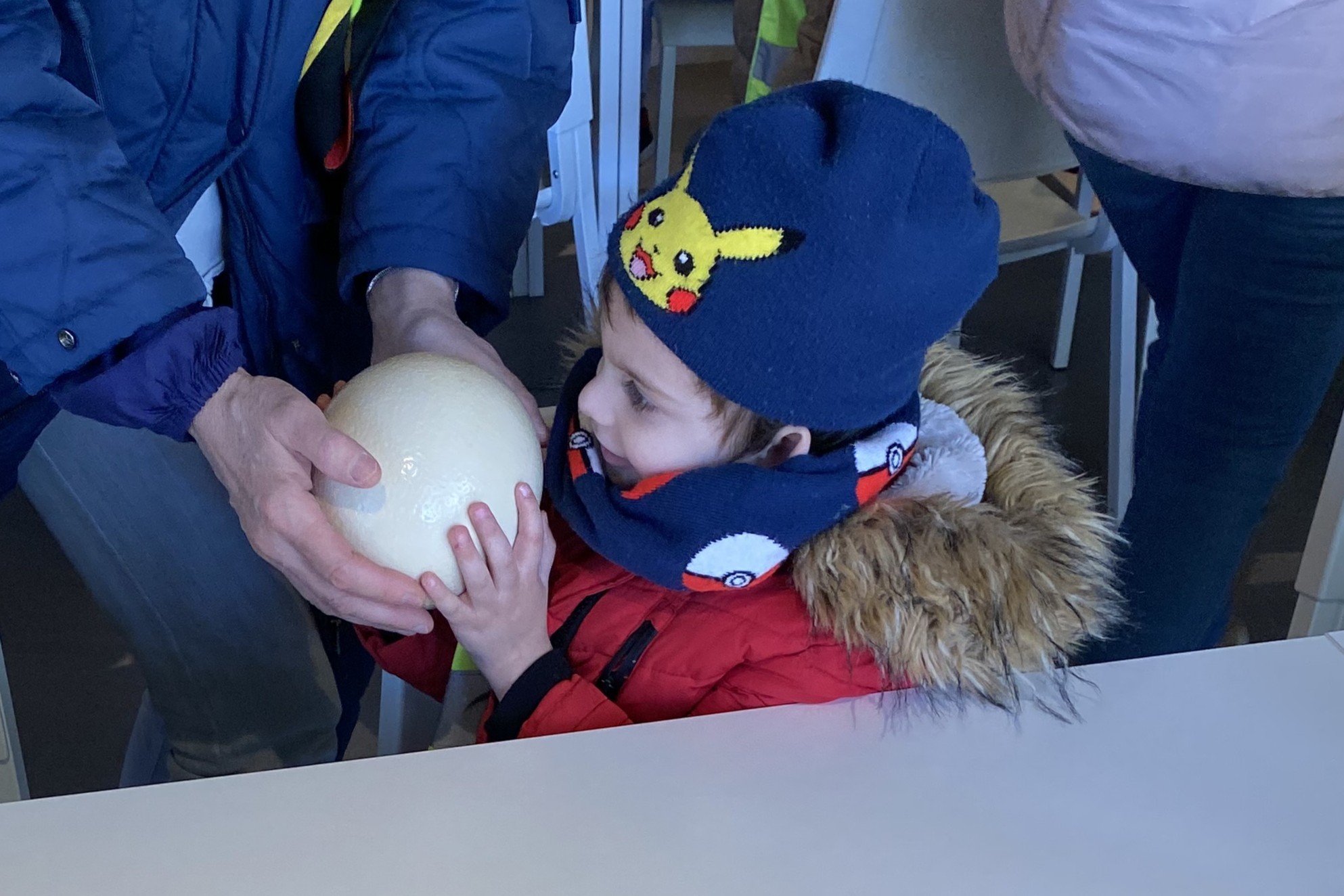 Een ei wegen, een kuikentje strelen, elkaar afstoffen, de grote dieren bekijken en een stukje cake eten...het hoort er allemaal bij