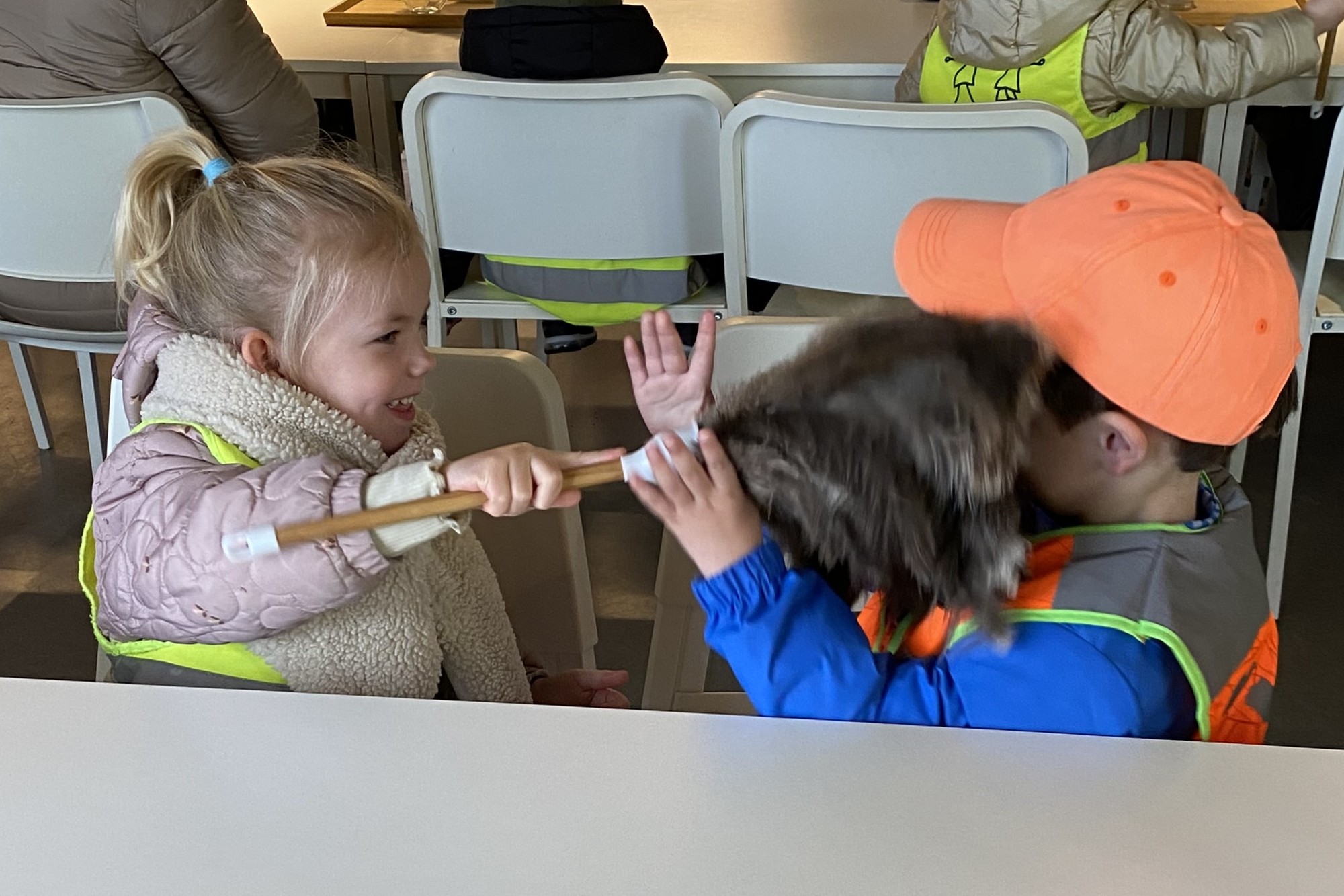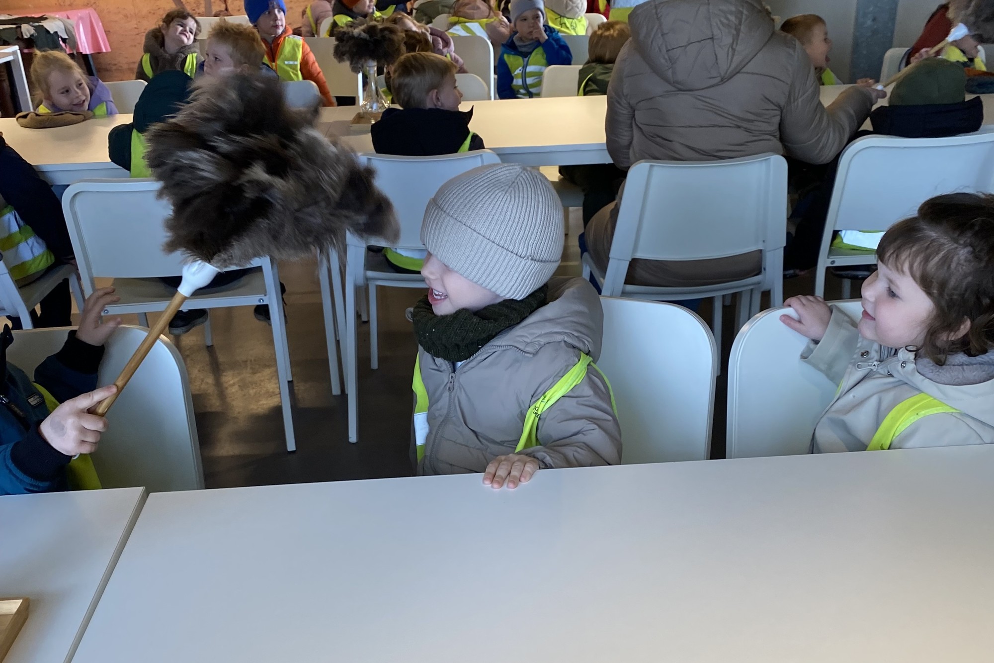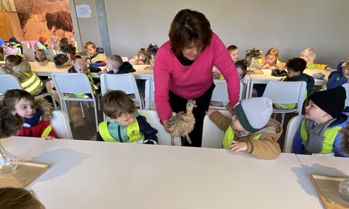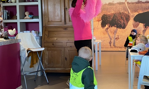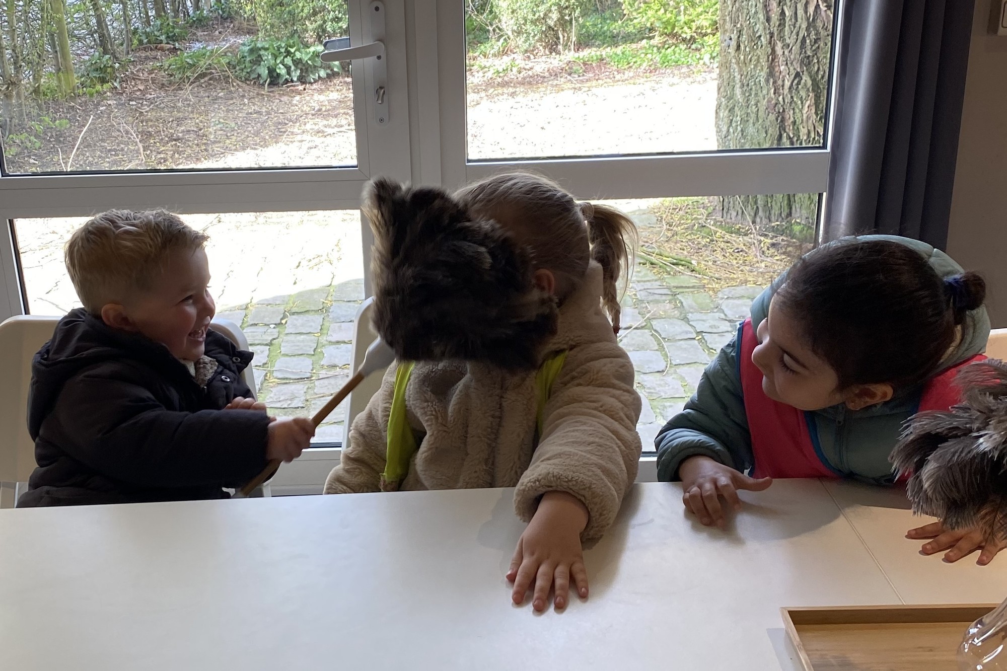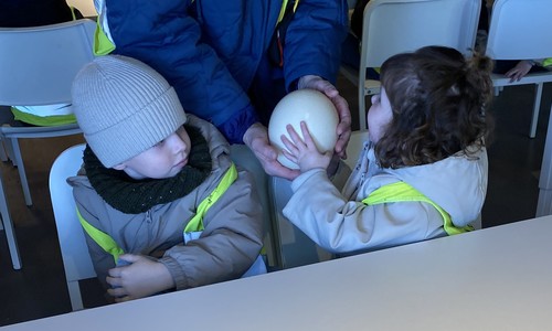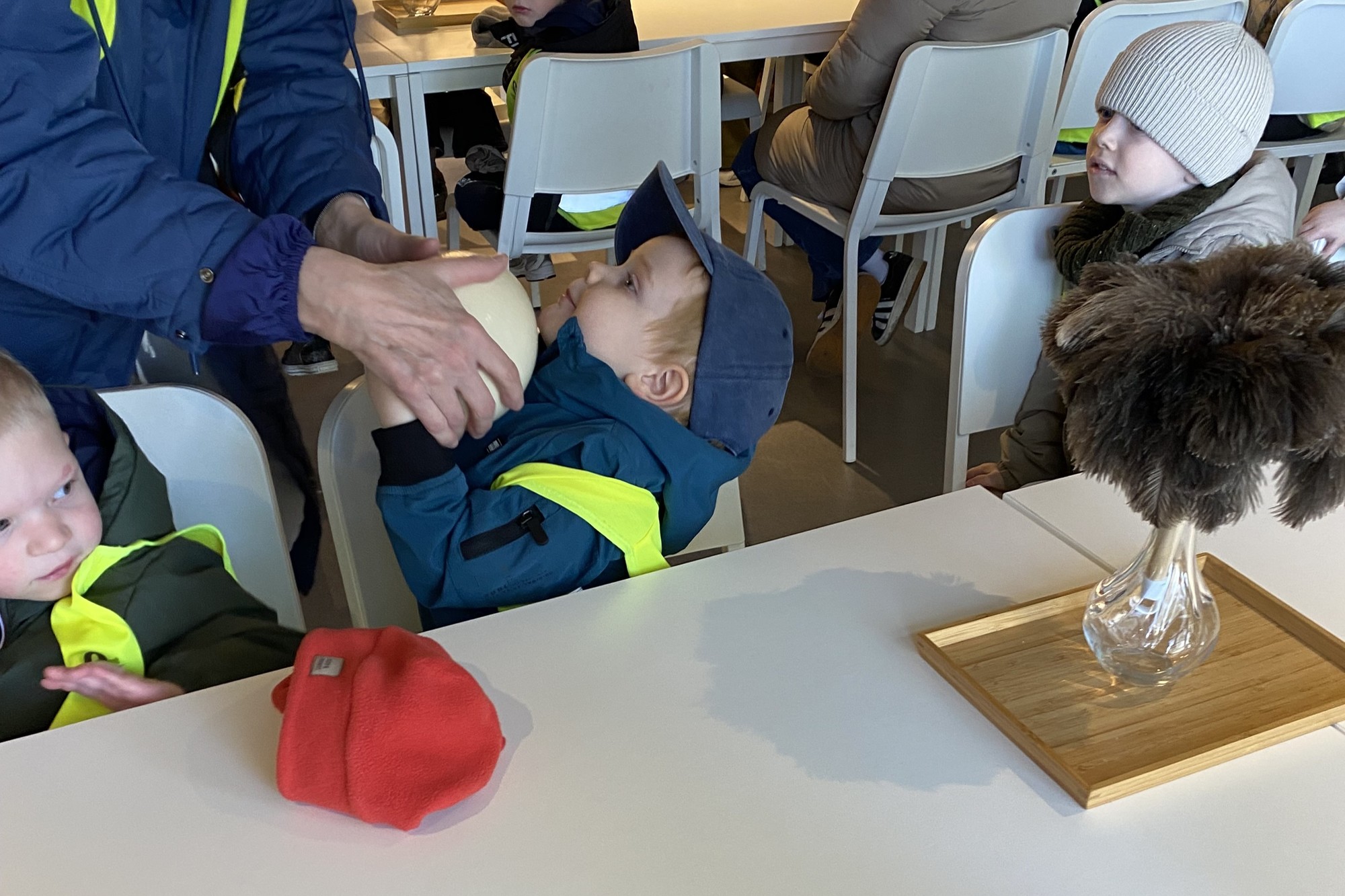 Een ei wegen, een kuikentje strelen, elkaar afstoffen, de grote dieren bekijken en een stukje cake eten...het hoort er allemaal bij