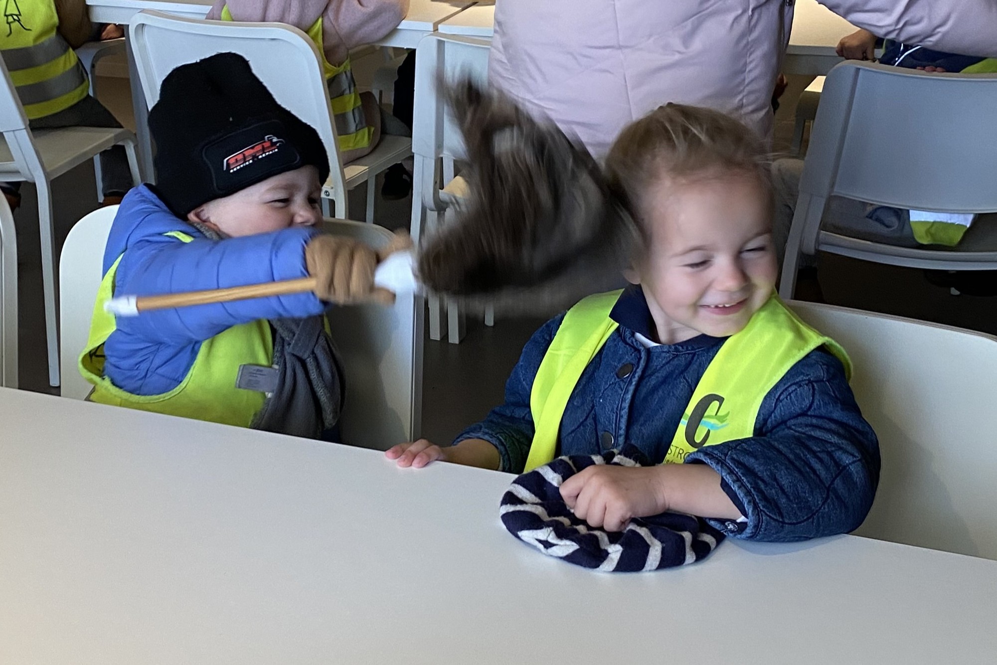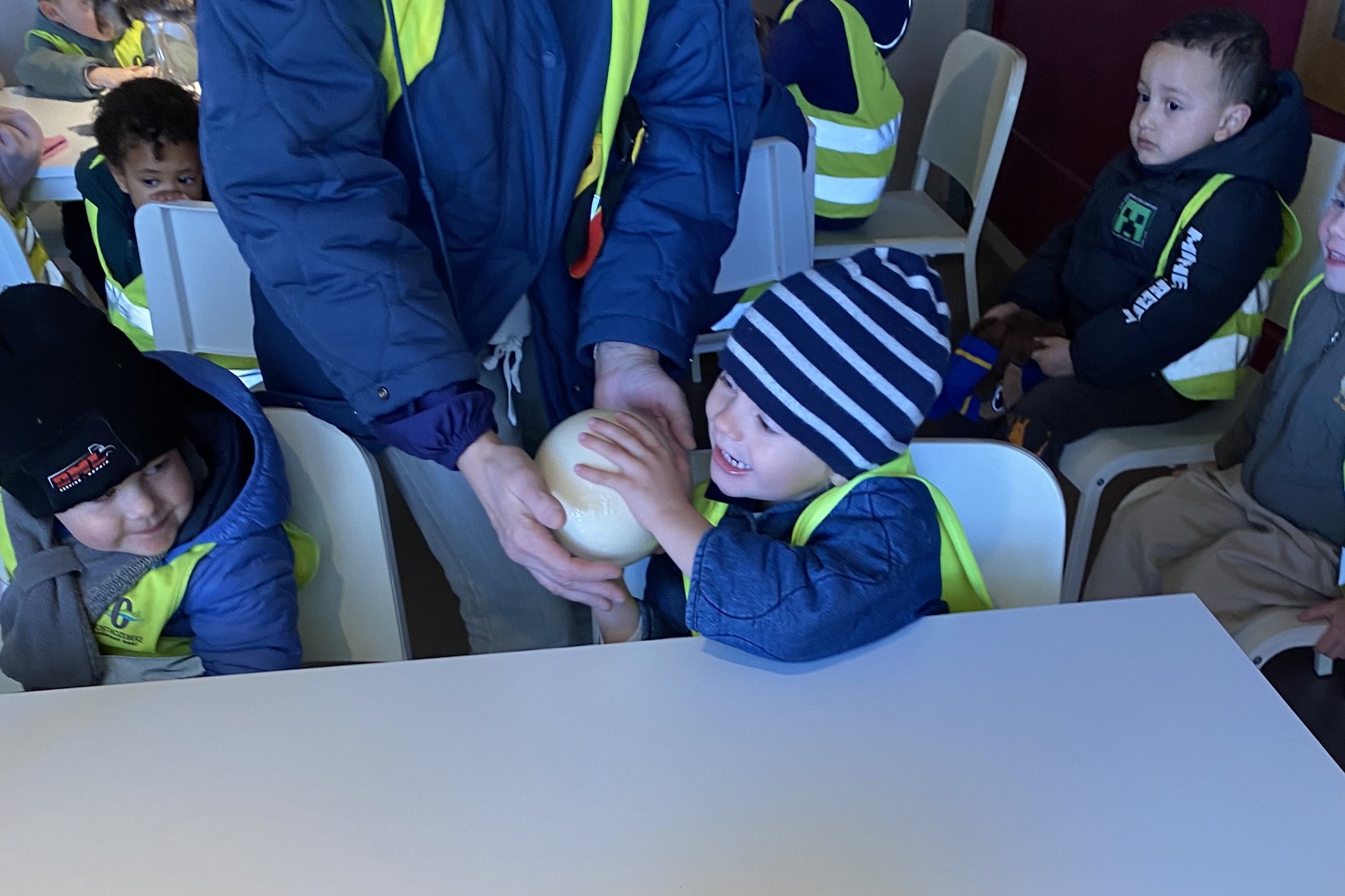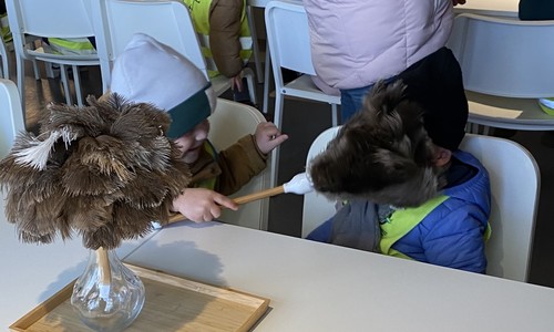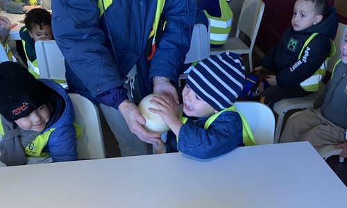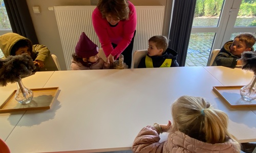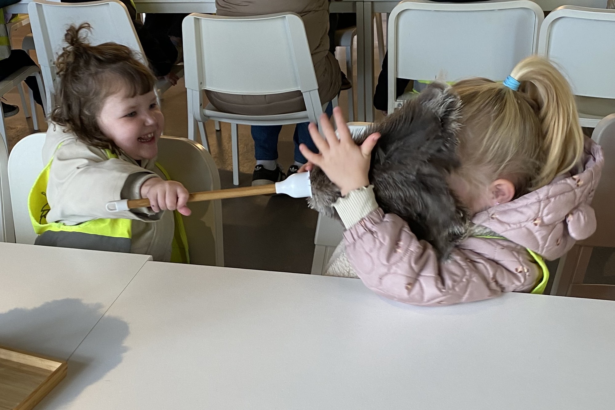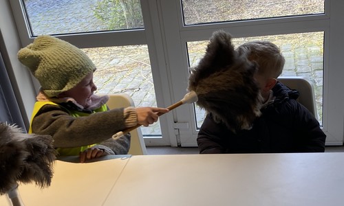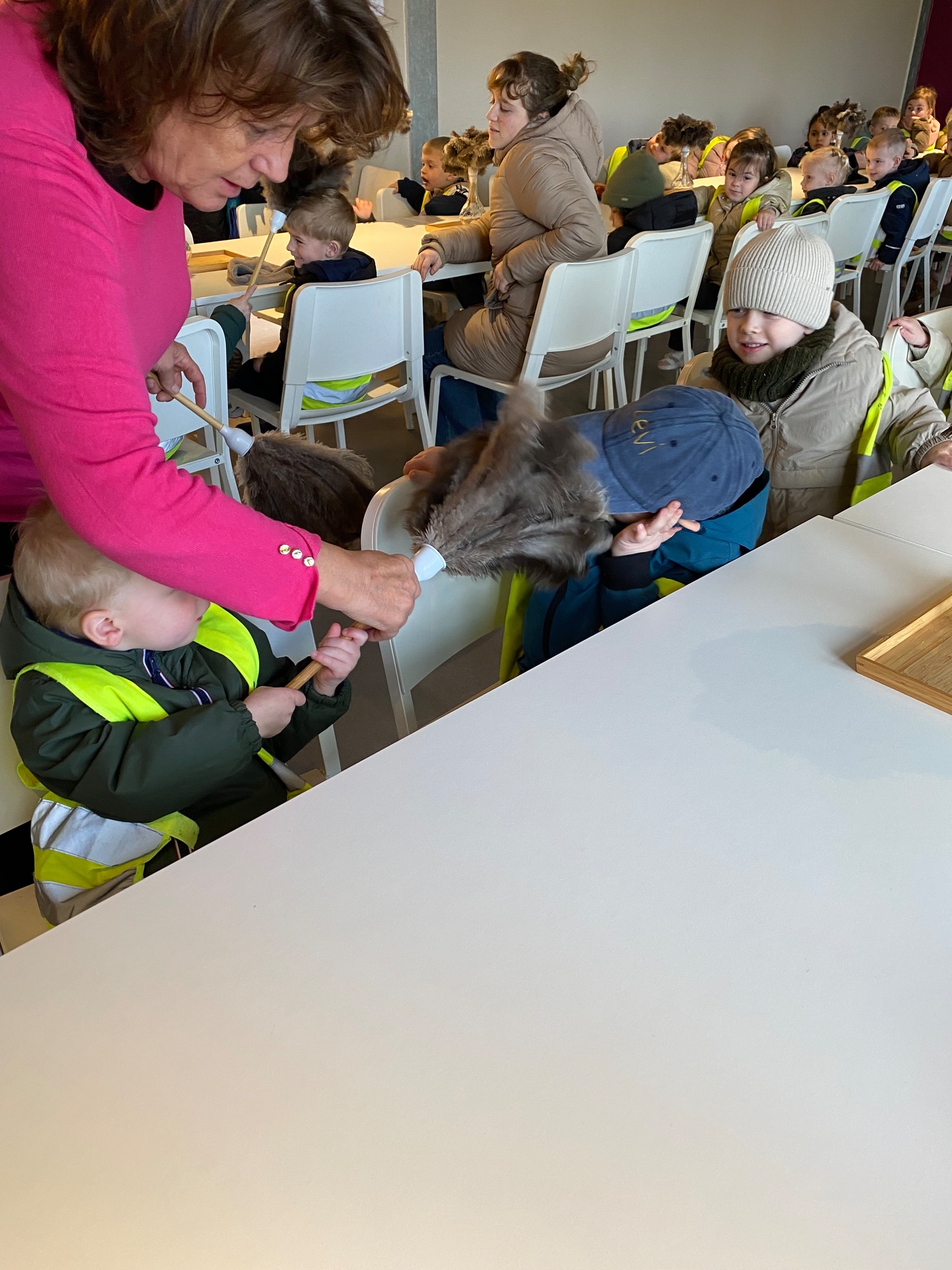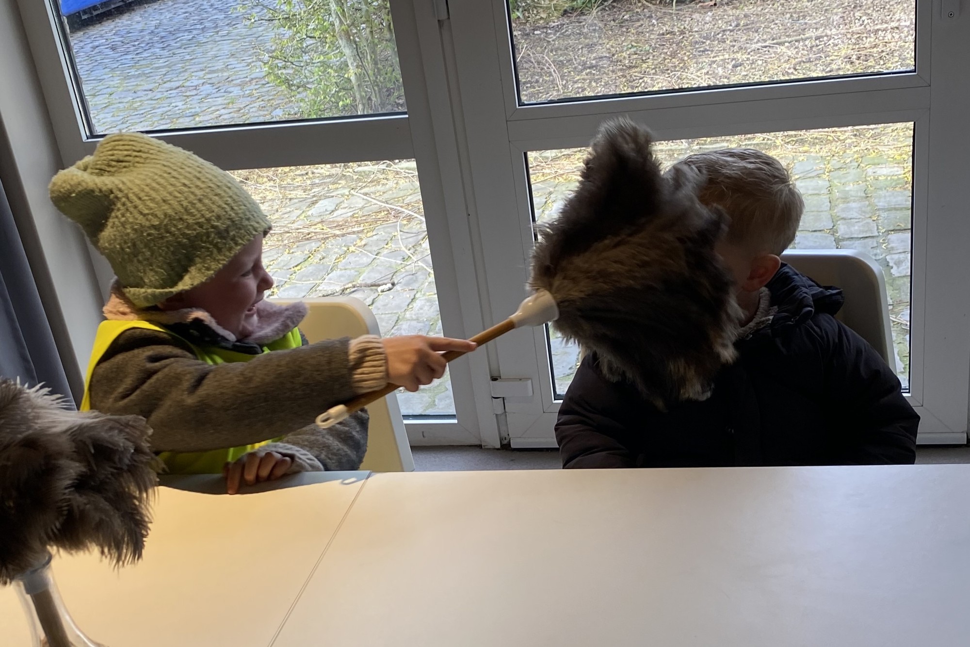 Een ei wegen, een kuikentje strelen, elkaar afstoffen, de grote dieren bekijken en een stukje cake eten...het hoort er allemaal bij