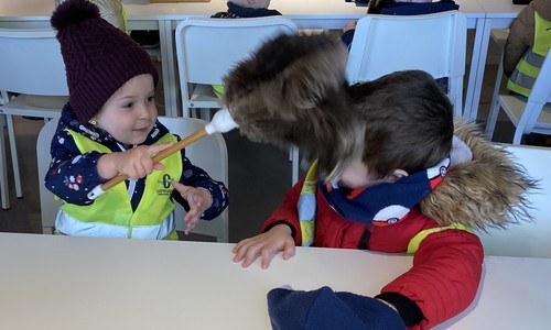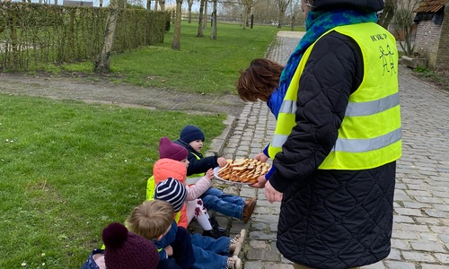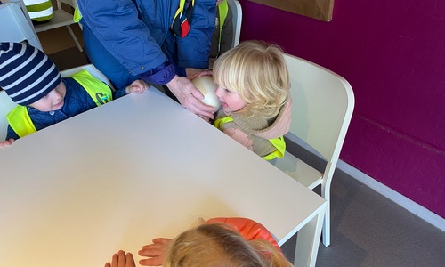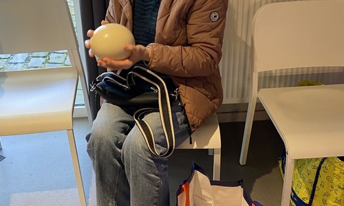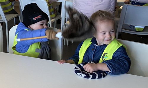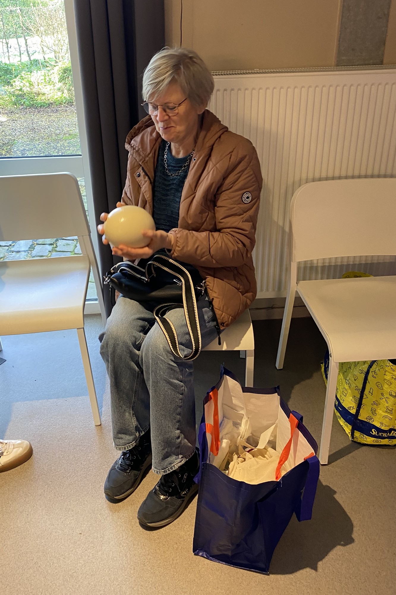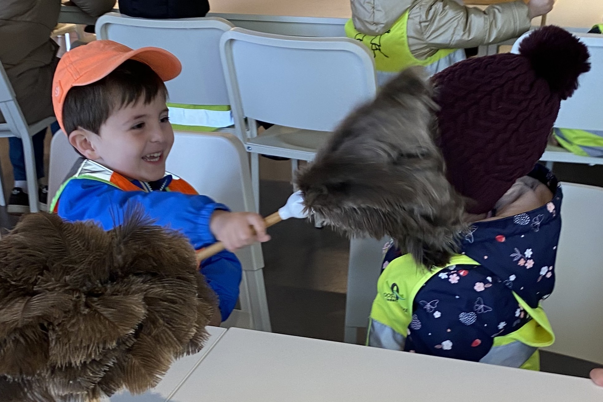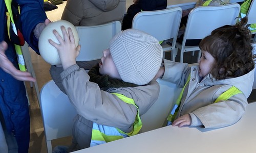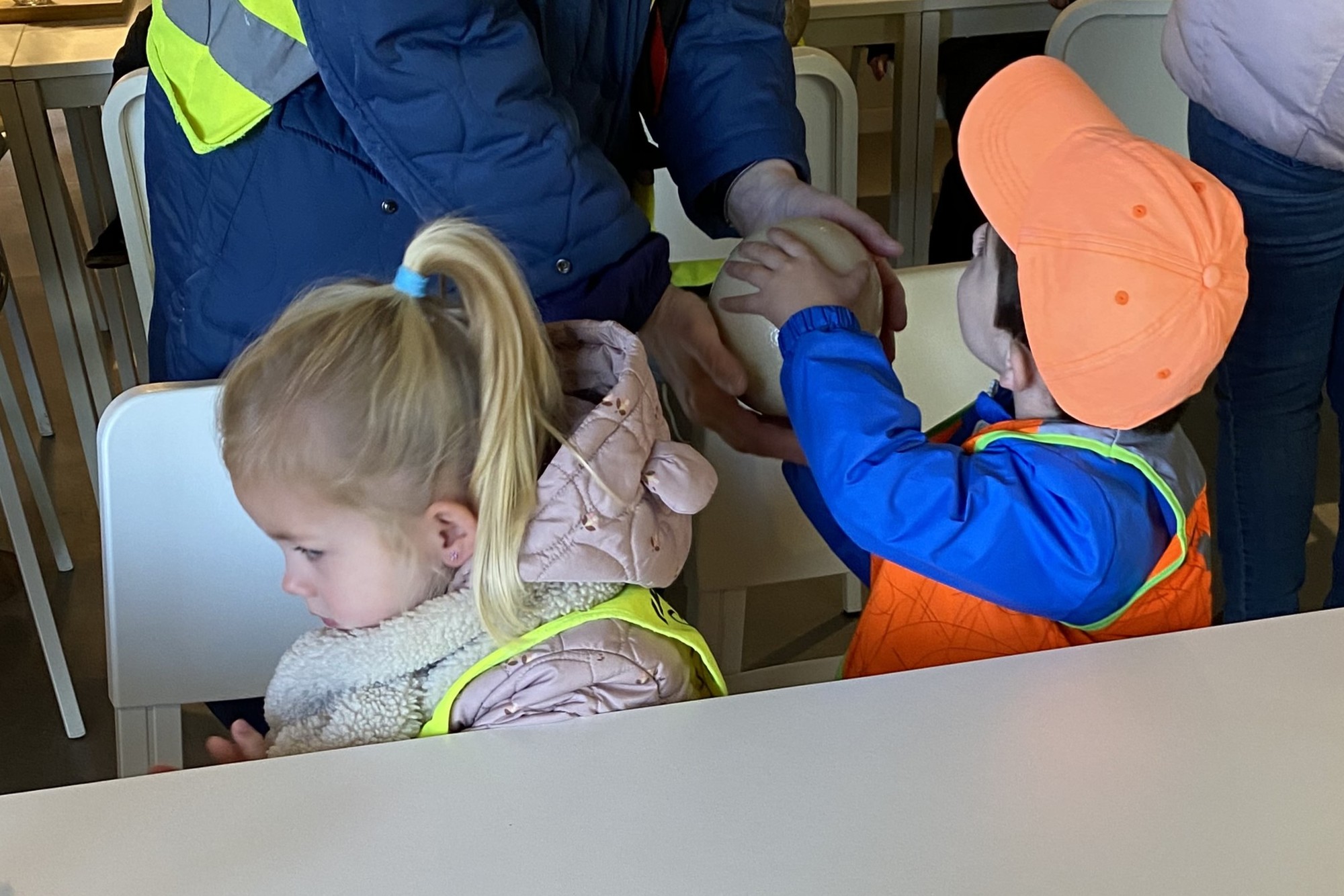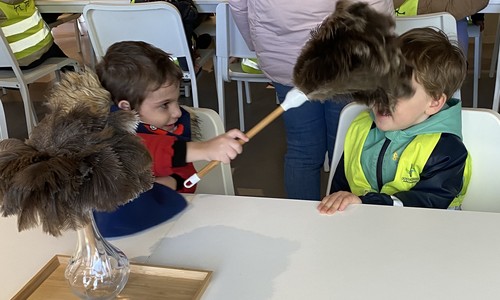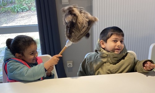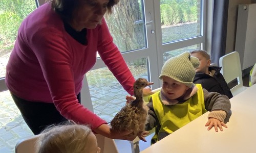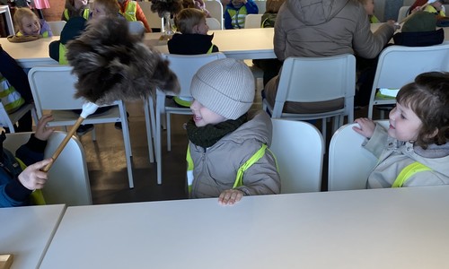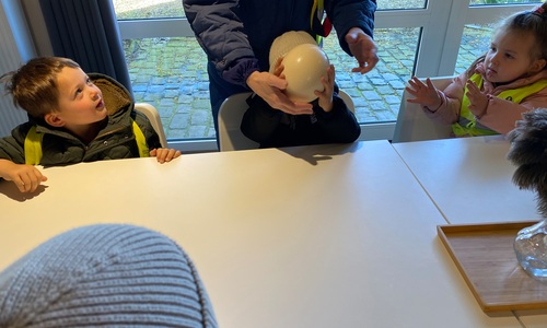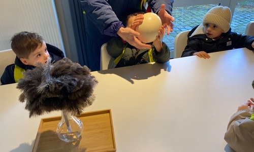 Een ei wegen, een kuikentje strelen, elkaar afstoffen, de grote dieren bekijken en een stukje cake eten...het hoort er allemaal bij