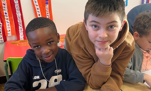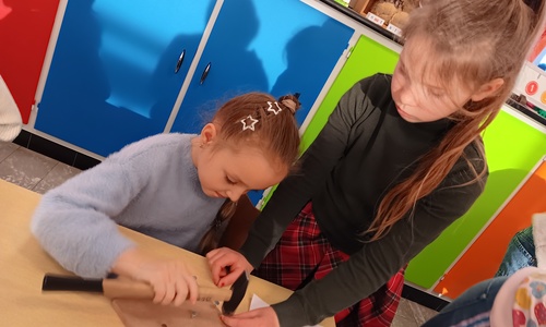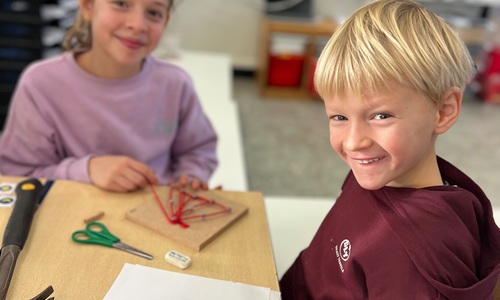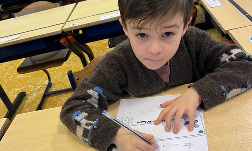 Het vijfde leerjaar op bezoek om te lezen en te timmeren...