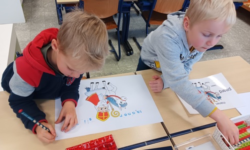 Het vijfde leerjaar op bezoek om te lezen en te timmeren...