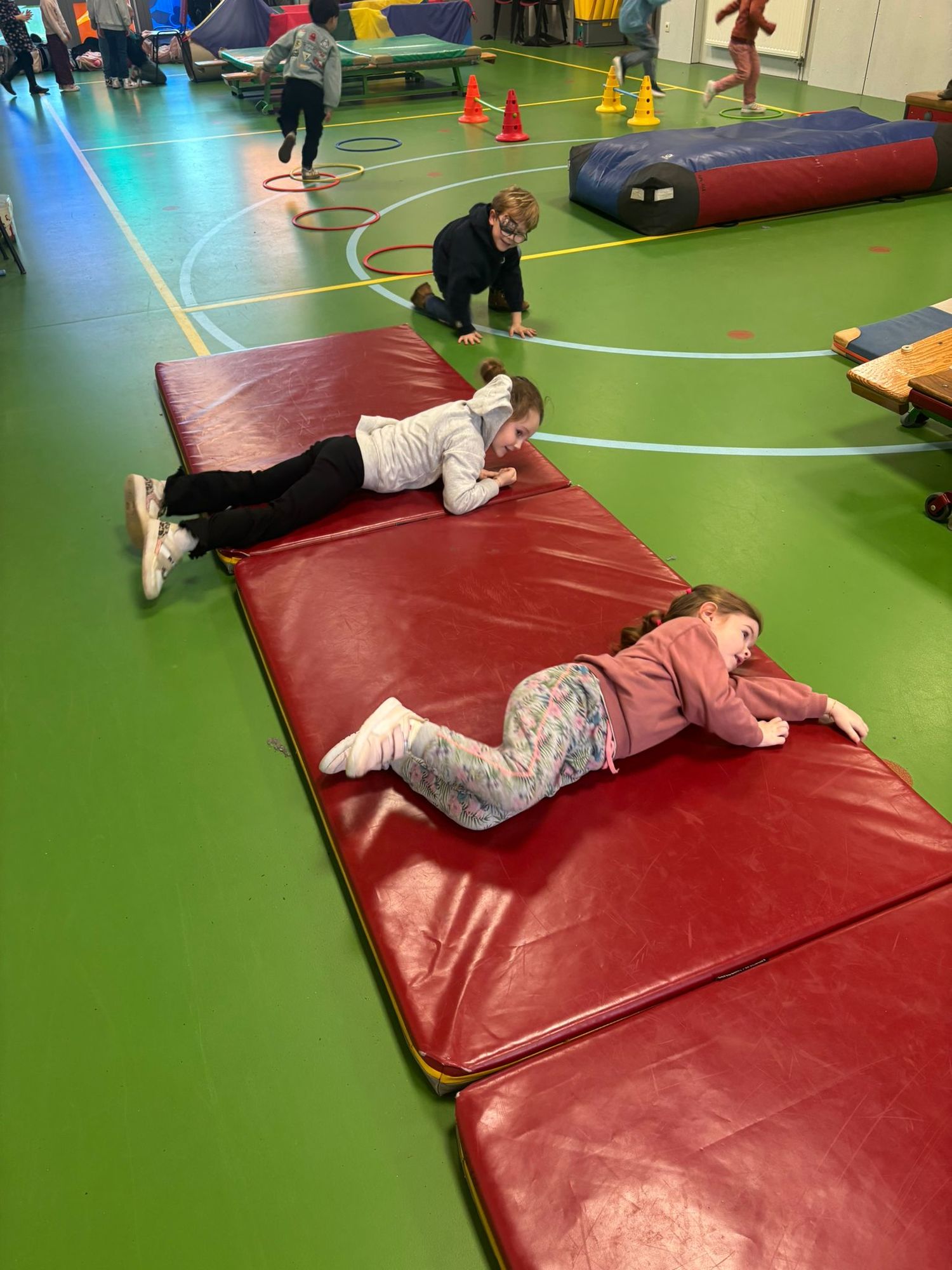 Welkom in Krokodillenland In krokodillenland konden we 4 verschillende beweeghoeken uitproberen. Samen met de krokodillen oefenden we op springen, rollen, klimmen, klauteren en sluipen