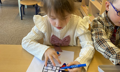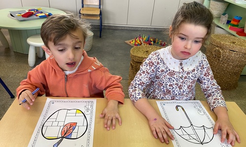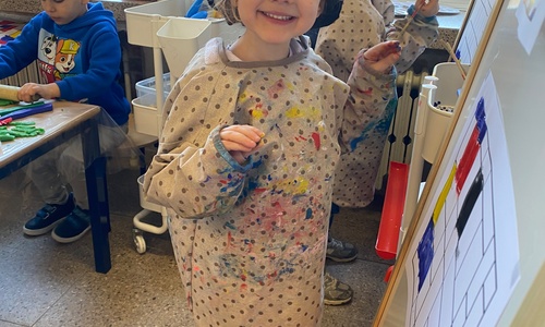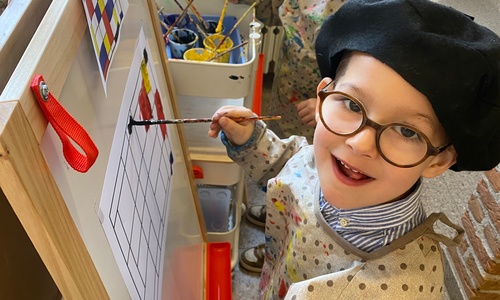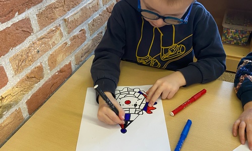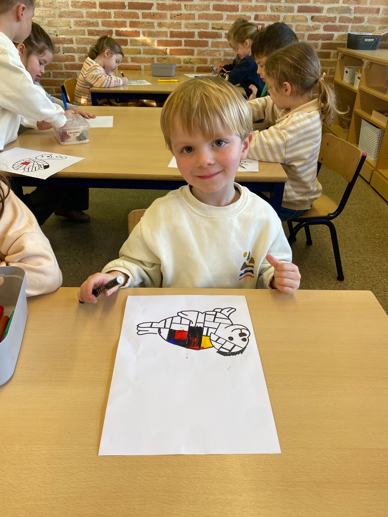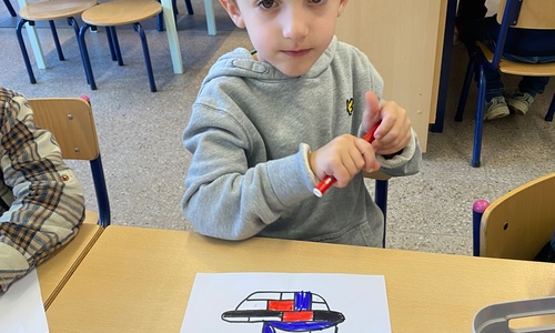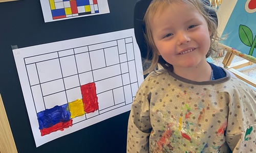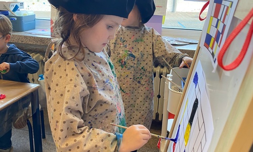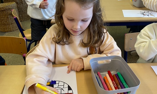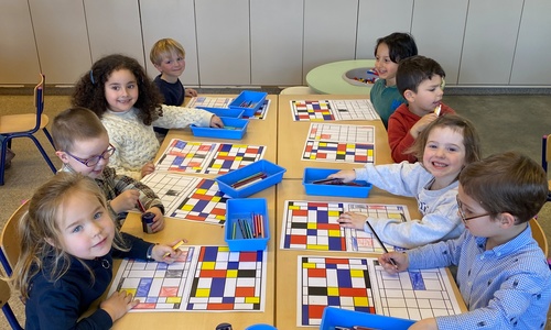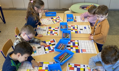 Ook hebben ze hun klassymbool gemaakt in de stijl van Mondriaan.