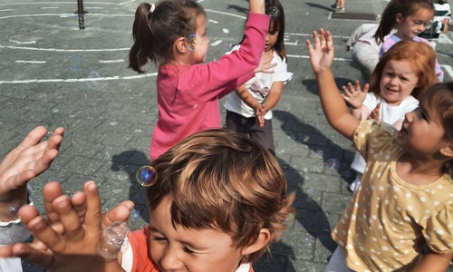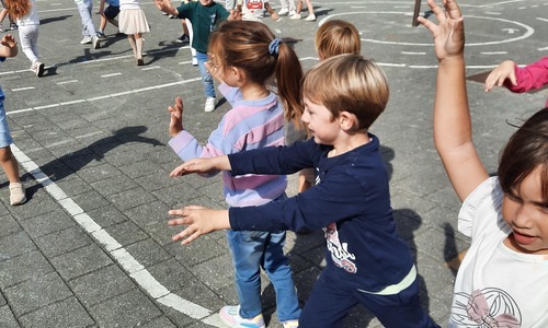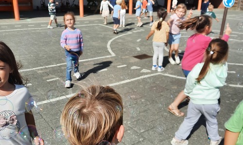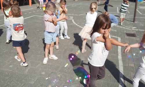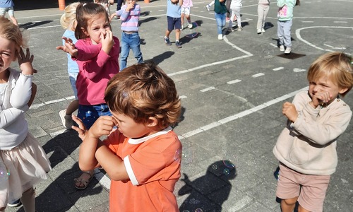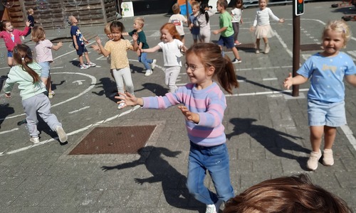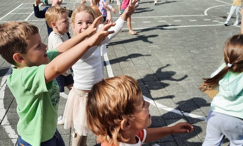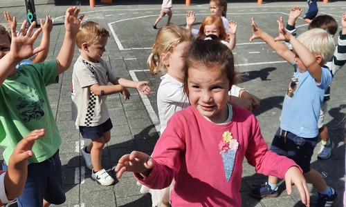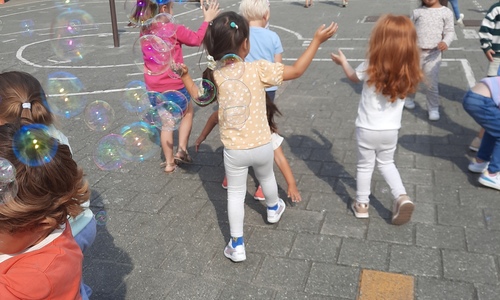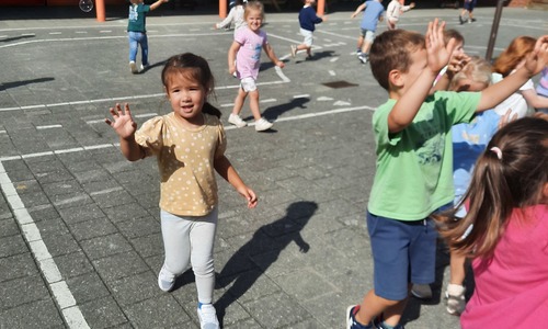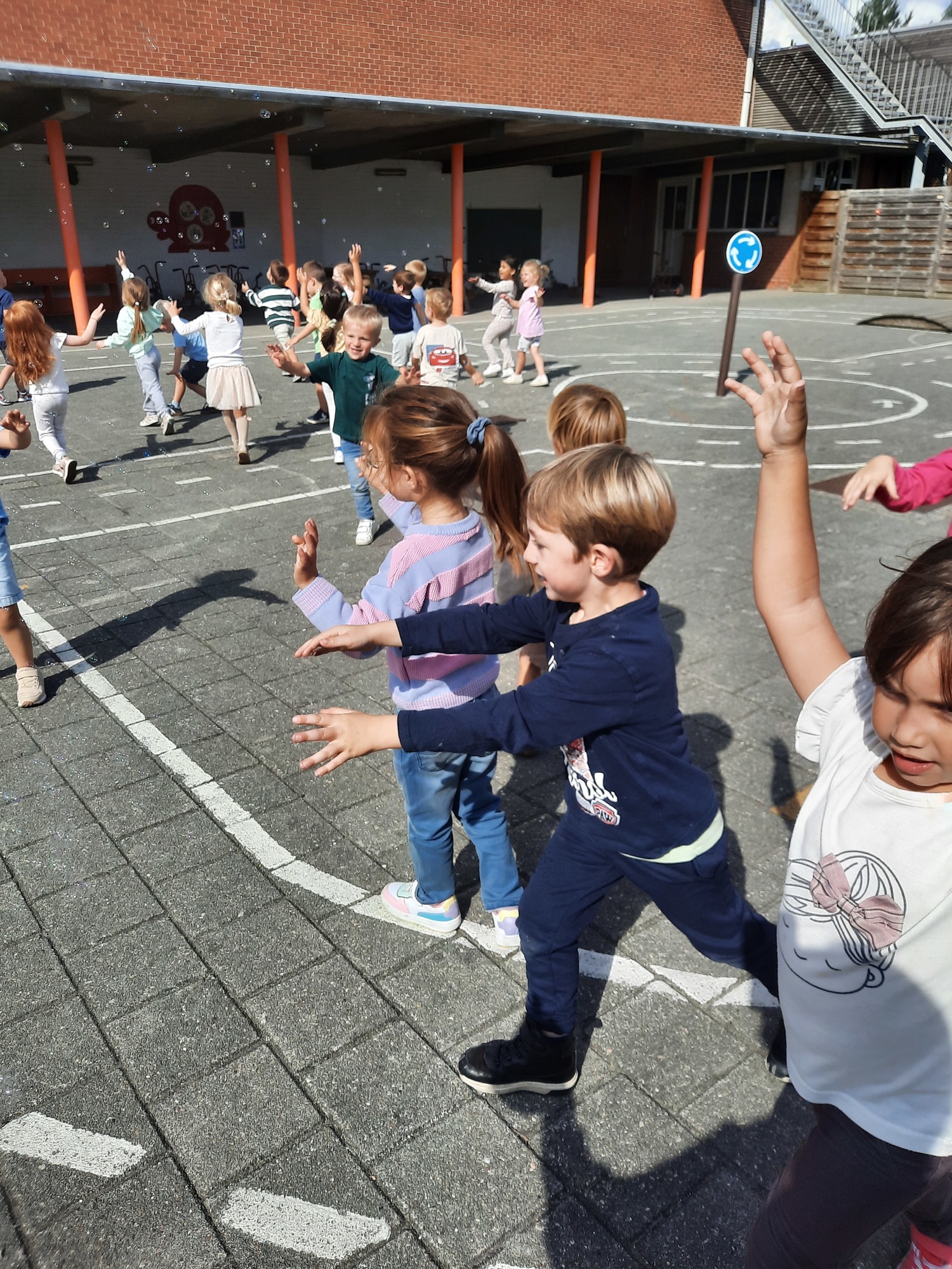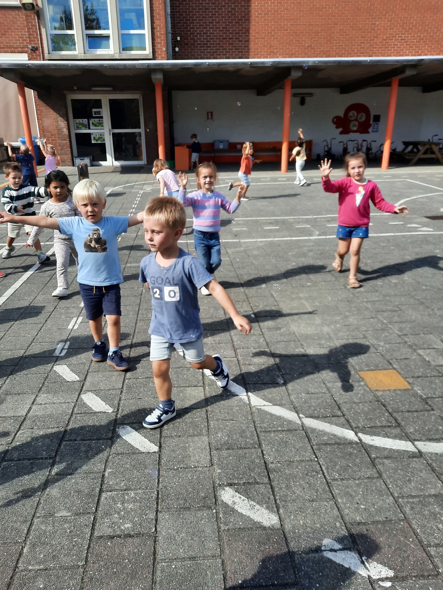 We pakken de belletjes terwijl we stappen als een leeuw of springen als een aapje. We pakken ook de belletjes met de slurf van olifant of de grote bek van krokodil of we vliegen naar de belletjes zoals papegaai.