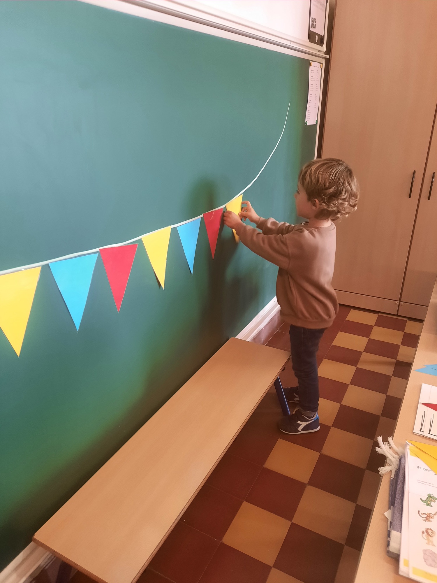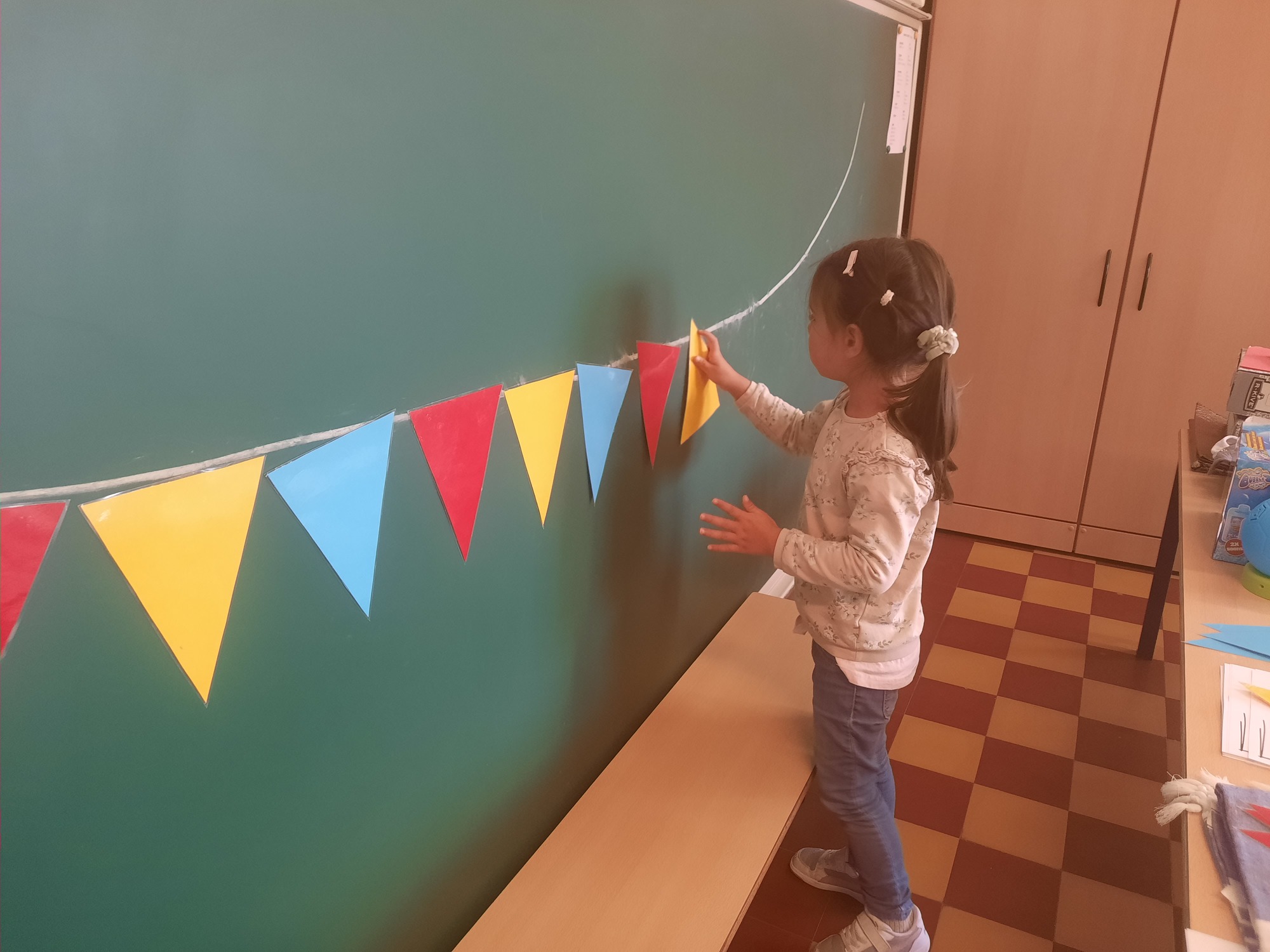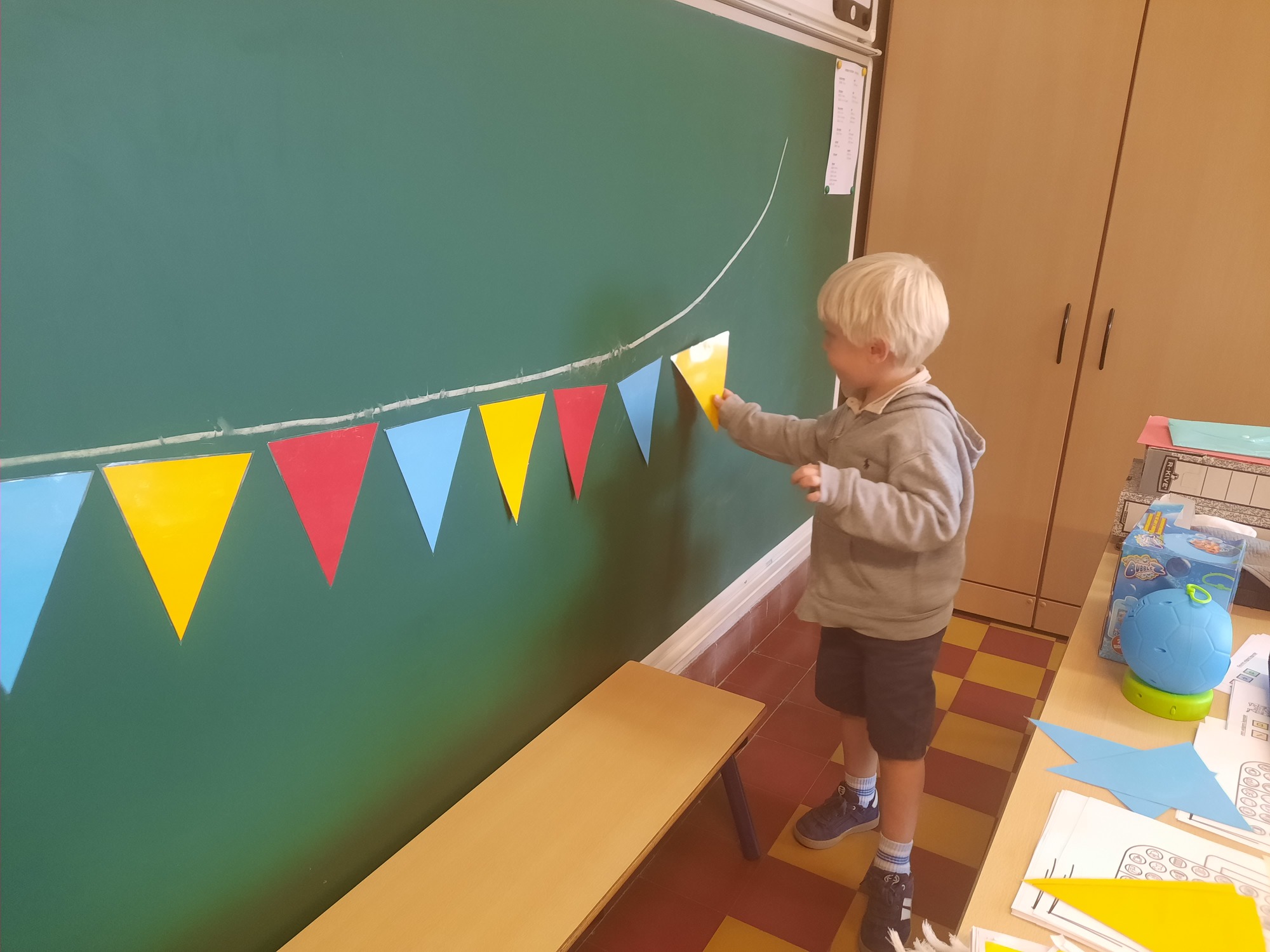 2KC: De vlaggenlijn: Maak het juiste patroon.