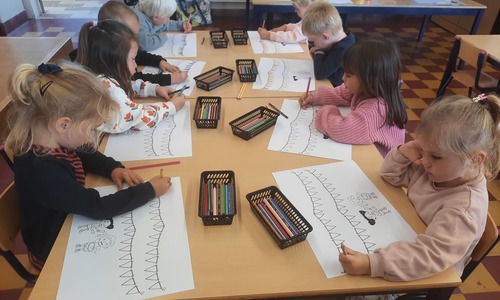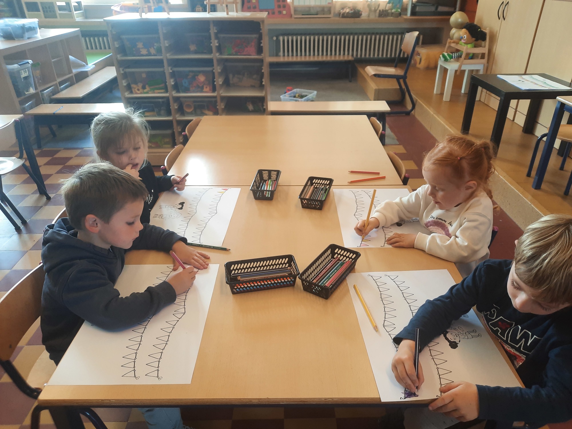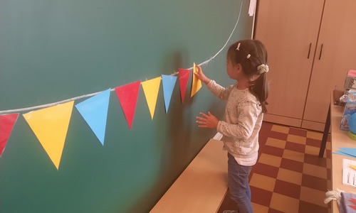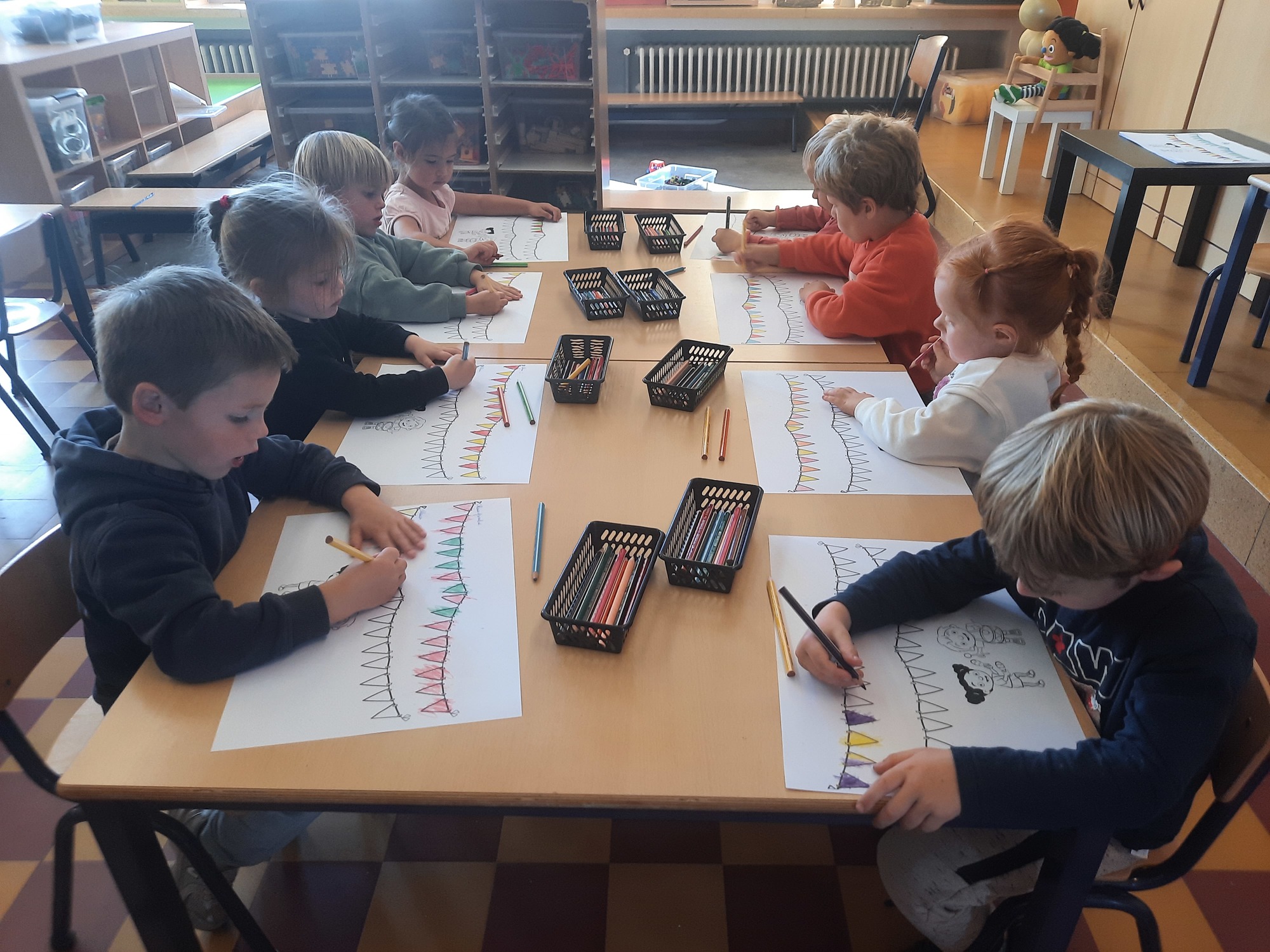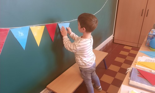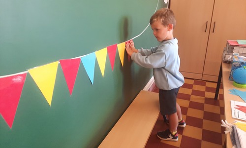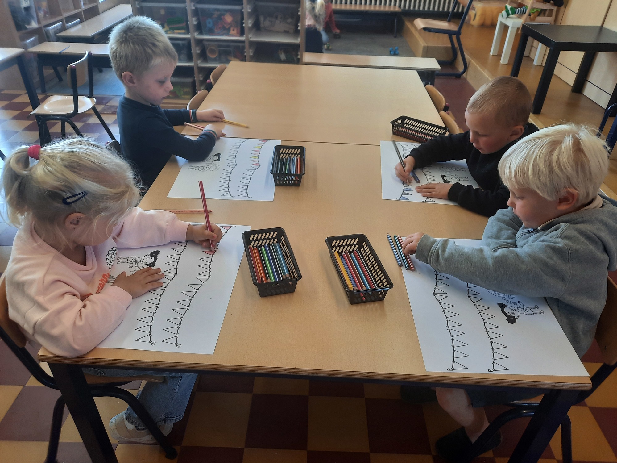 2KC: De vlaggenlijn: Maak het juiste patroon.