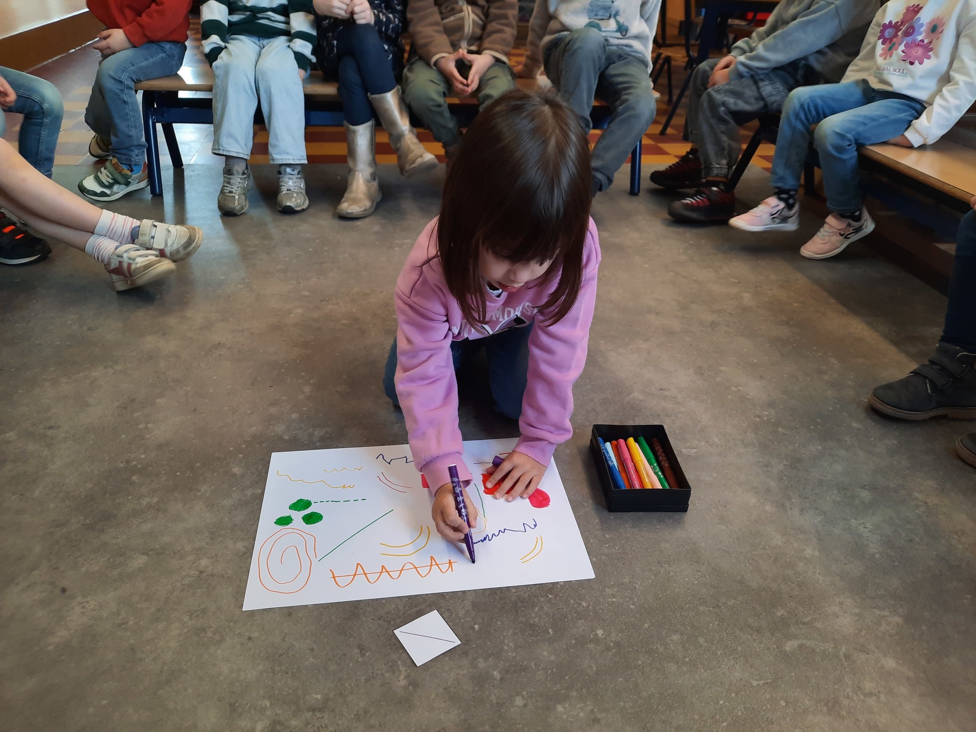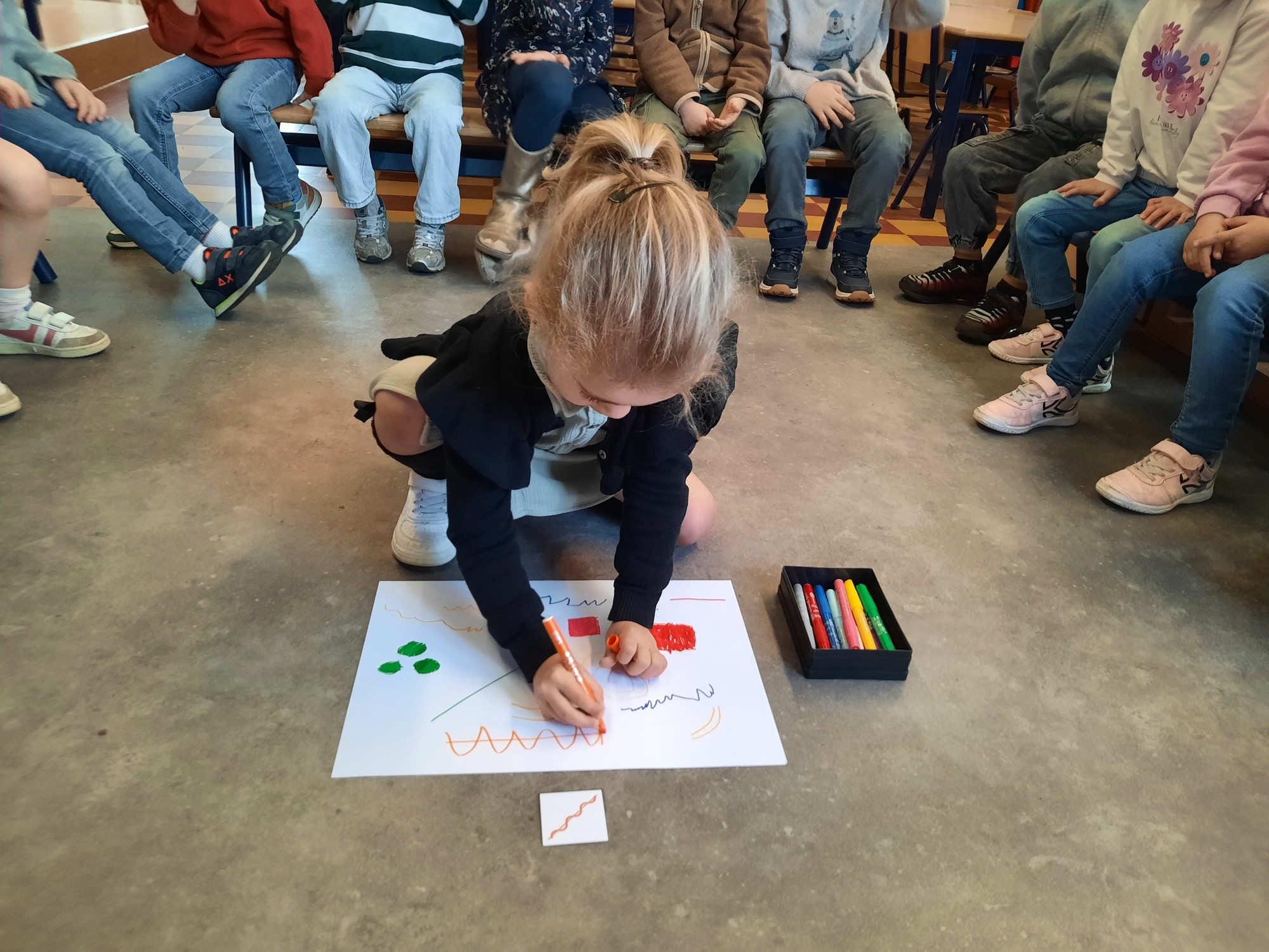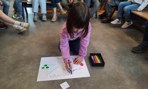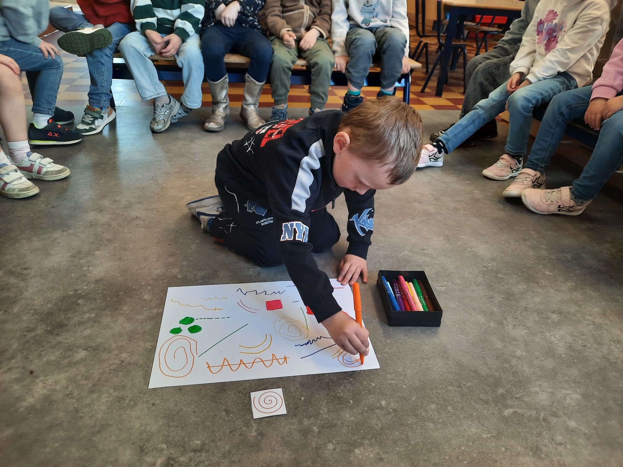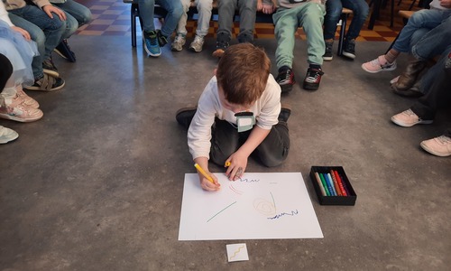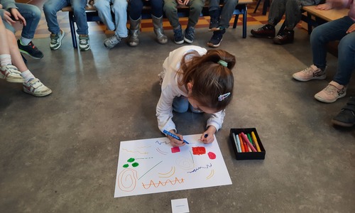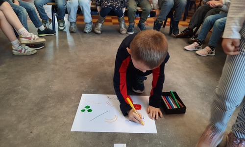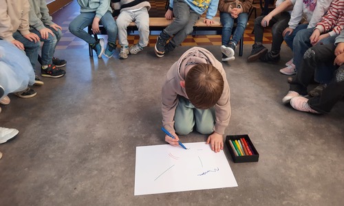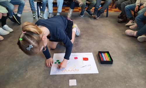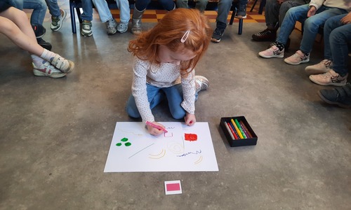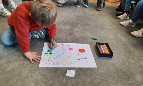 2KC: Groepswerk: tekenen in de stijl van Kandinsky (Teken wat op het kaartje staat)