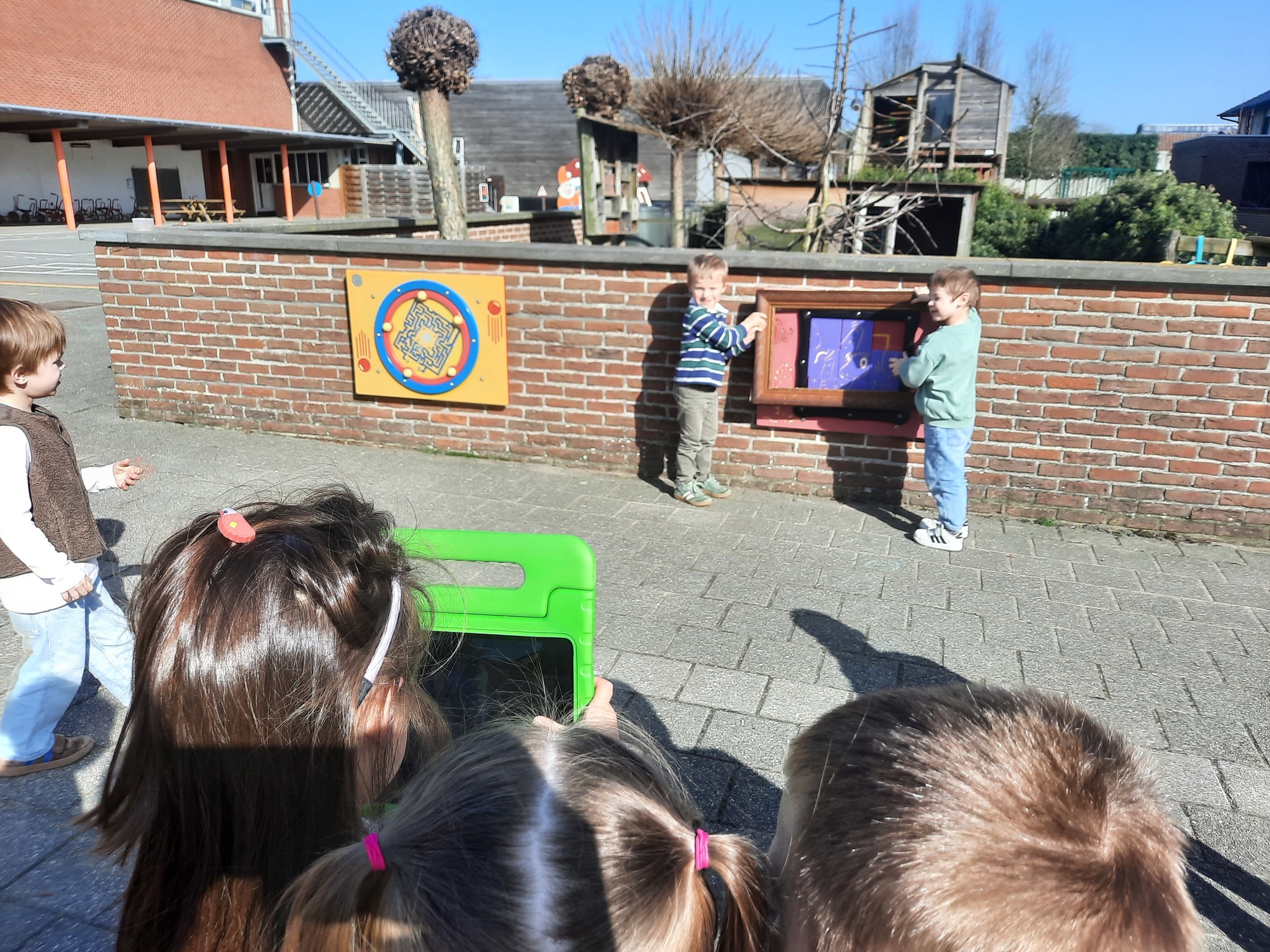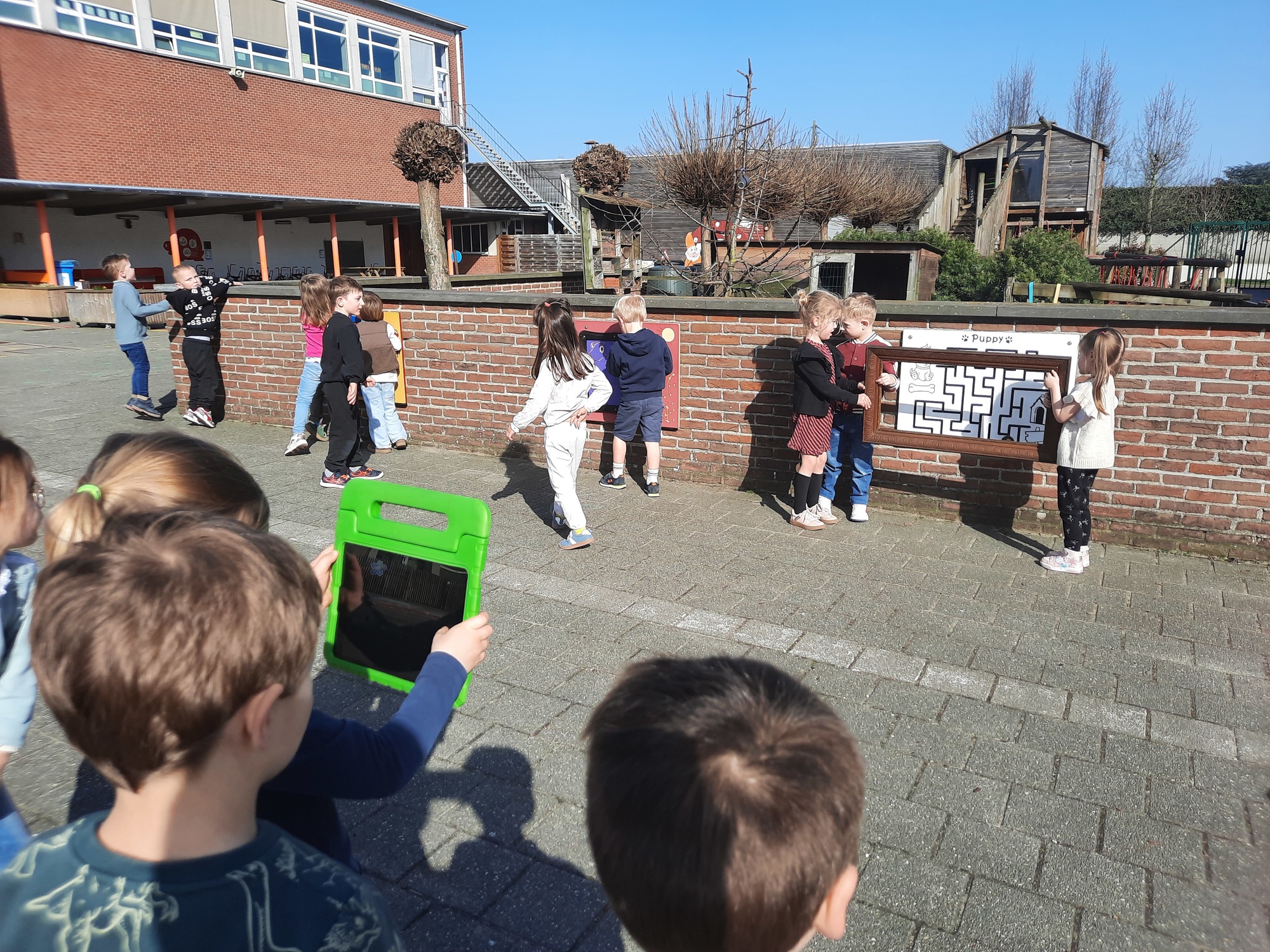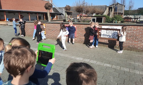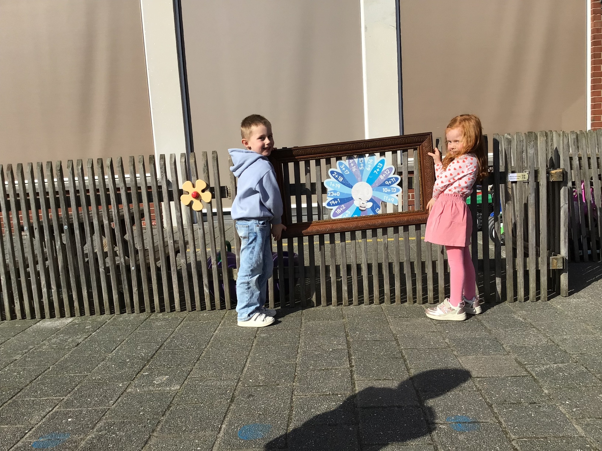 We luisterden naar het verhaal 'kijk eens hoe mooi'. Wanneer Duif een nieuwe lijst gemaakt heeft en ermee op stap gaat naar Prinses Plakband, ziet hij onderweg dat je van 'kleine dingen' 'grote kunst' kan maken. Wij zochten zelf dingen die mooi worden als je ze in een kadertje zet. Echte kunst :). De kleuters namen zelf een foto van het 'kunstwerk'.