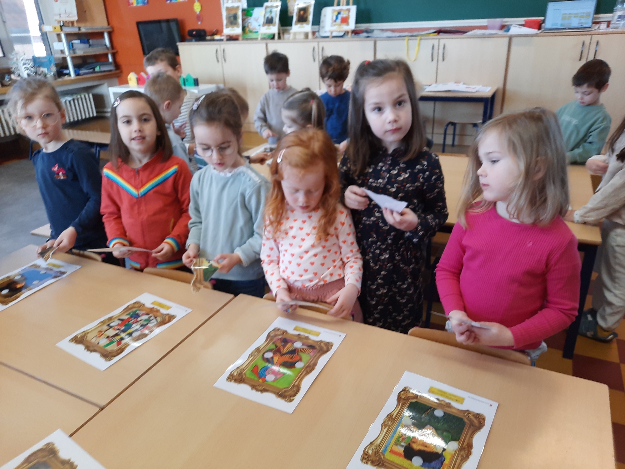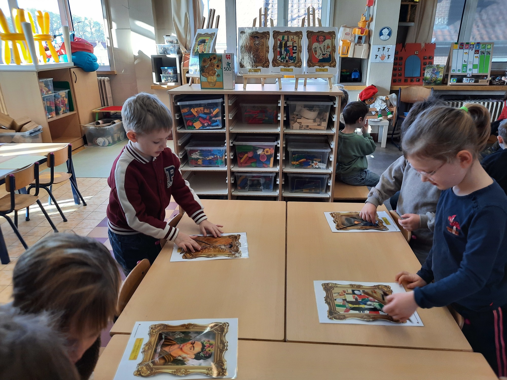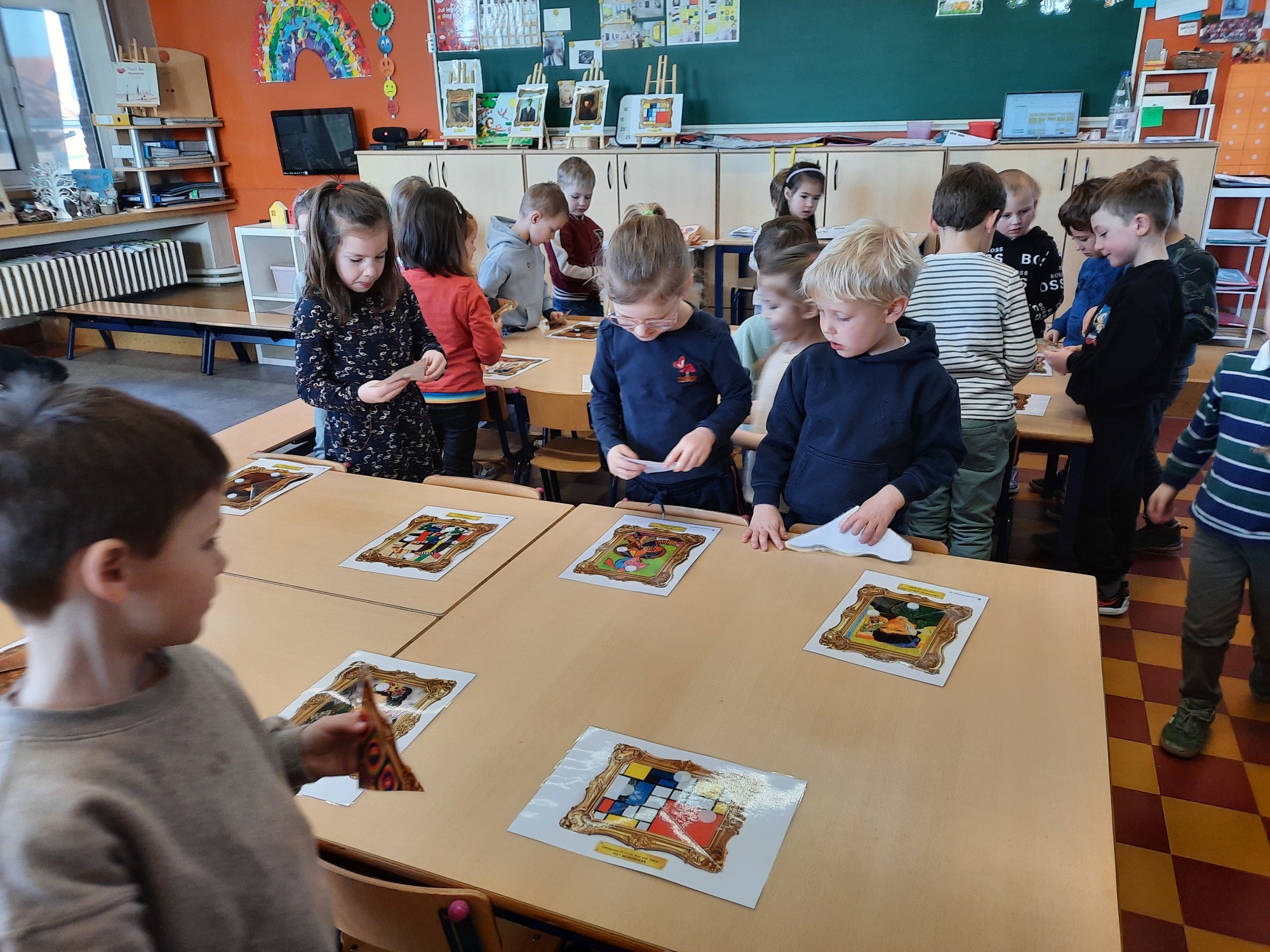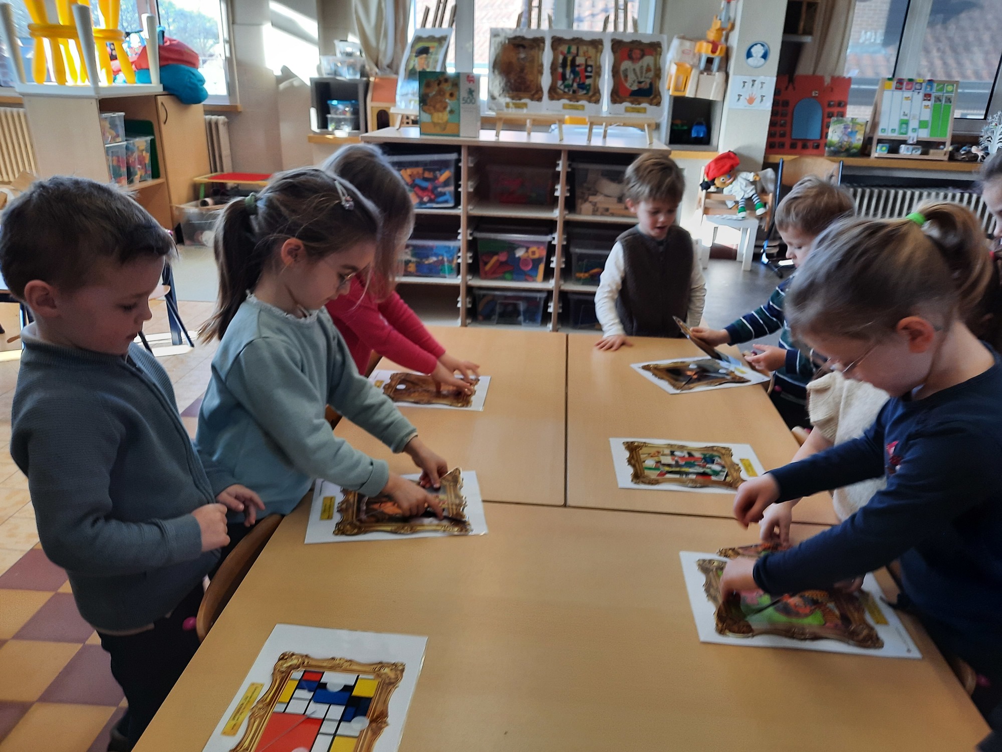 2KC: Kunst in stukken. Leg de puzzelstukken op het juiste schilderij. Kies wat voor jou het mooiste schilderij is.
