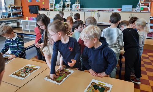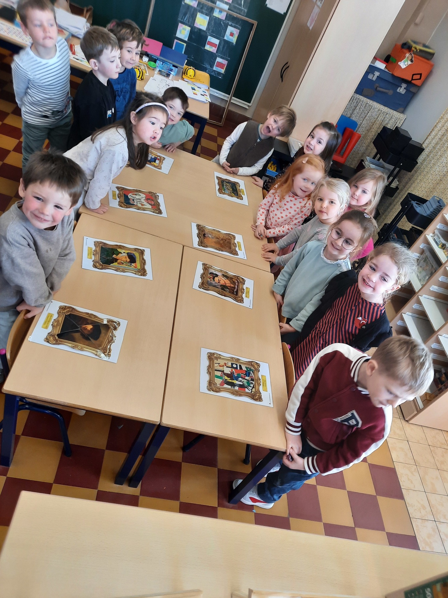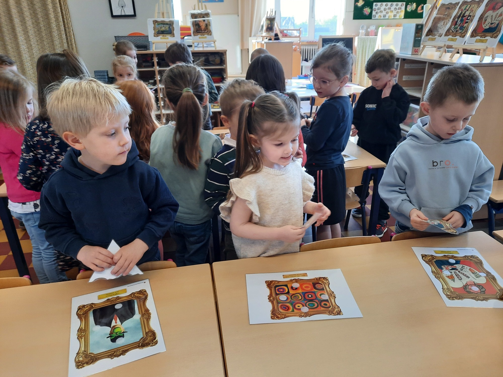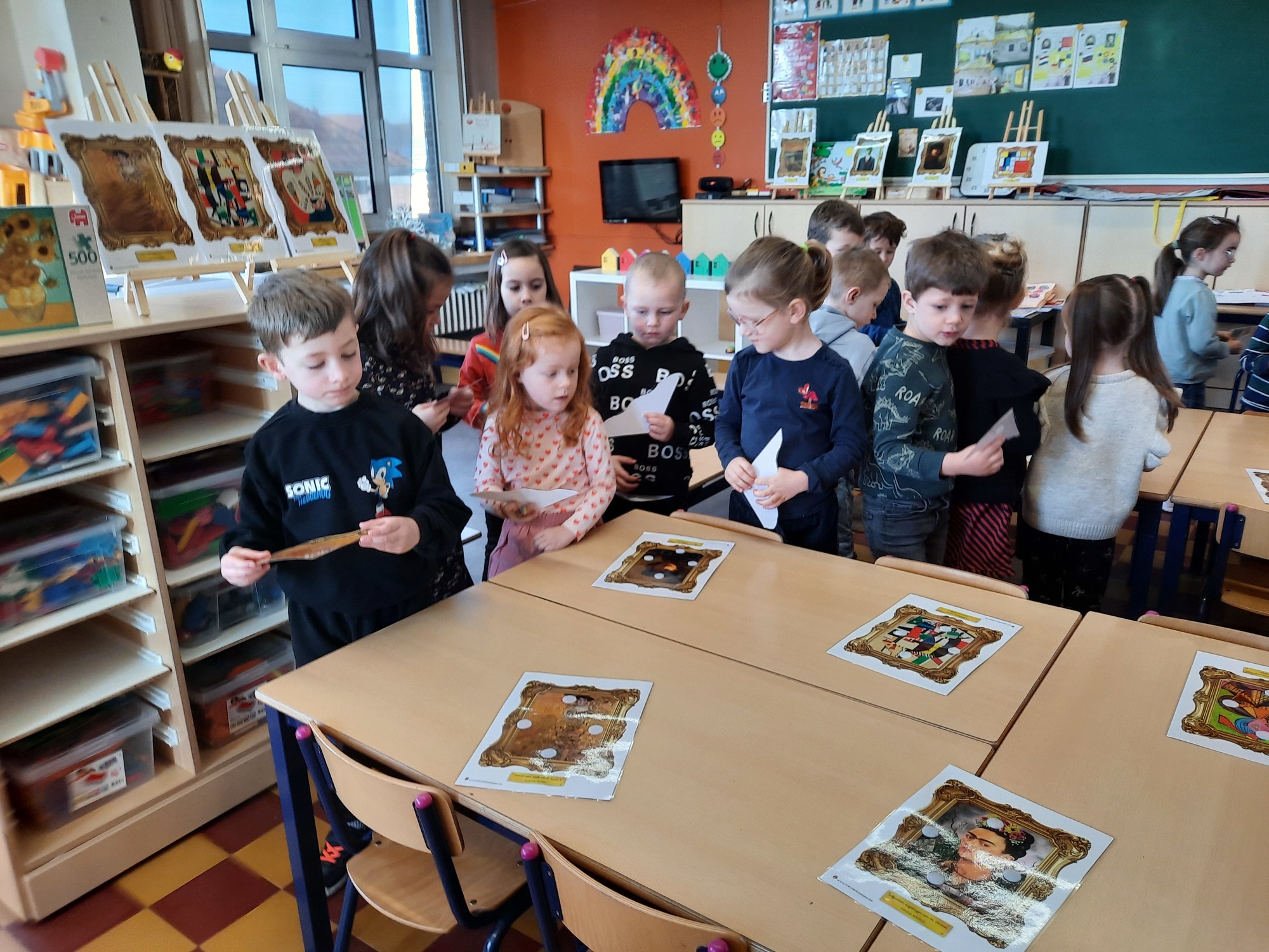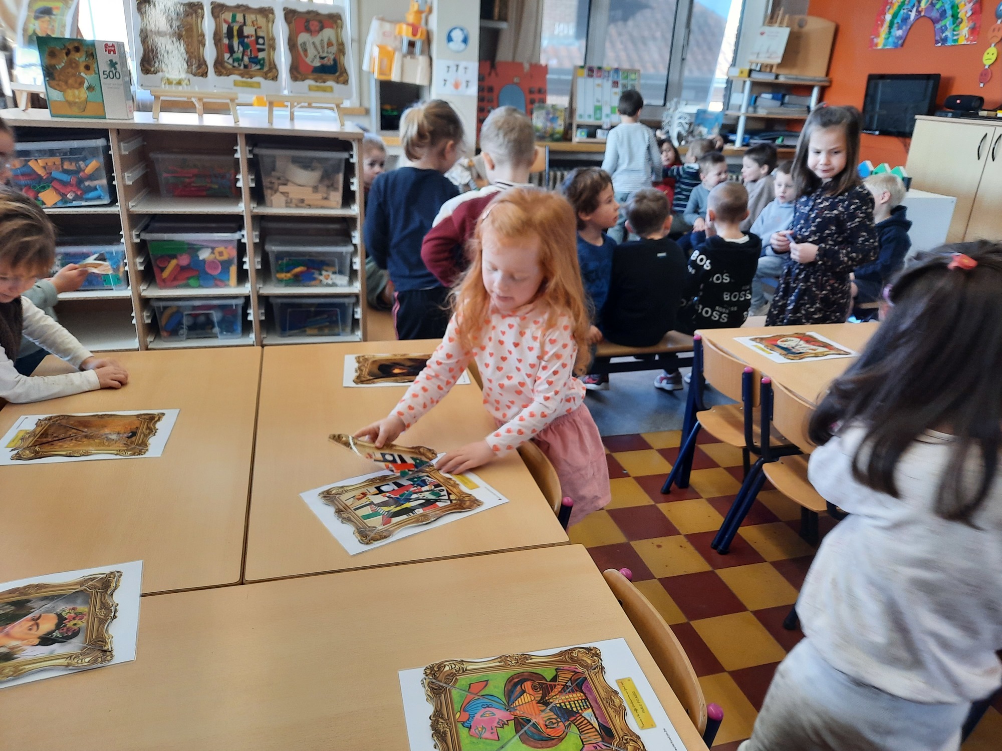2KC: Kunst in stukken. Leg de puzzelstukken op het juiste schilderij. Kies wat voor jou het mooiste schilderij is.
