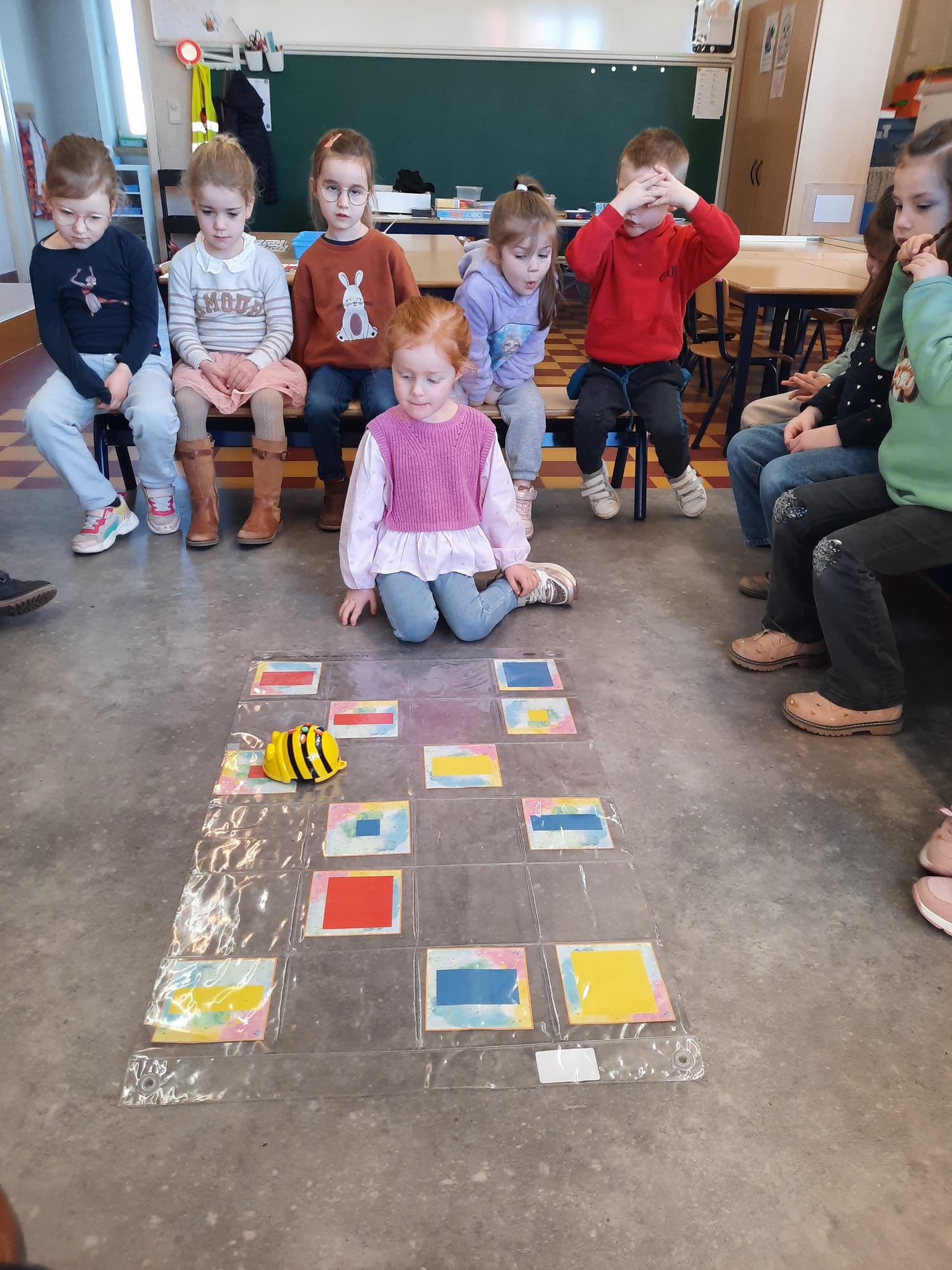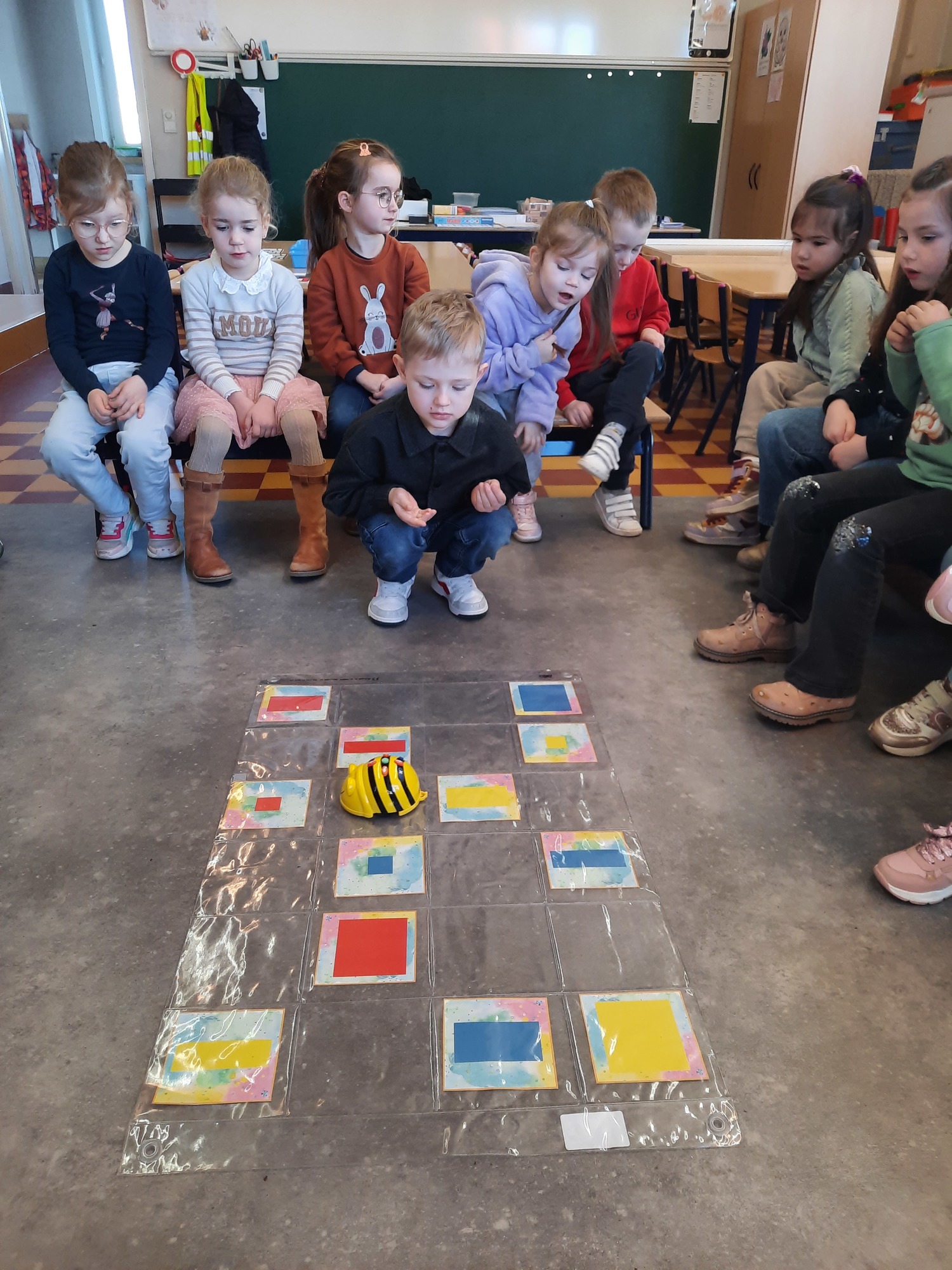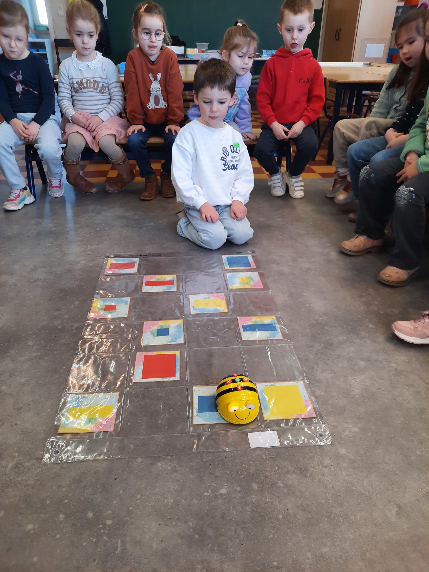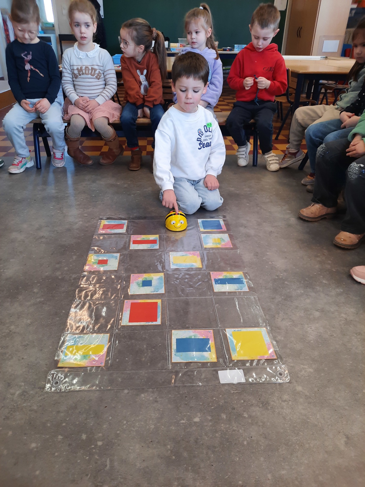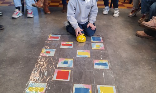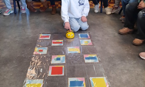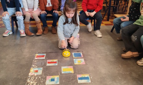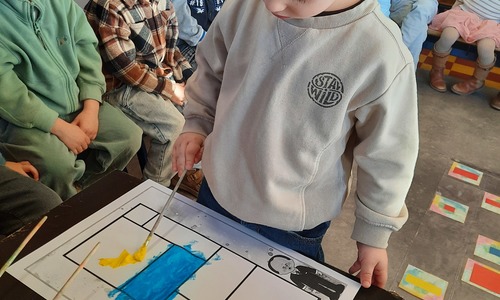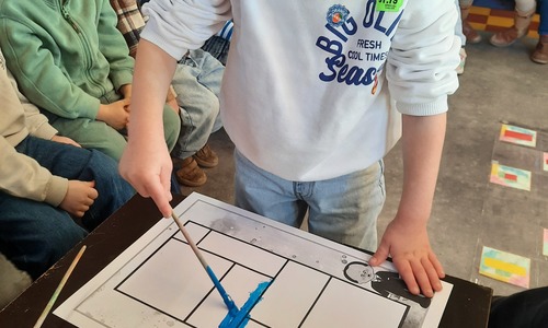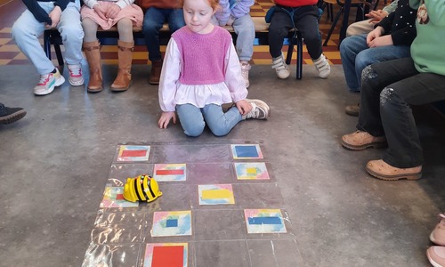 2KC: Met de Bee-bot het schilderij van Piet Mondriaan naschilderen.