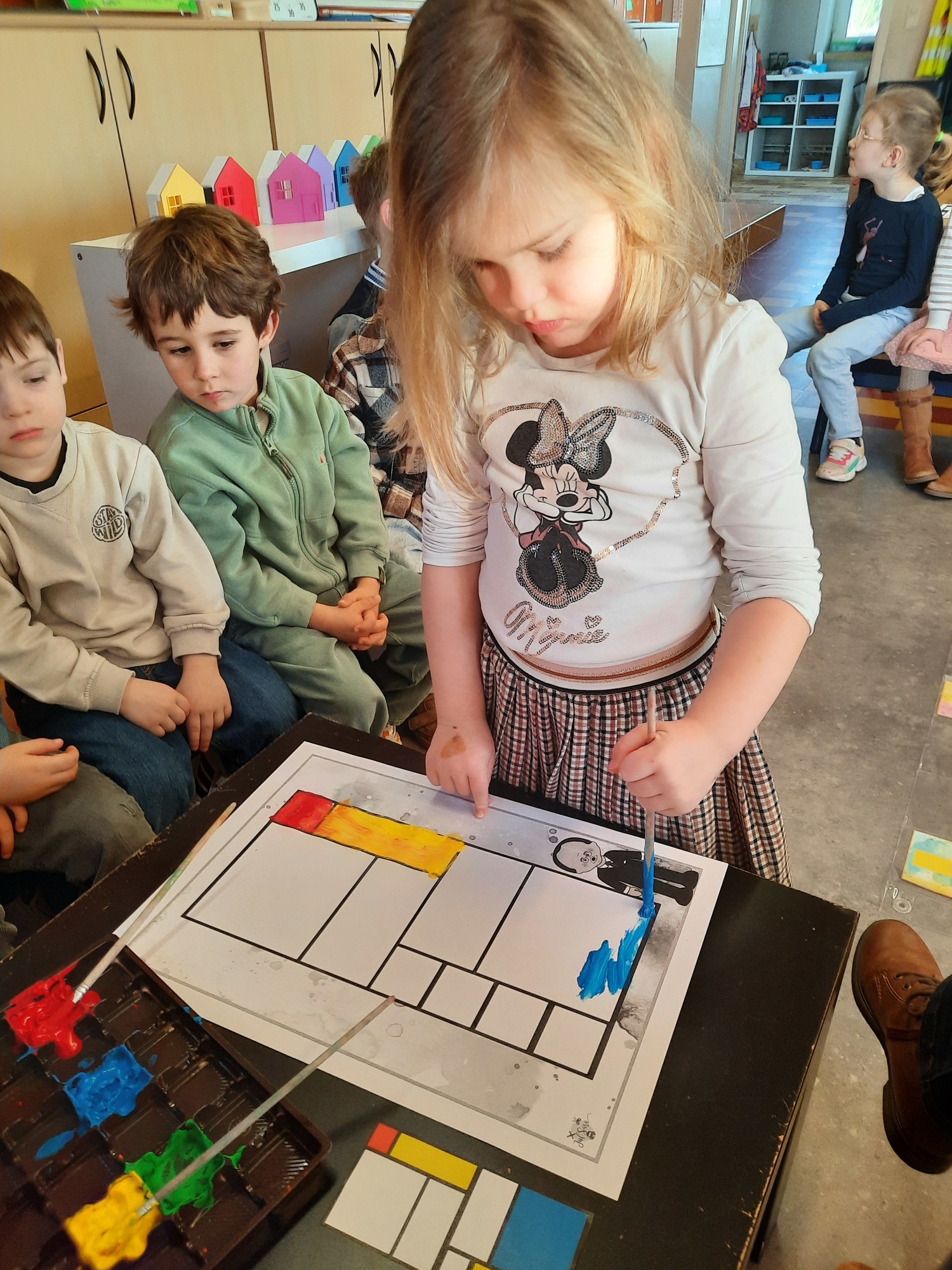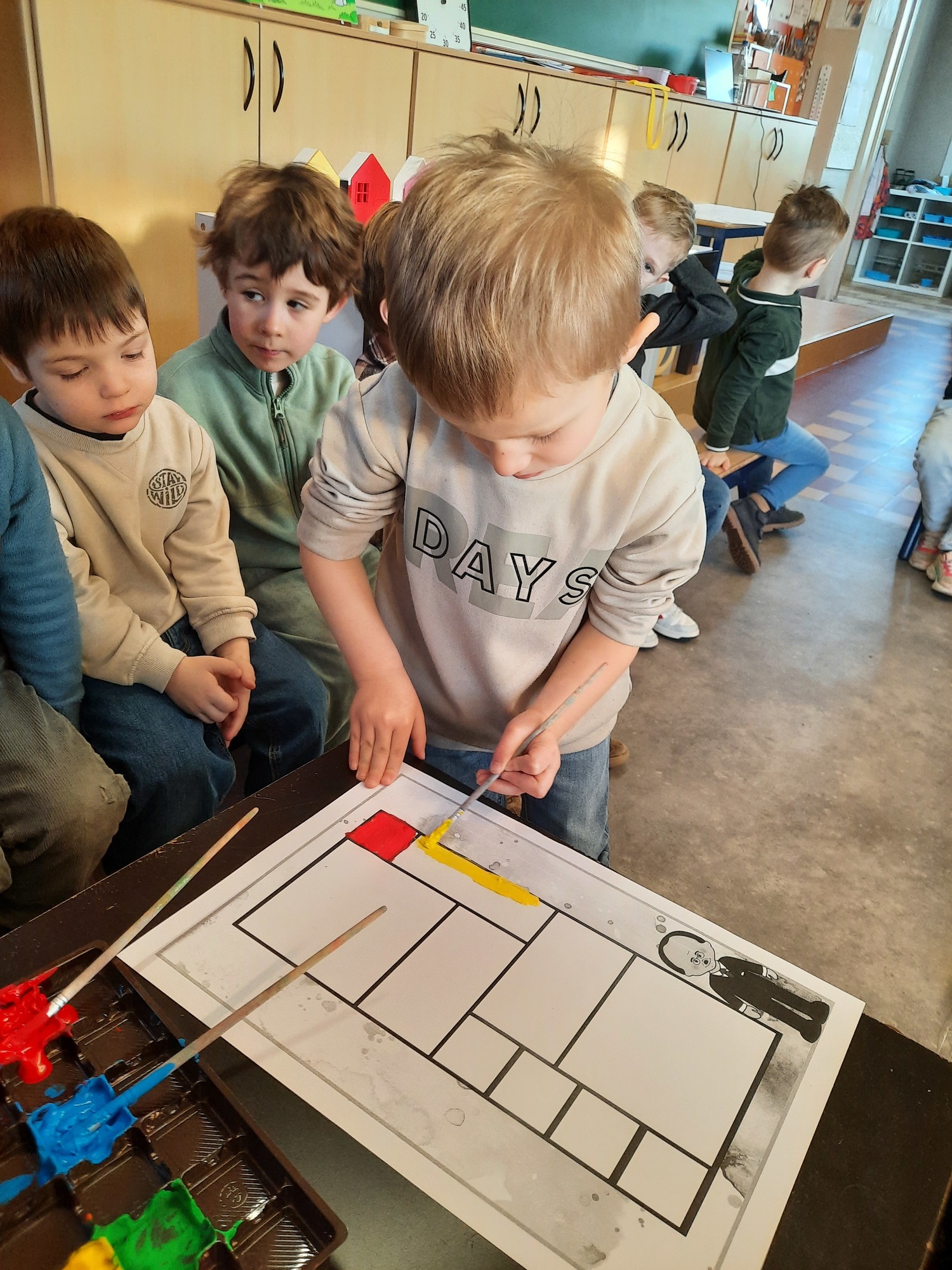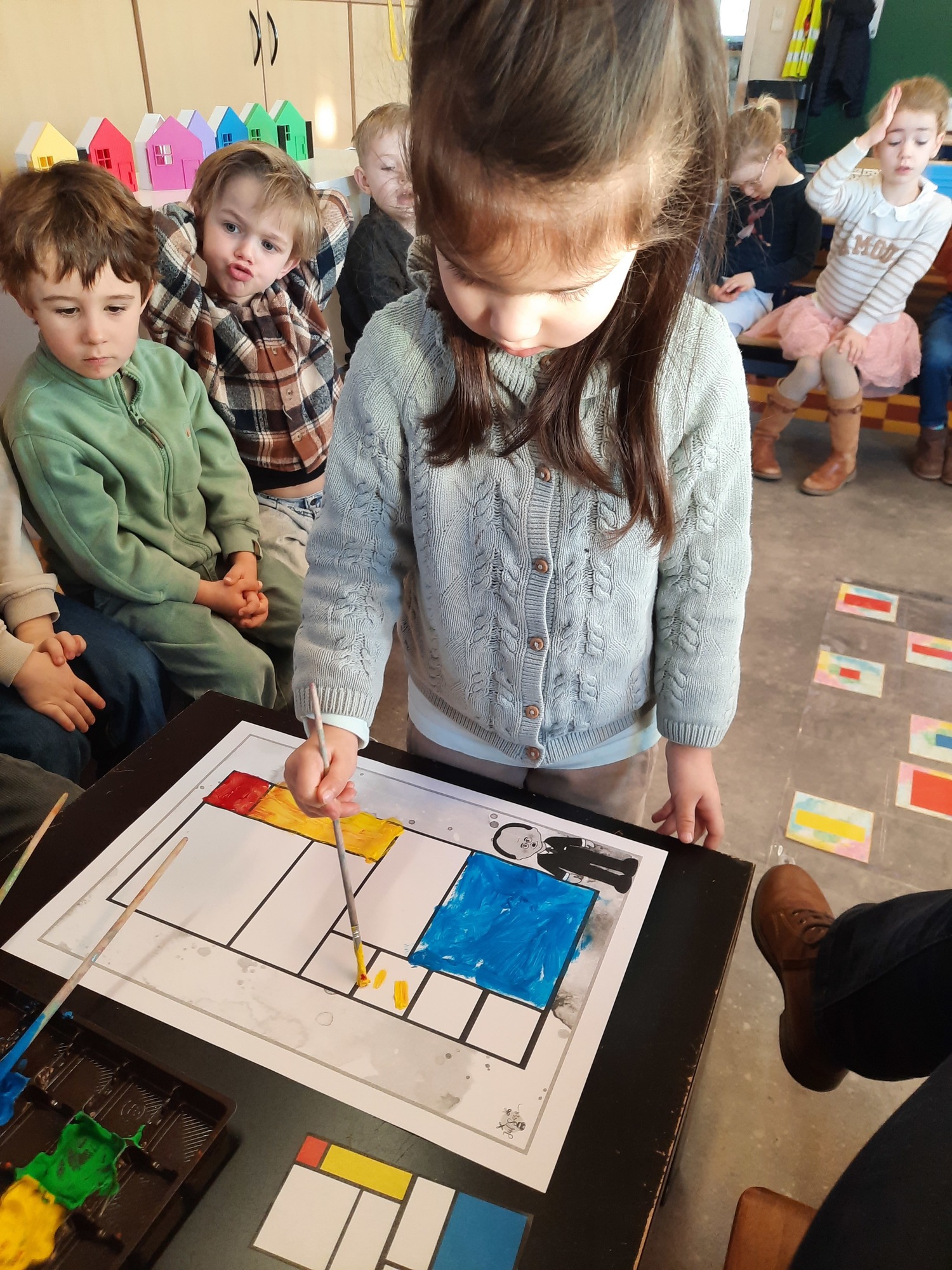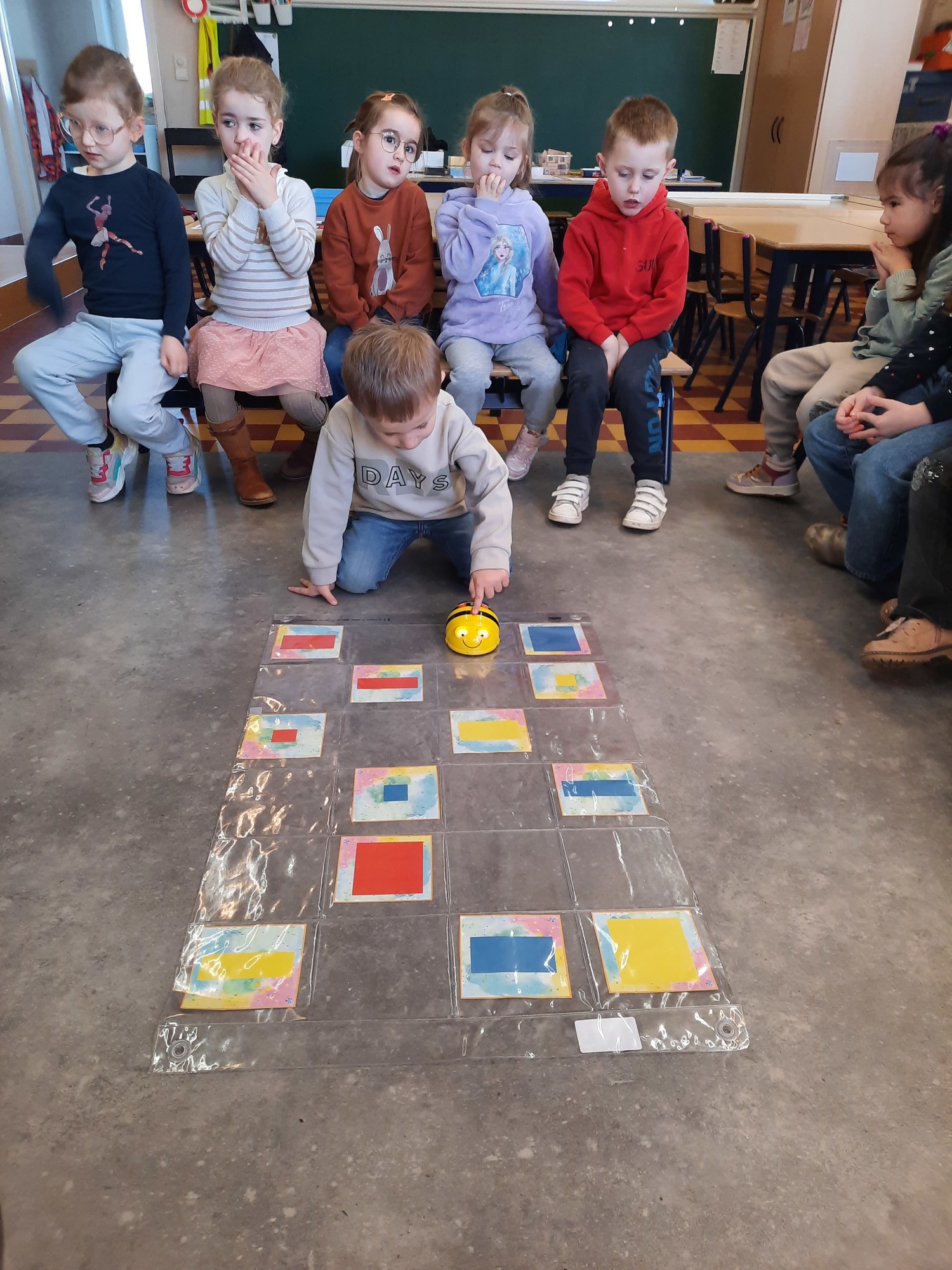 2KC: Met de Bee-bot het schilderij van Piet Mondriaan naschilderen.