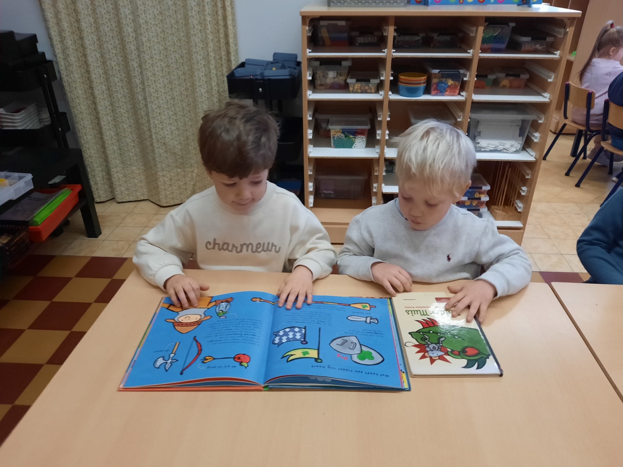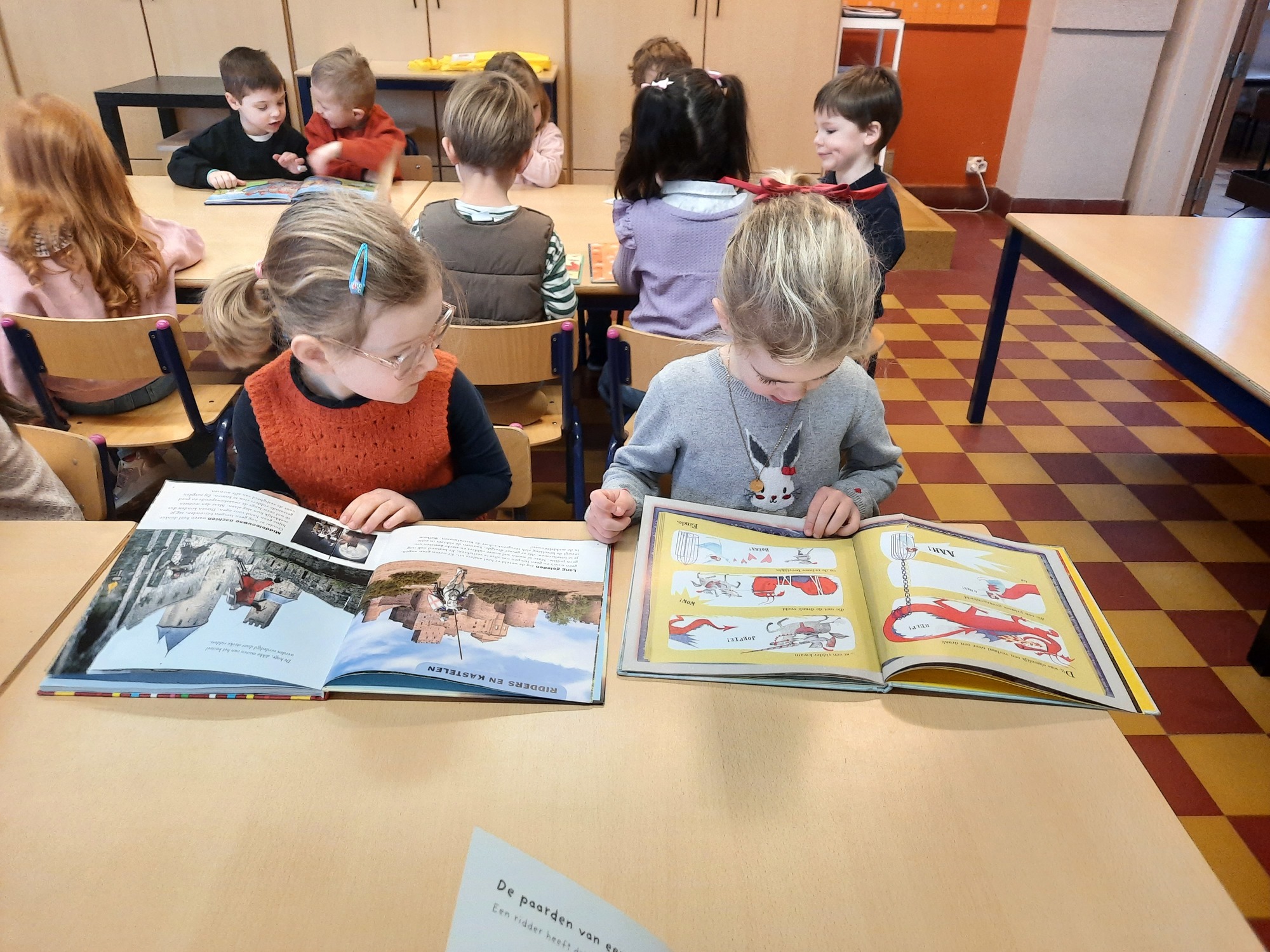 2KC: Start van het thema 'Ridder muis'. Kijken in de boeken en vertellen wat de kleuters zien.