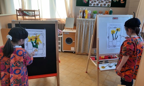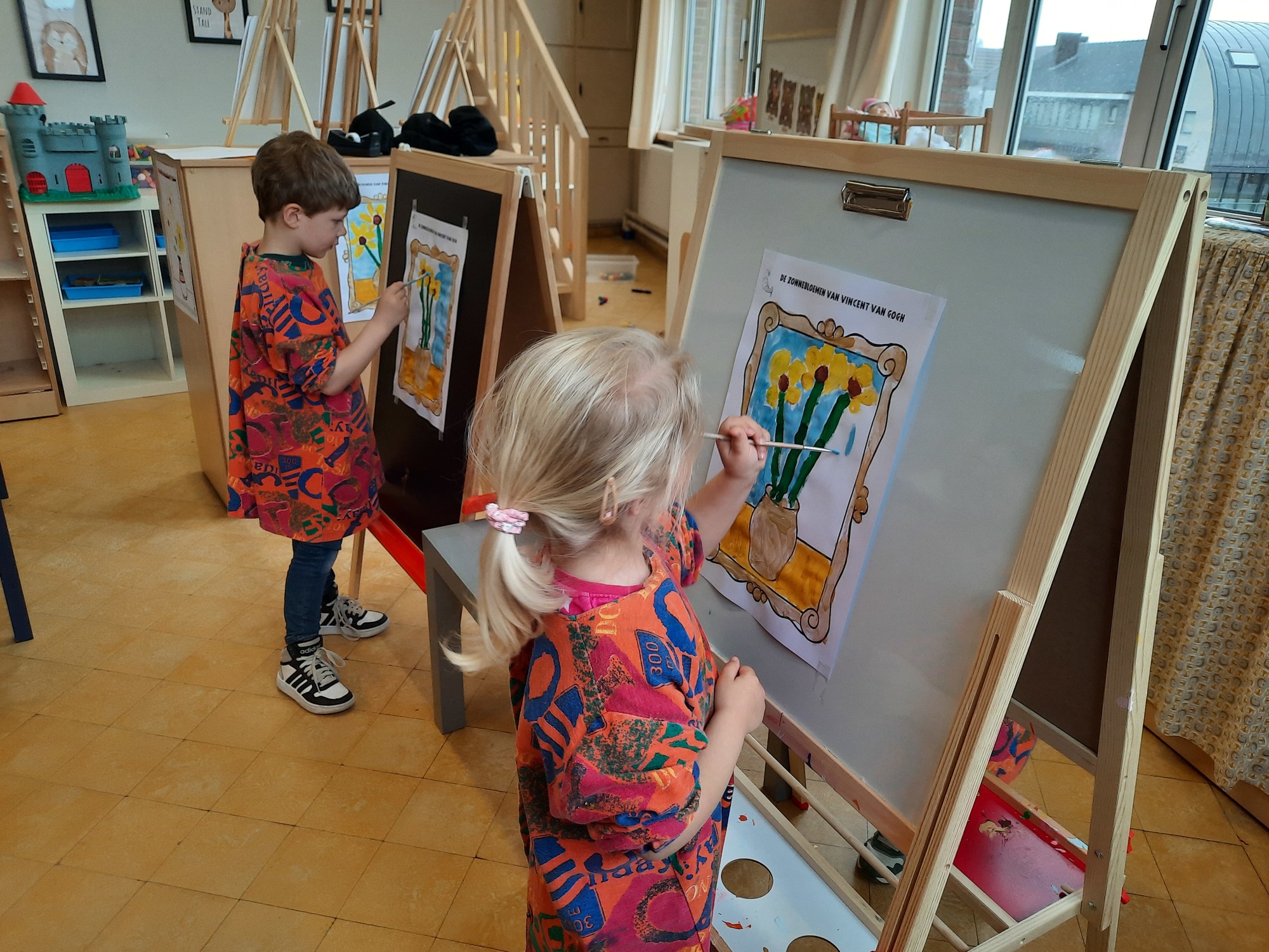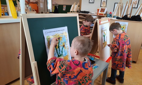 2KC: Van Gogh: de zonnebloemen. Tekenen en schilderen.