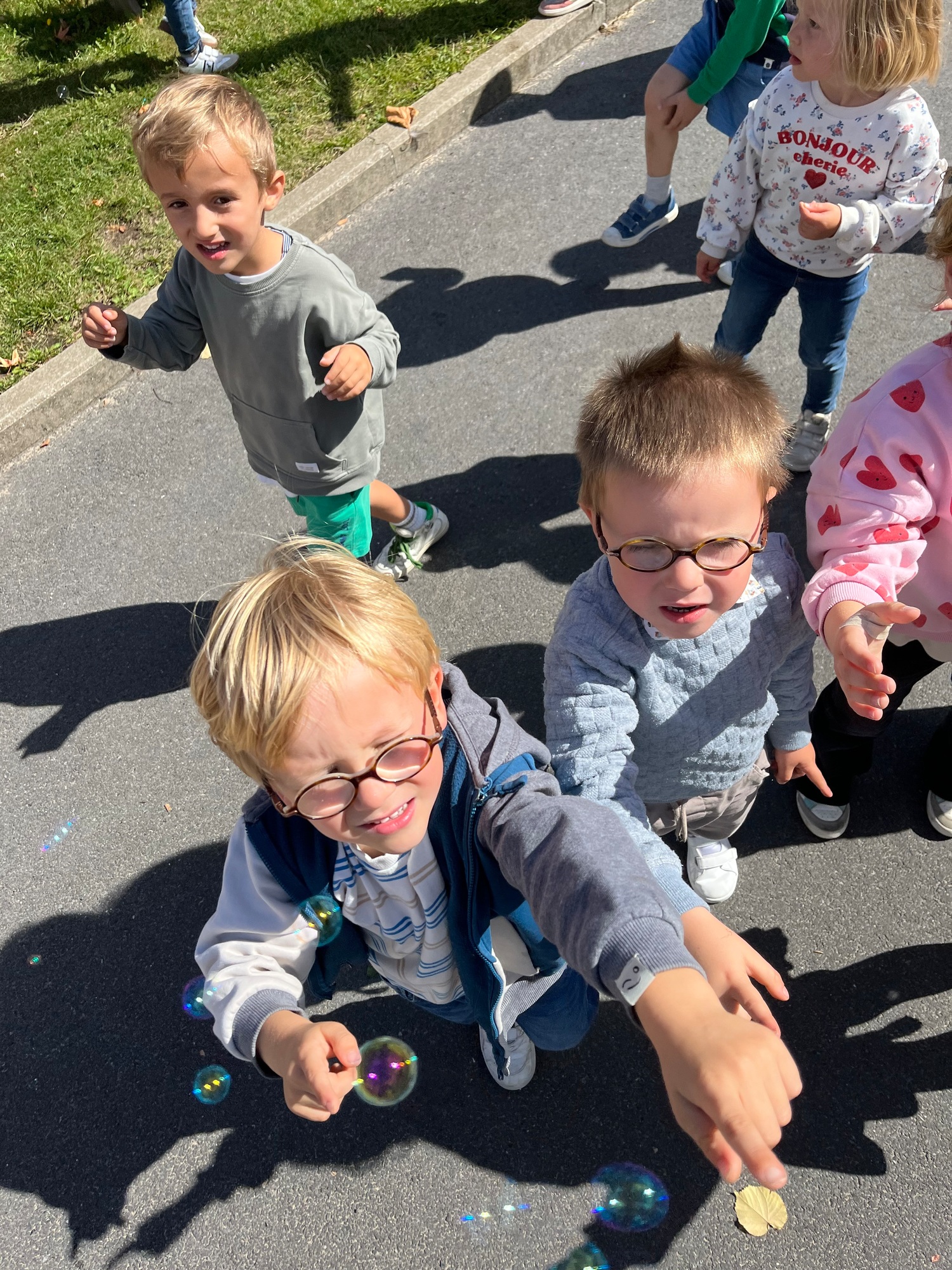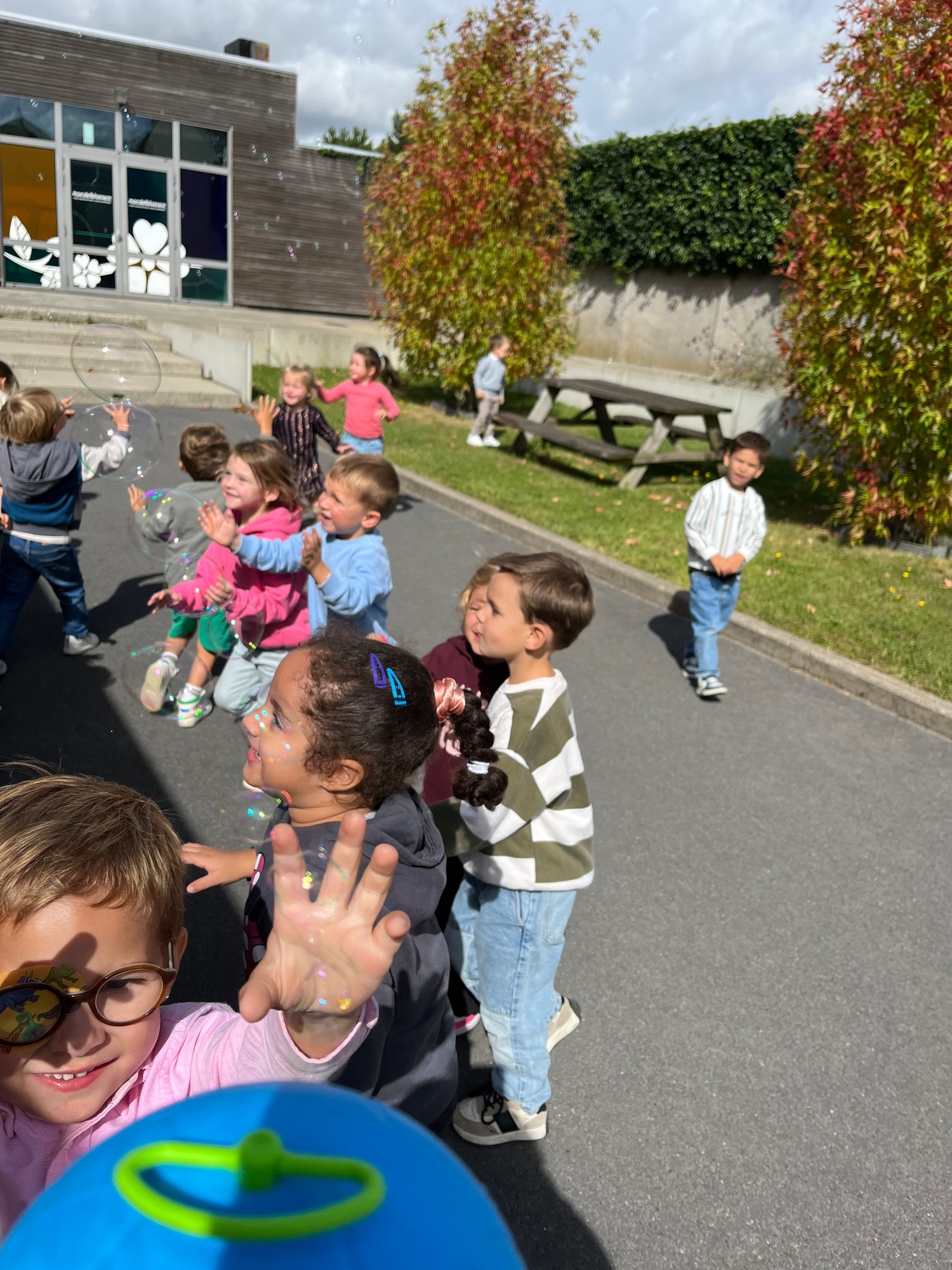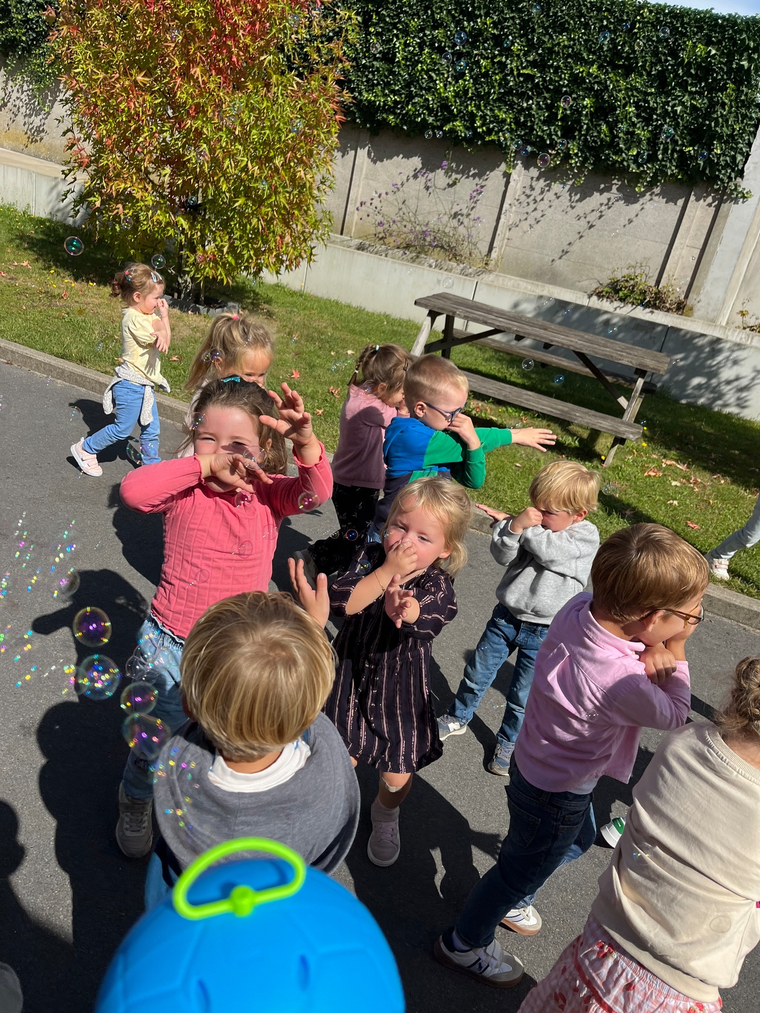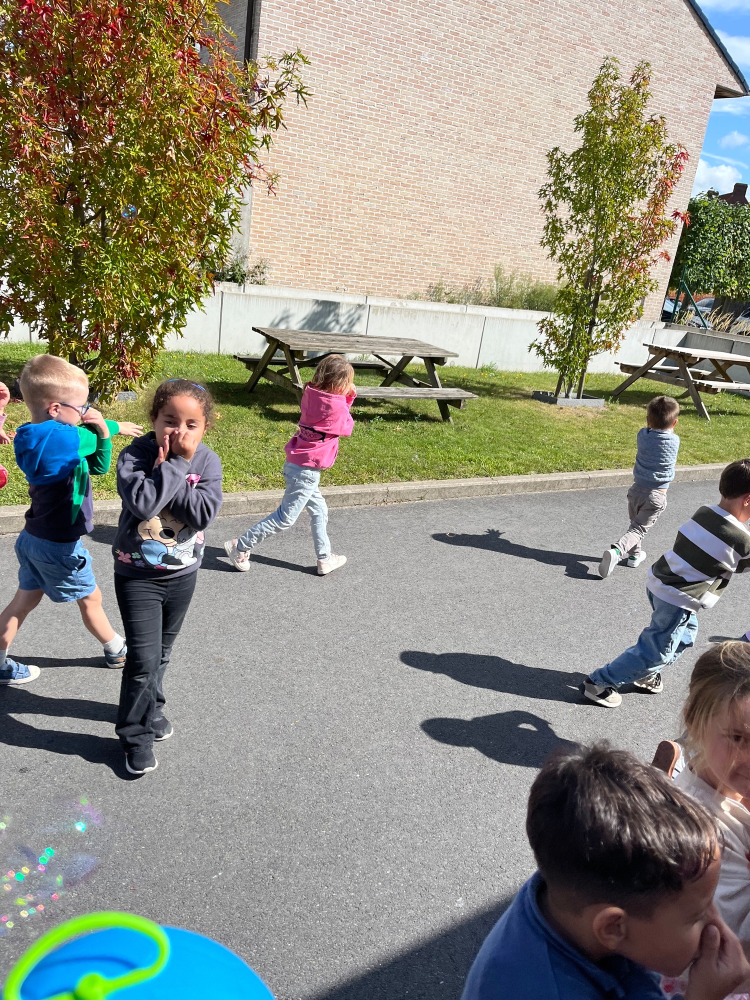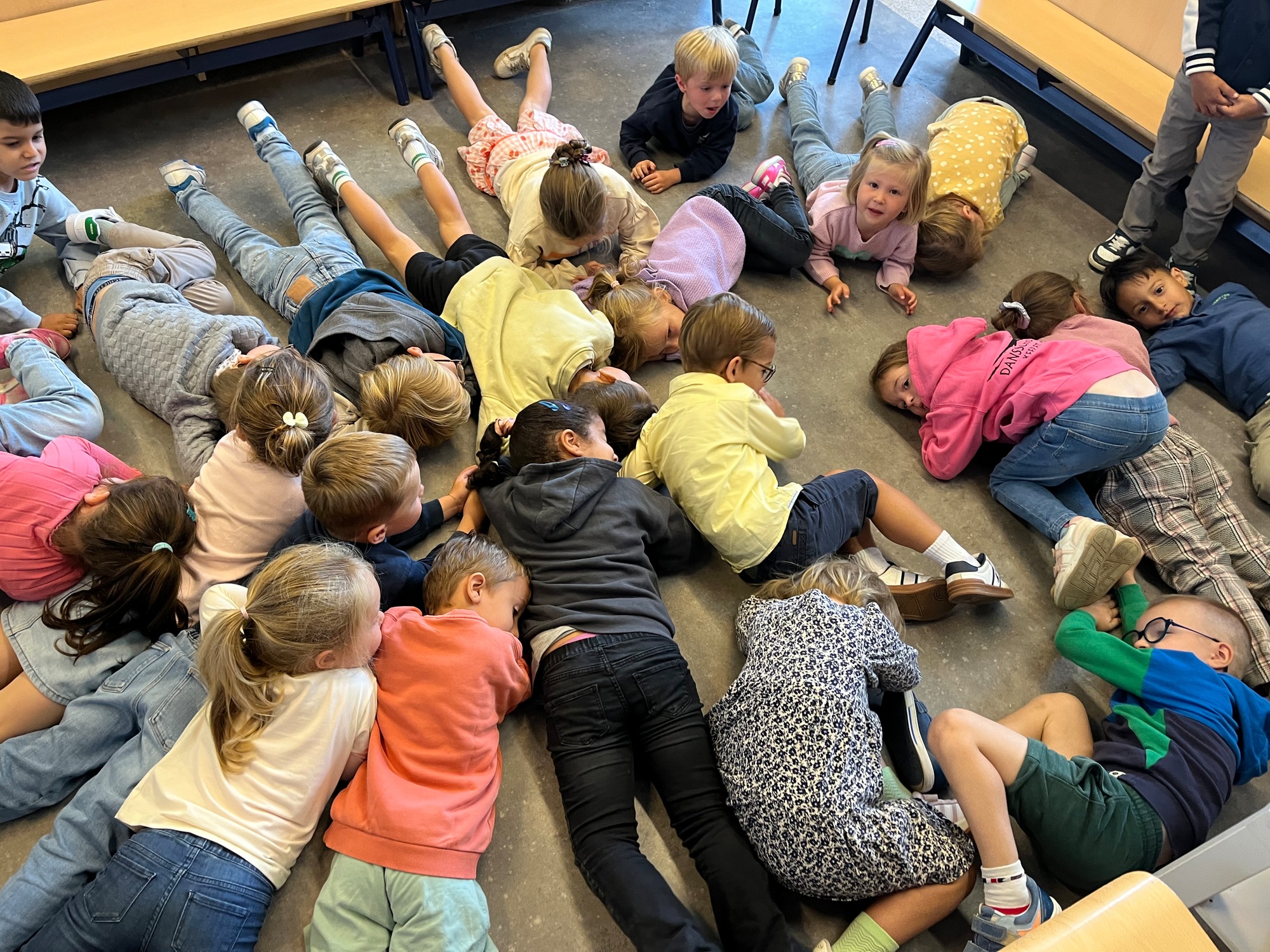 De kinderen maakten kennis met de ‘Junglemaatjes’ (leeuw, olifant, krokodil, papegaai en olifant). We dansten, maakten bellen kapot, luisterden naar een verhaal om rustig te worden, maakten samen klasafspraken die voor elk van ons haalbaar en duidelijk zijn, kwamen elk om de beurt vertellen wat we graag eten / graag doen / nog moeilijk vinden…