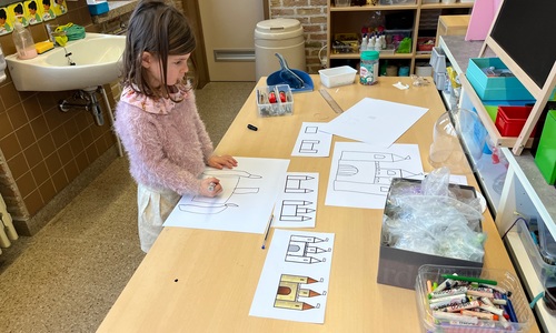 2KA: BOUW EEN KASTEEL MET DE MAGNEETBLOKKEN EN TEKEN HET DAARNA CORRECT OVER EN KLEUR HET JUIST IN.