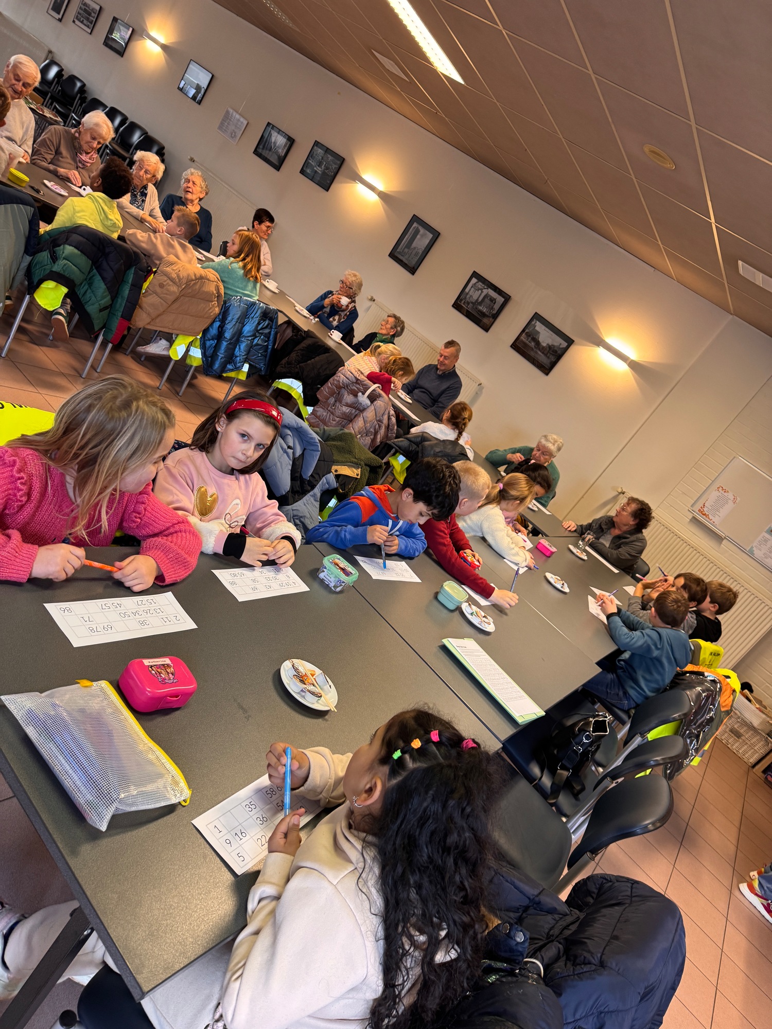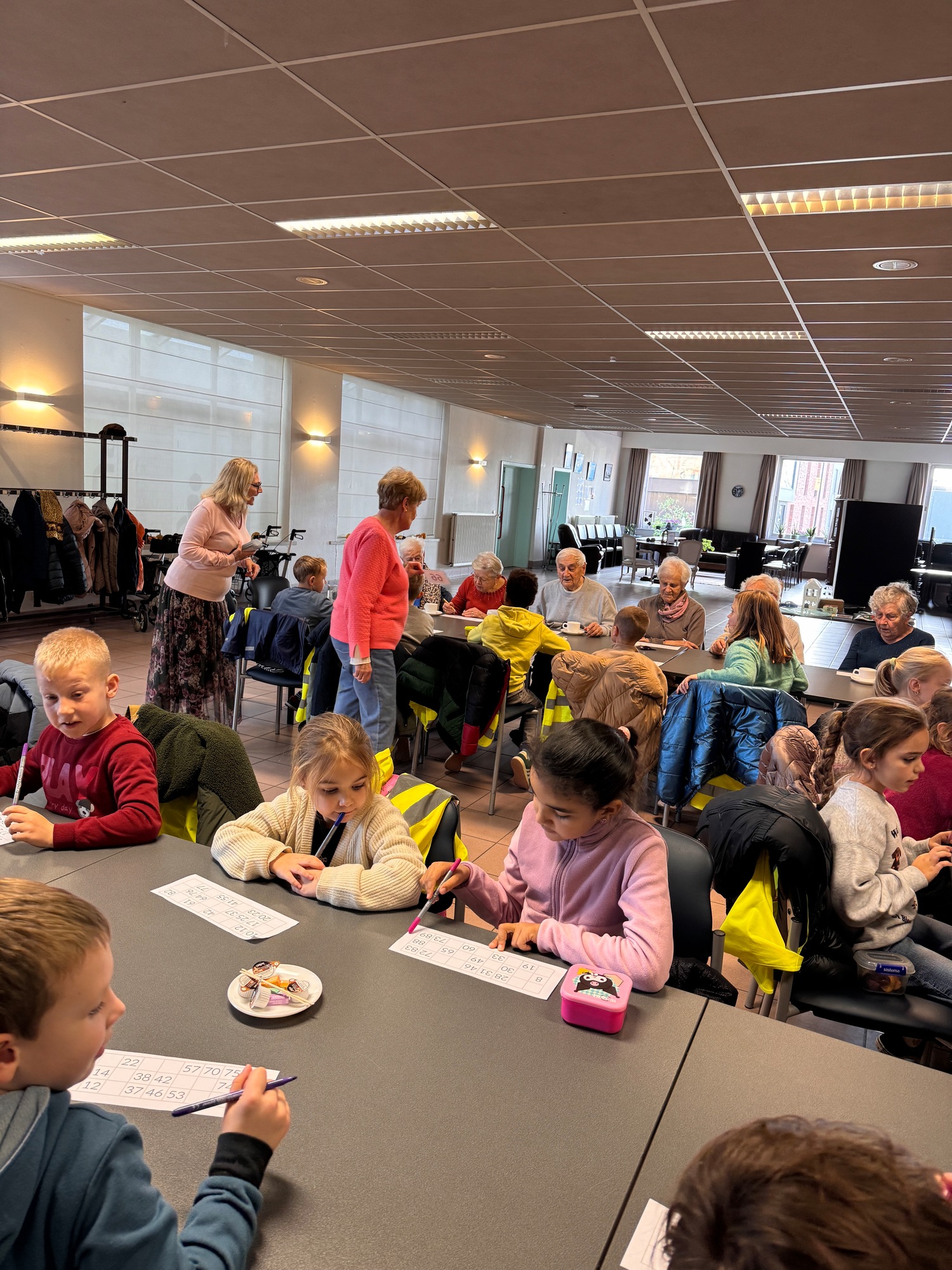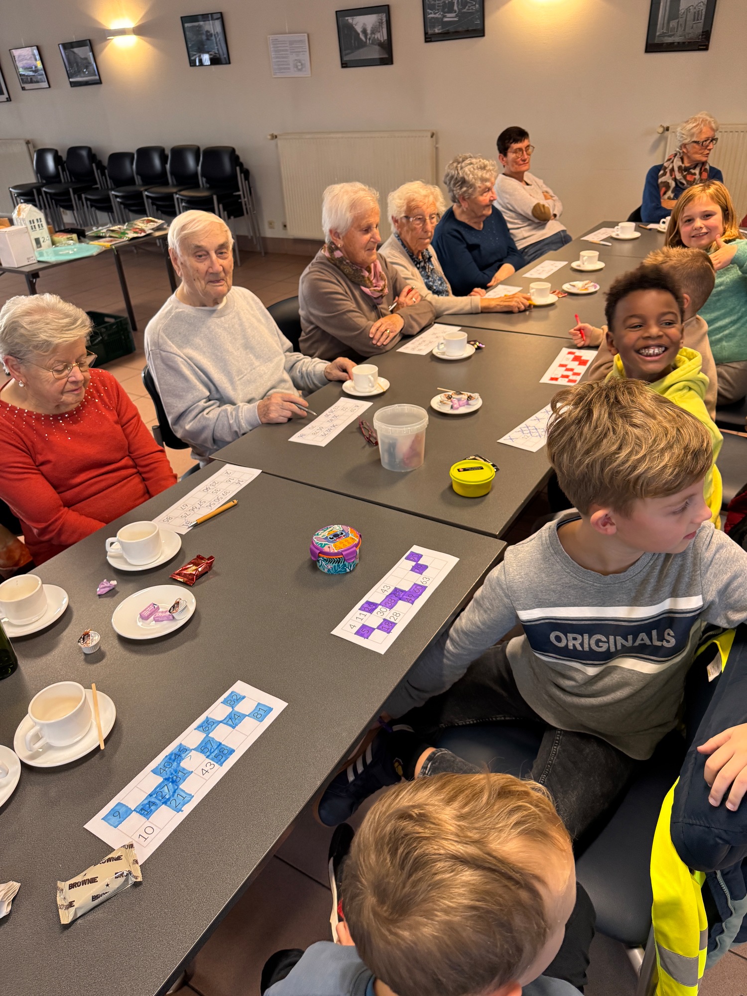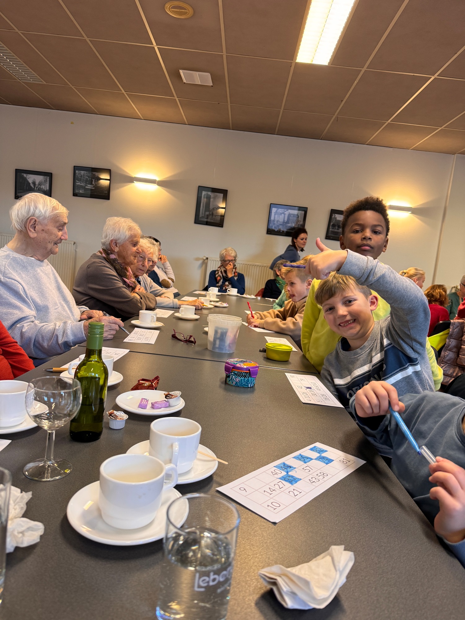 We speelden samen met enkele senioren een spelletje bingo. Gezellig samenzijn en ook de getallen tot 100 oefenen.