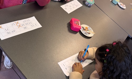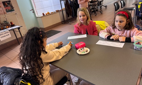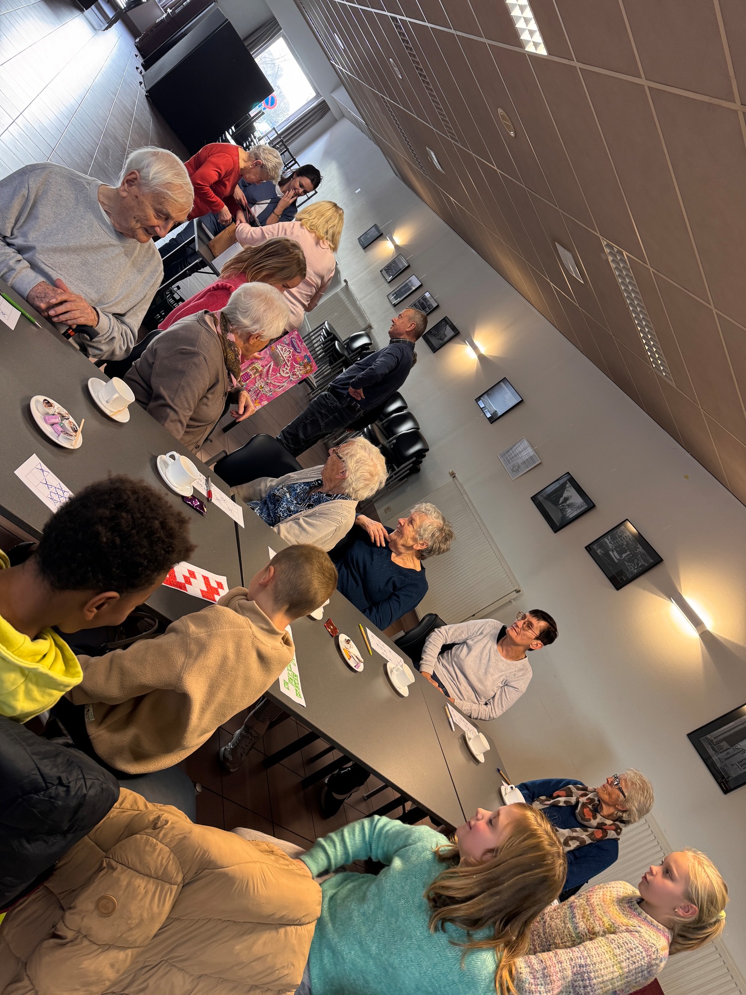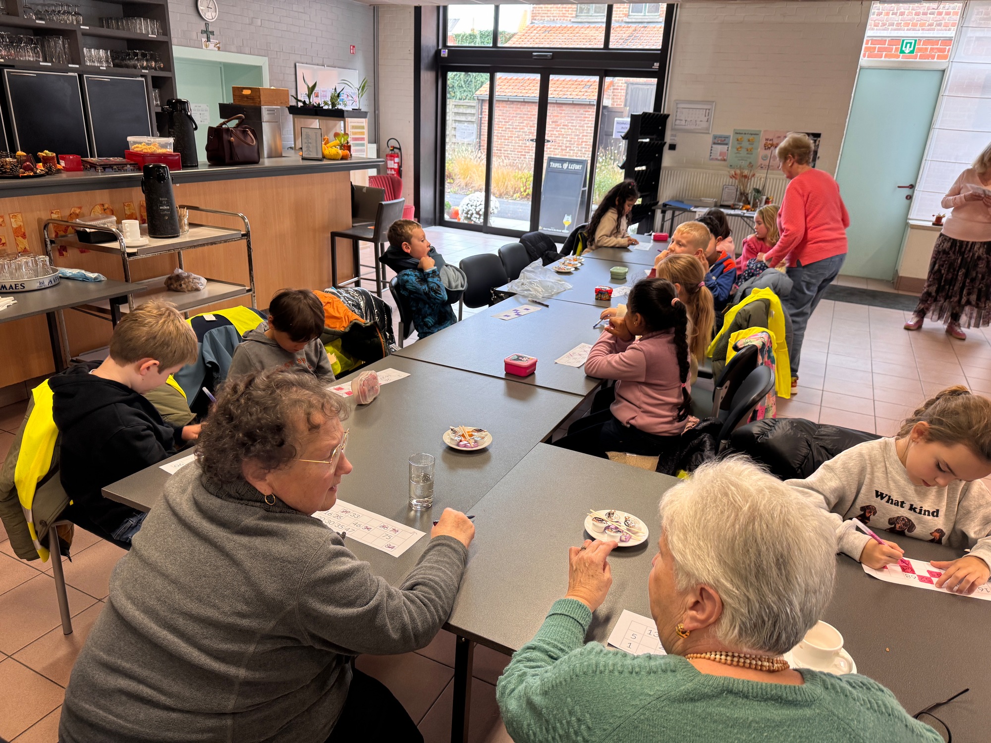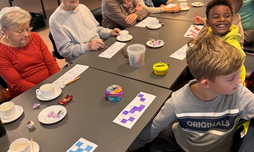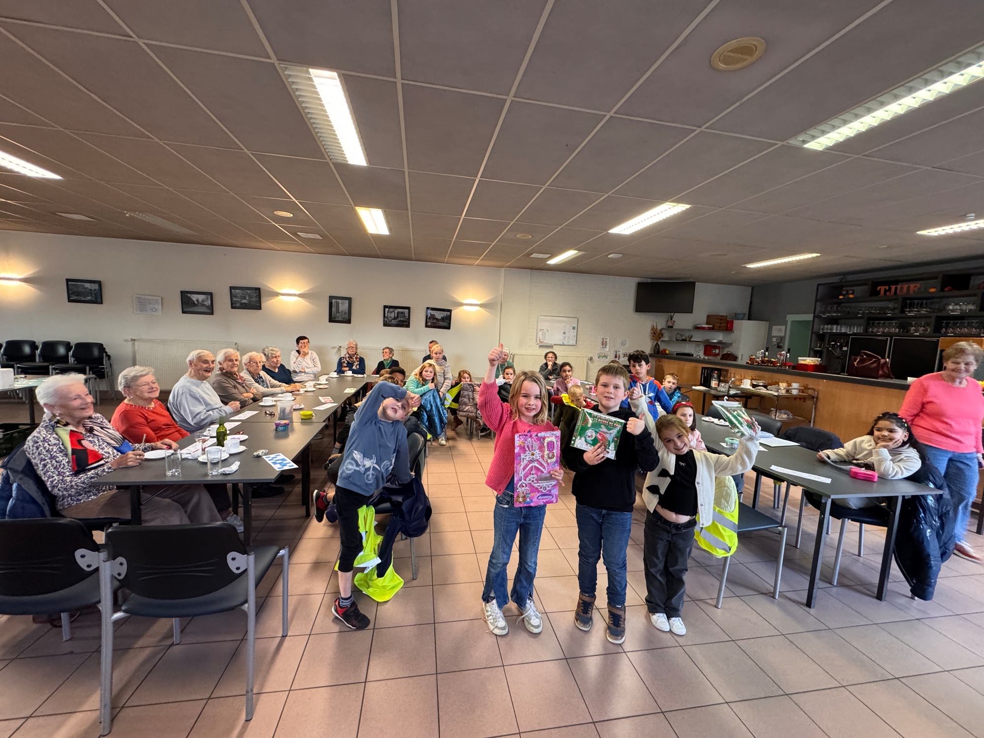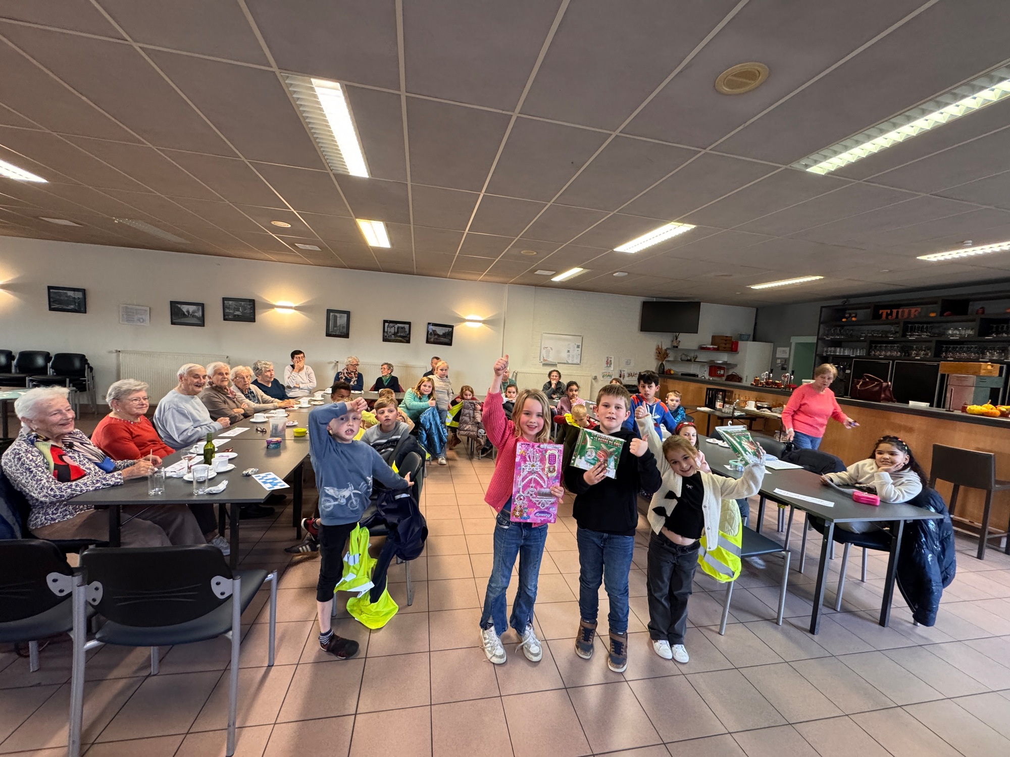 We speelden samen met enkele senioren een spelletje bingo. Gezellig samenzijn en ook de getallen tot 100 oefenen.