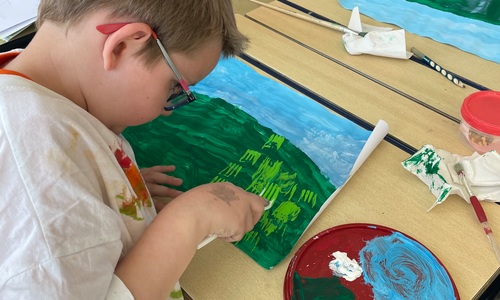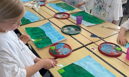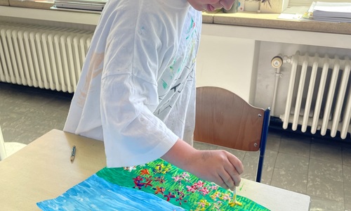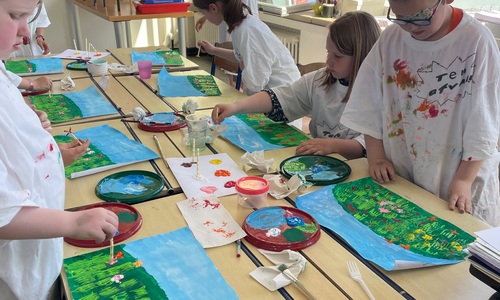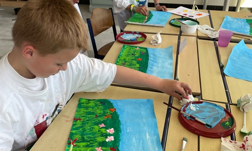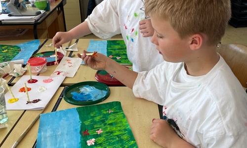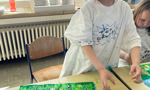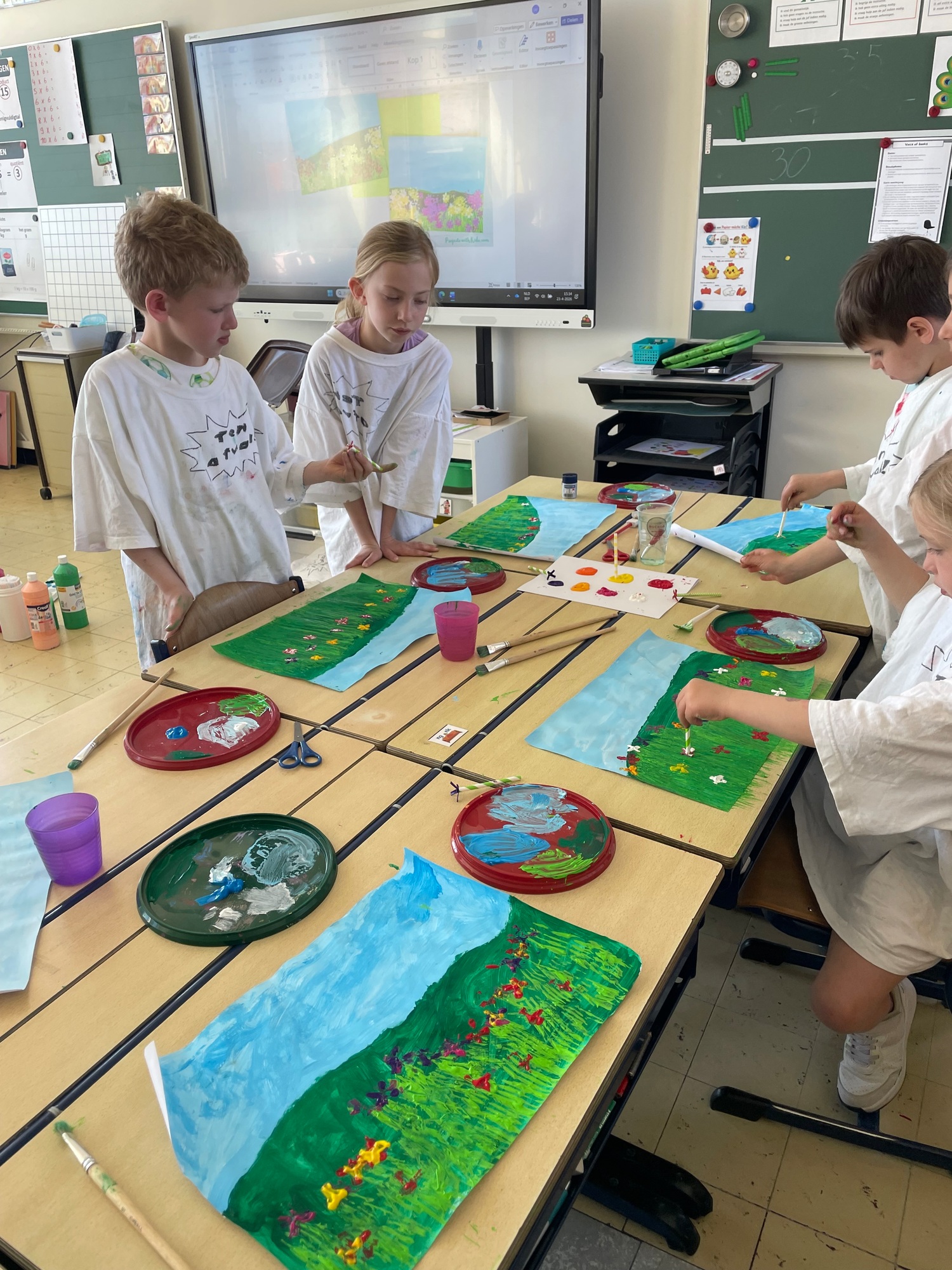 Een schilderij van een bloemenveld 2D