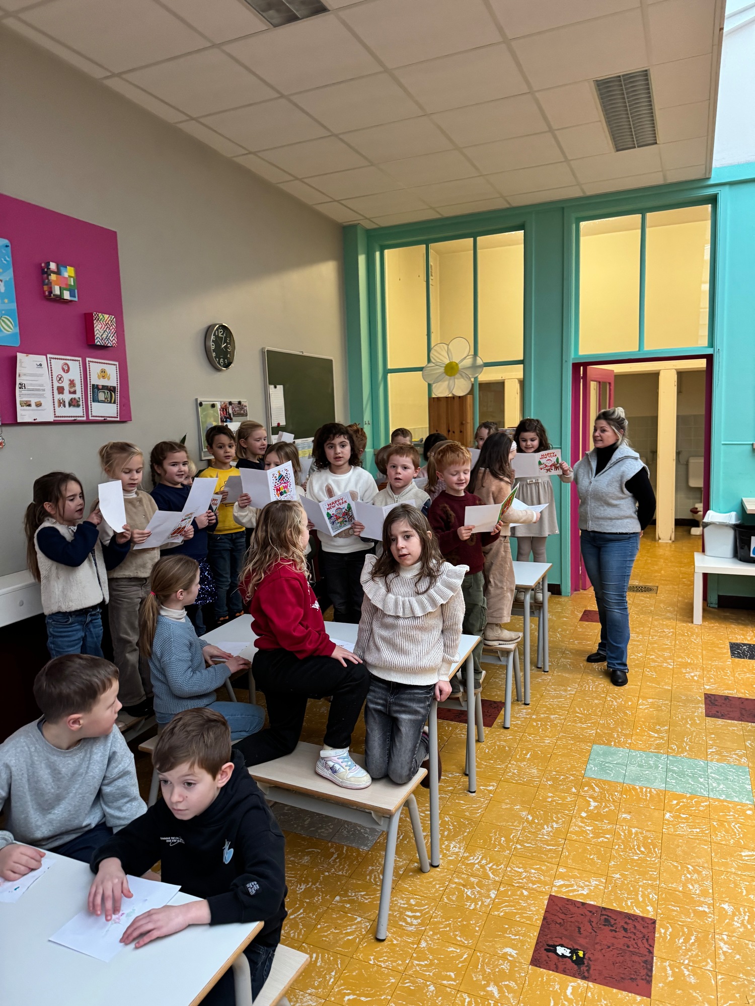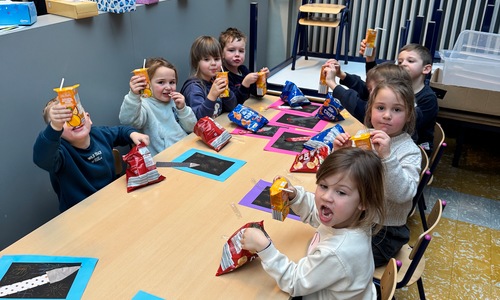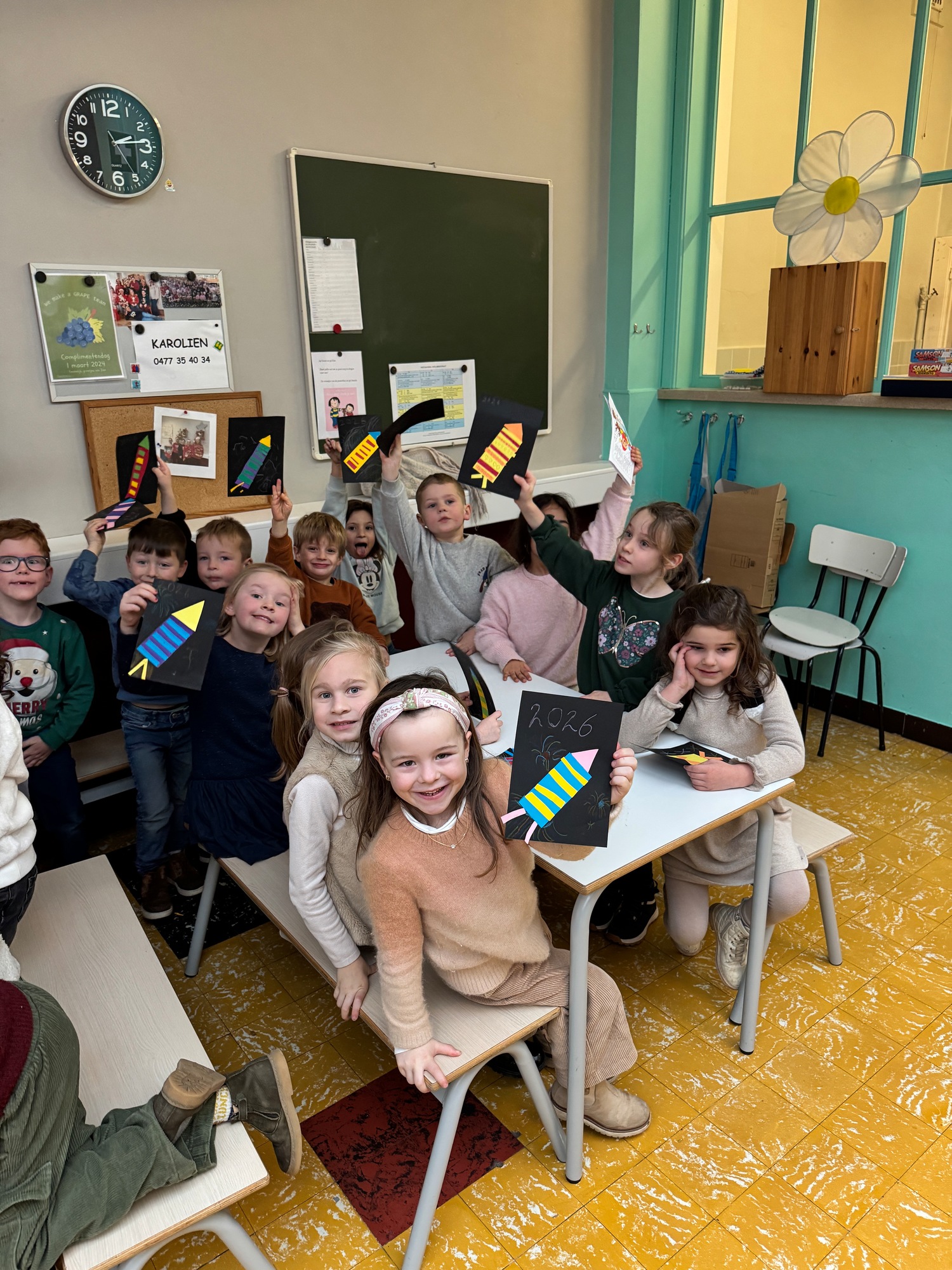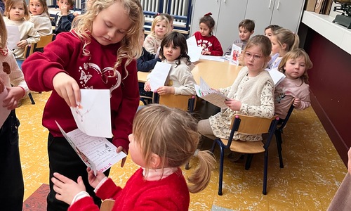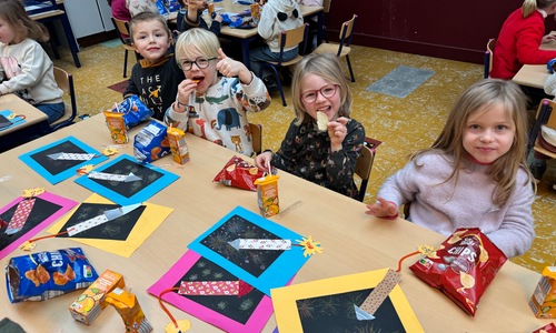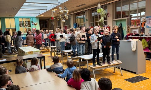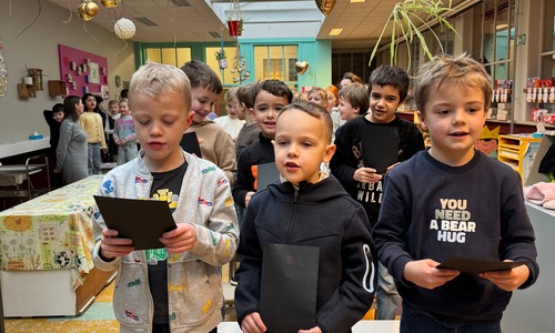 Naar jaarlijkse traditie vierden we ook dit jaar onze nieuwjaarsreceptie met alle kleuters van het derde kleuter en de leerlingen van het eerste leerjaar.