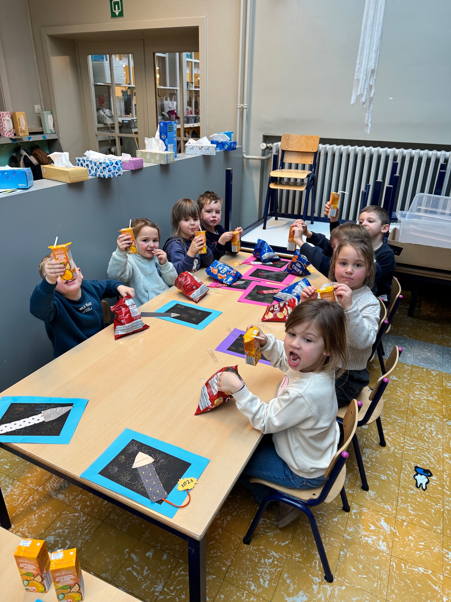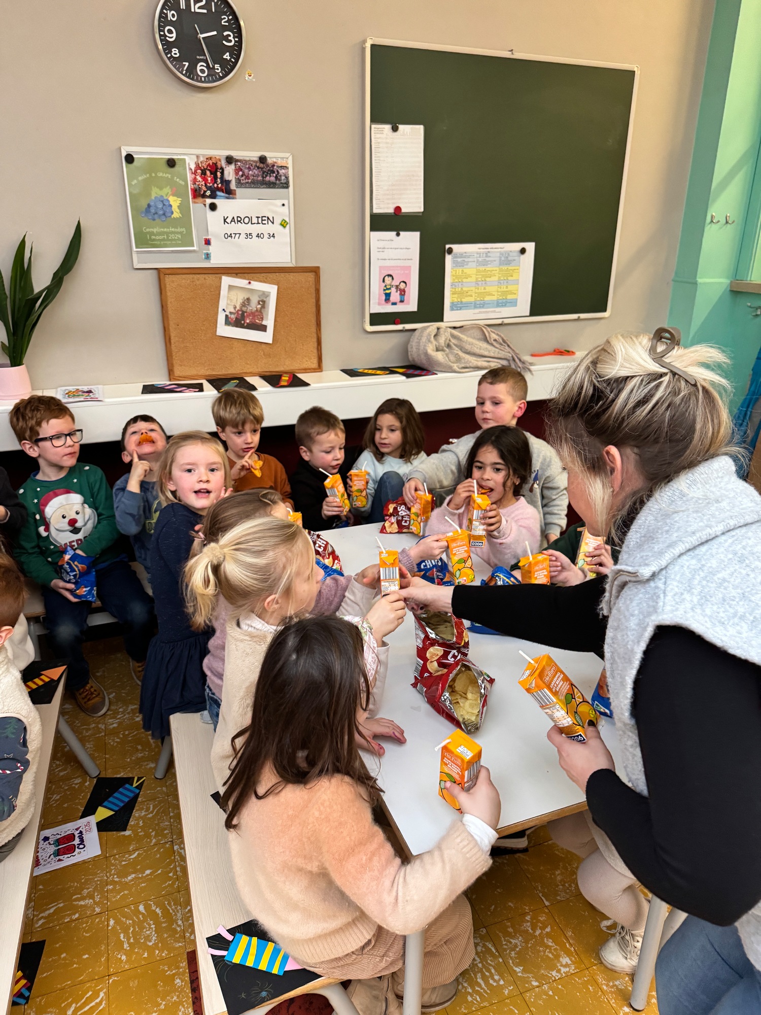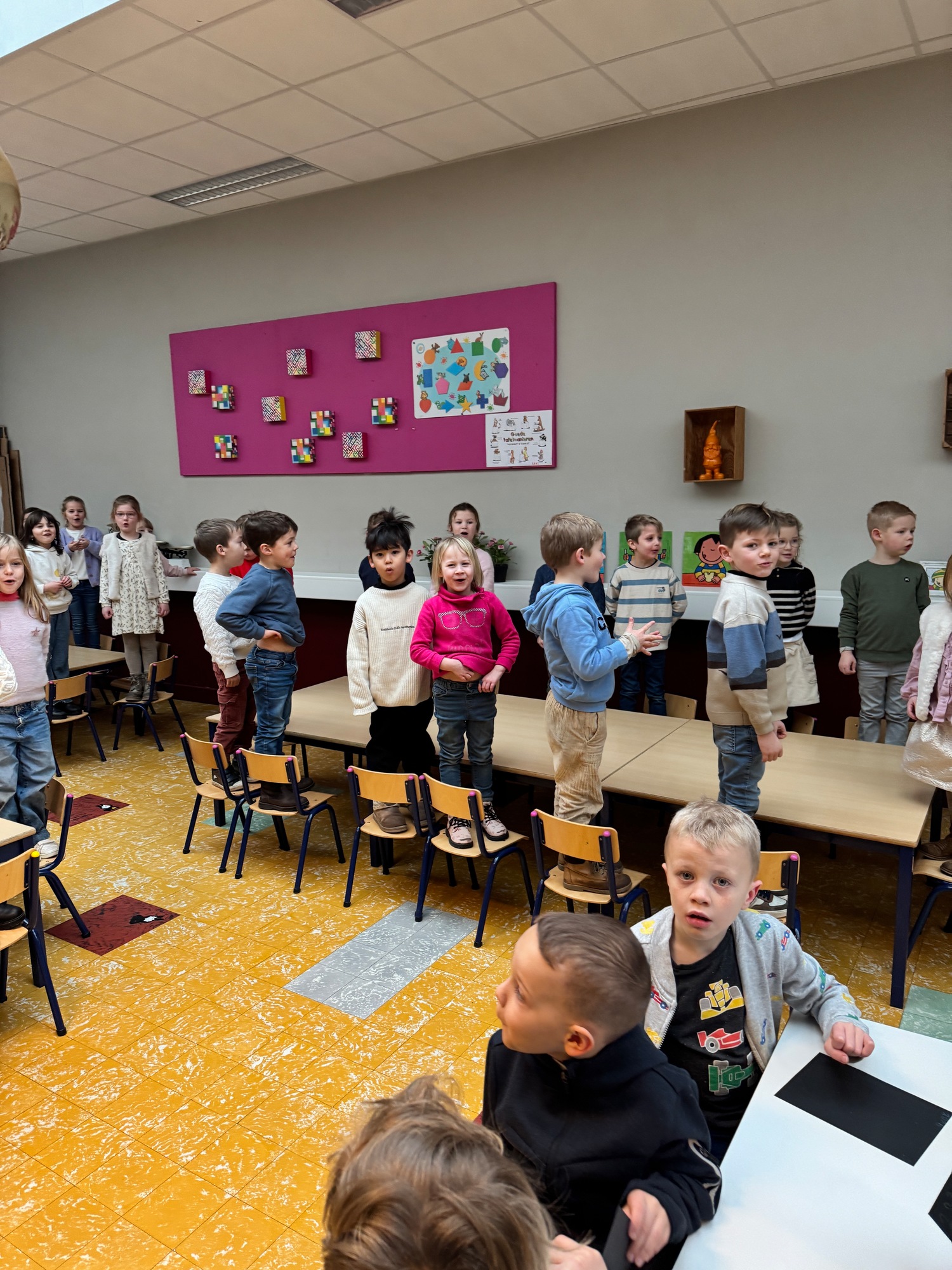 Naar jaarlijkse traditie vierden we ook dit jaar onze nieuwjaarsreceptie met alle kleuters van het derde kleuter en de leerlingen van het eerste leerjaar.