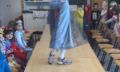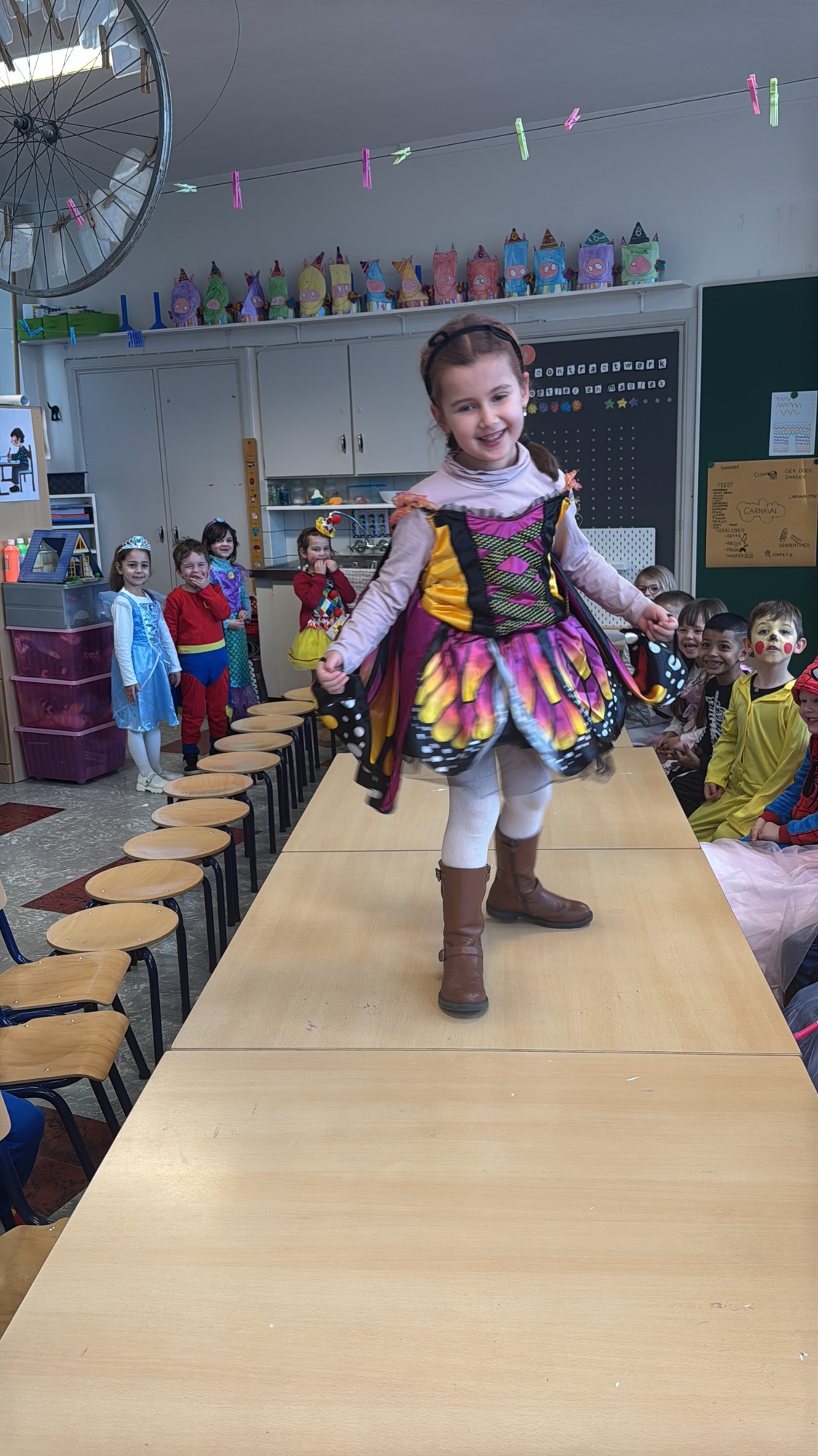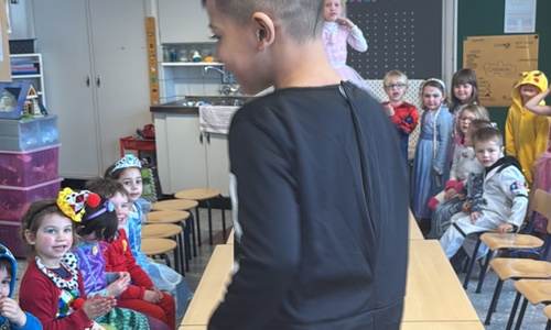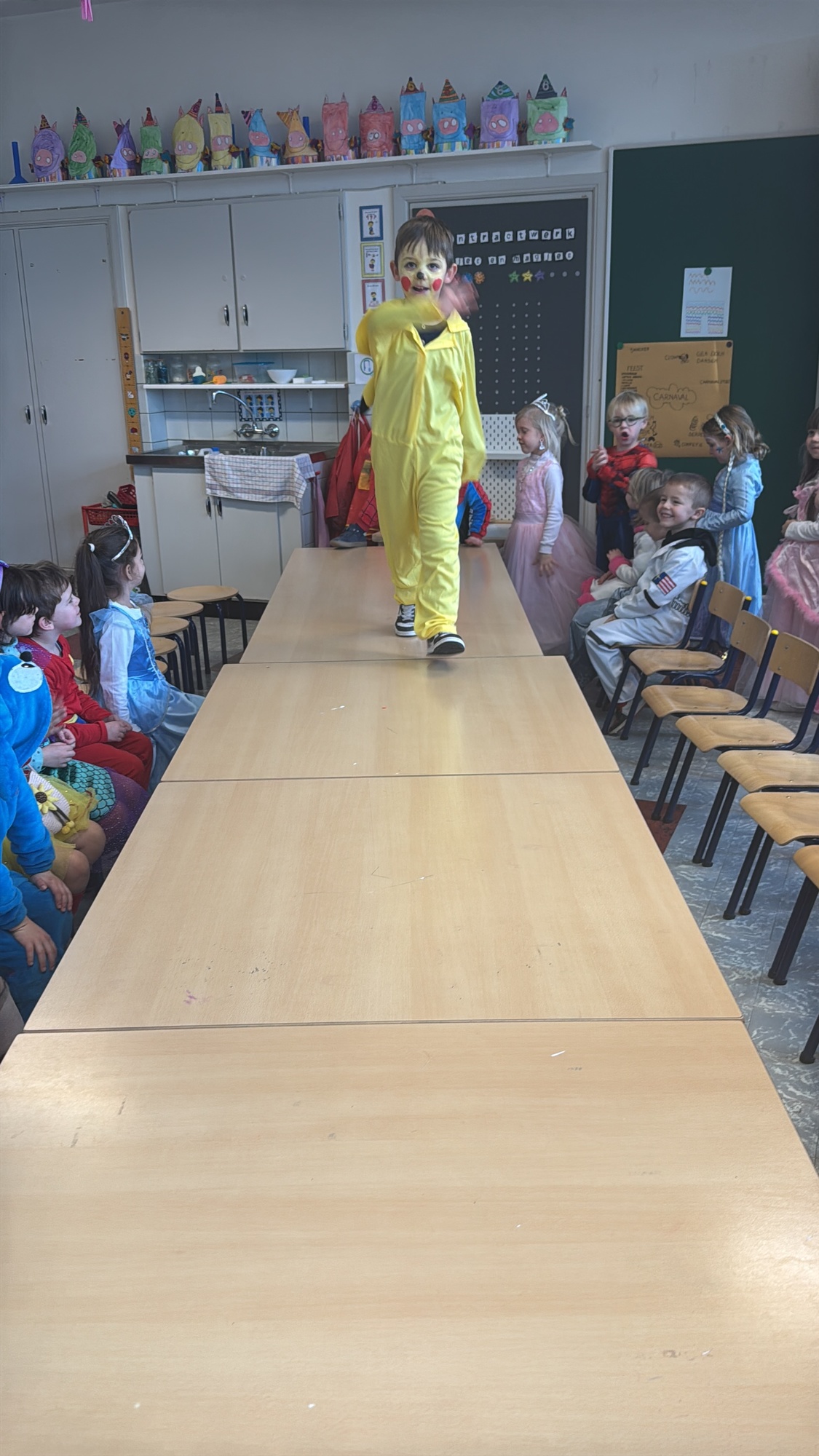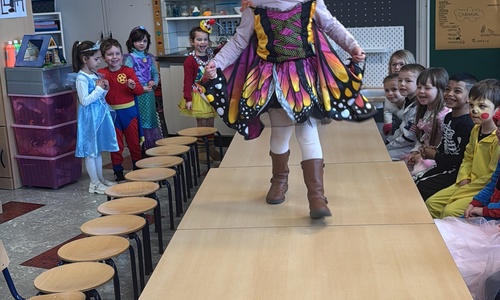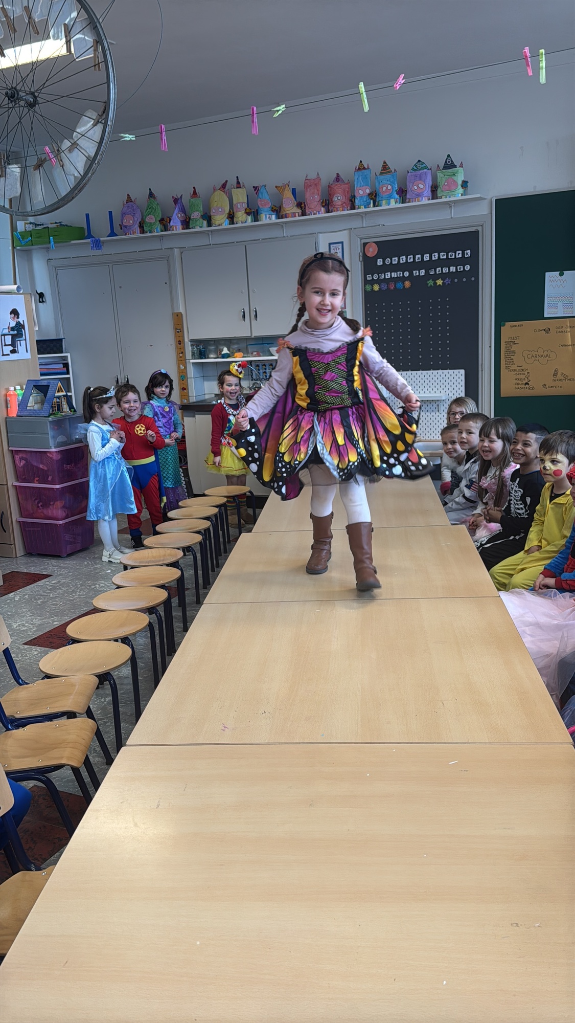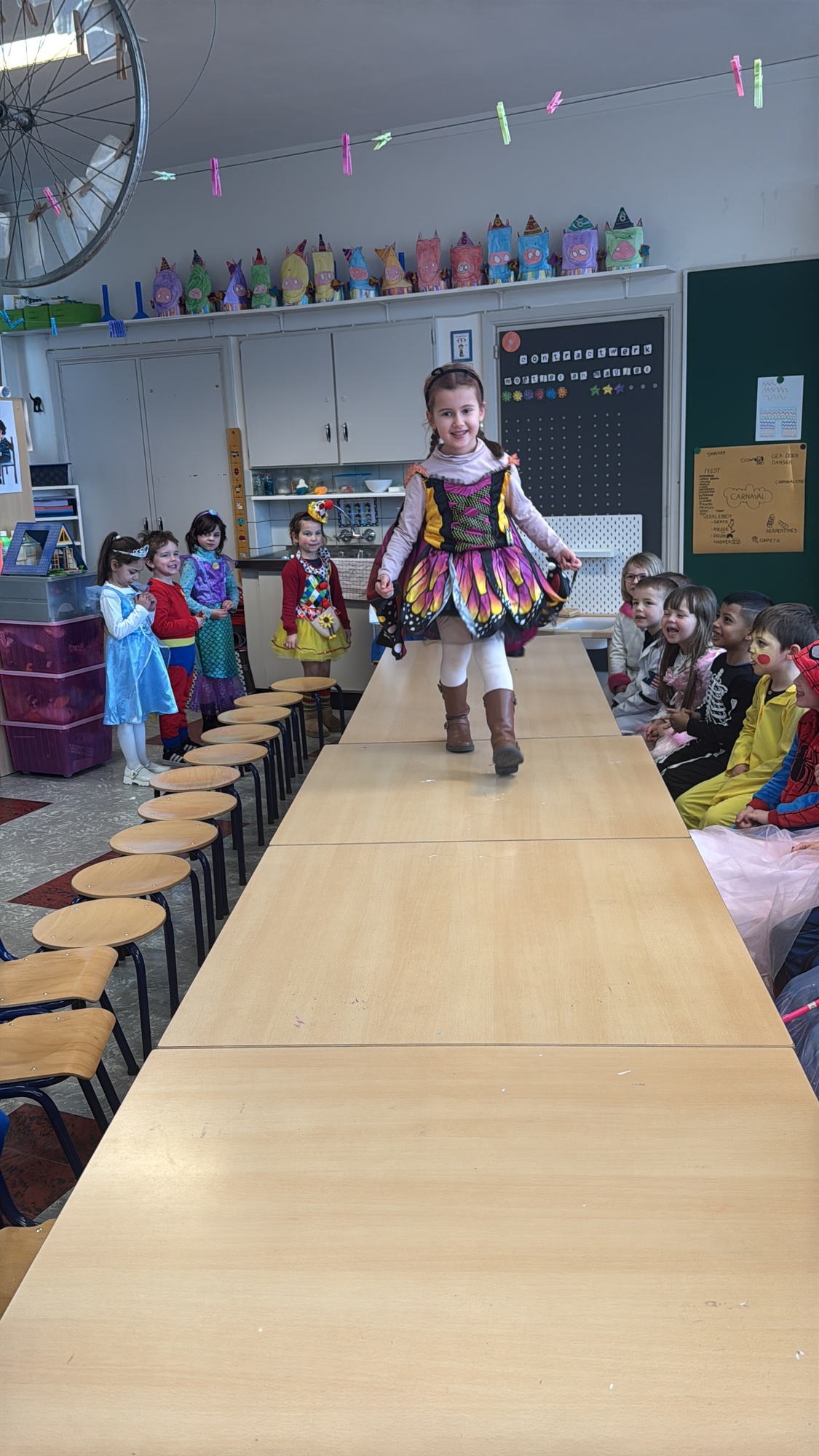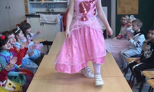 3KC Carnavalmodeshow op de catwalk in de klas.
