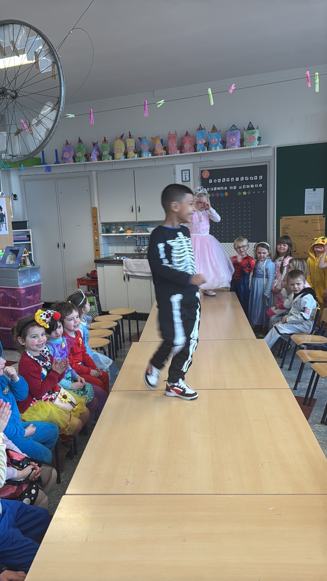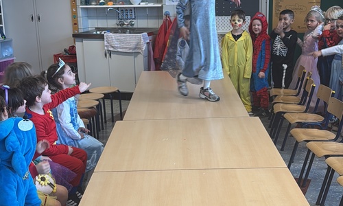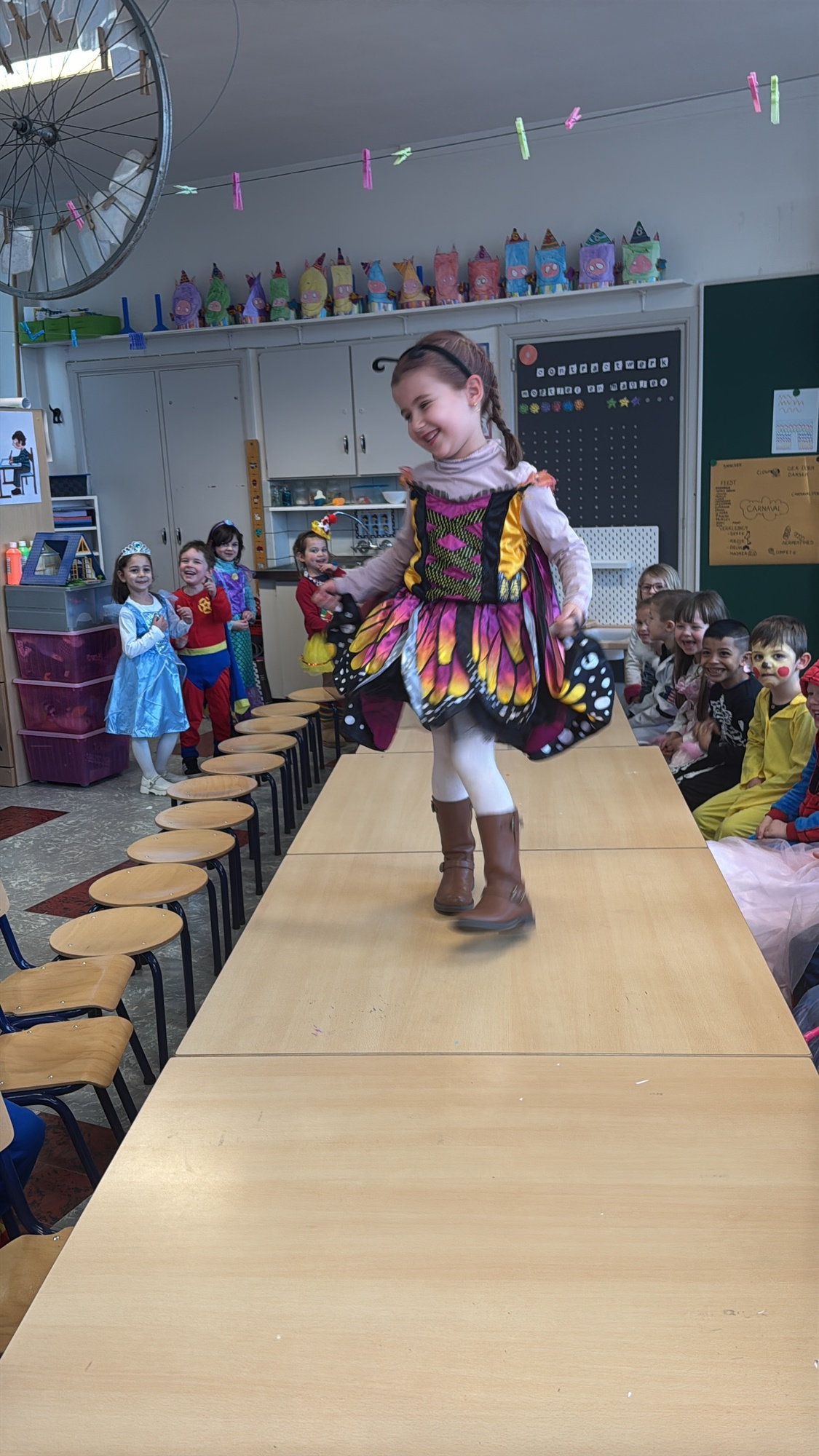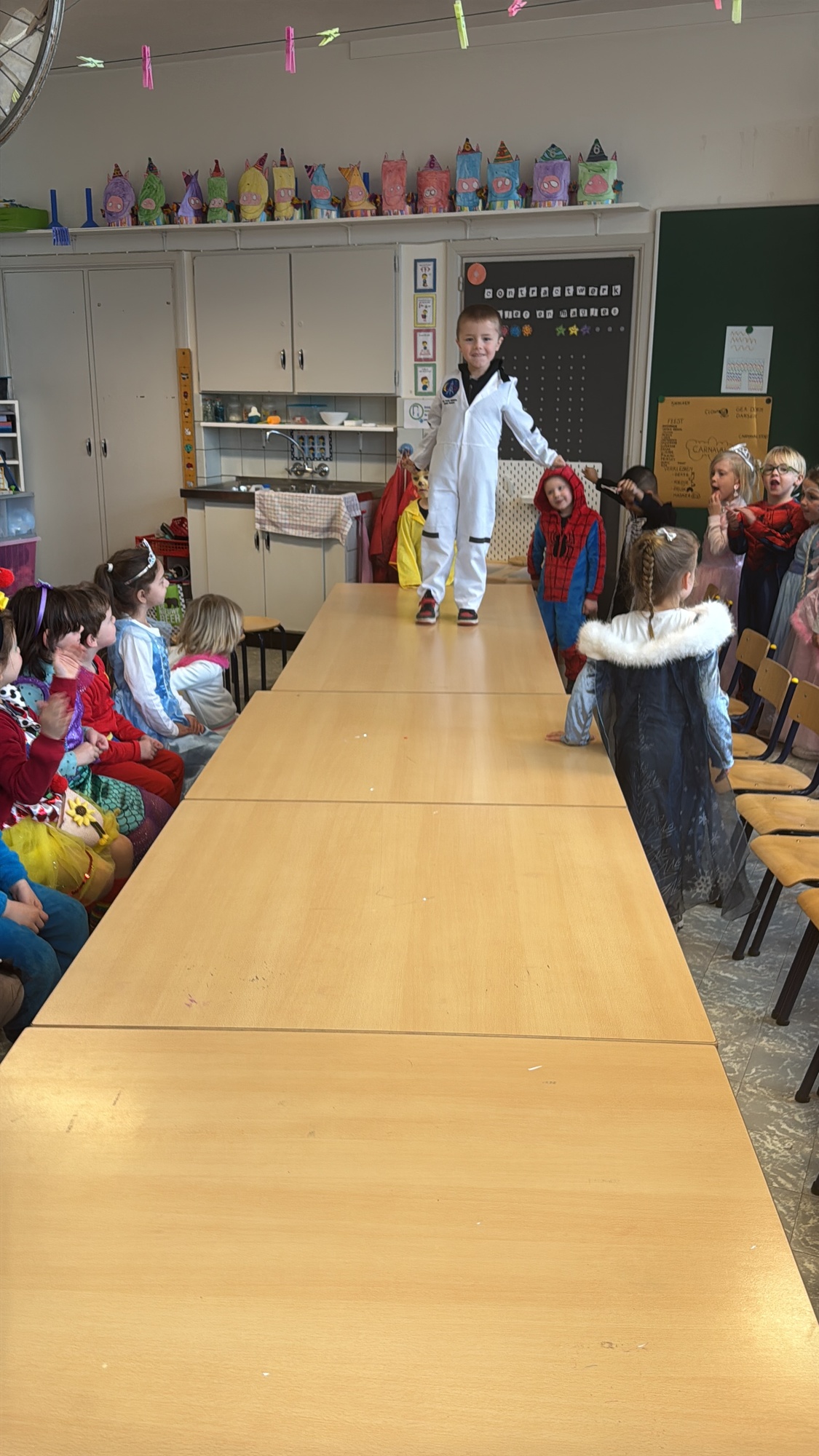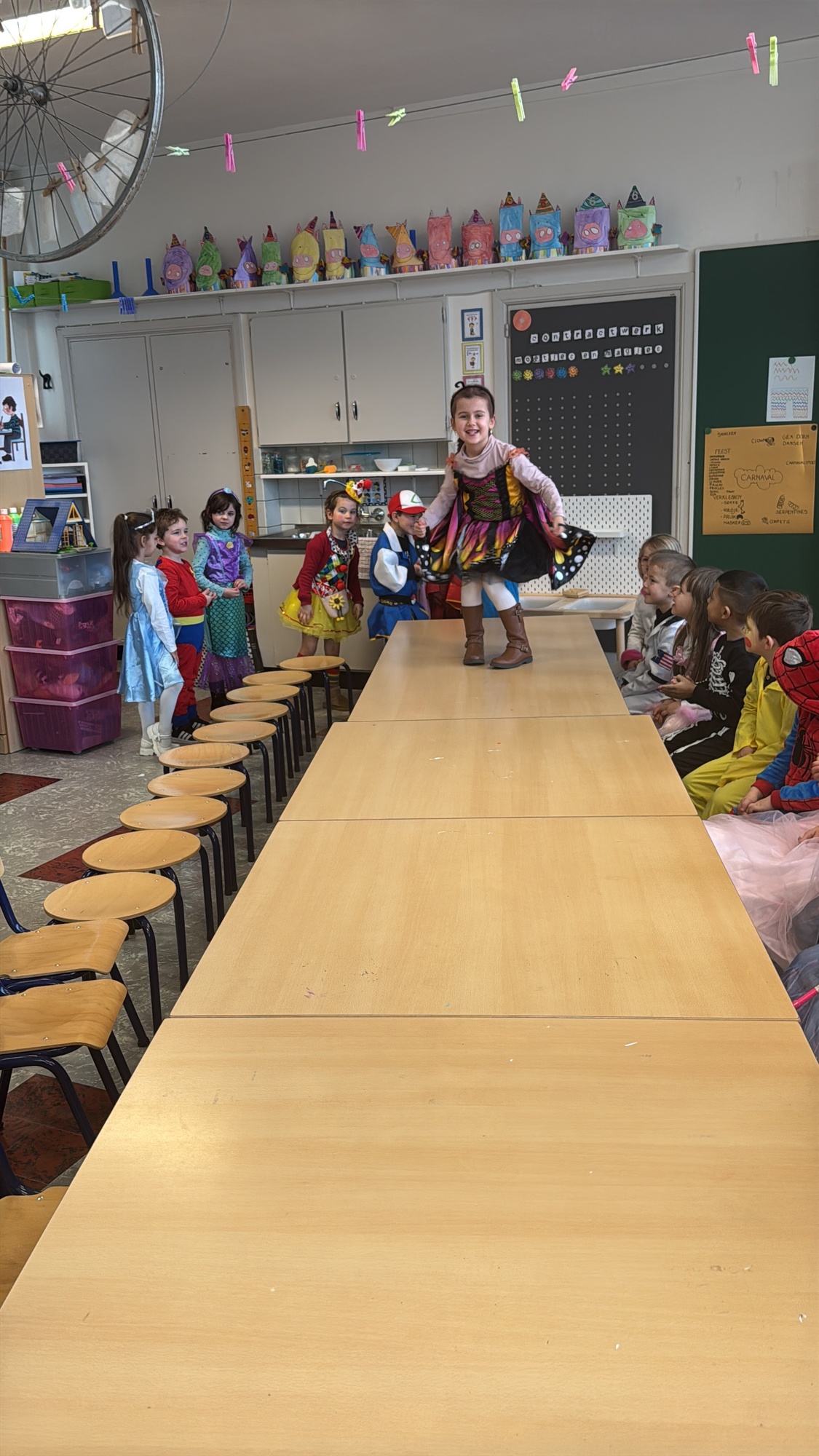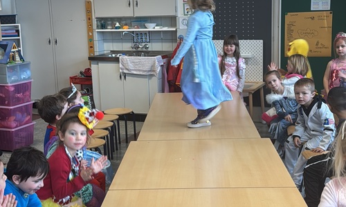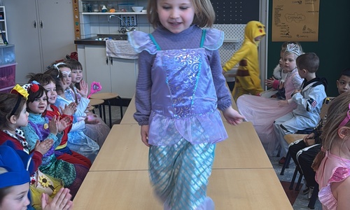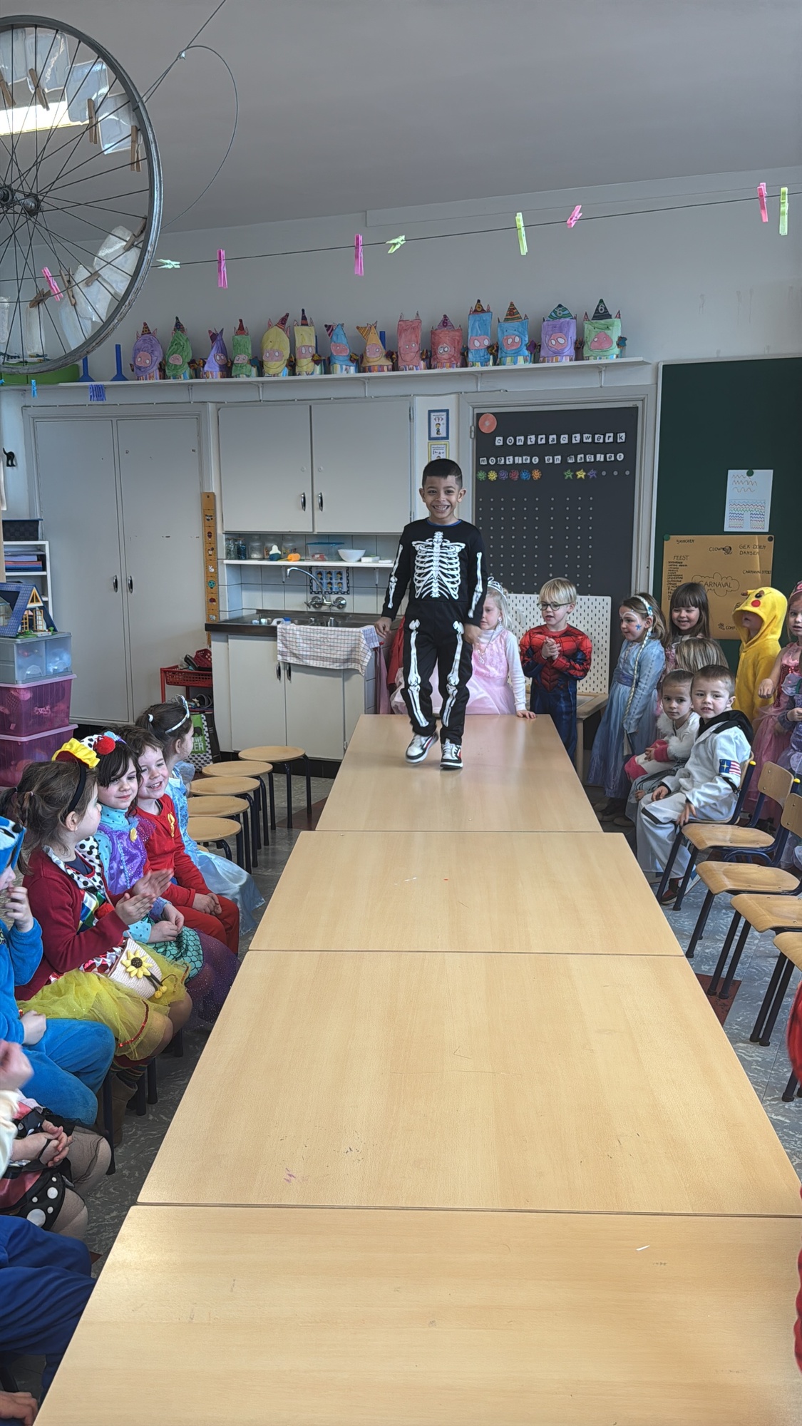 3KC Carnavalmodeshow op de catwalk in de klas.