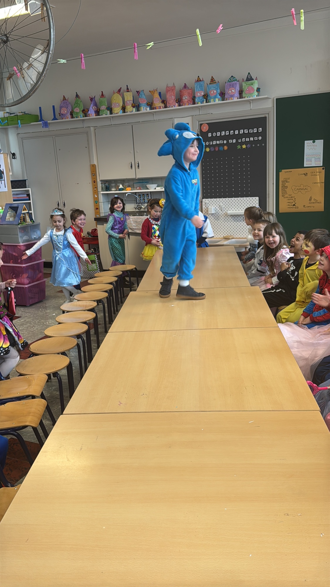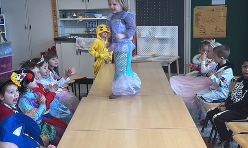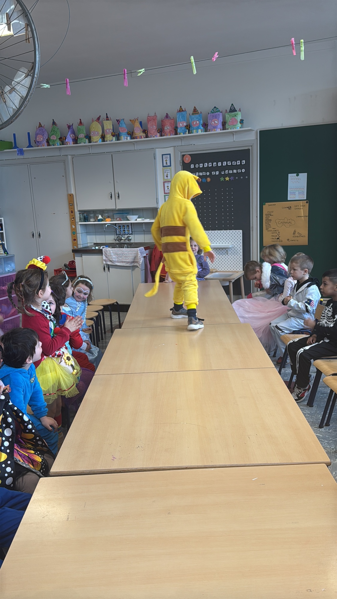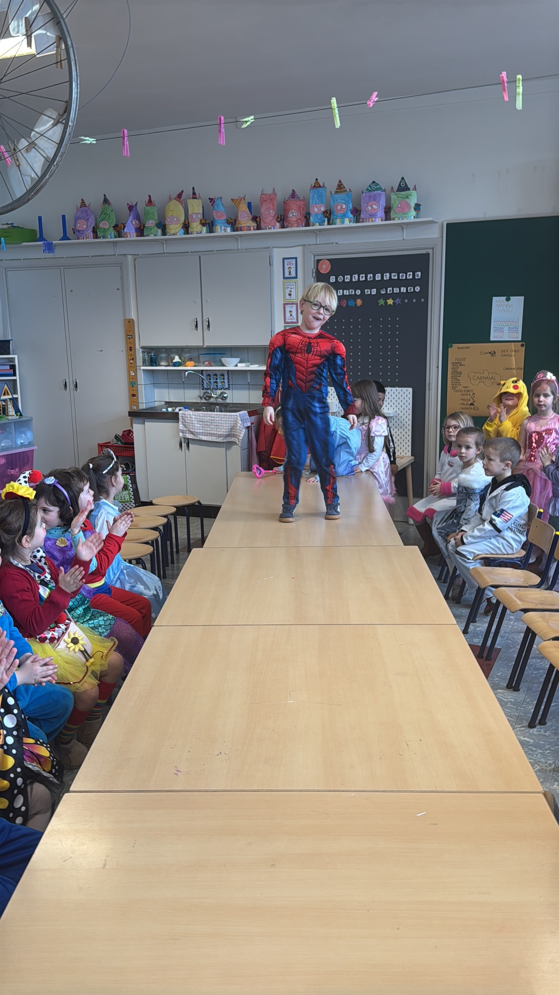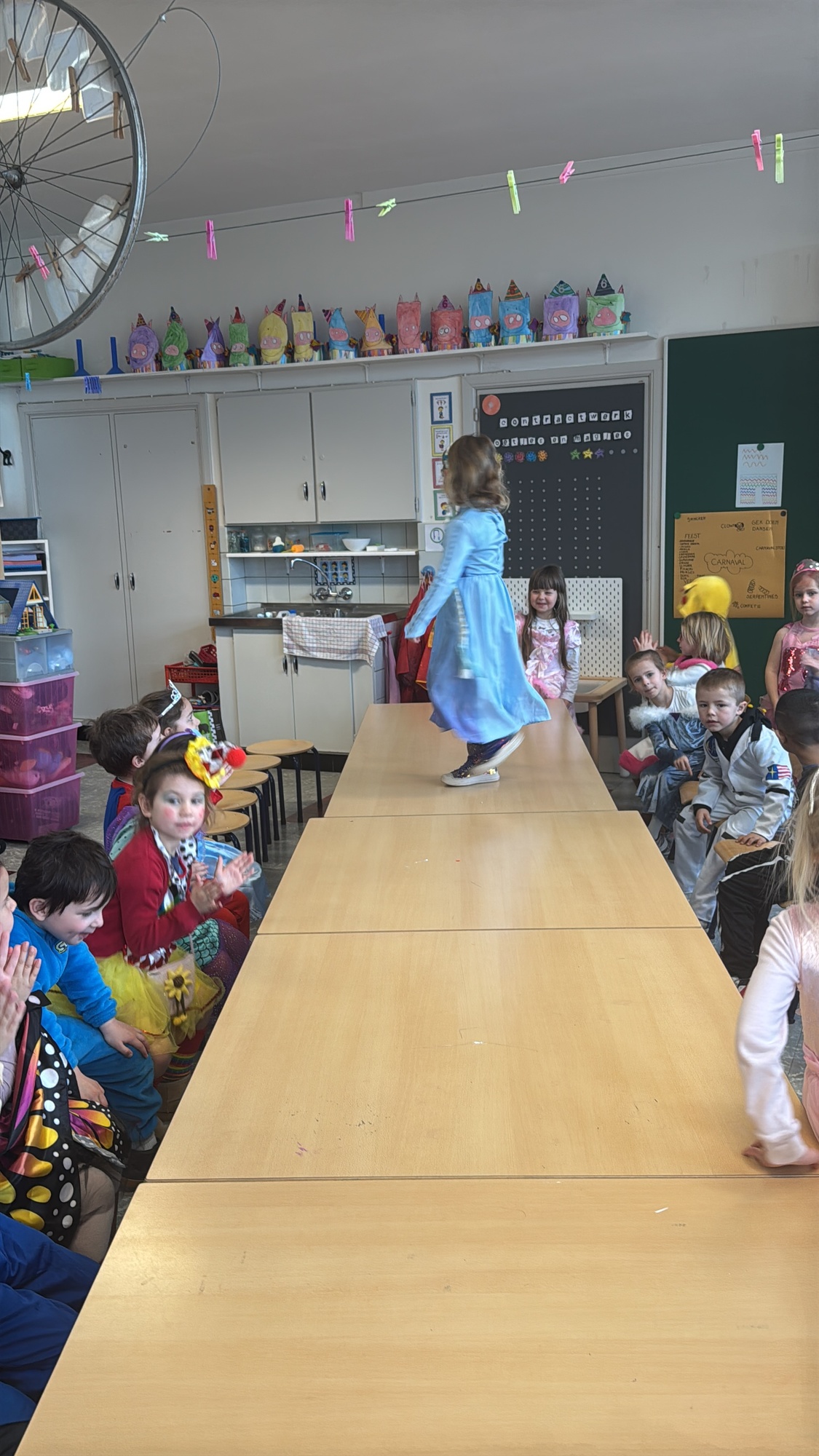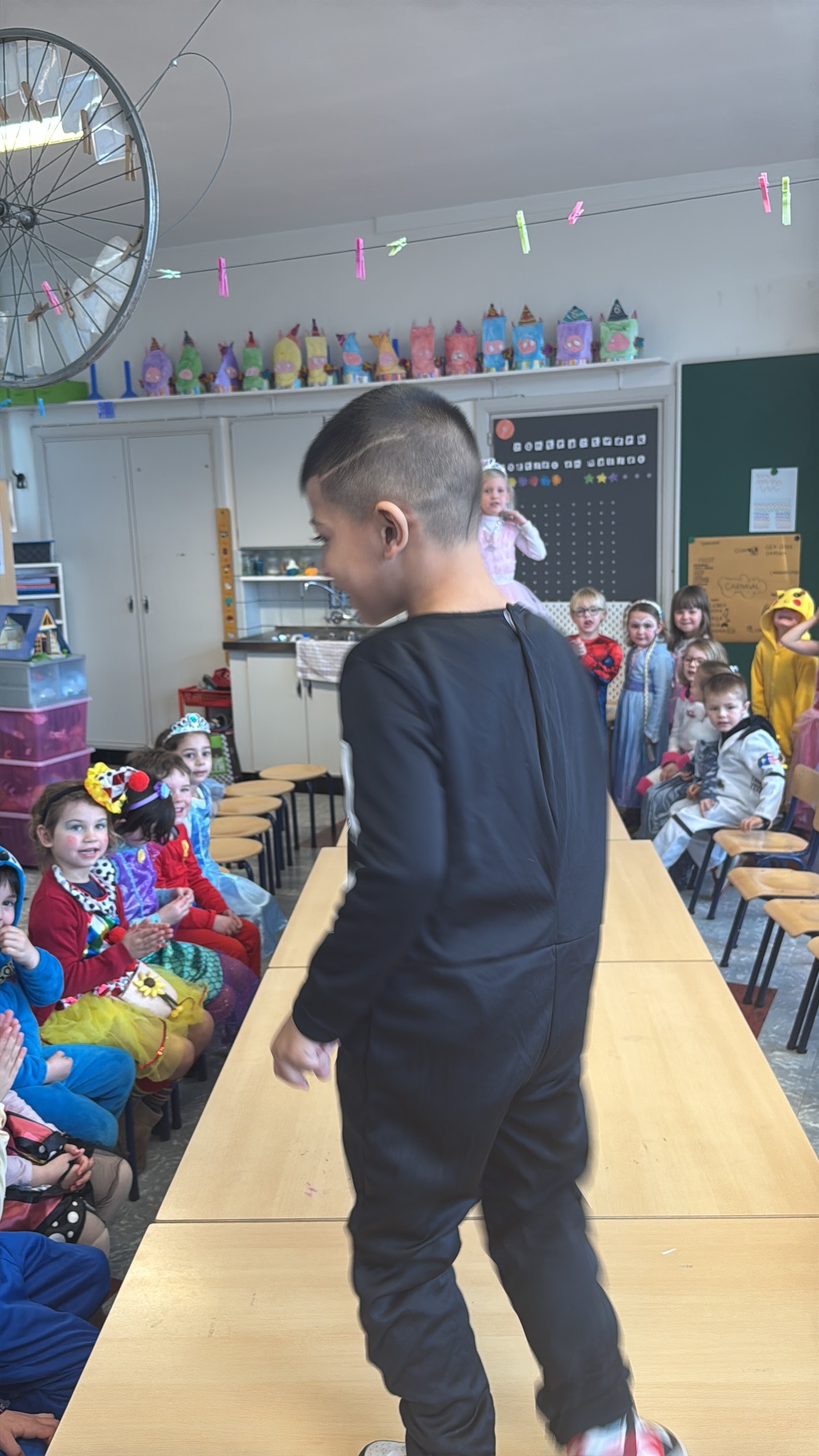 3KC Carnavalmodeshow op de catwalk in de klas.