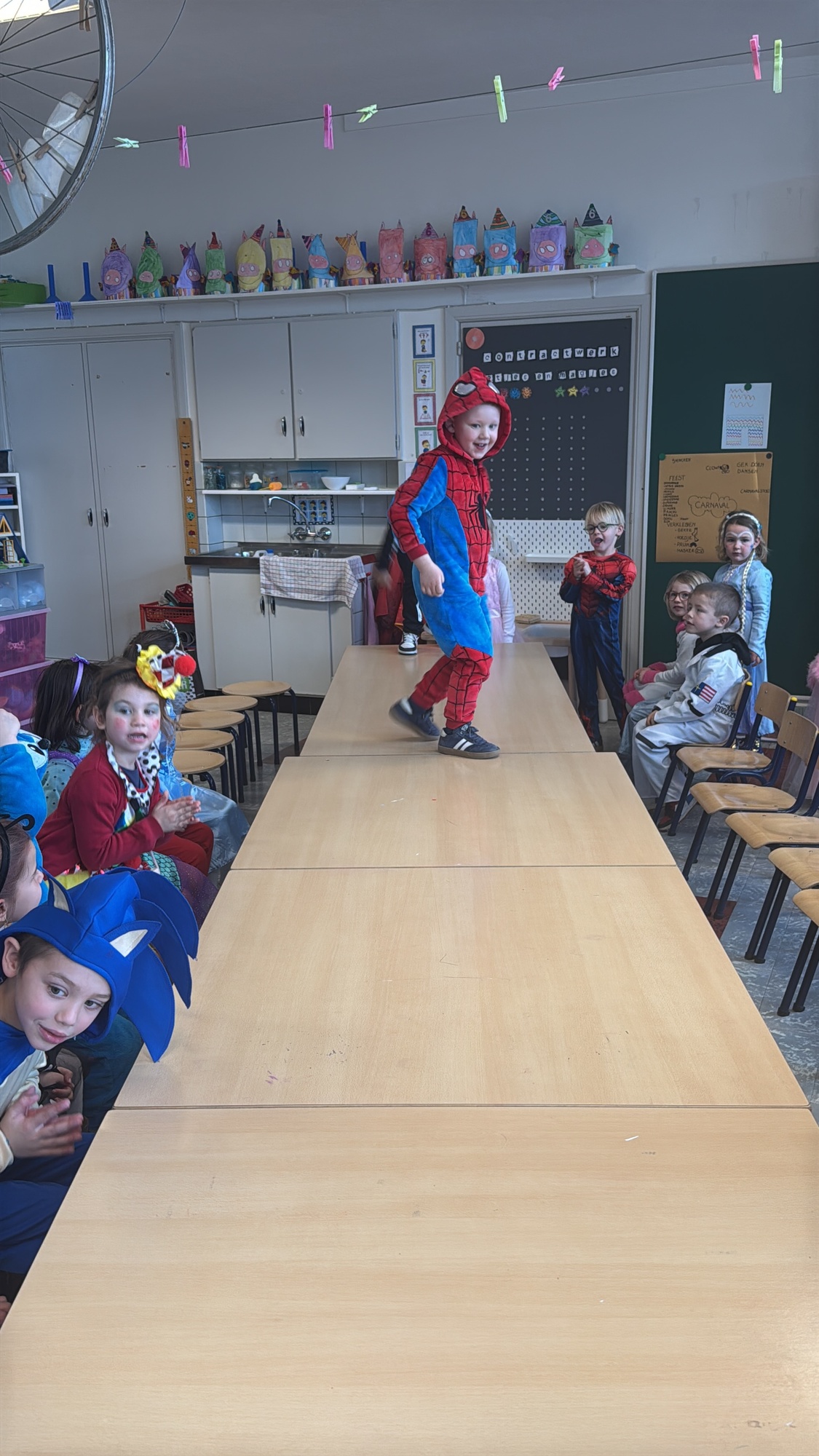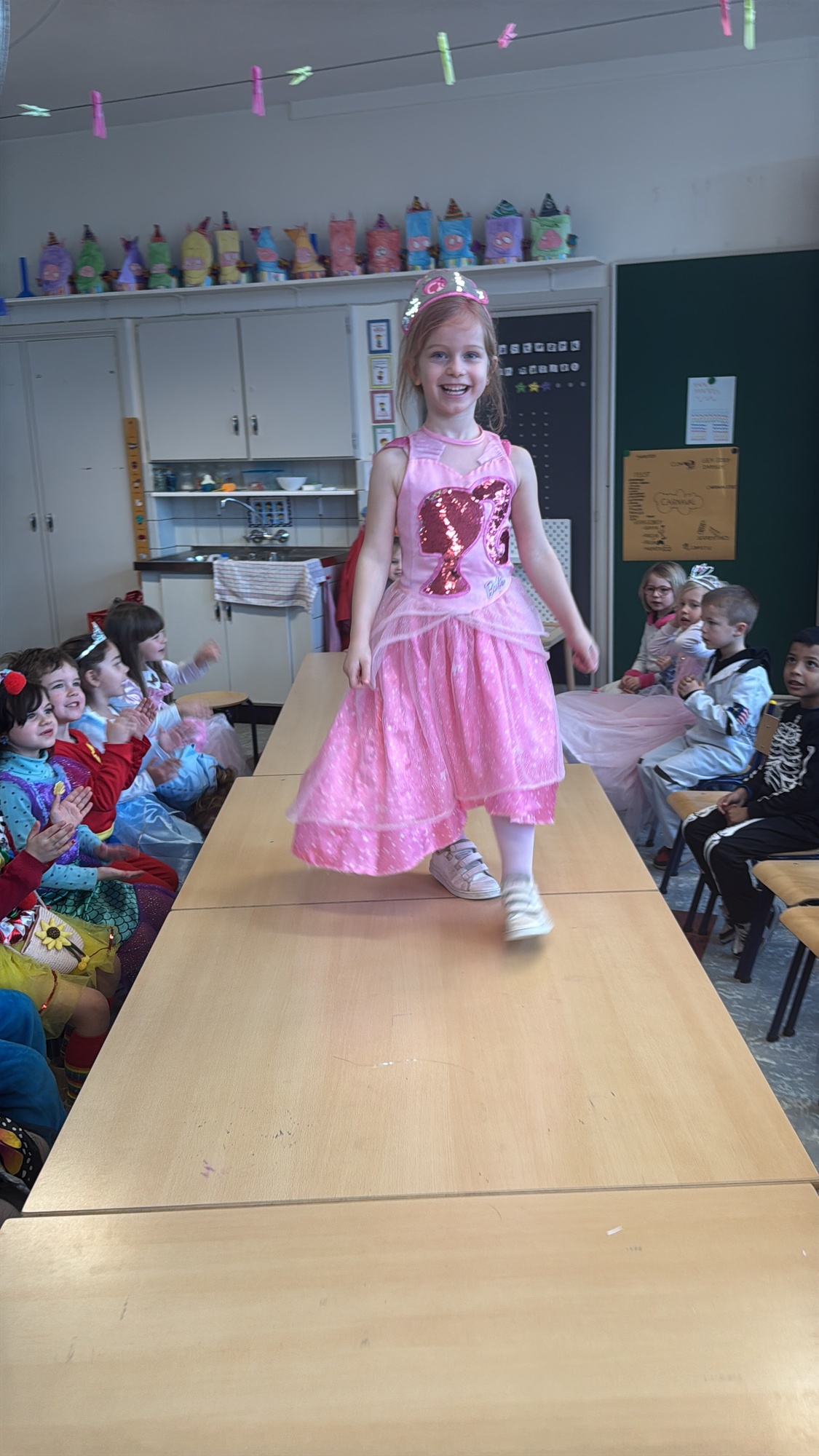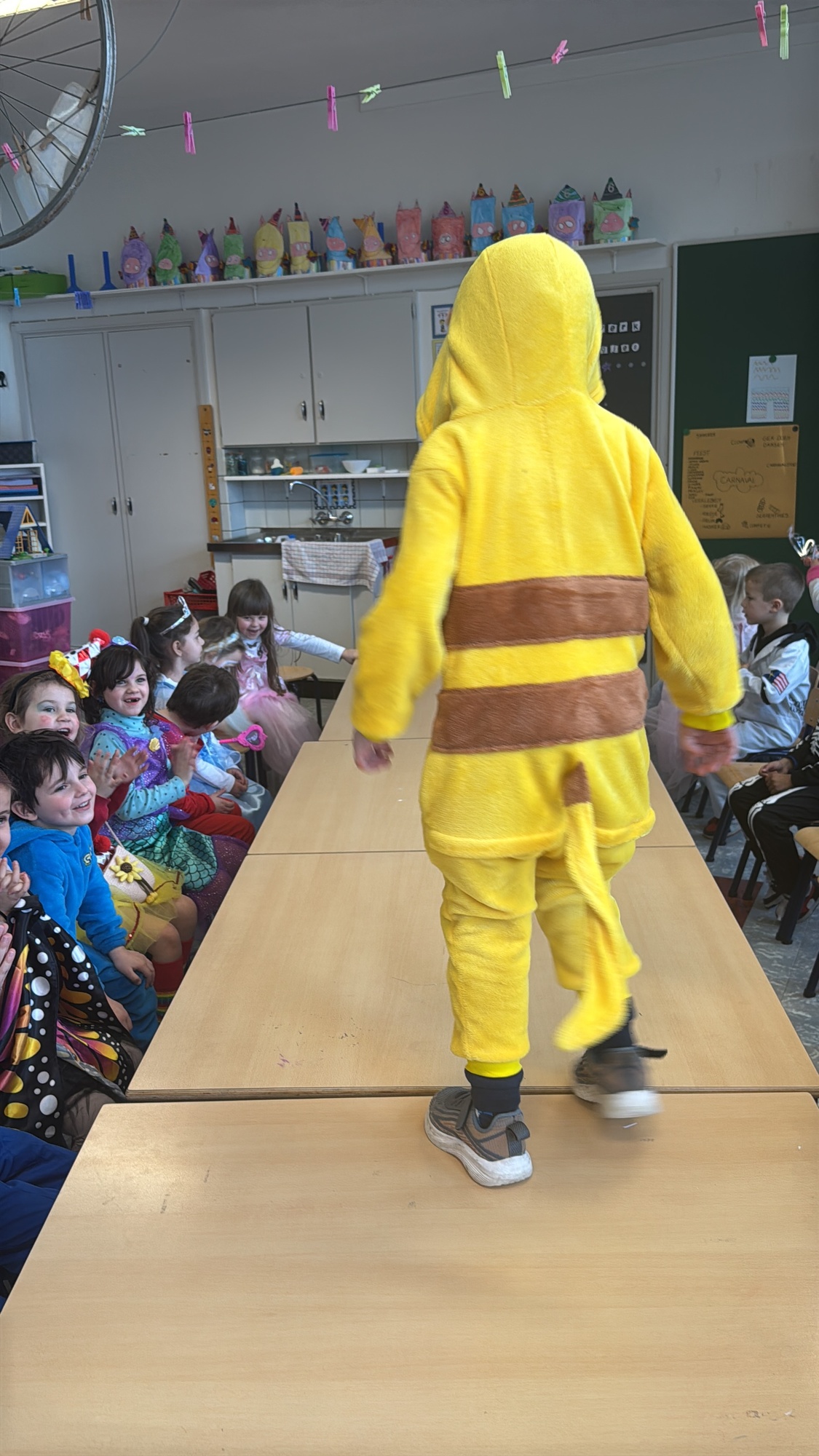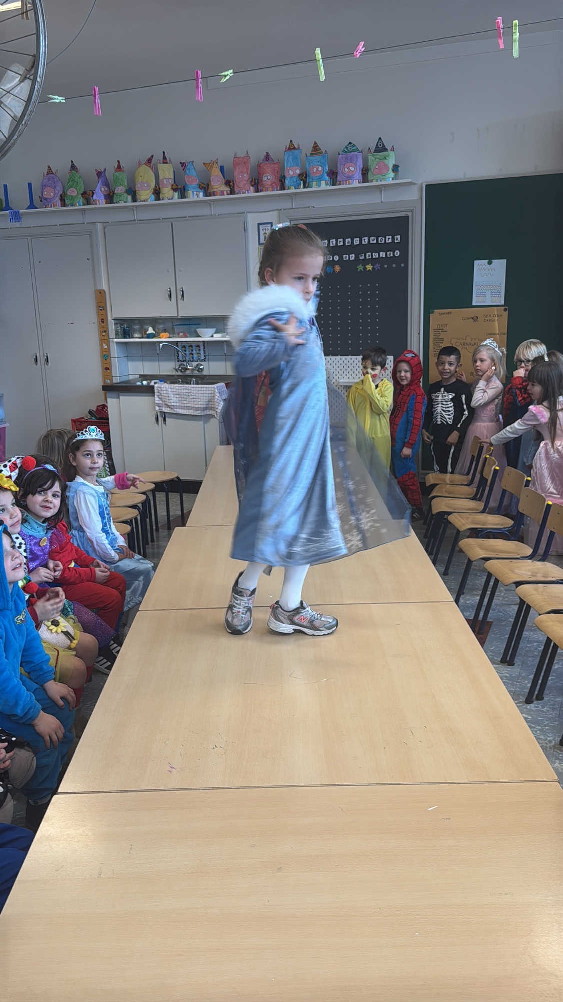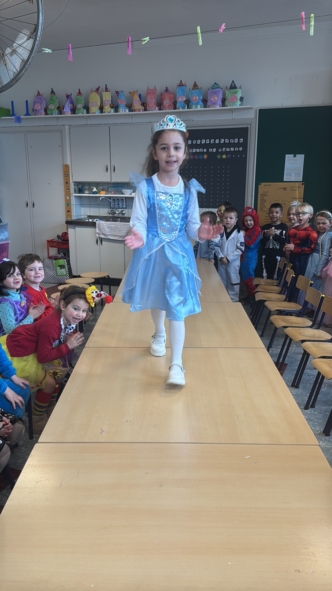 3KC Carnavalmodeshow op de catwalk in de klas.