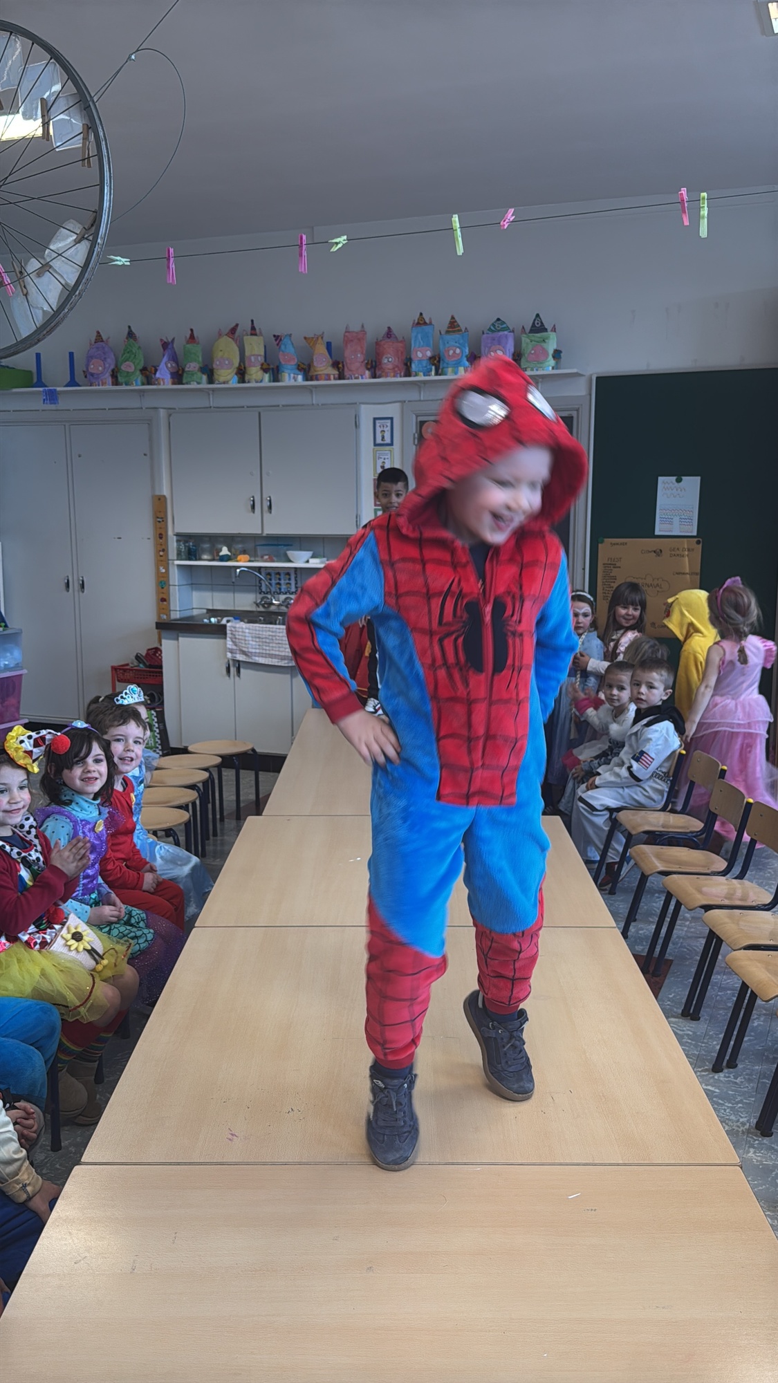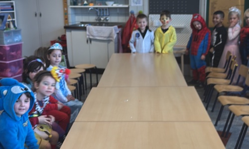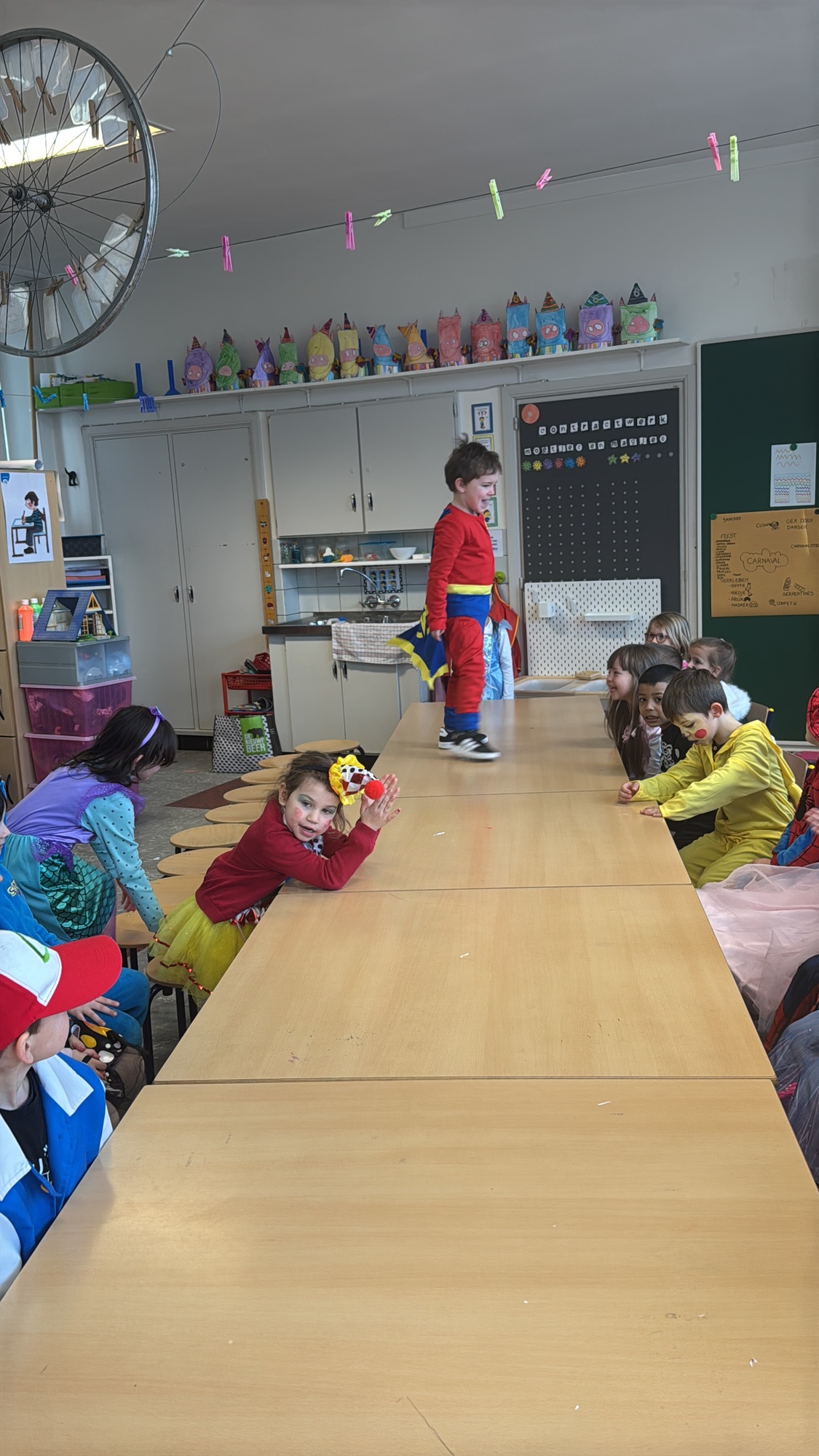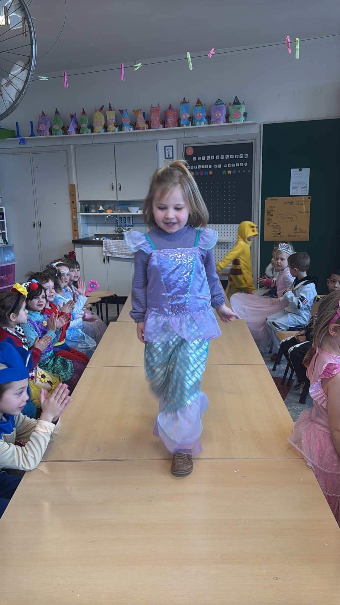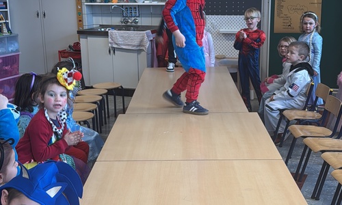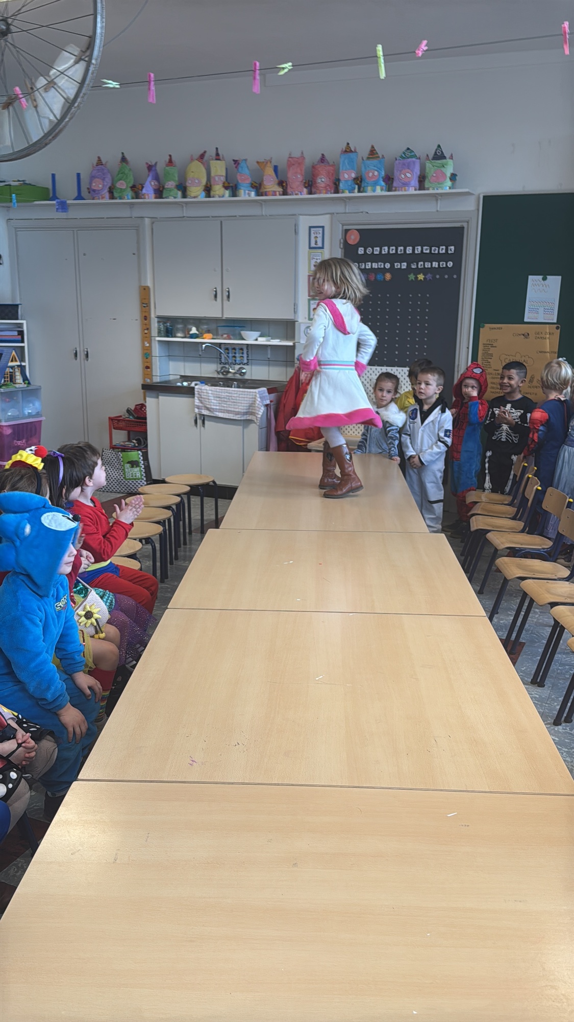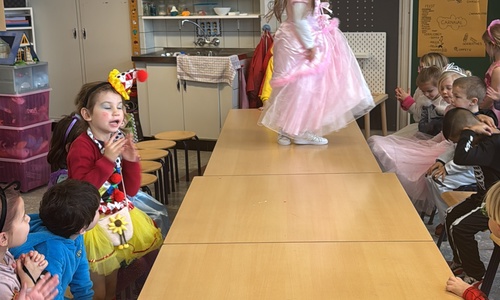 3KC Carnavalmodeshow op de catwalk in de klas.