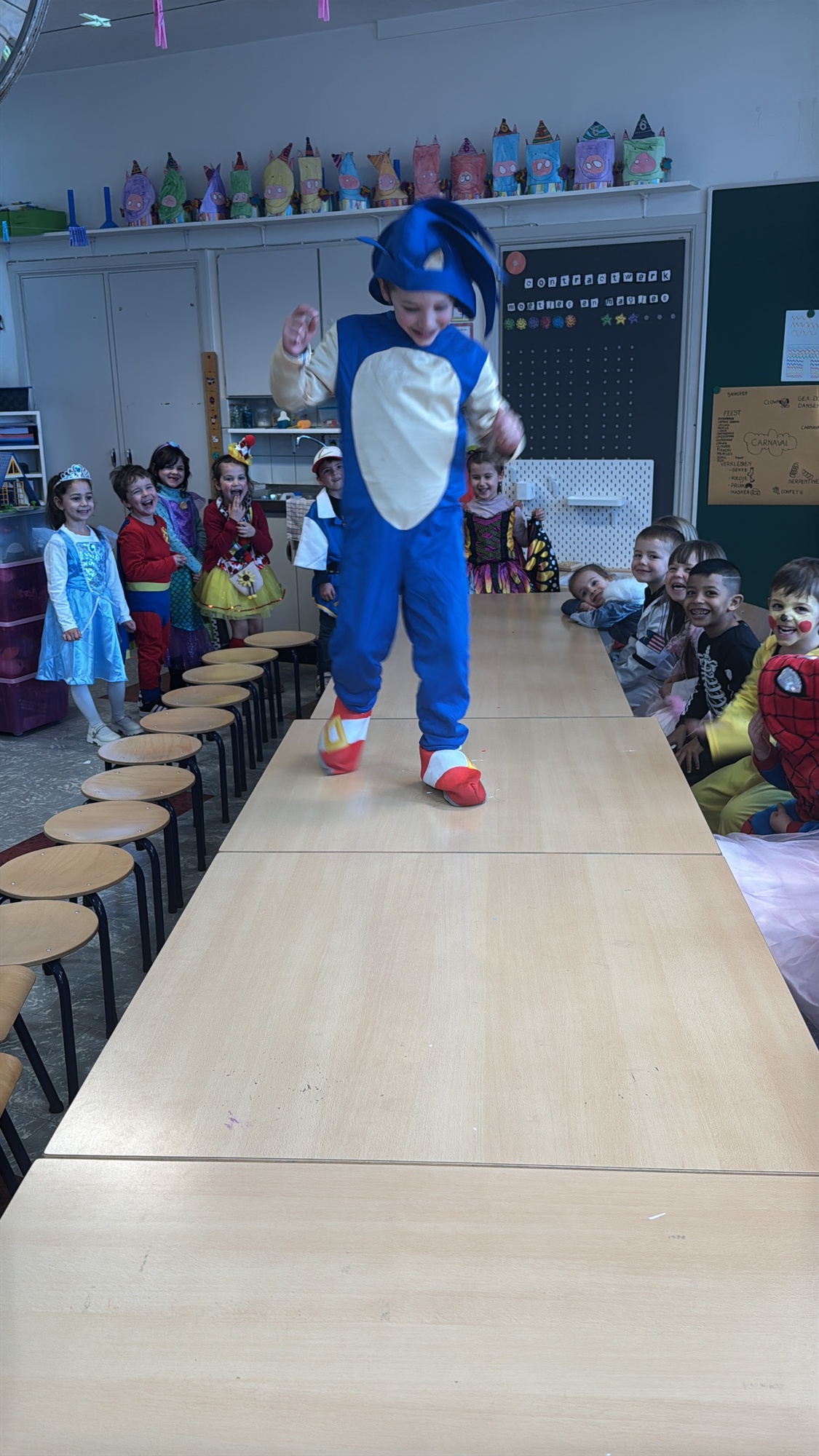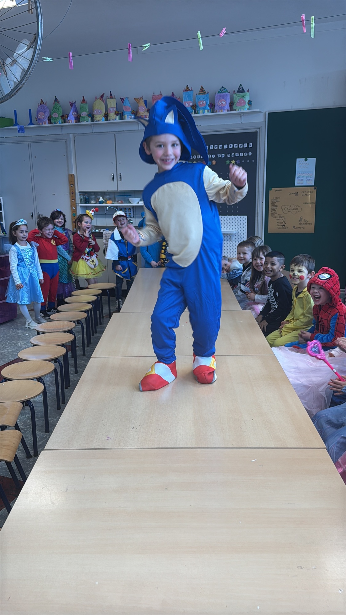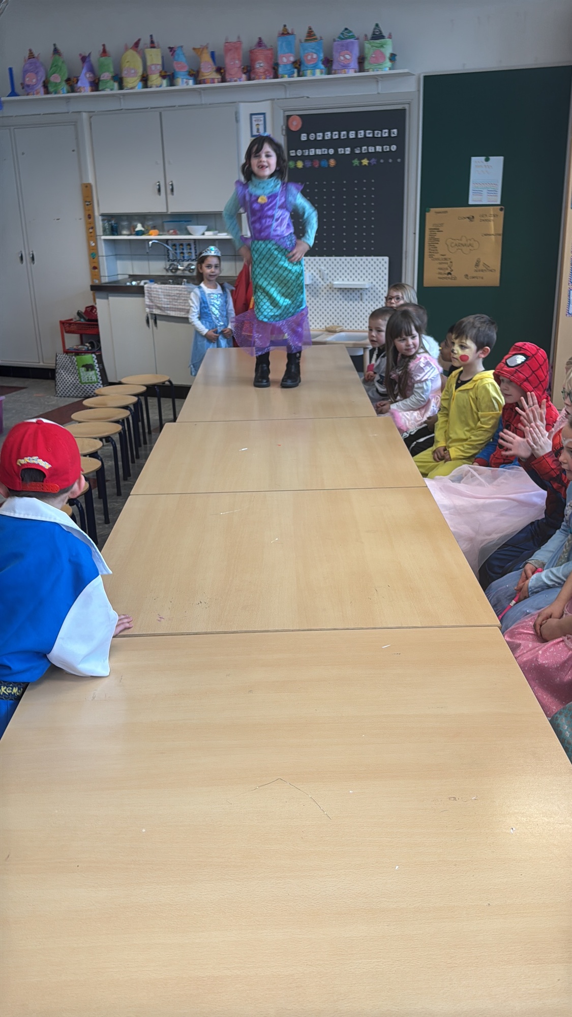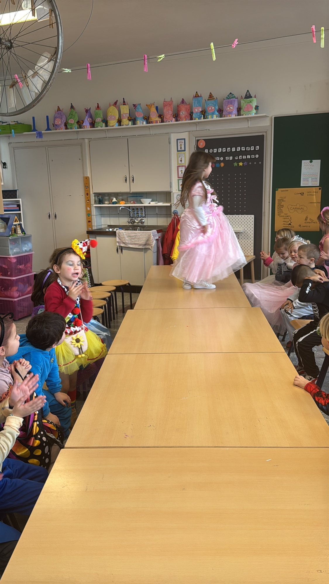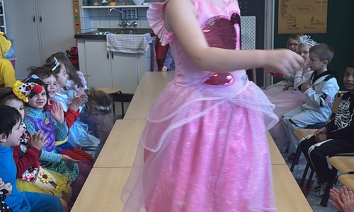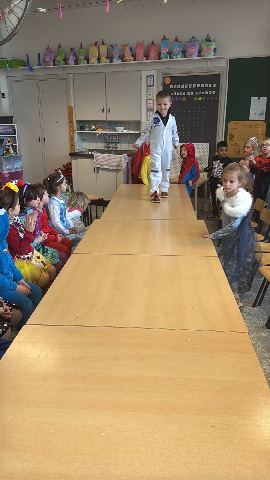 3KC Carnavalmodeshow op de catwalk in de klas.