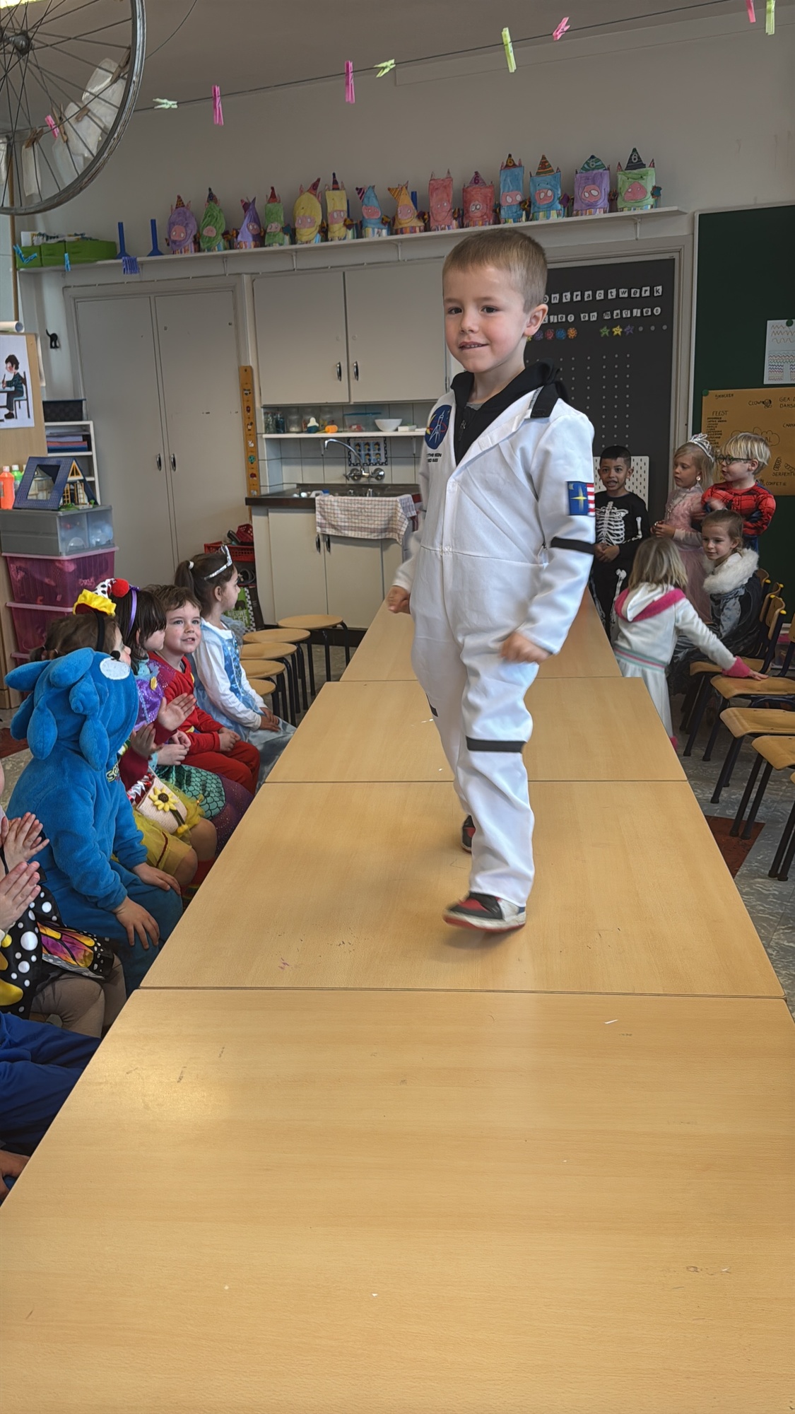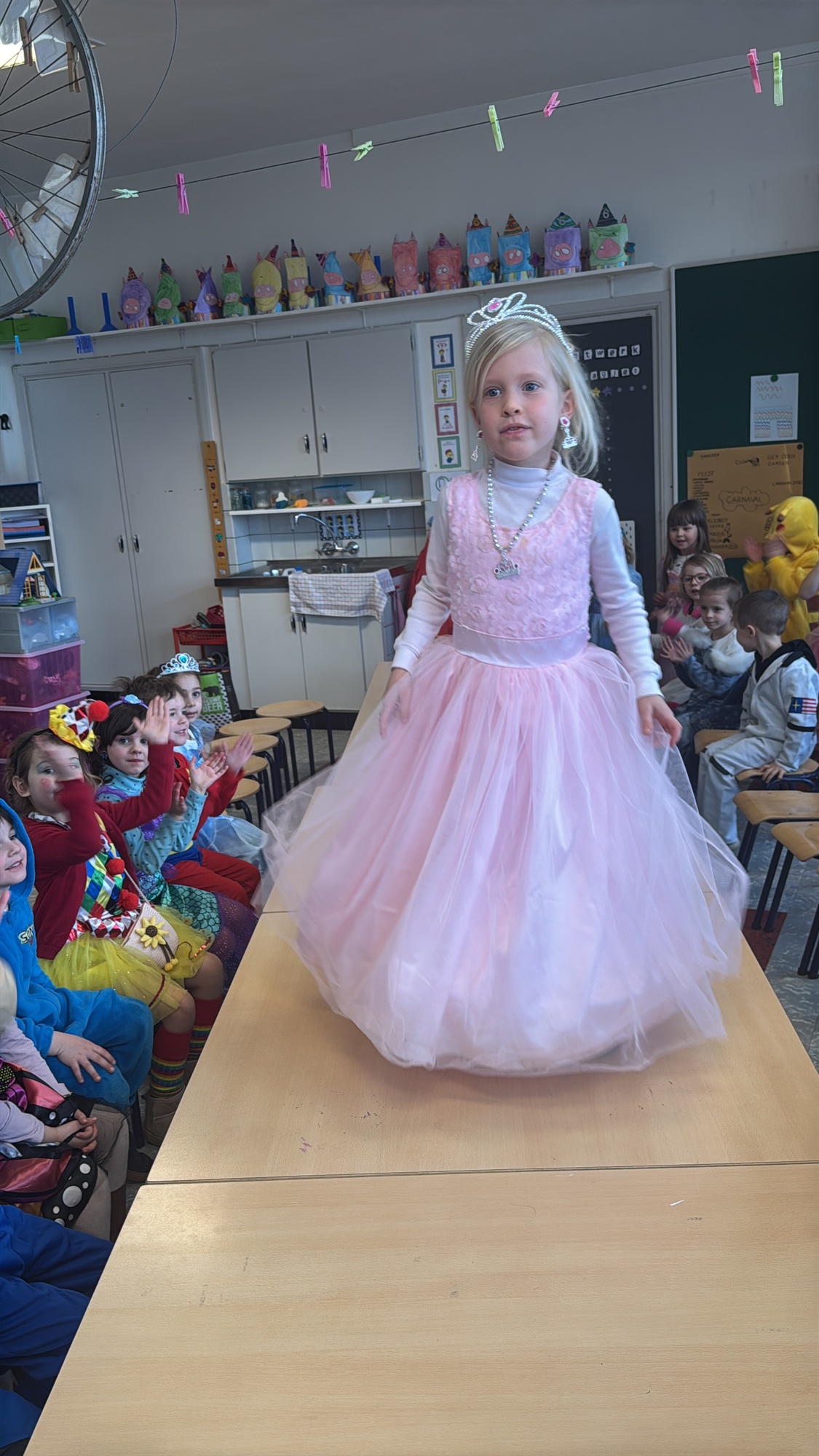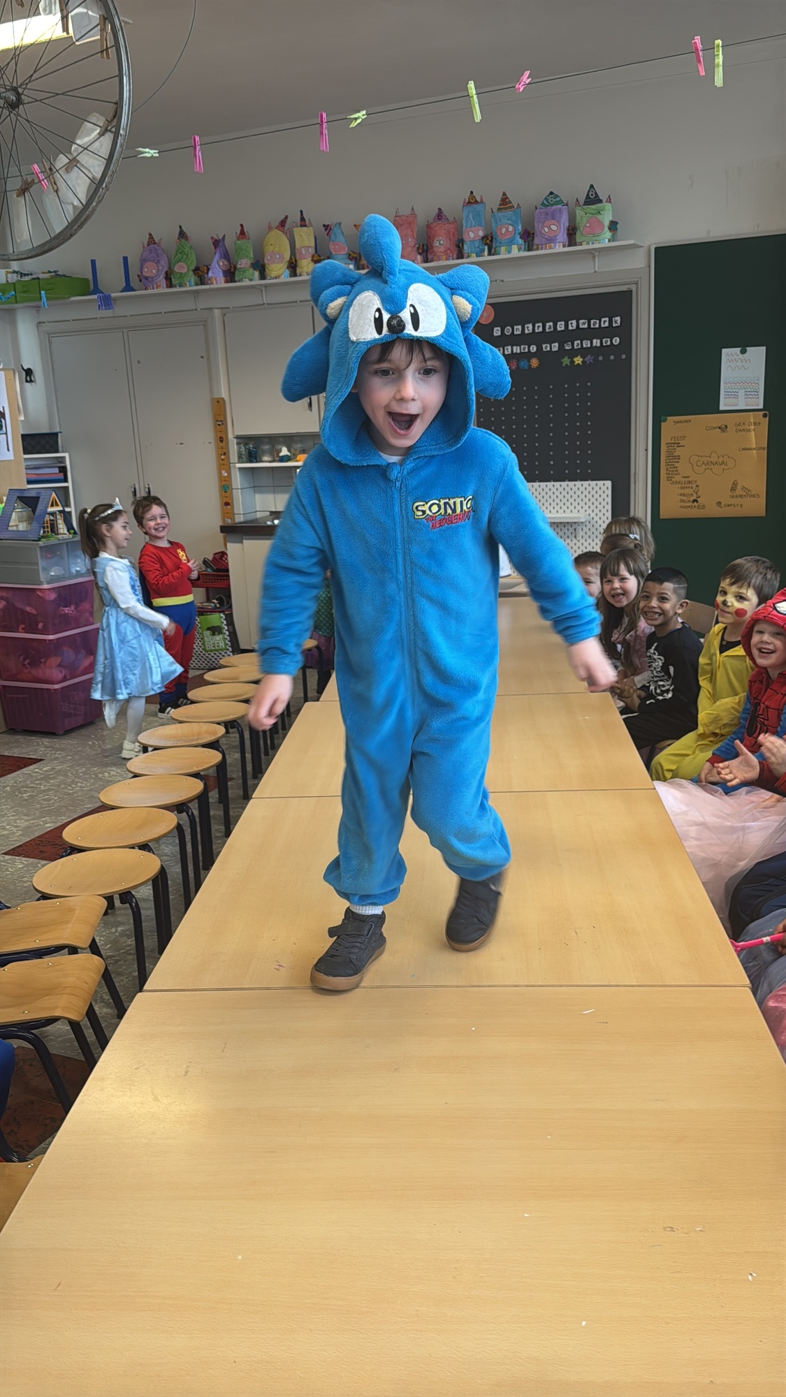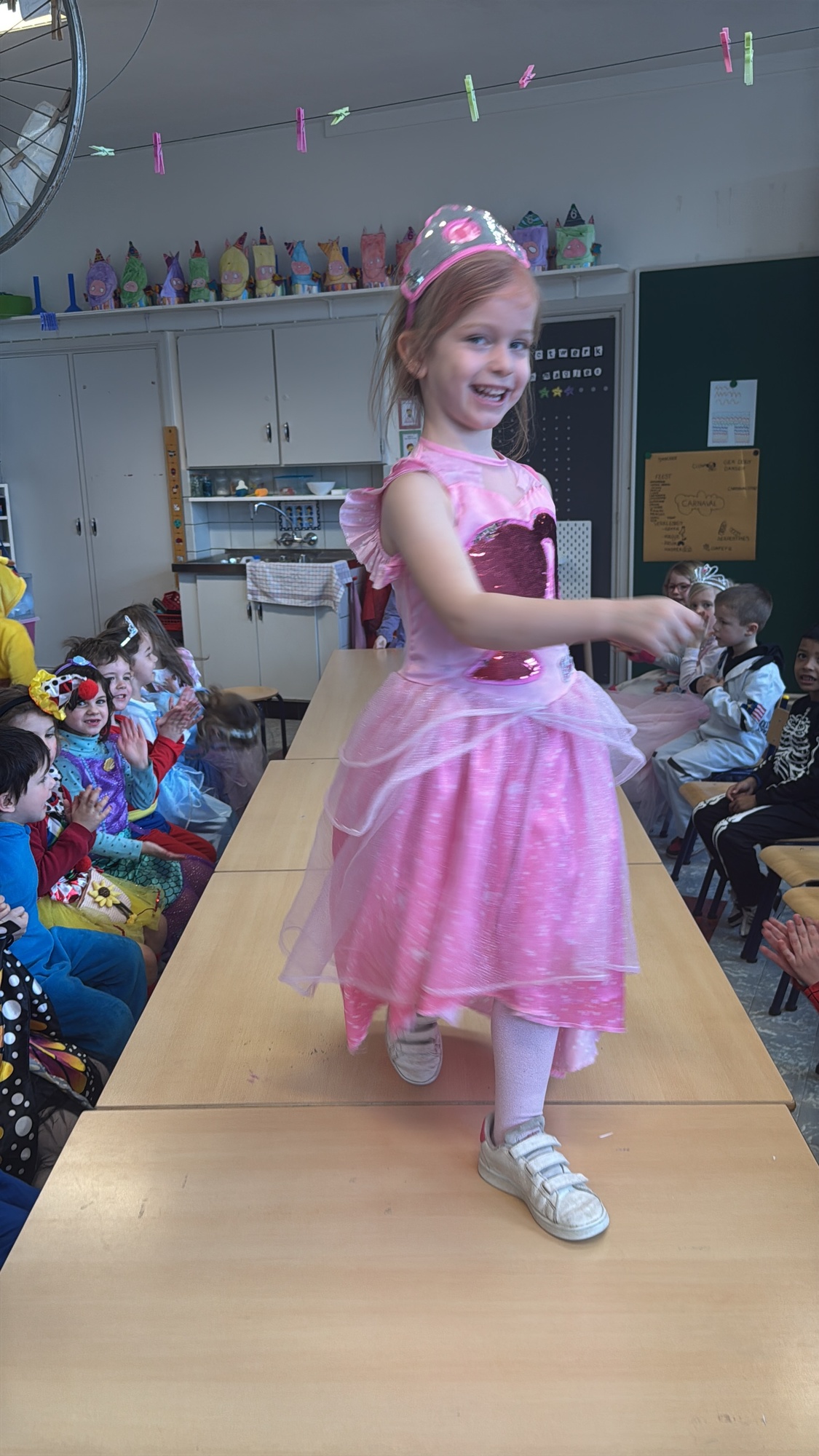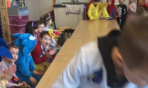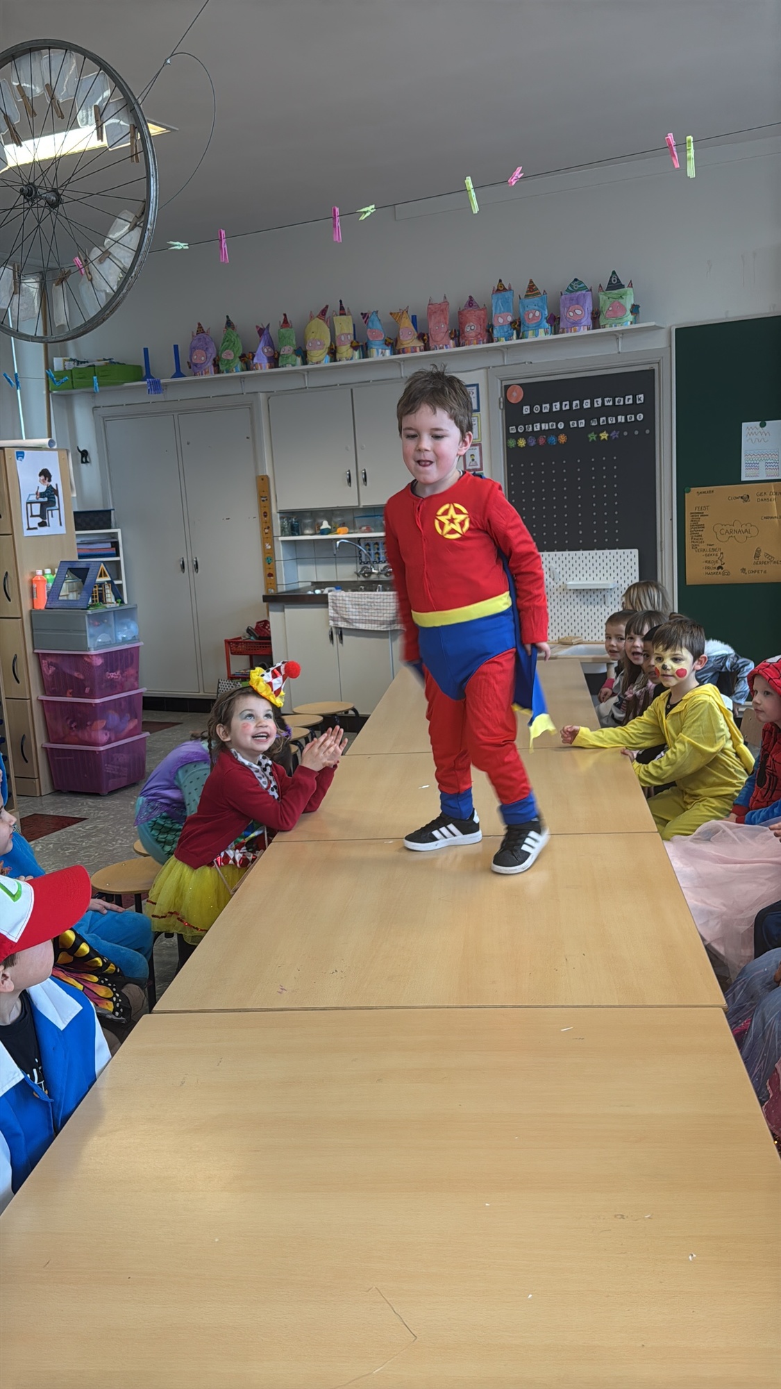 3KC Carnavalmodeshow op de catwalk in de klas.