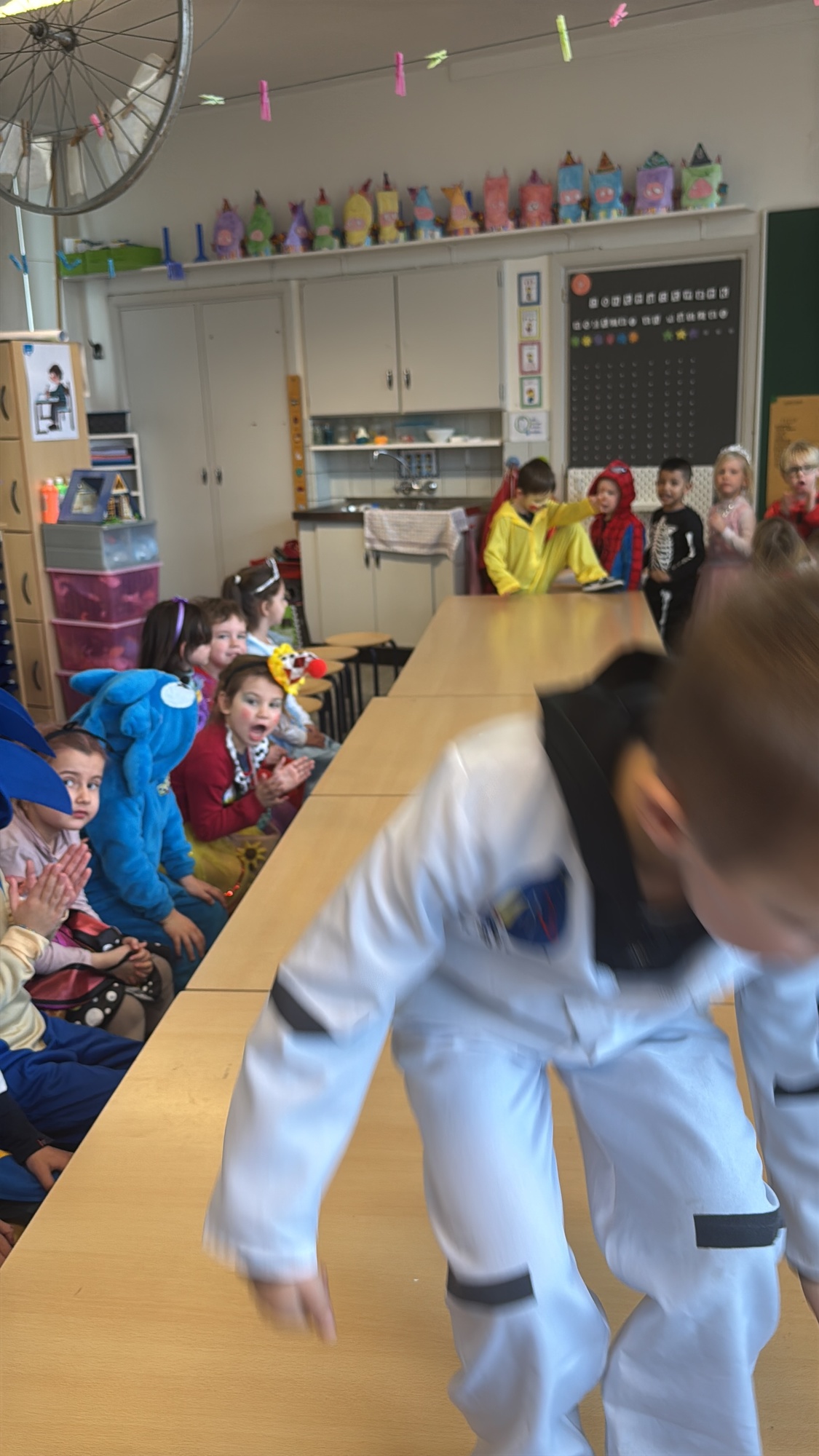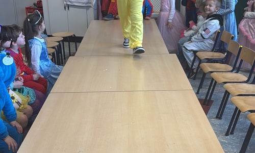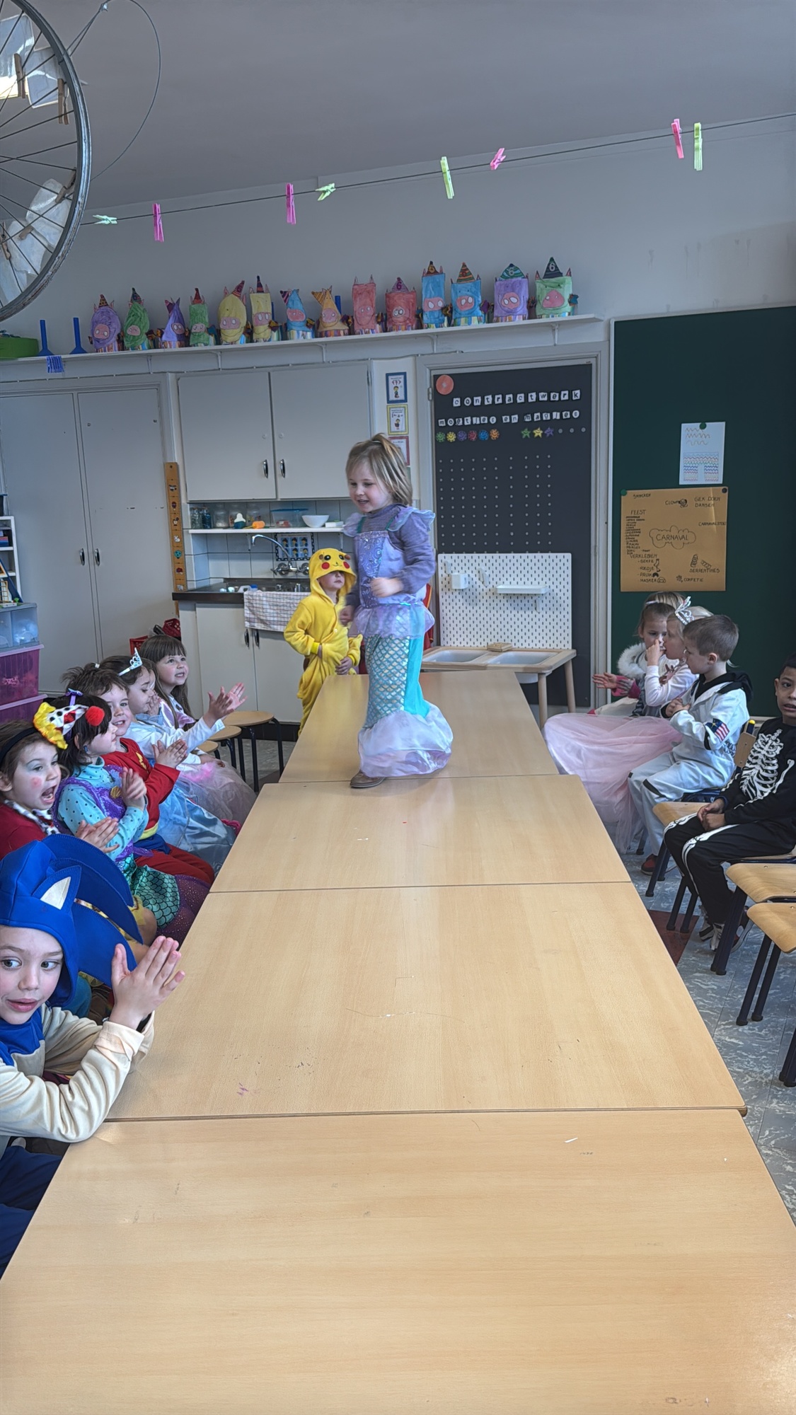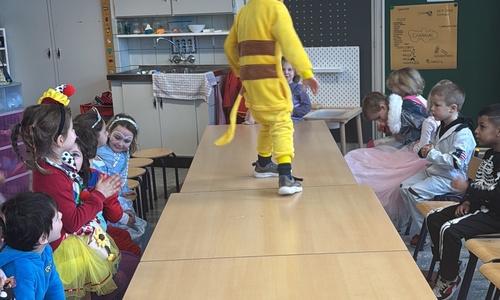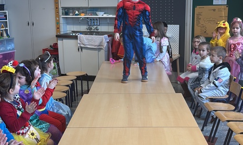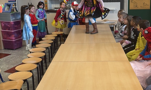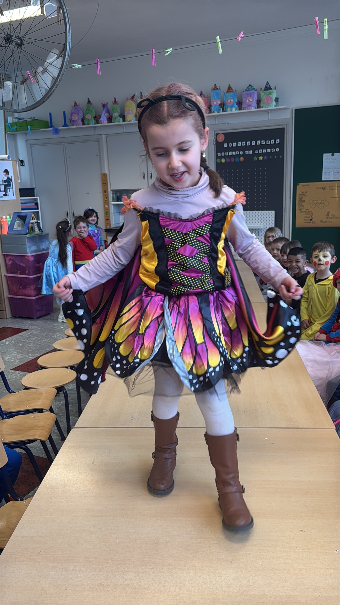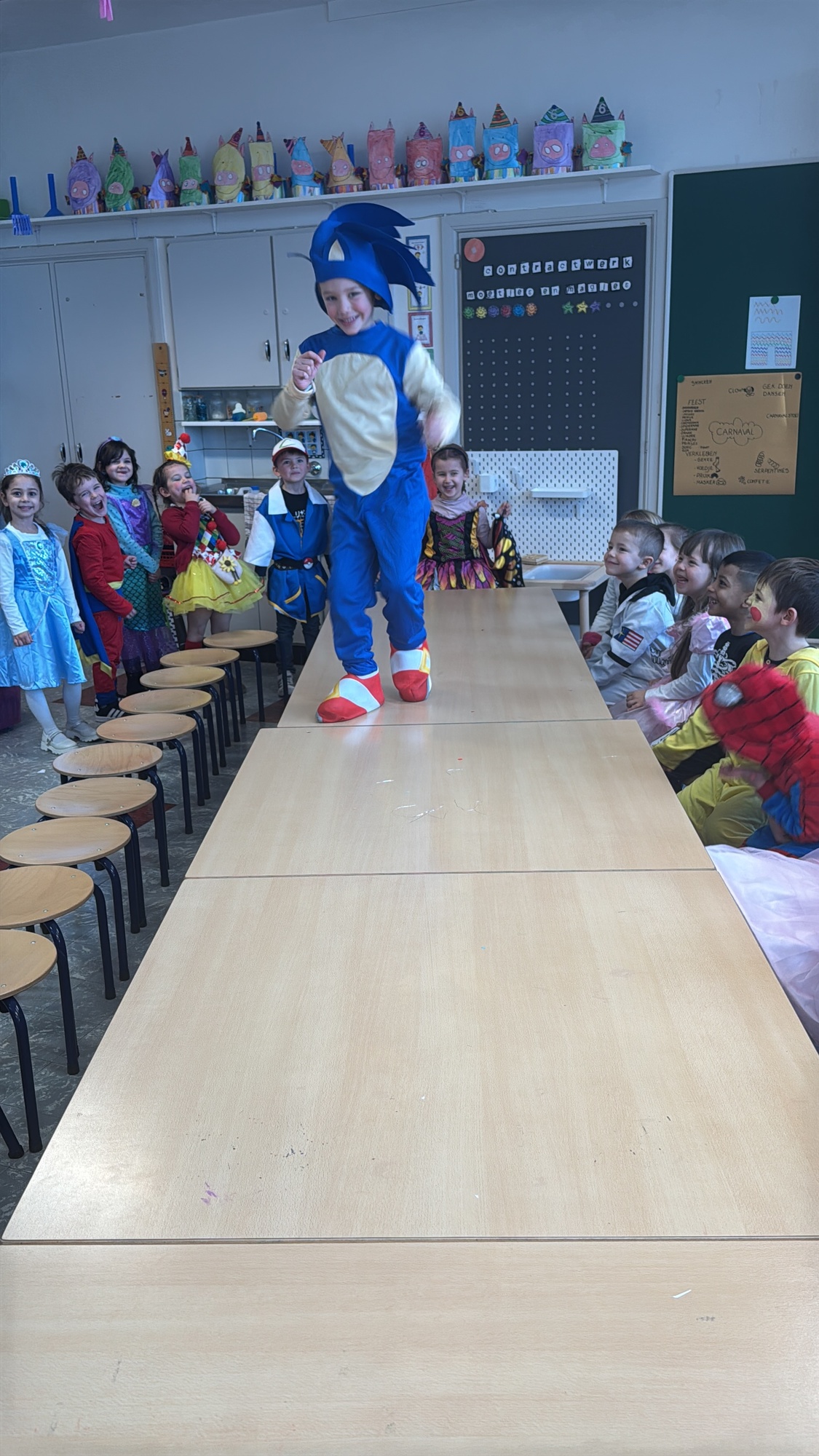 3KC Carnavalmodeshow op de catwalk in de klas.
