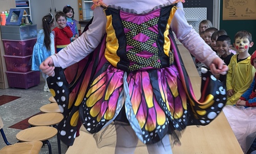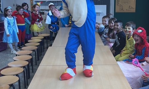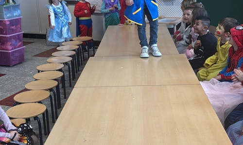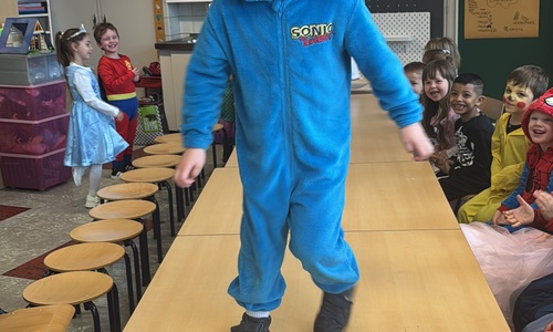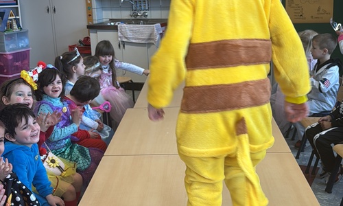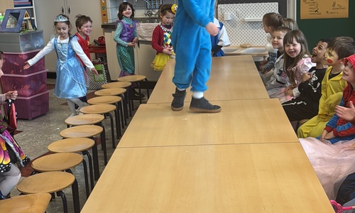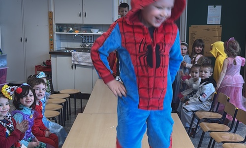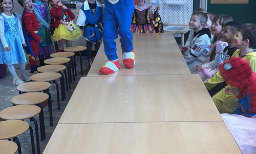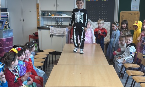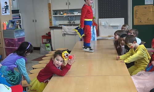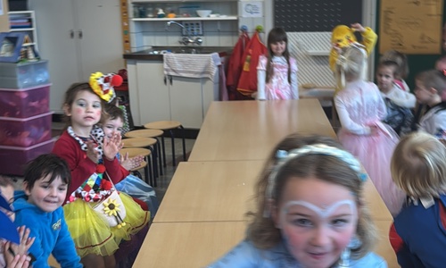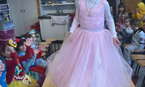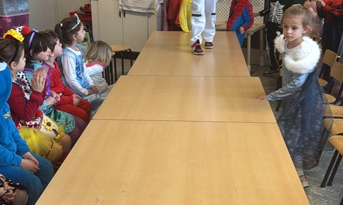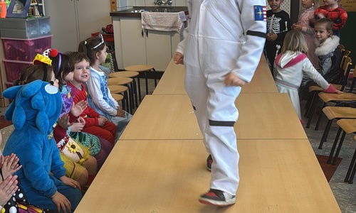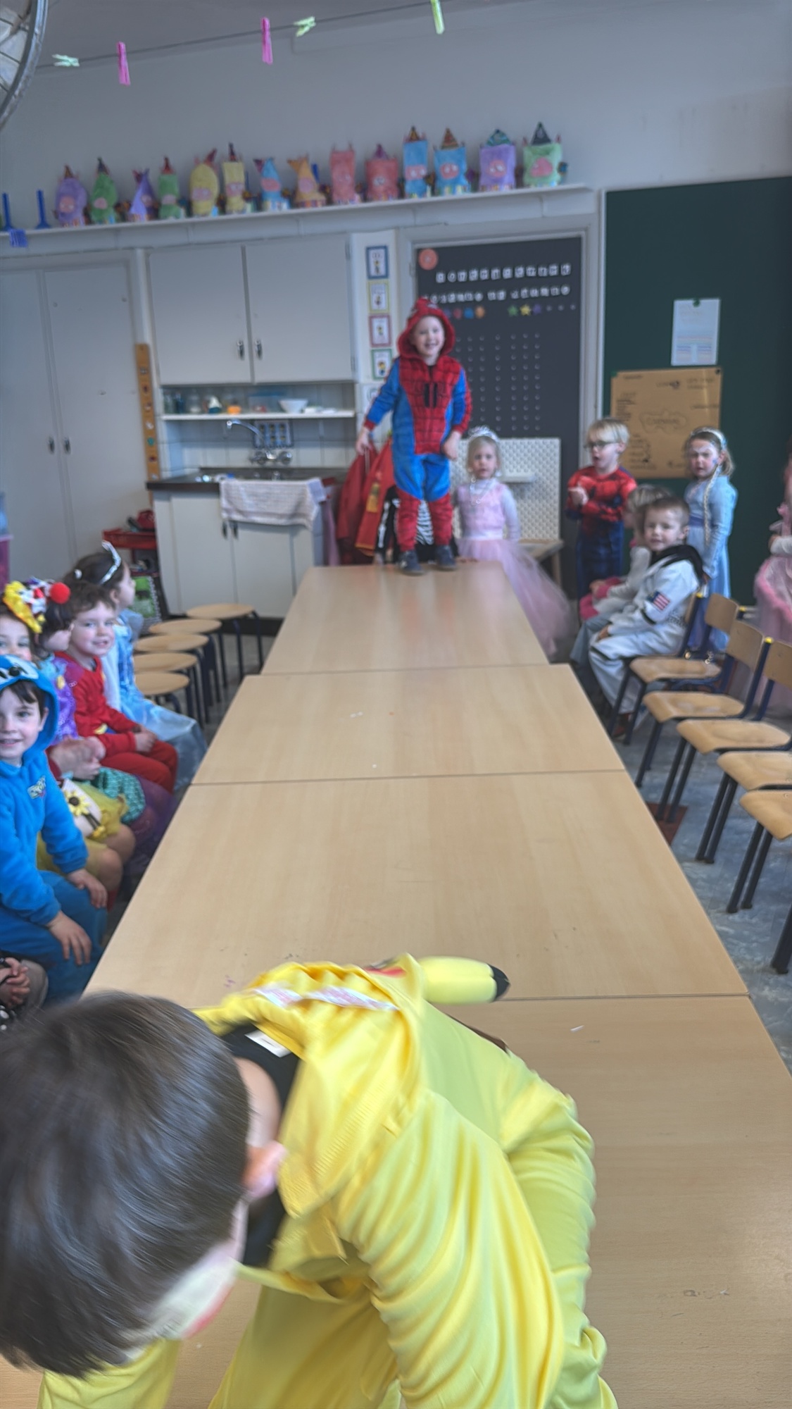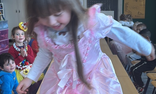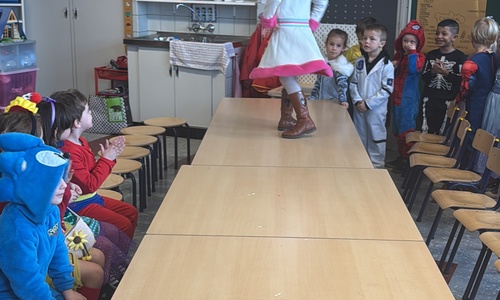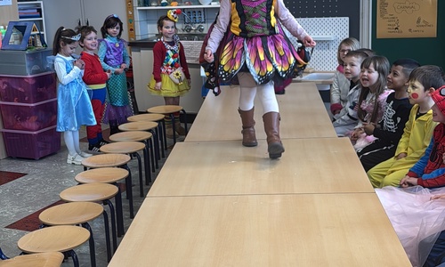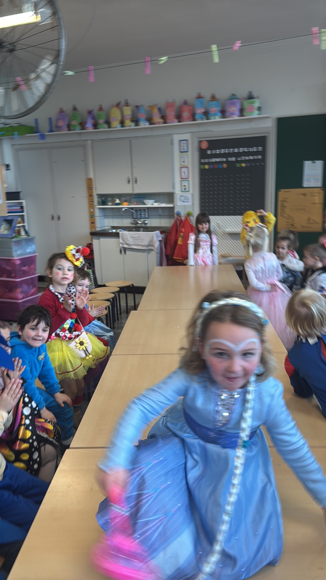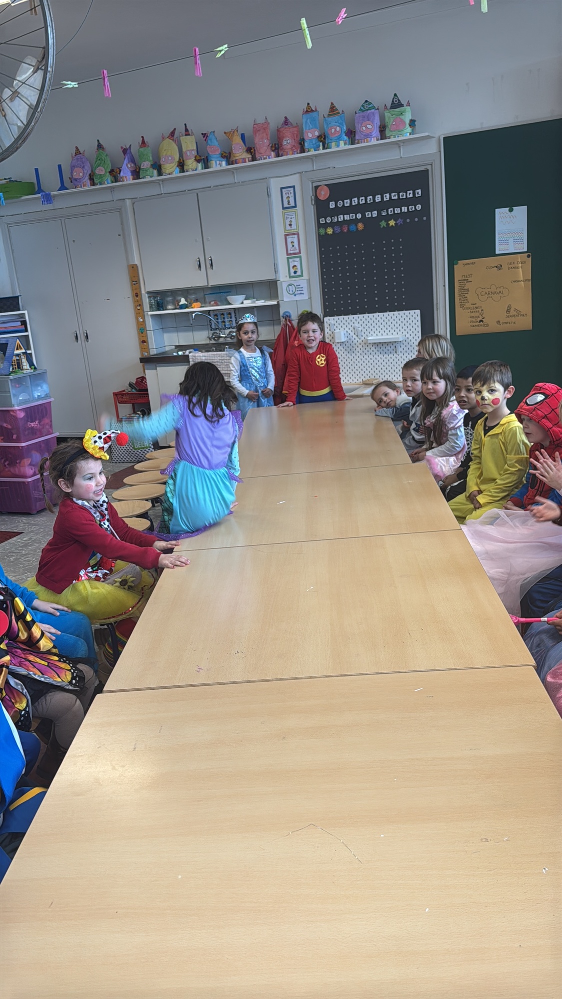 3KC Carnavalmodeshow op de catwalk in de klas.