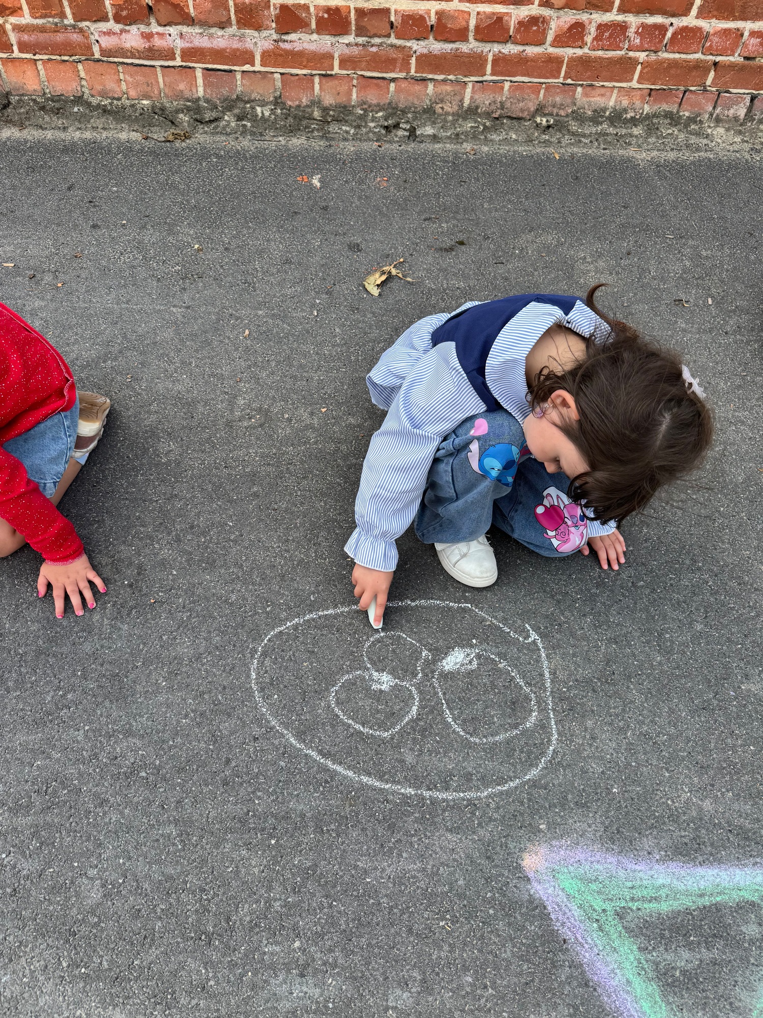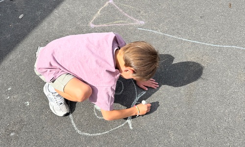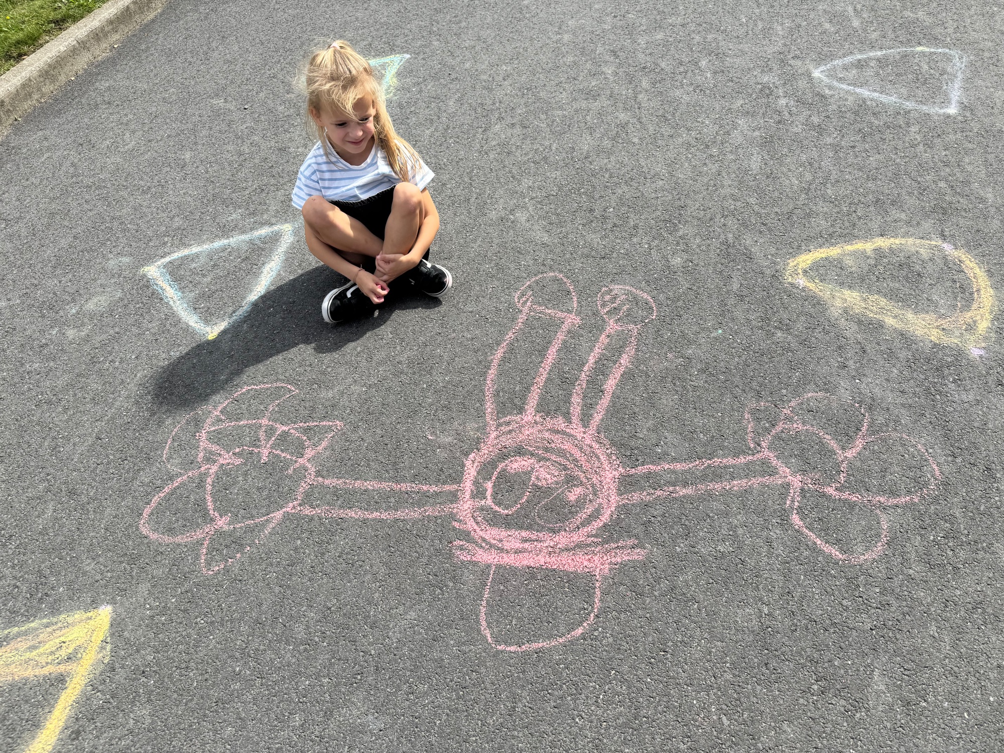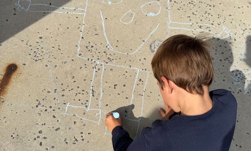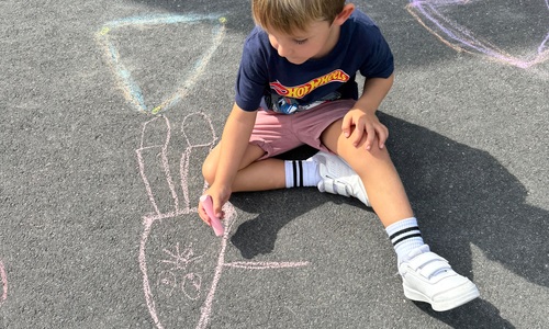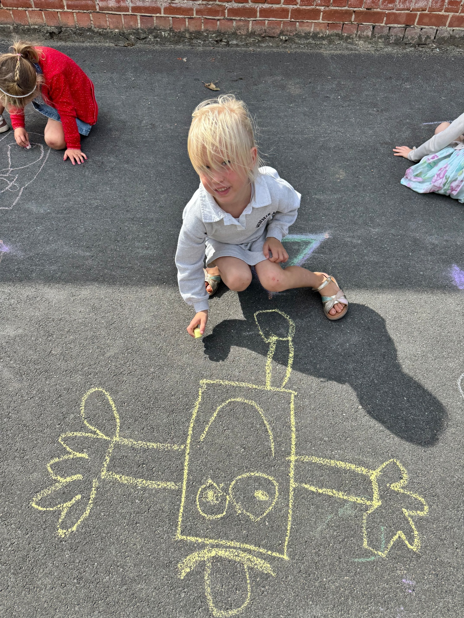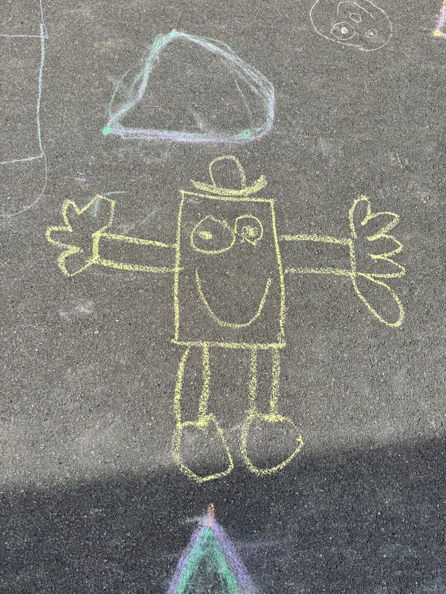 3KC Krullenbollen jullie mee? Meneertje Cirkel en Meneertje Driehoek krijten op de grond in de wachtzone.